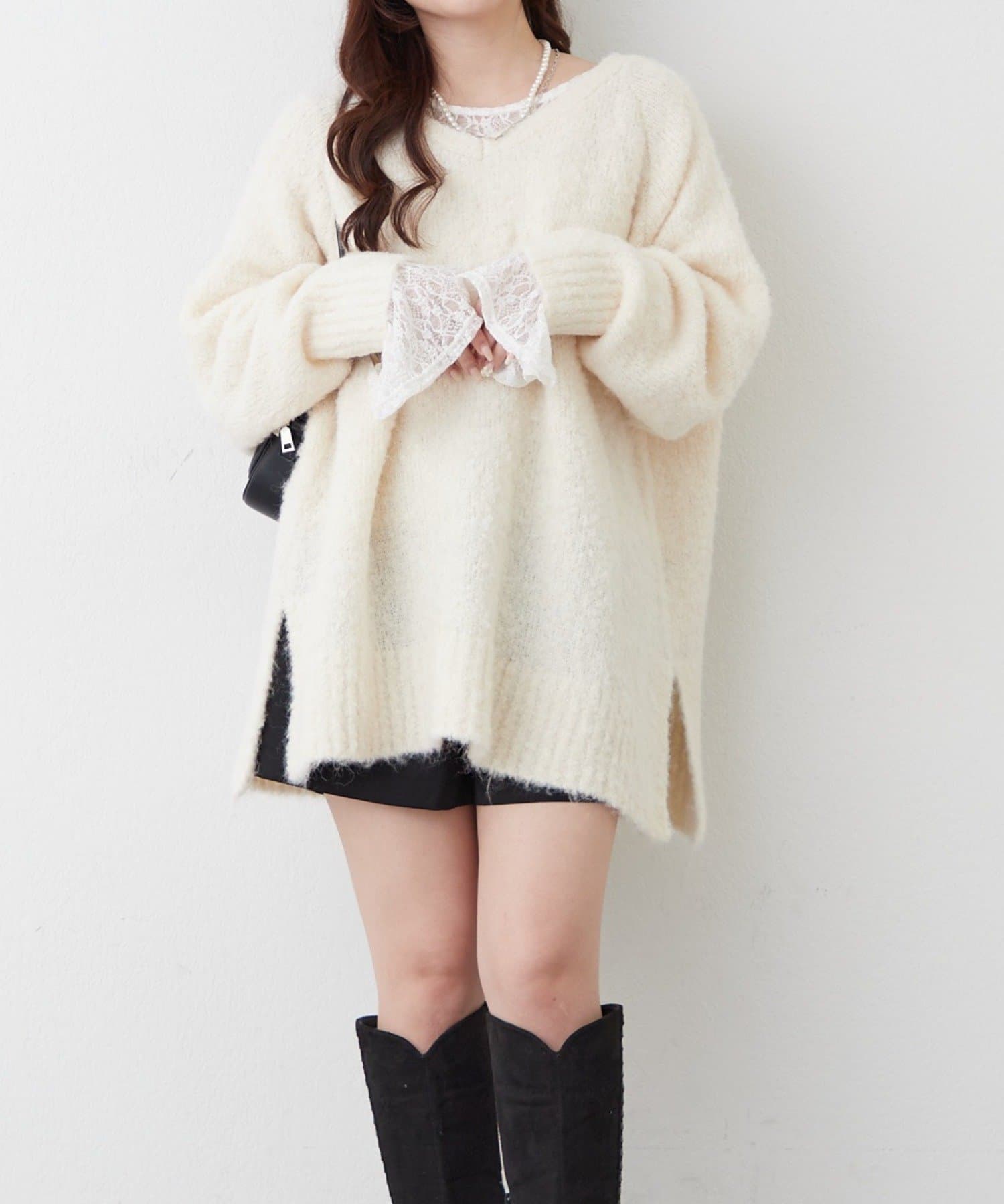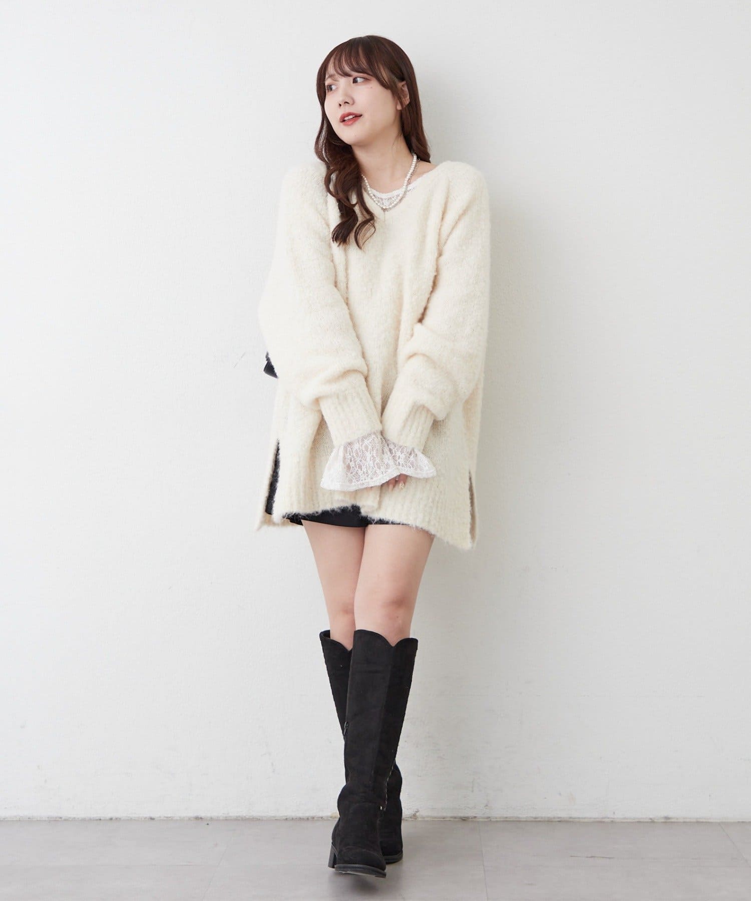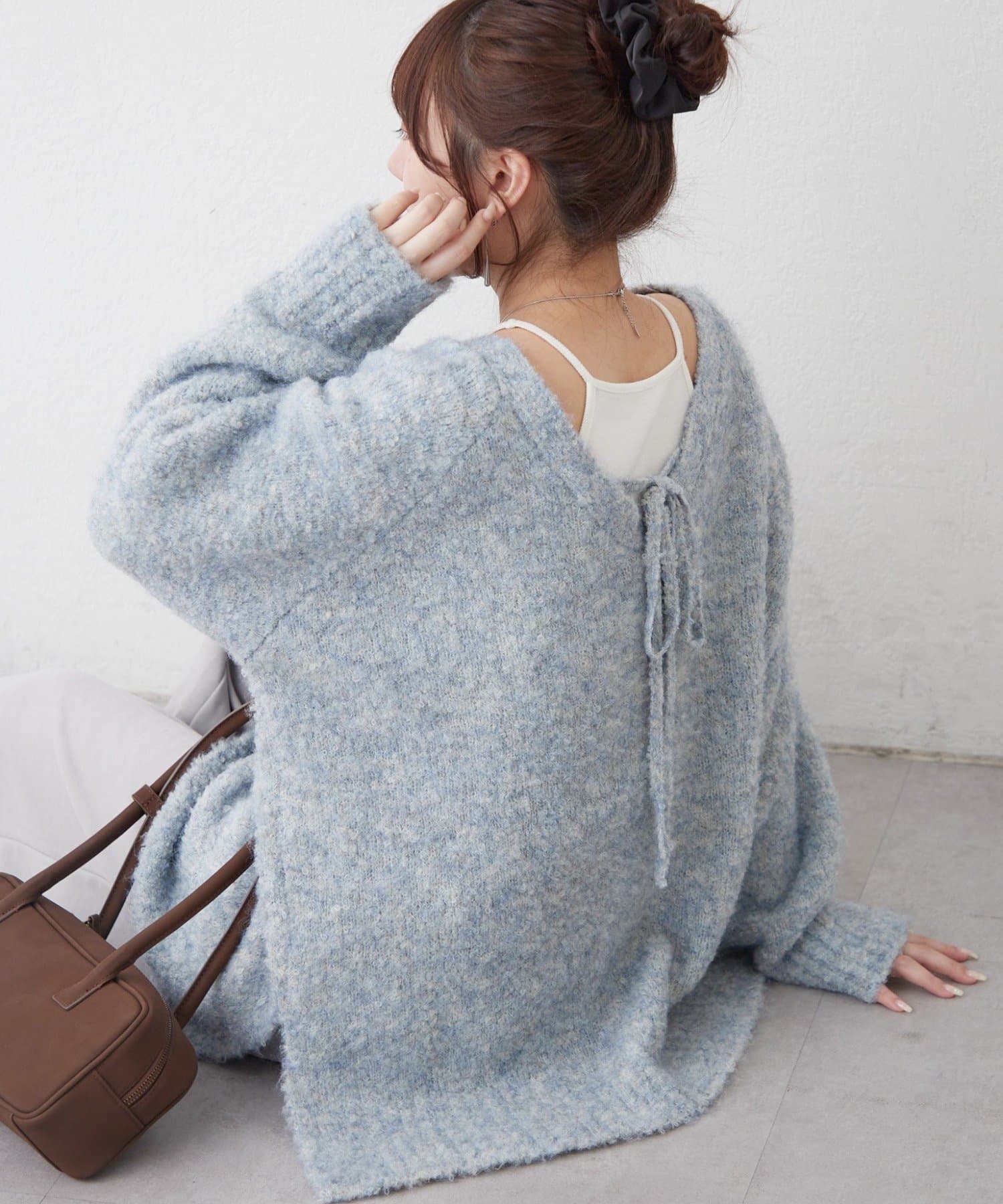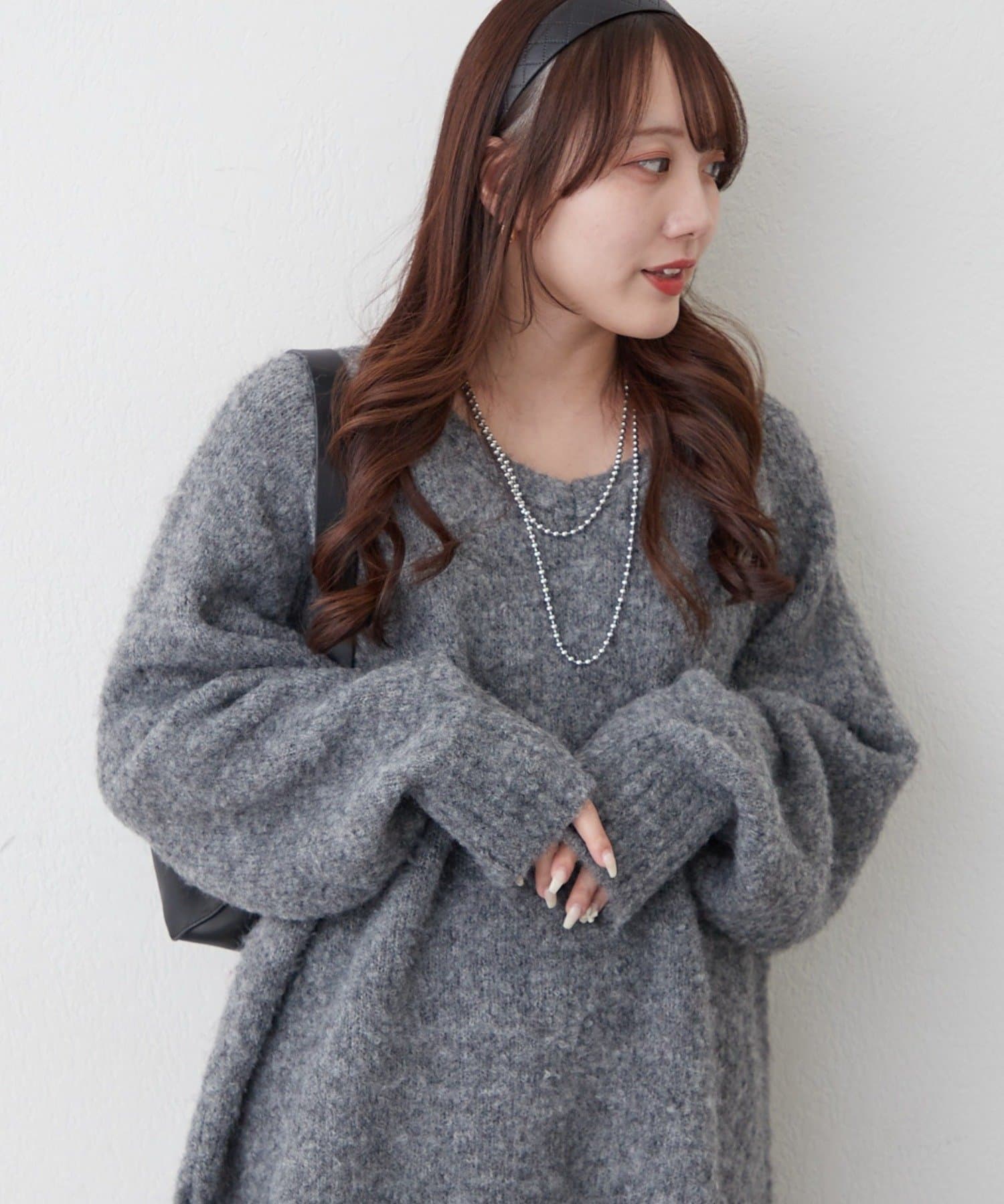 ・起毛がかったブークレ素材とMIXヤーンで表情豊かなニット