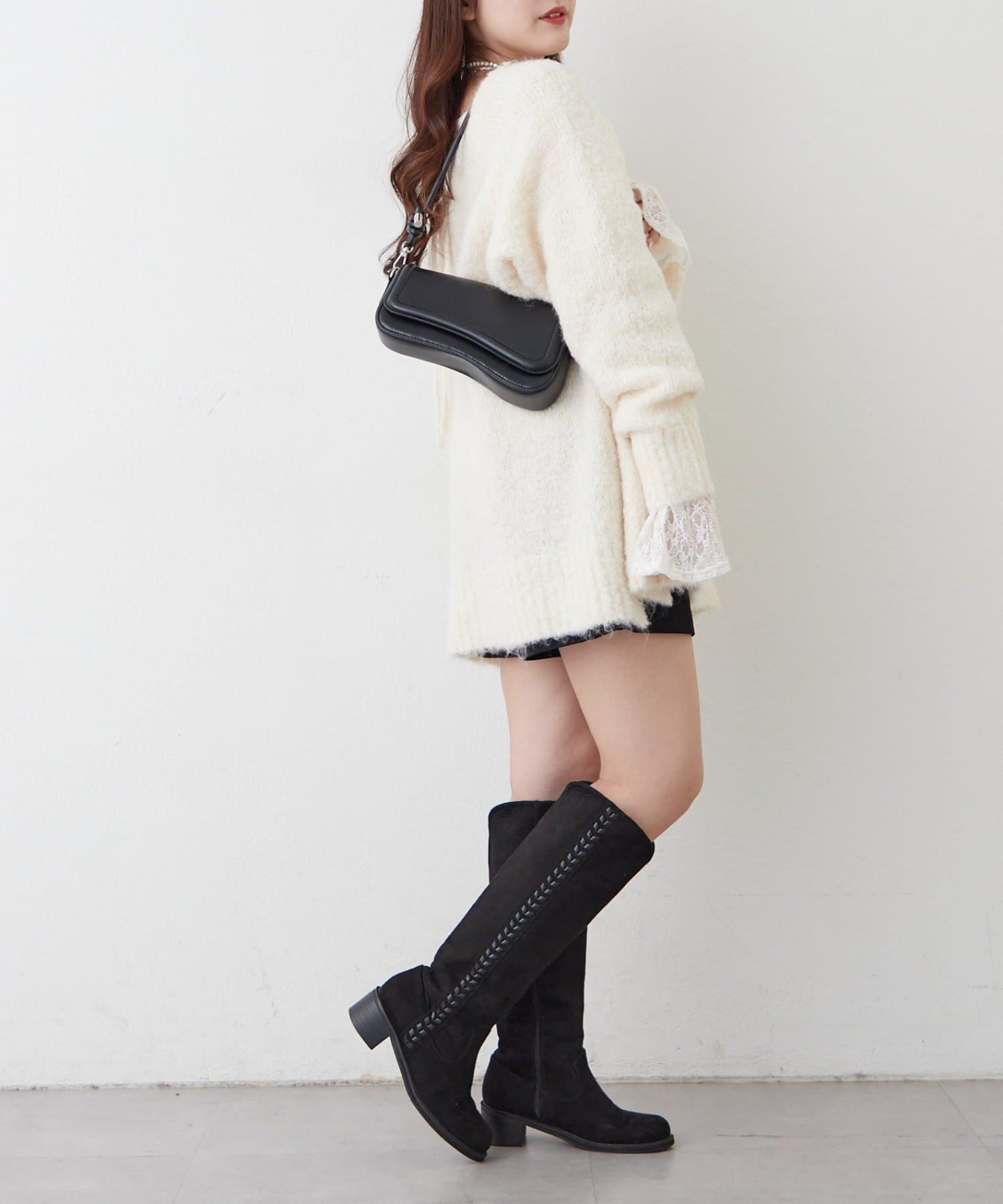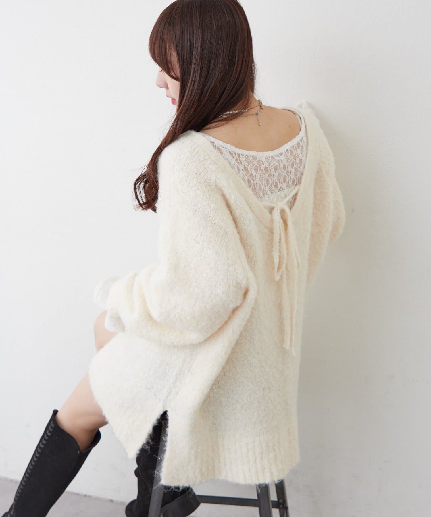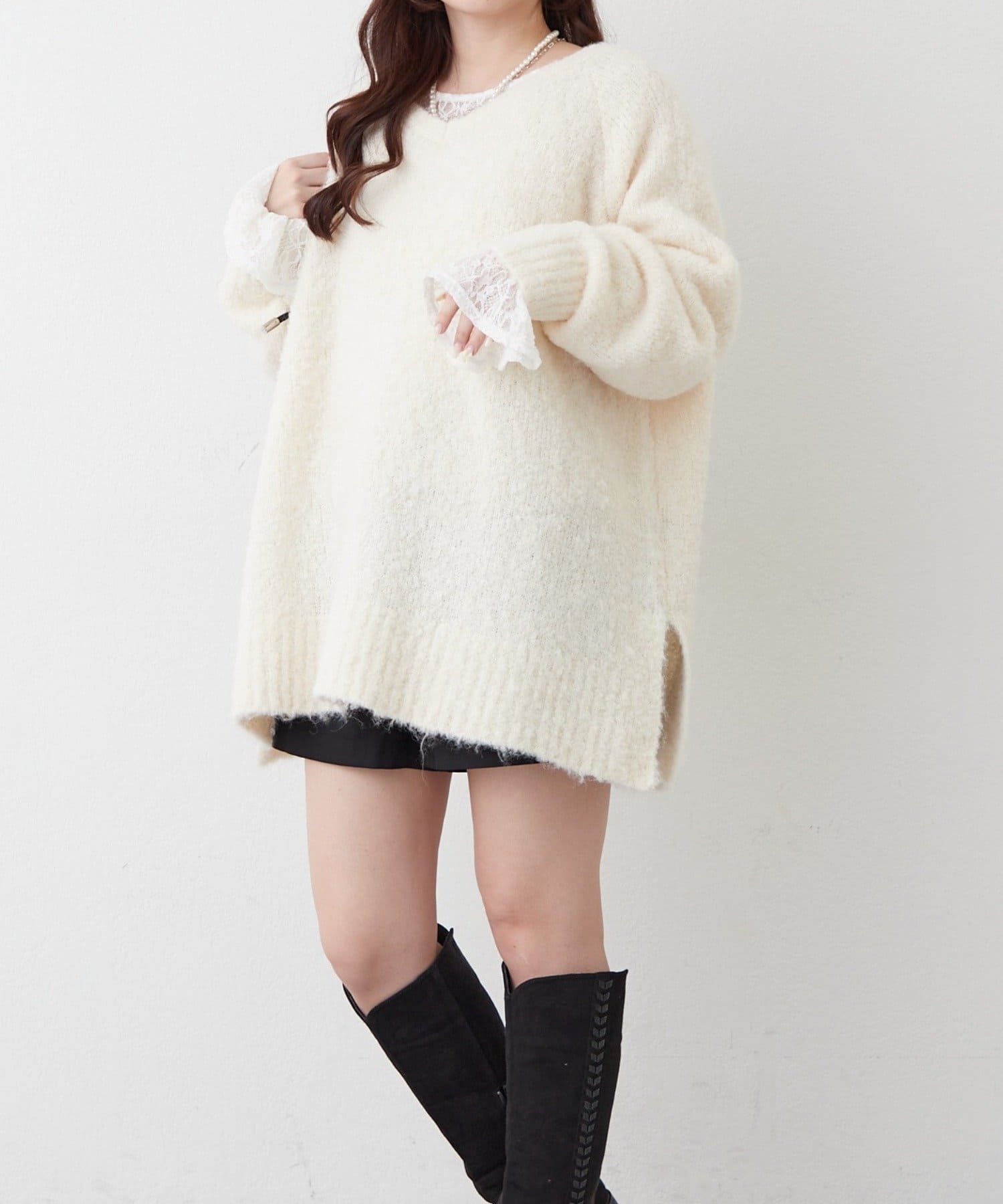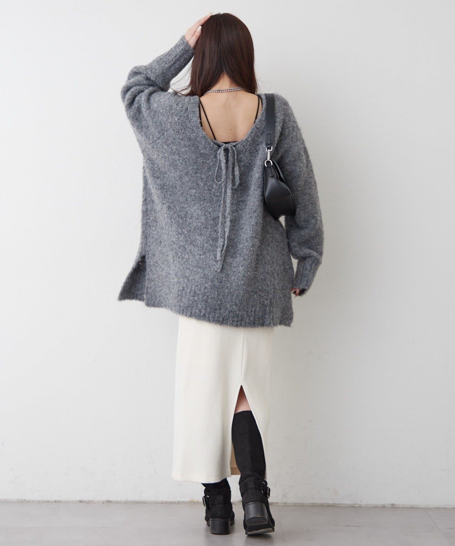 ・起毛がかったブークレ素材とMIXヤーンで表情豊かなニット