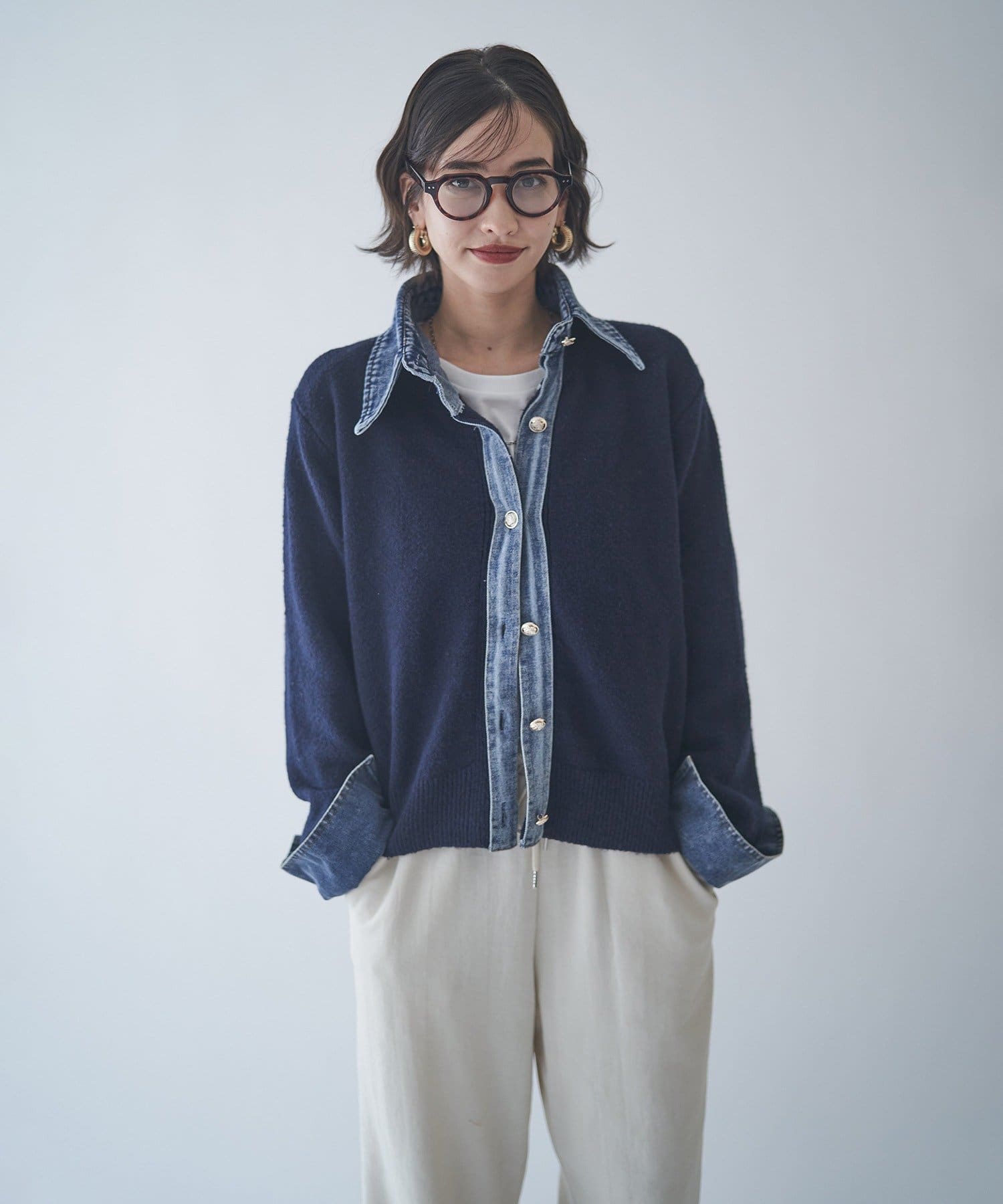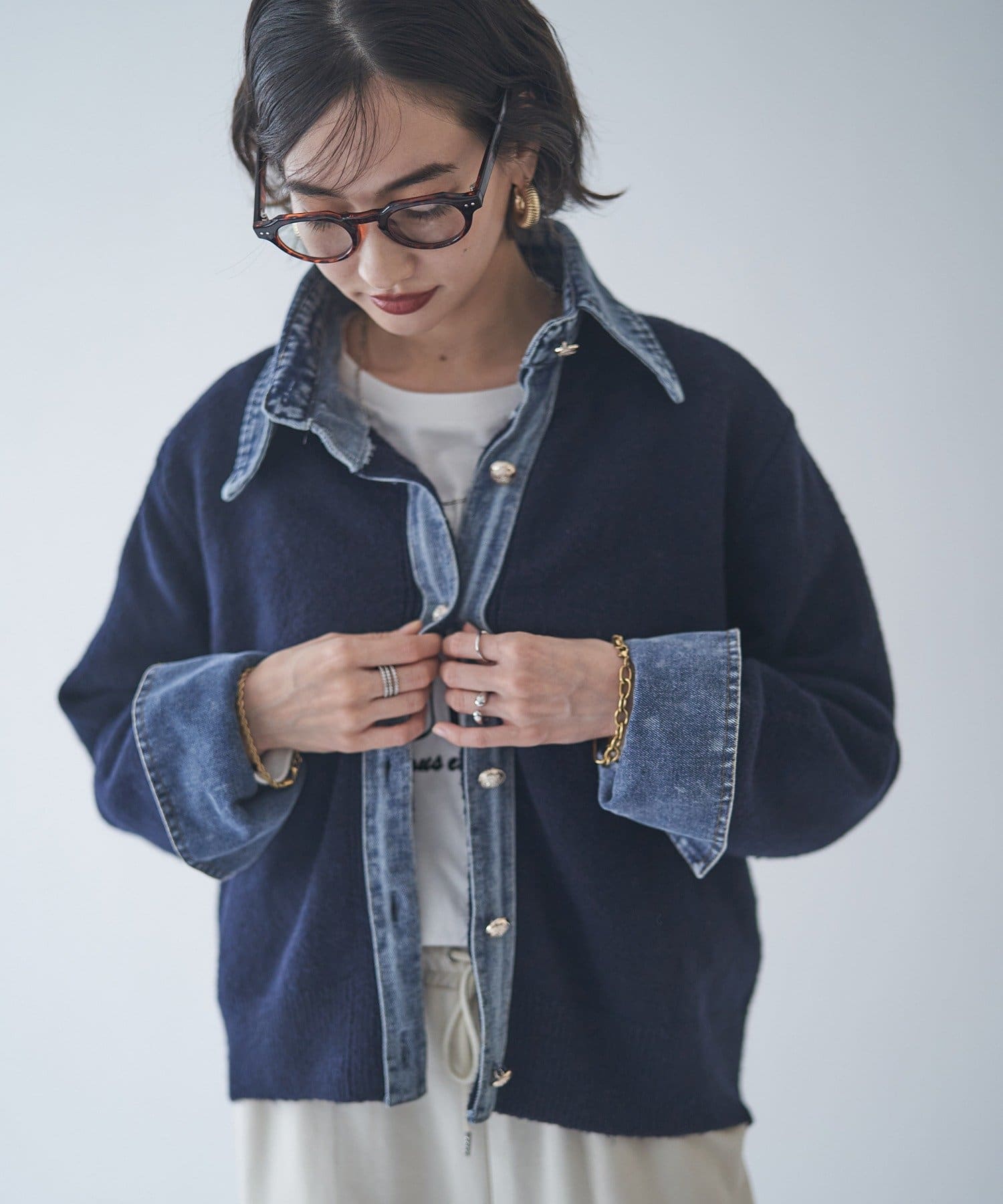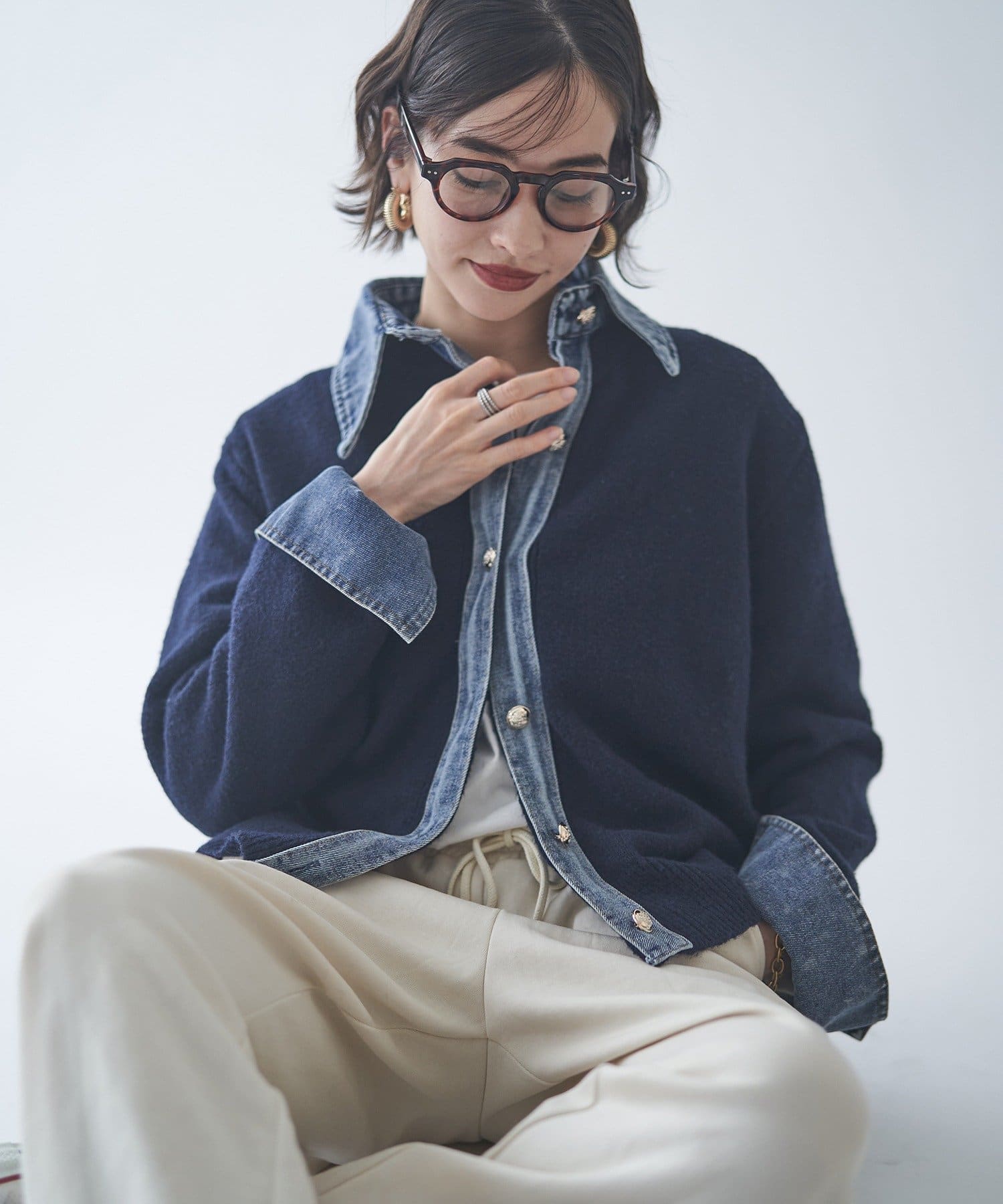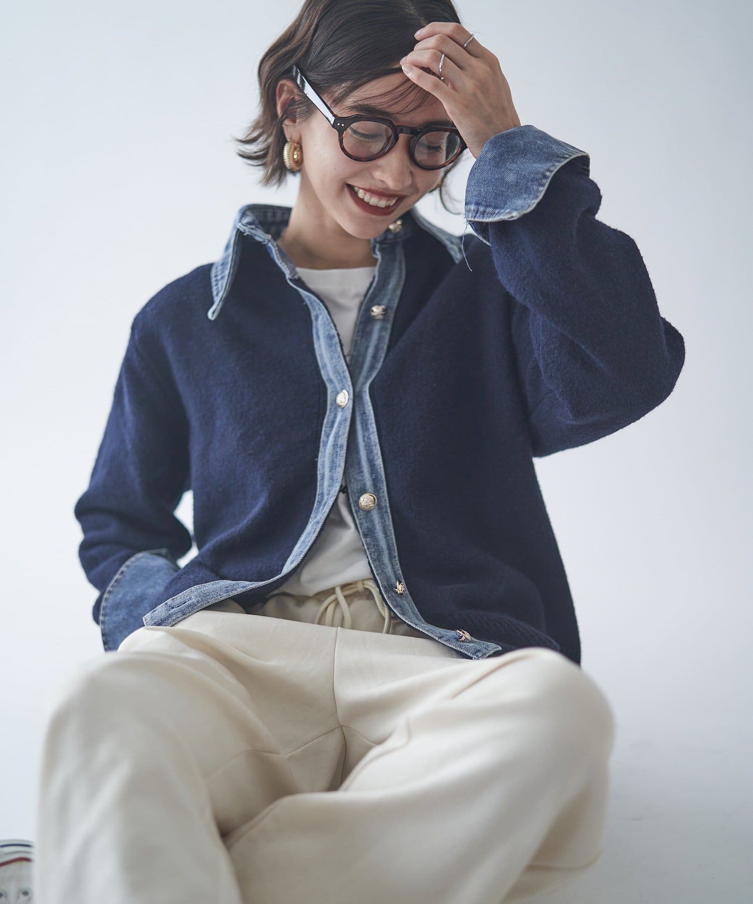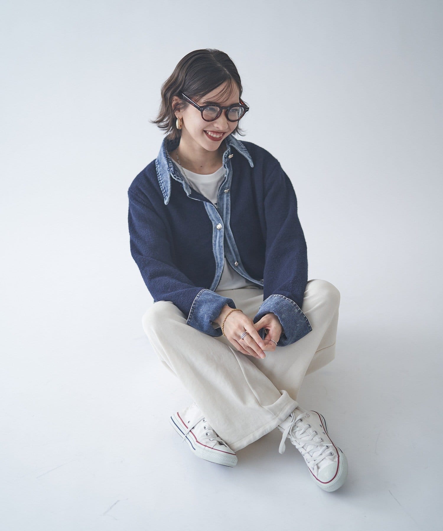 ・デニムは襟部分と袖口だけの仕様なので着心地はやわらかく、らくちん◎