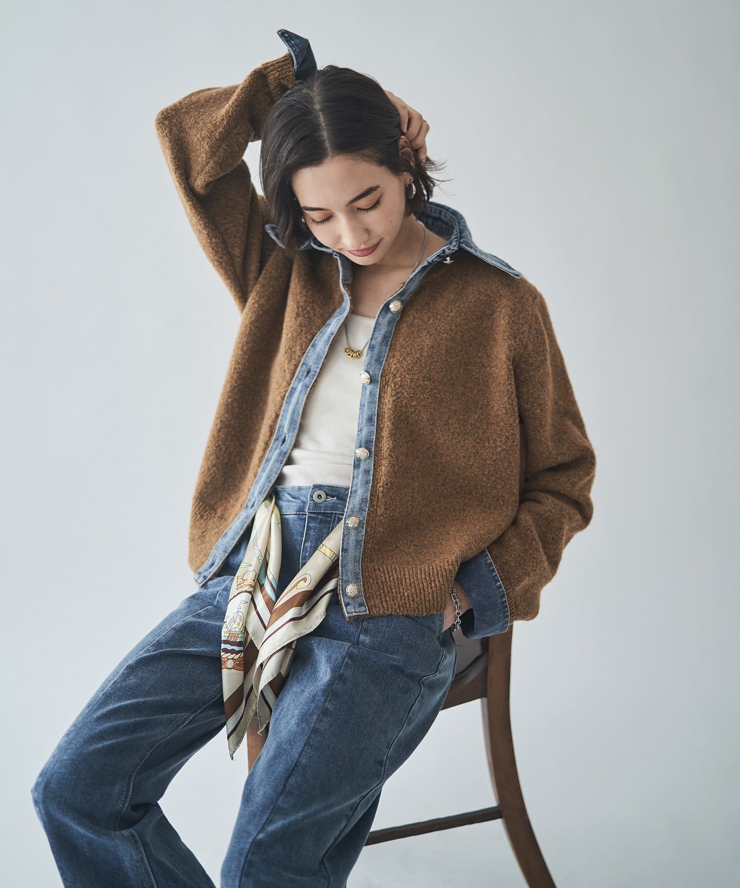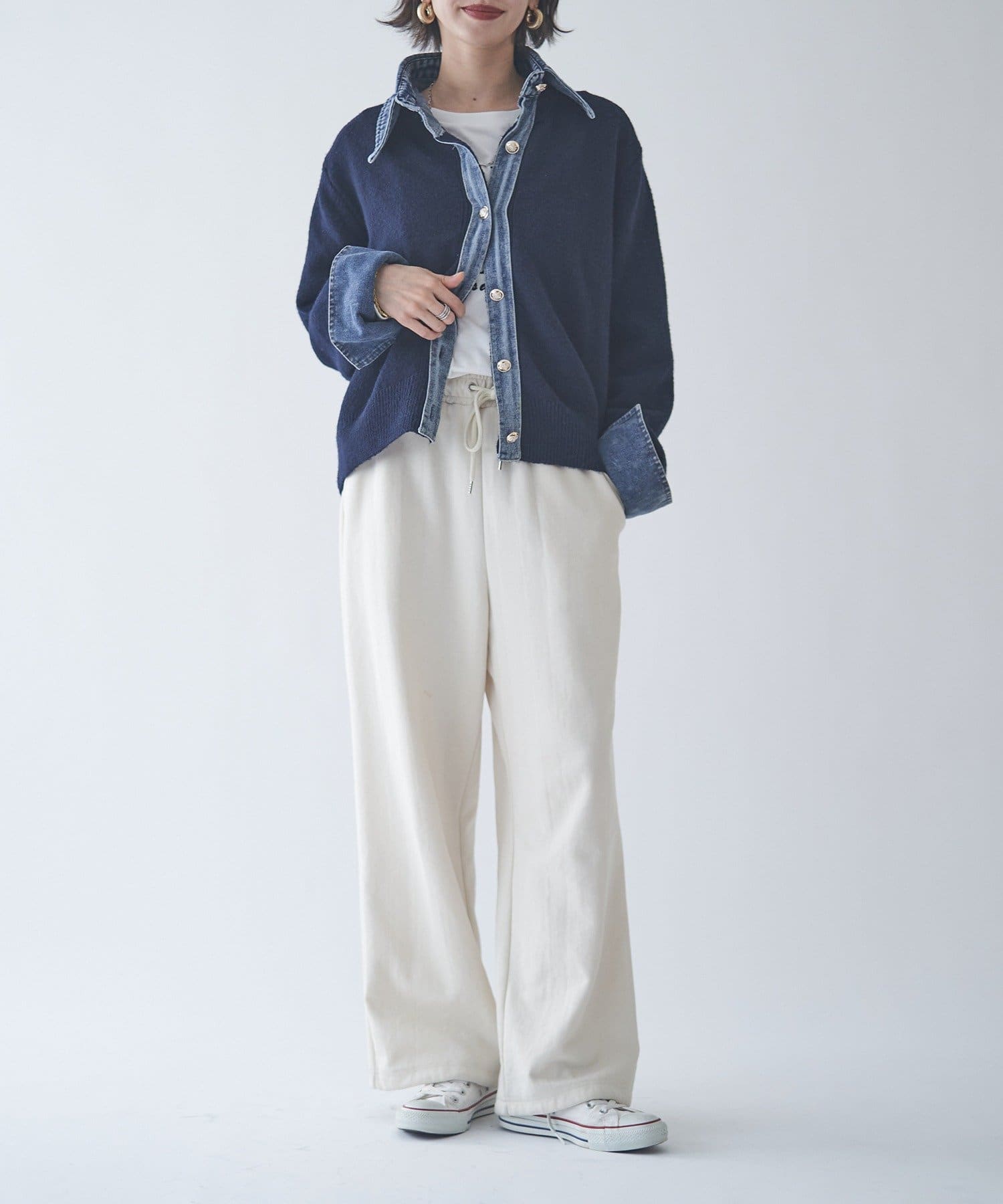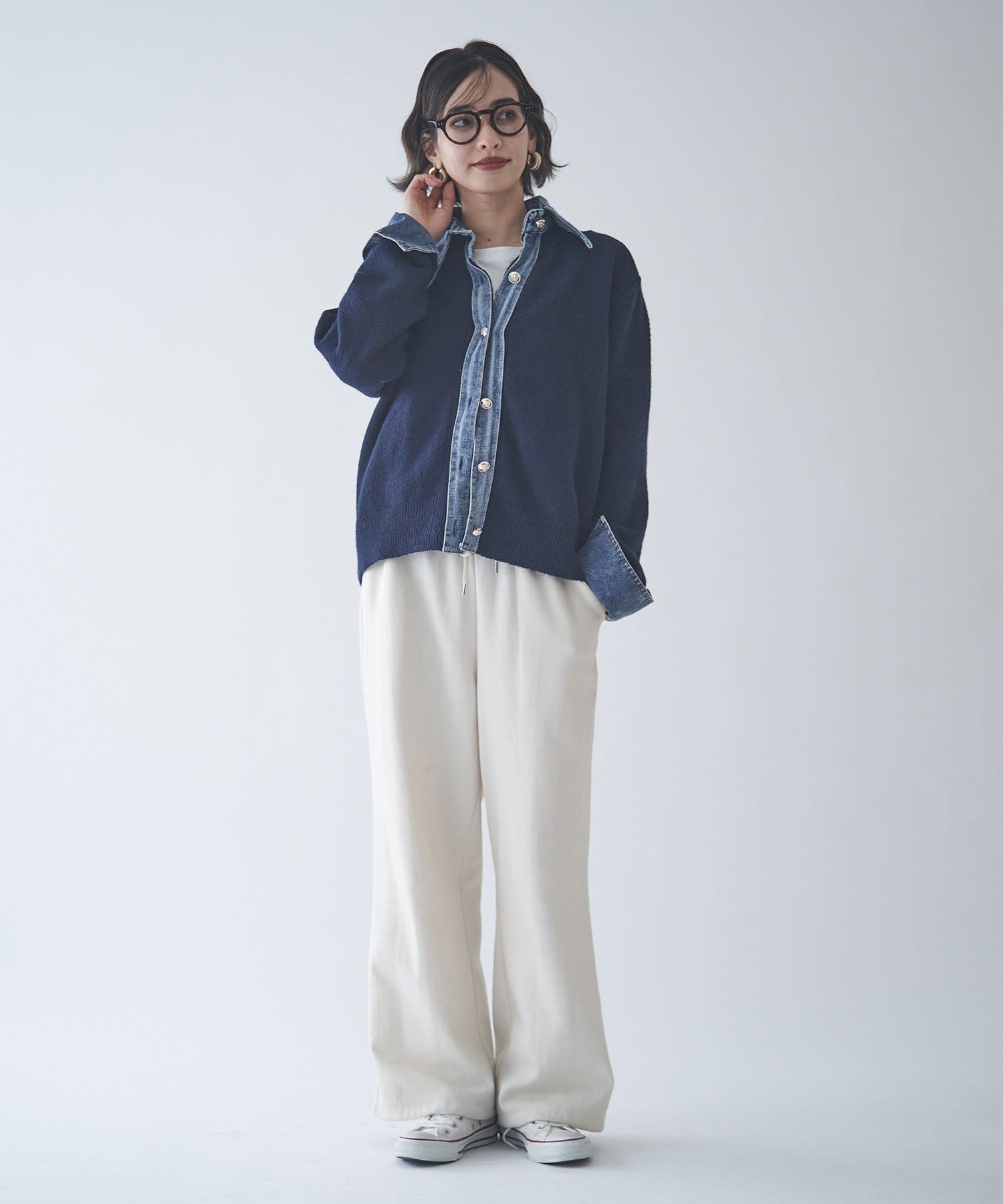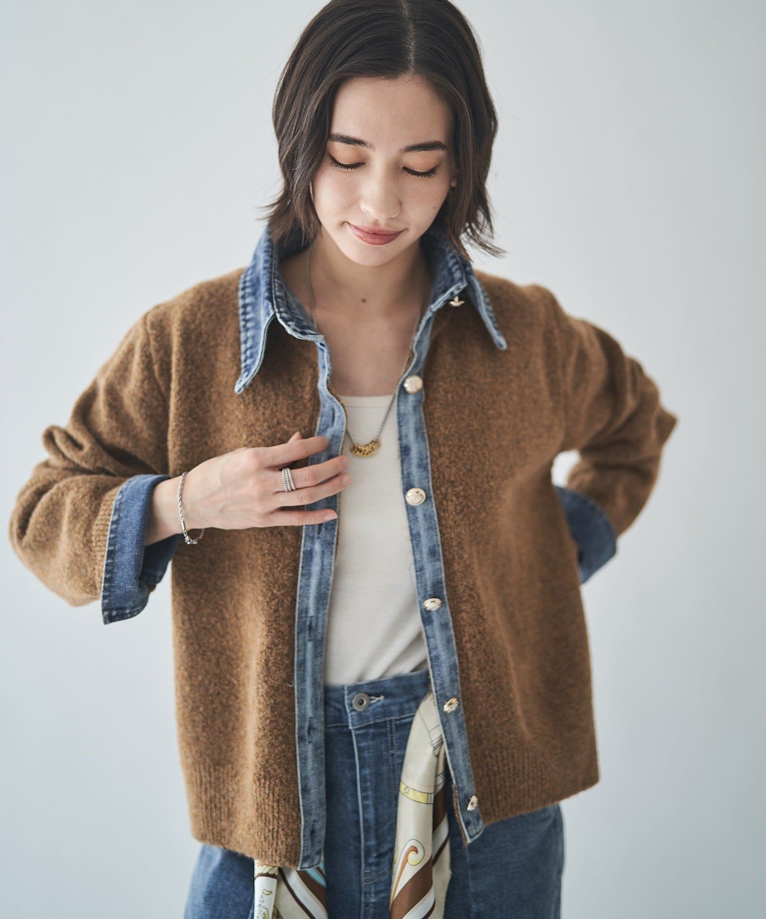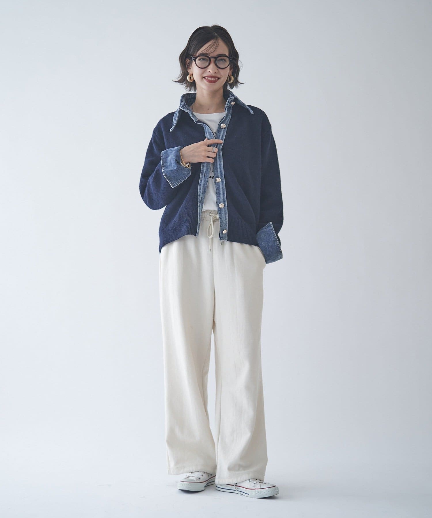 ・デニムは襟部分と袖口だけの仕様なので着心地はやわらかく、らくちん◎
