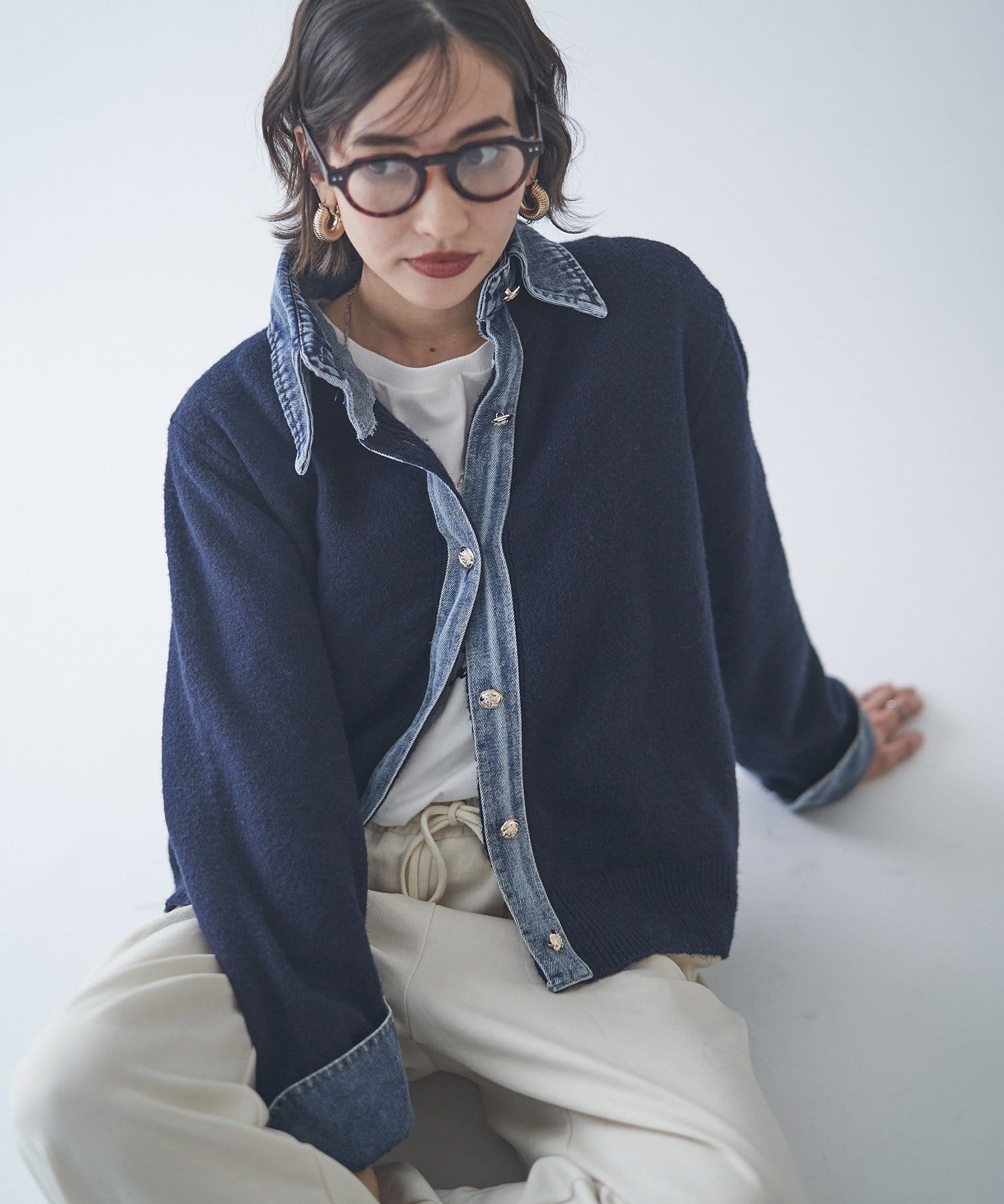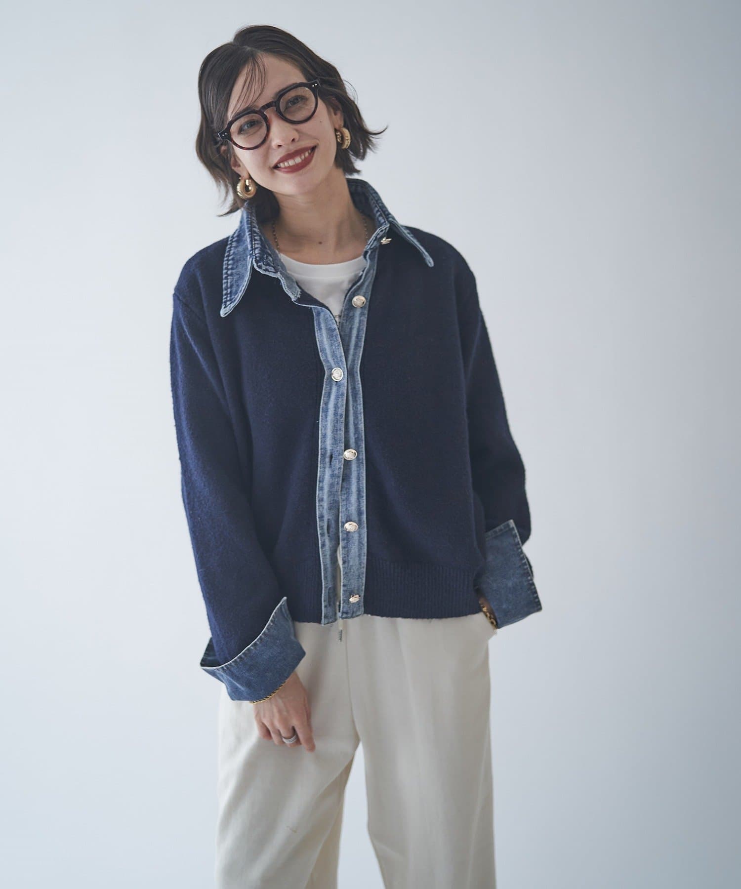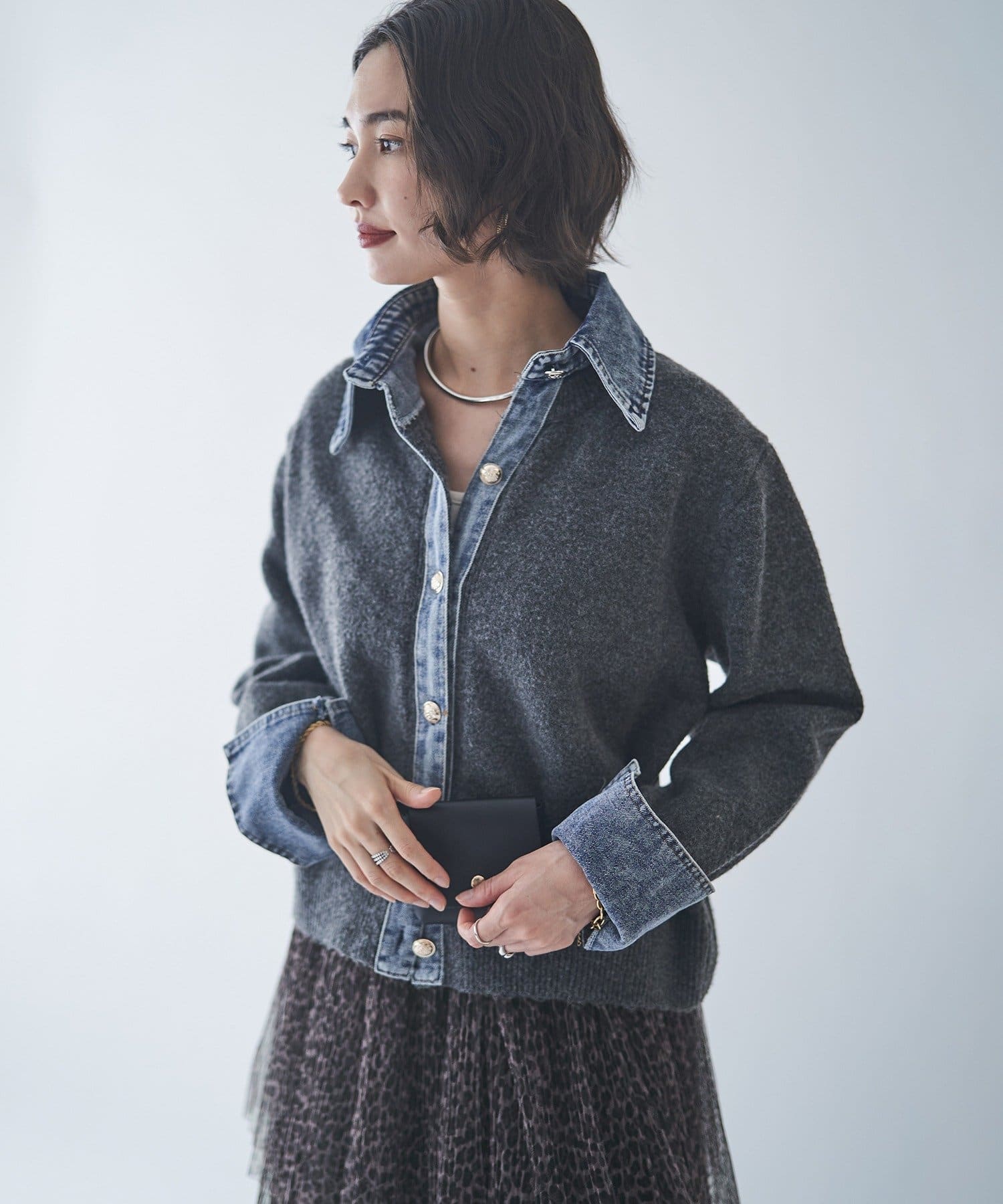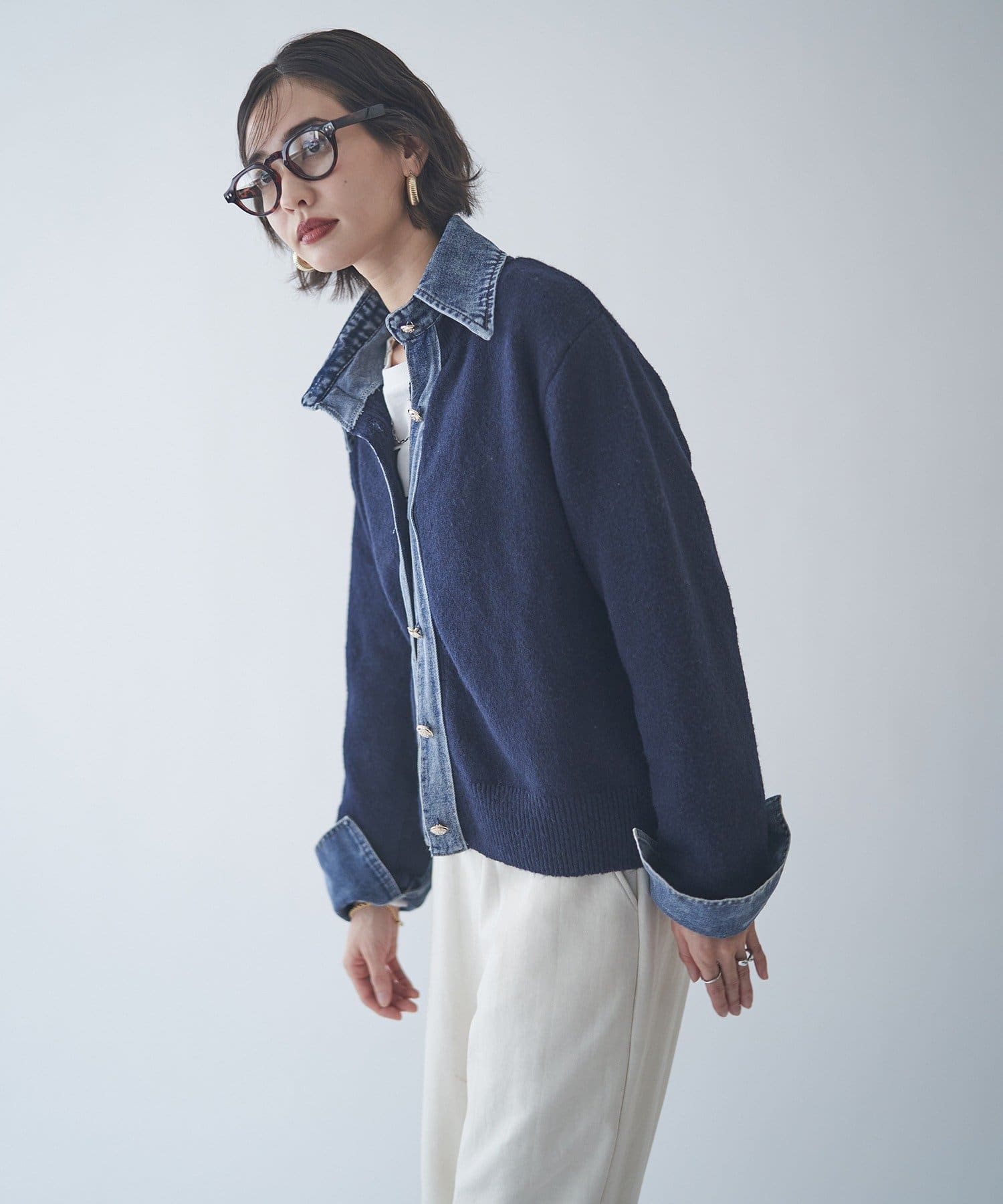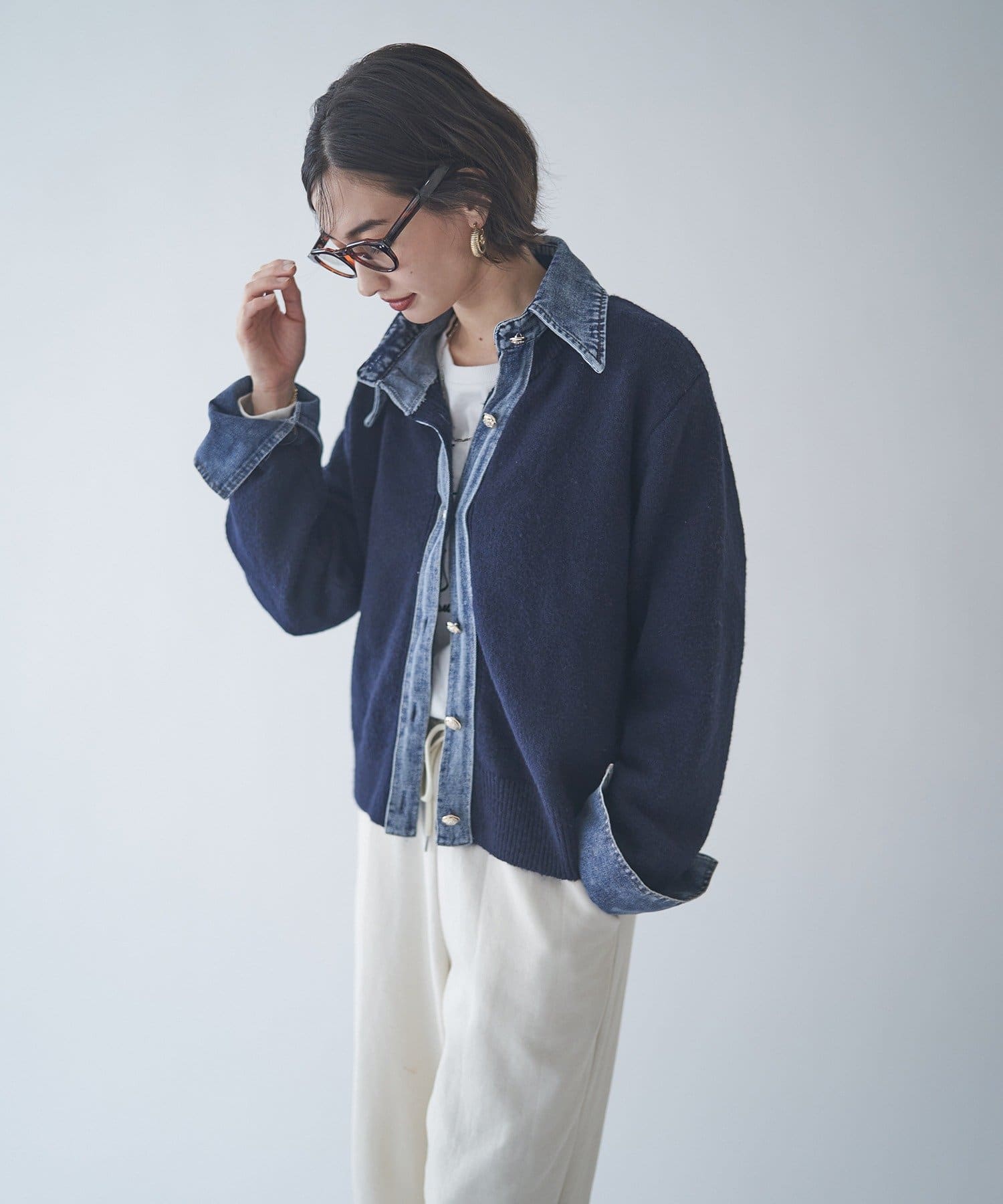 ・デニムは襟部分と袖口だけの仕様なので着心地はやわらかく、らくちん◎