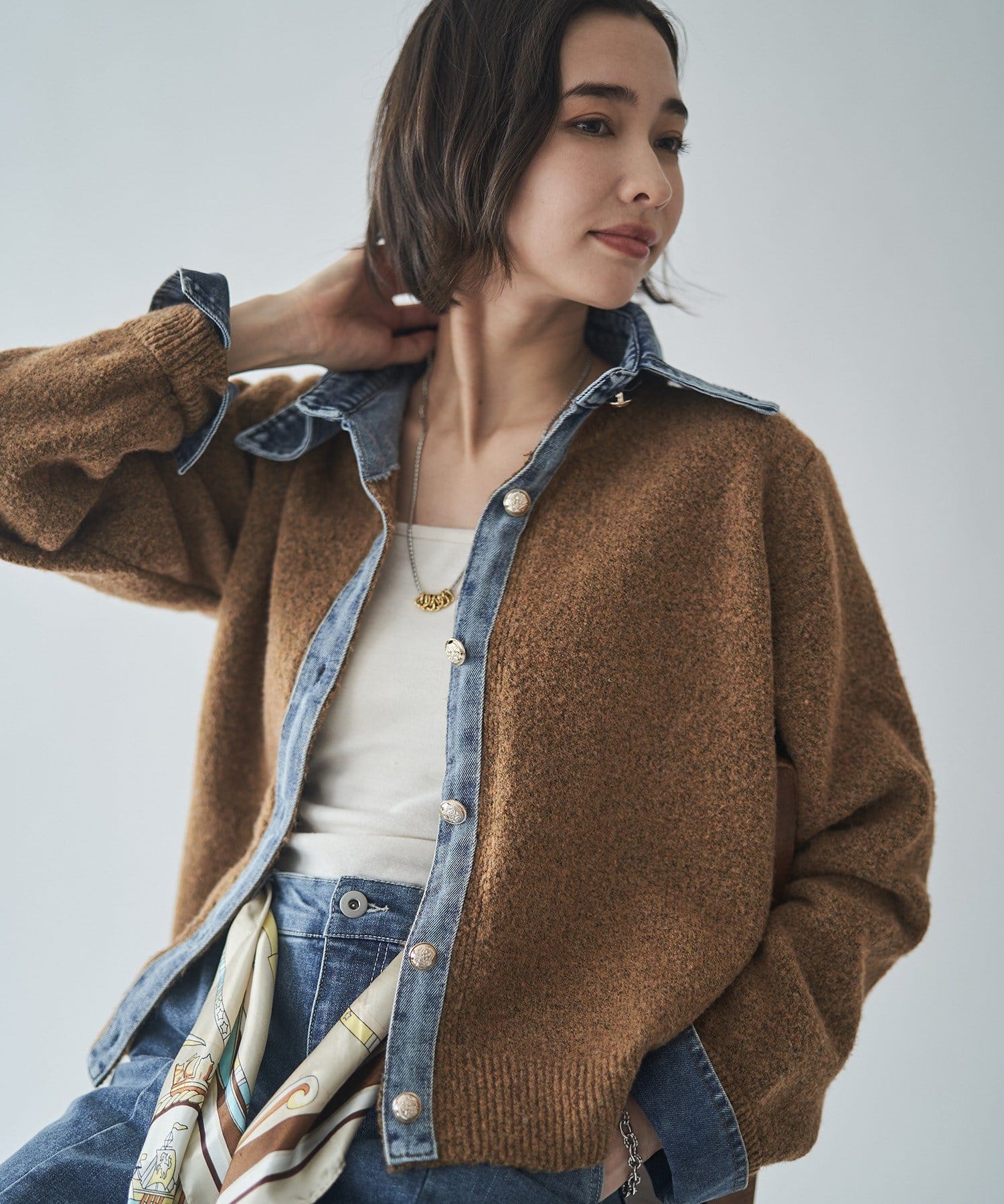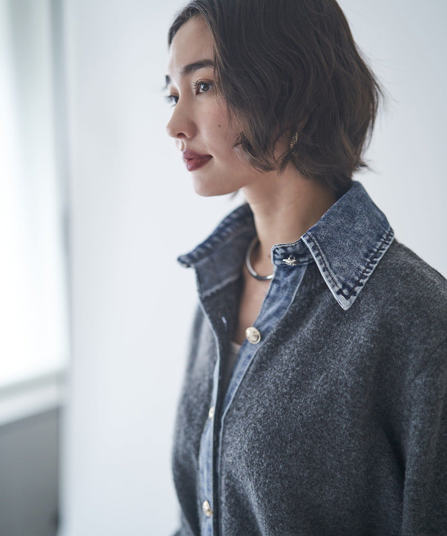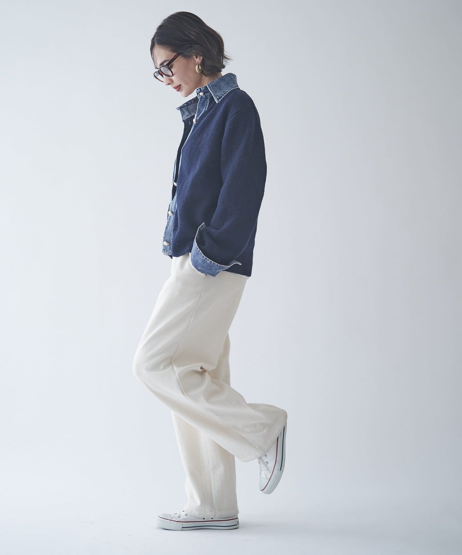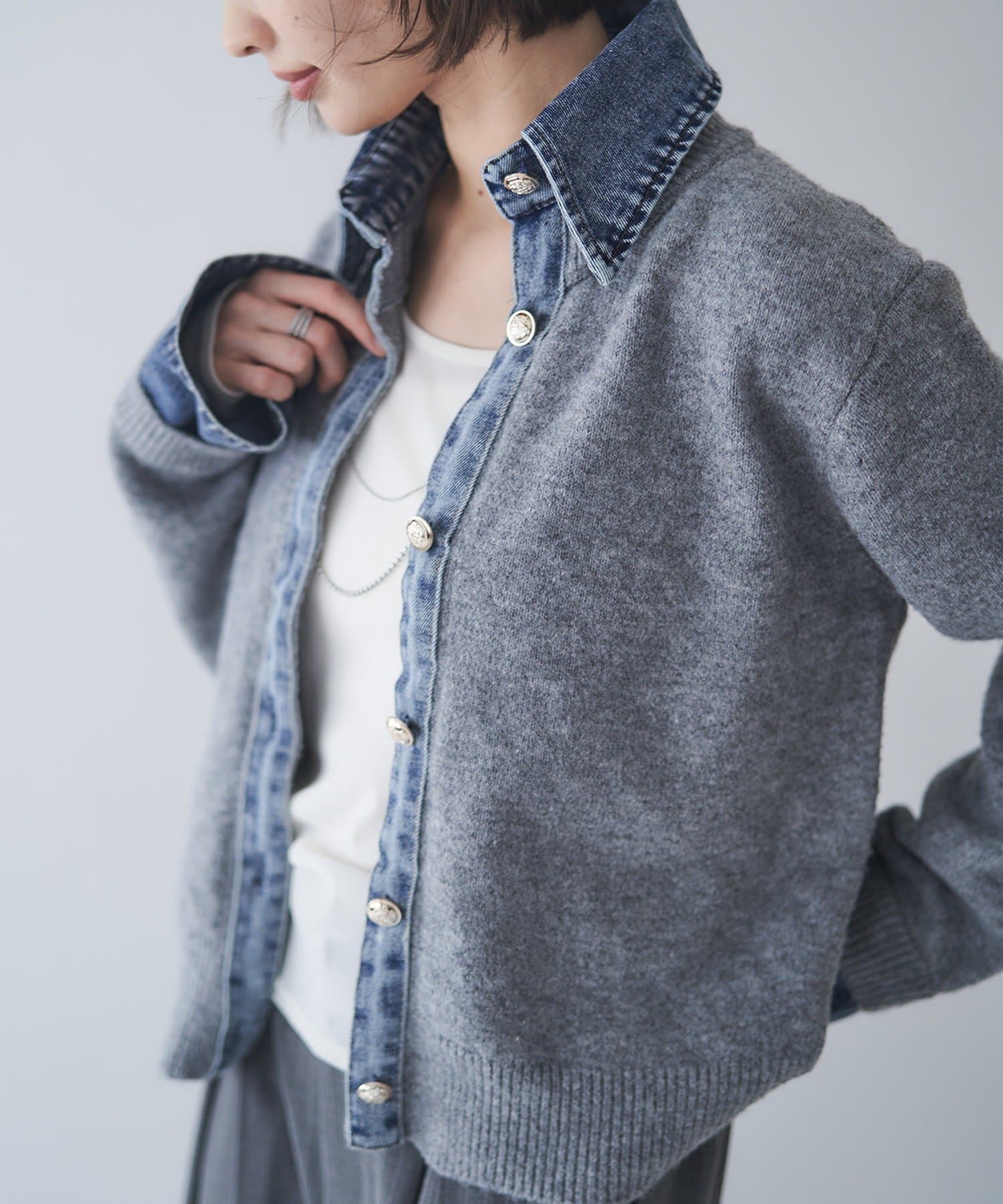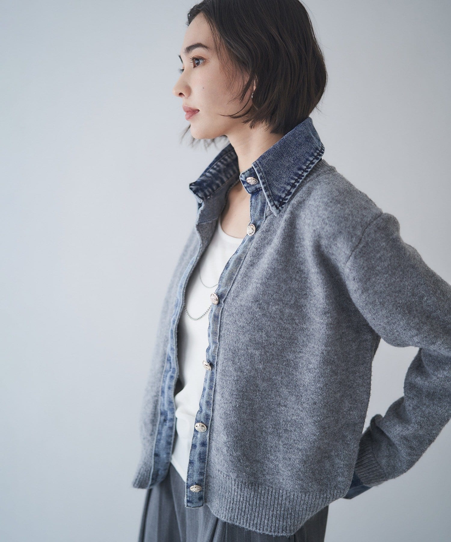 ・デニムは襟部分と袖口だけの仕様なので着心地はやわらかく、らくちん◎