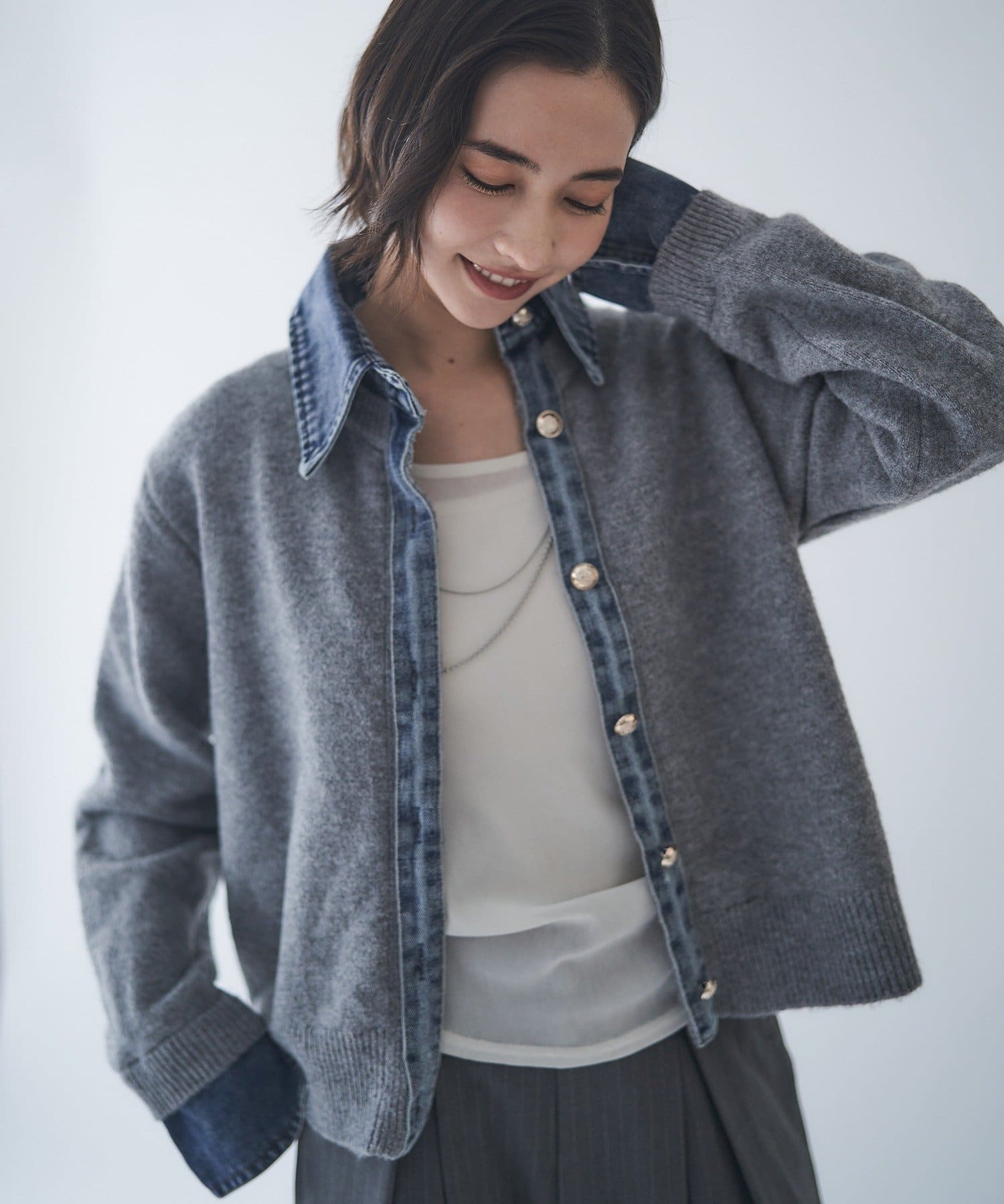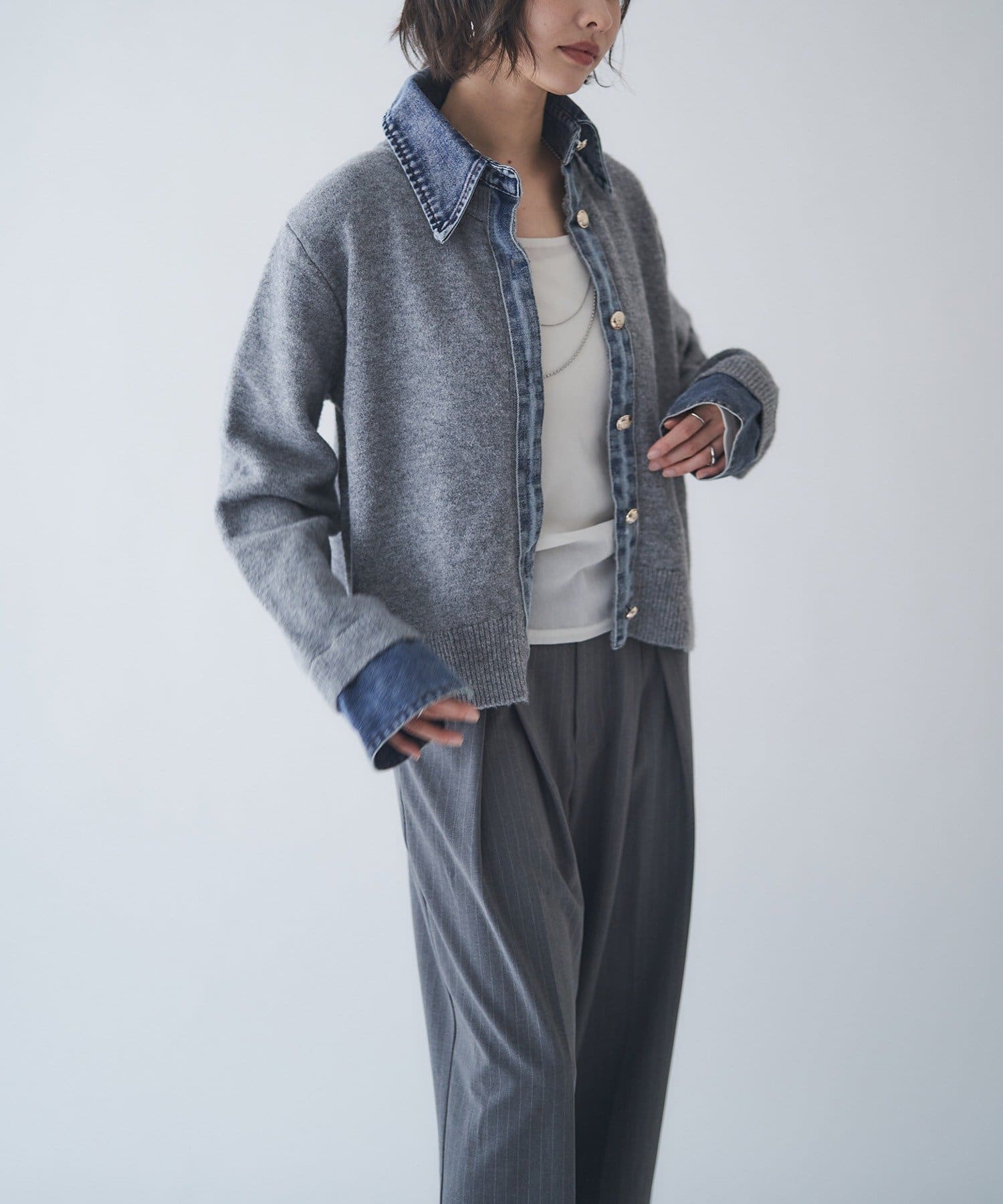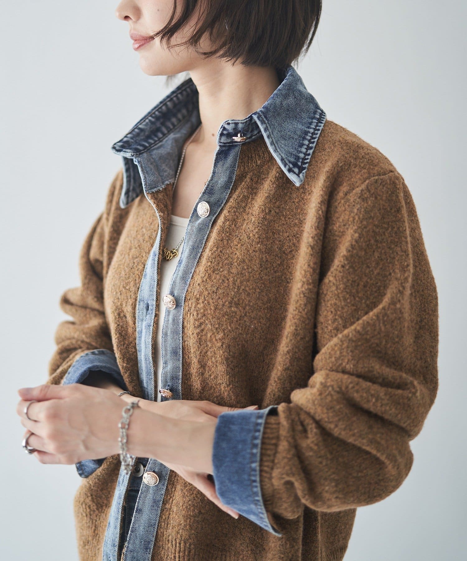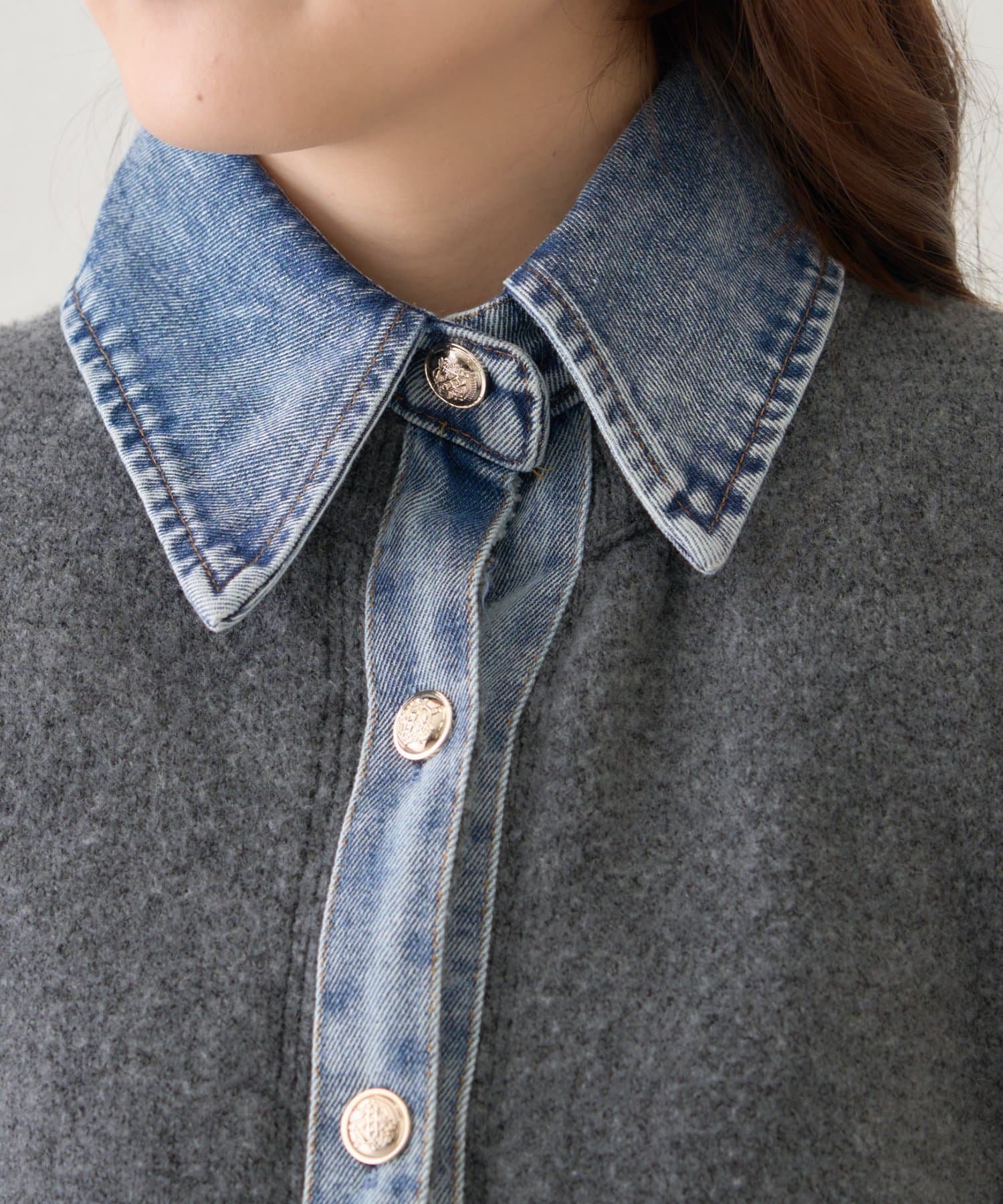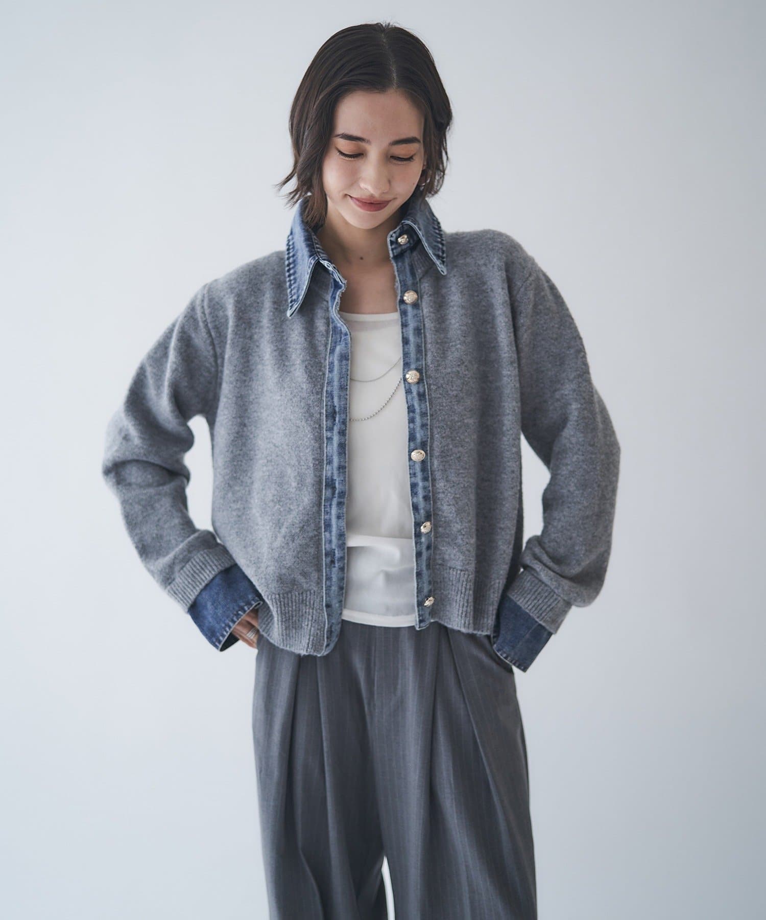 ・デニムは襟部分と袖口だけの仕様なので着心地はやわらかく、らくちん◎