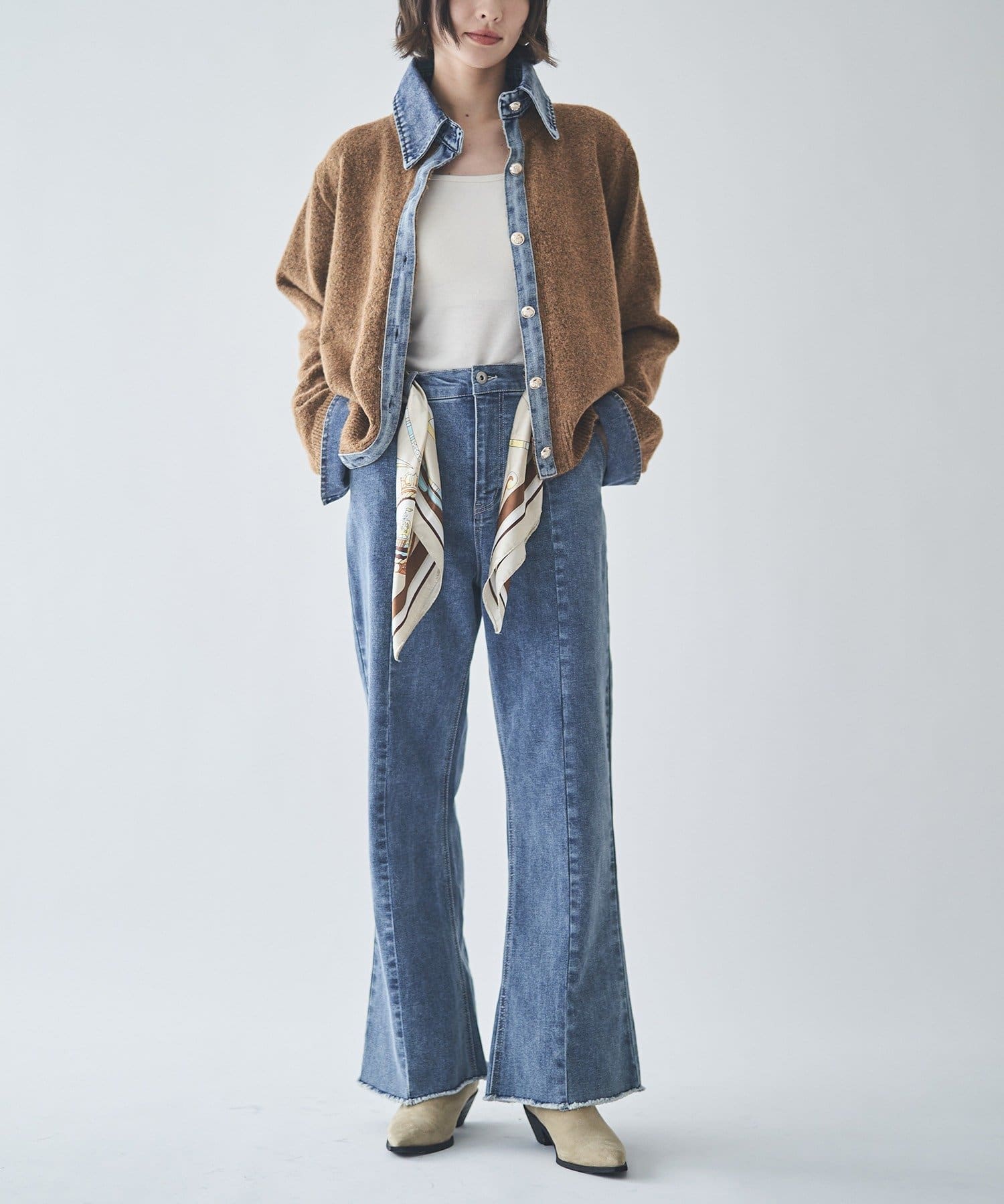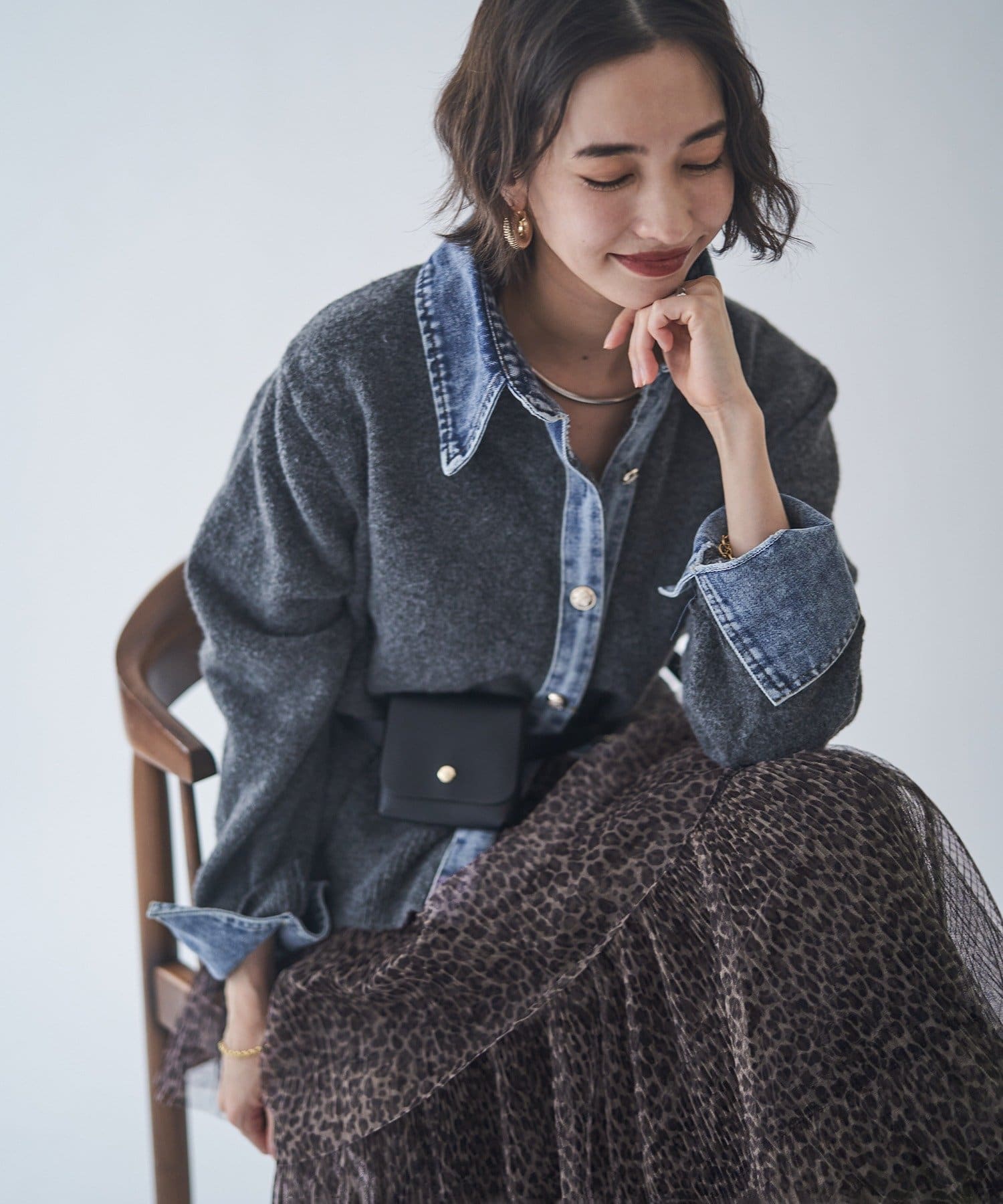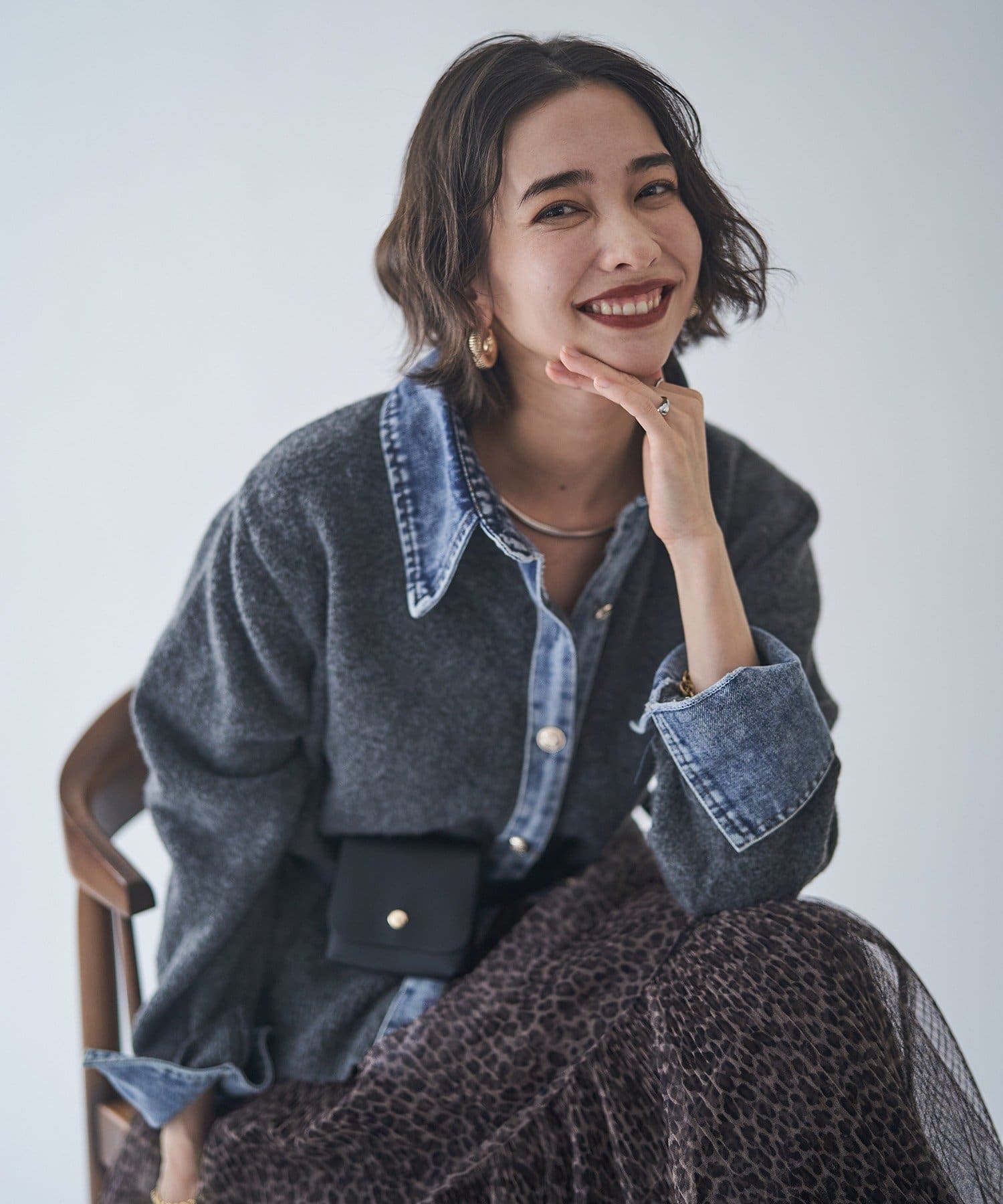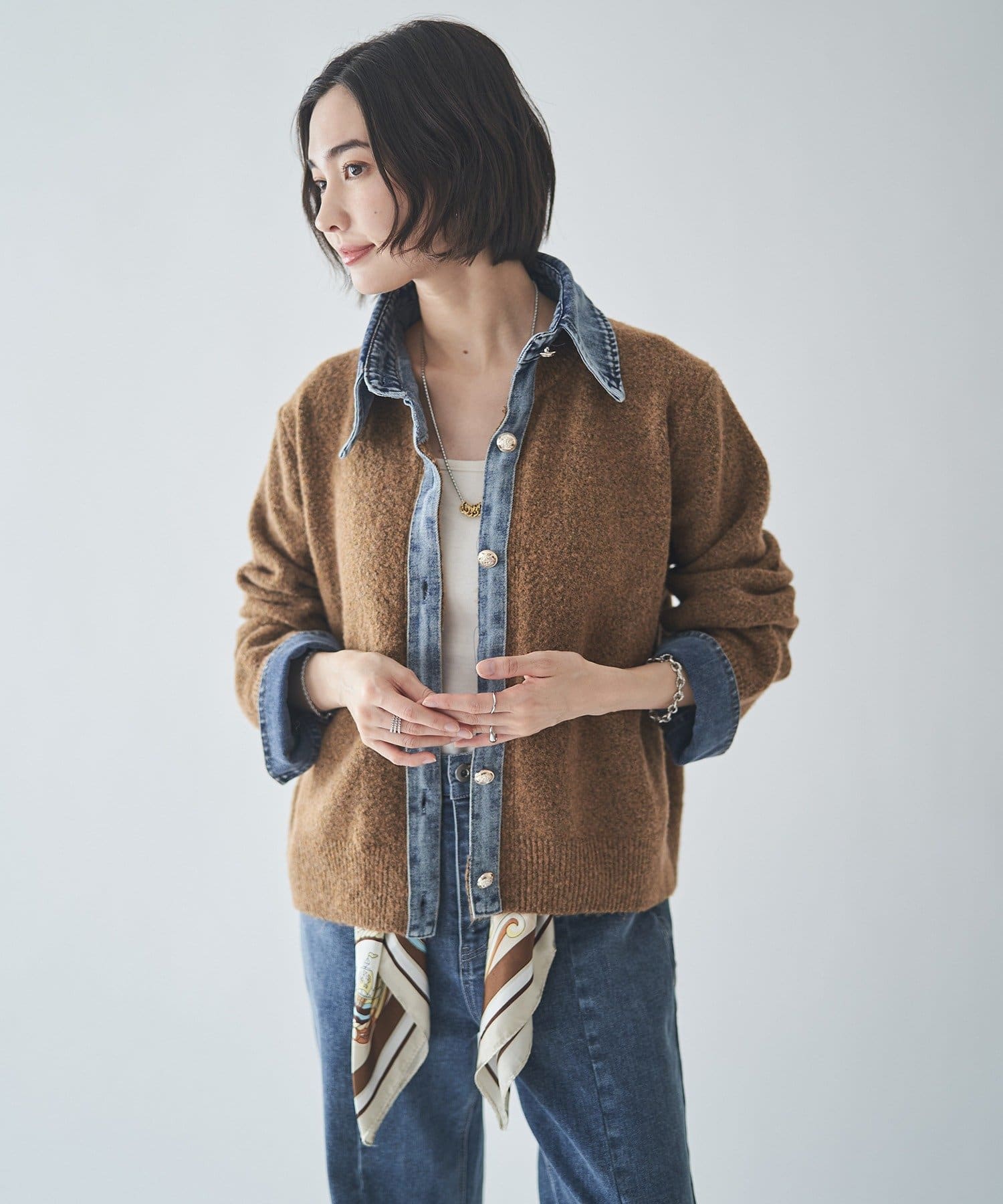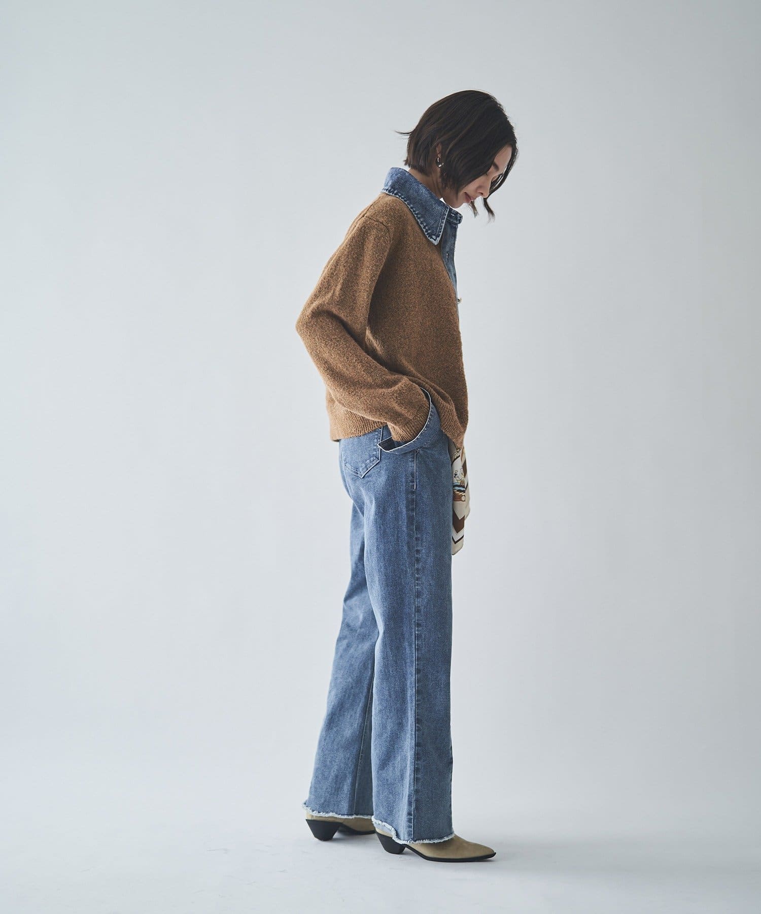 ・デニムは襟部分と袖口だけの仕様なので着心地はやわらかく、らくちん◎