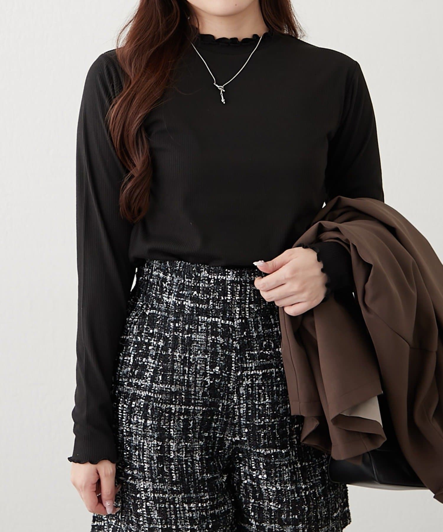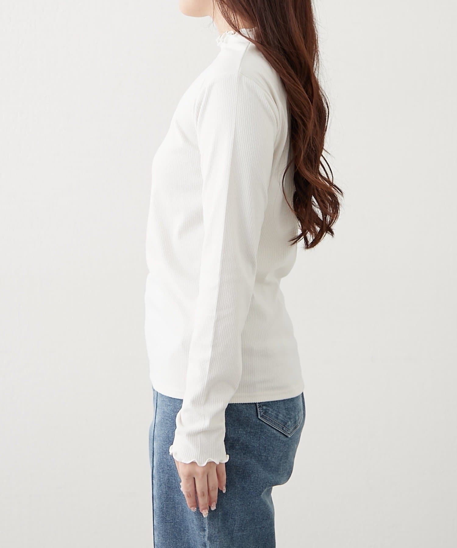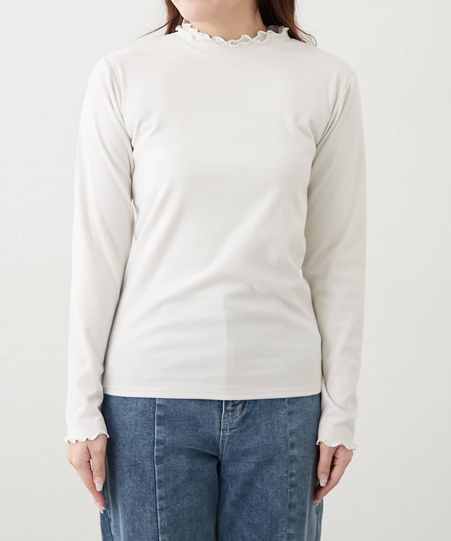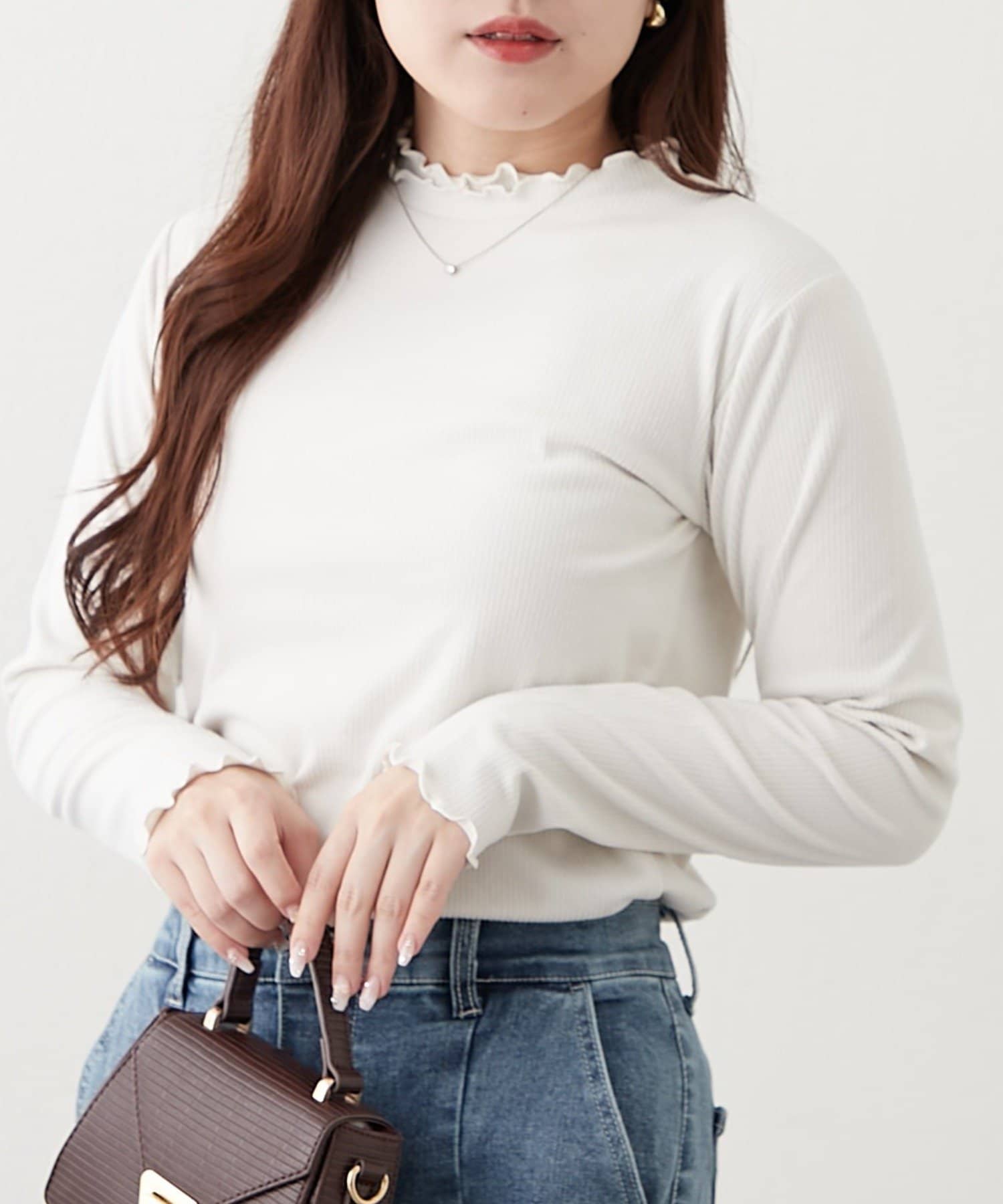 ・起毛で冬も暖かく着られるリブニットプルオーバー