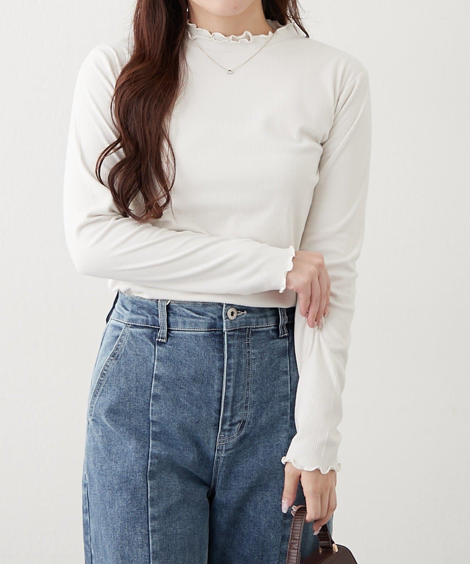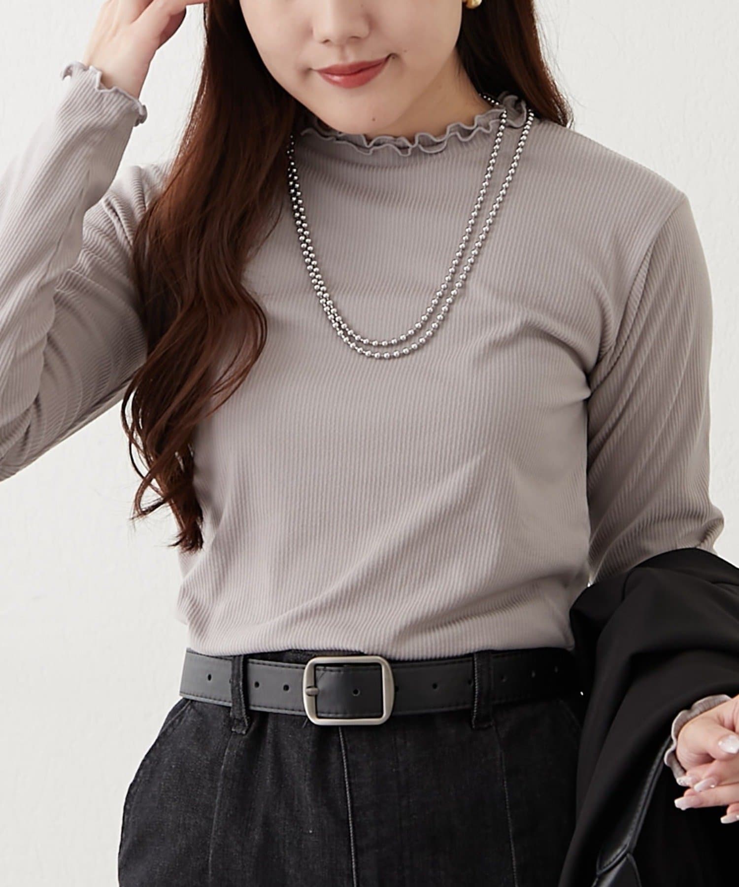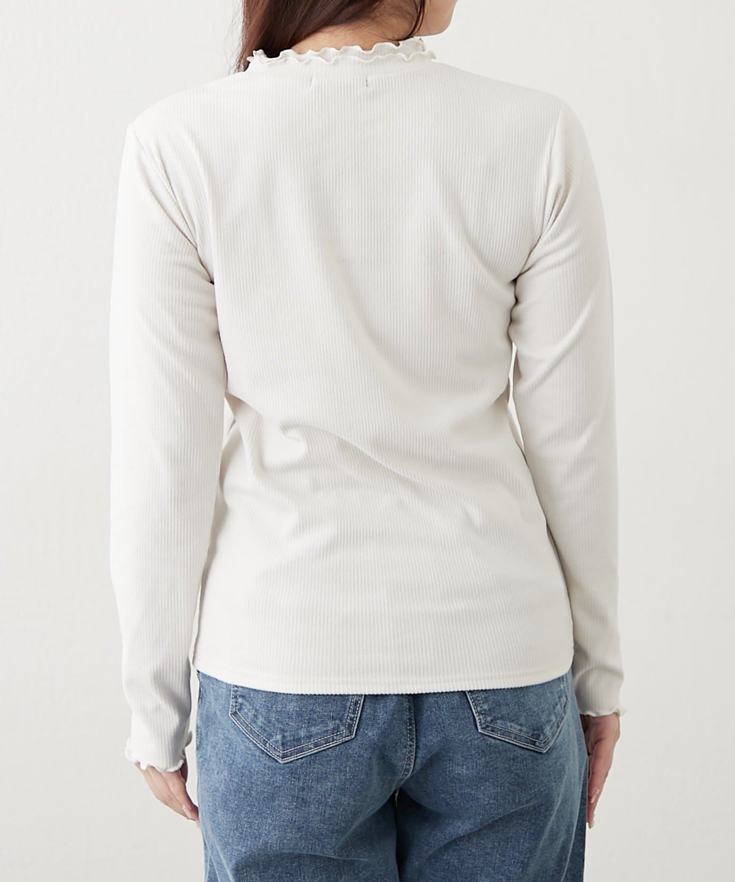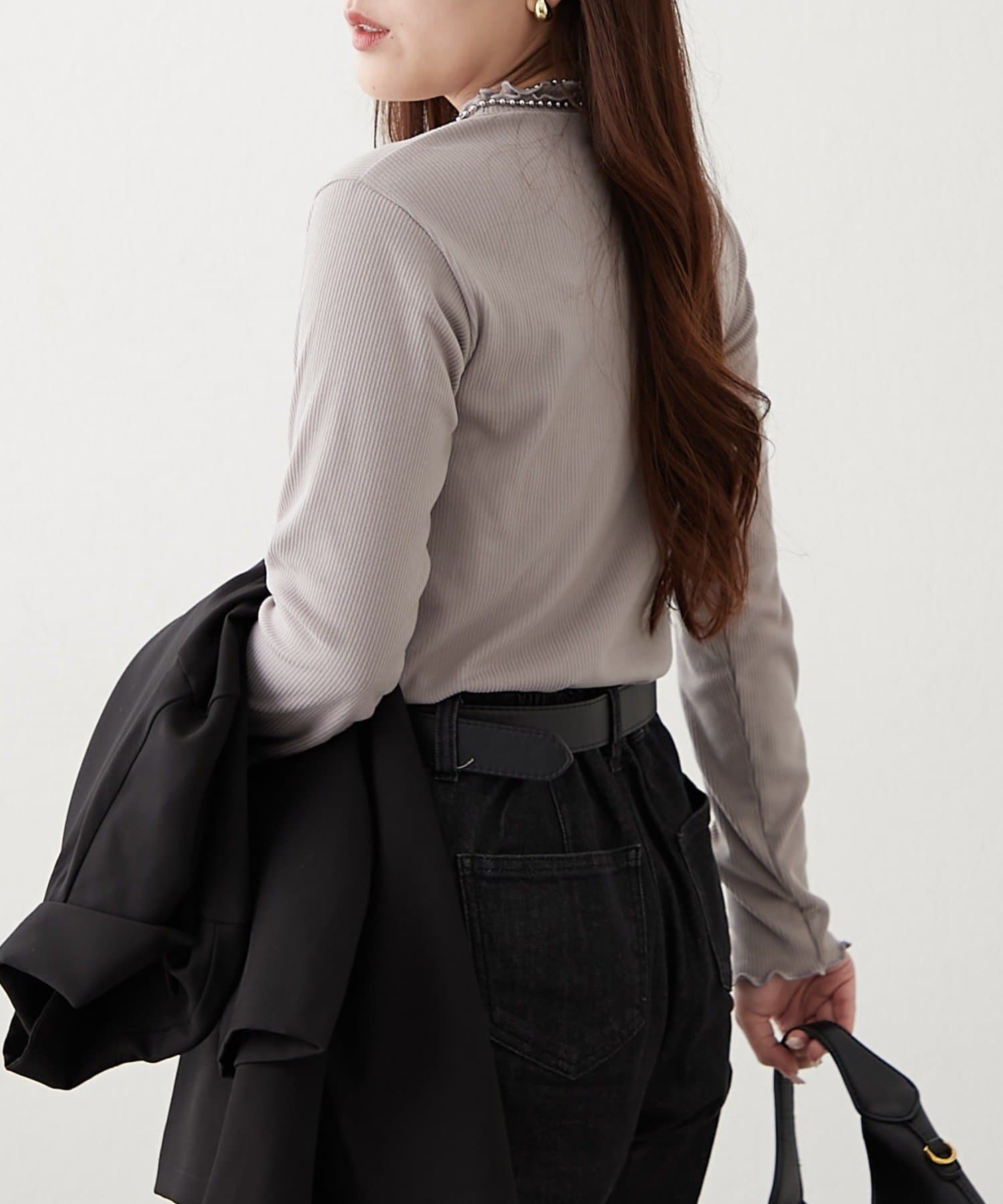 ・起毛で冬も暖かく着られるリブニットプルオーバー