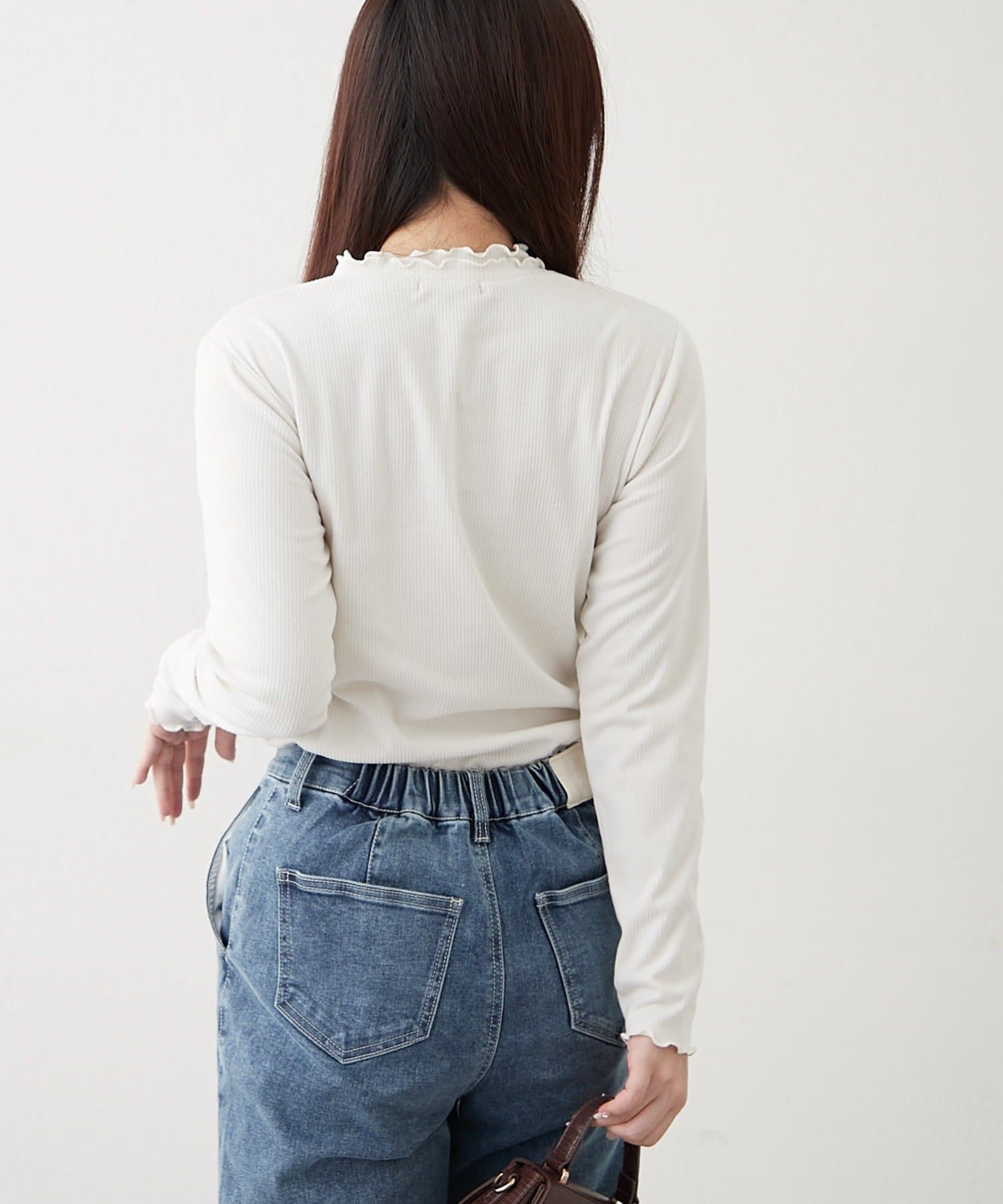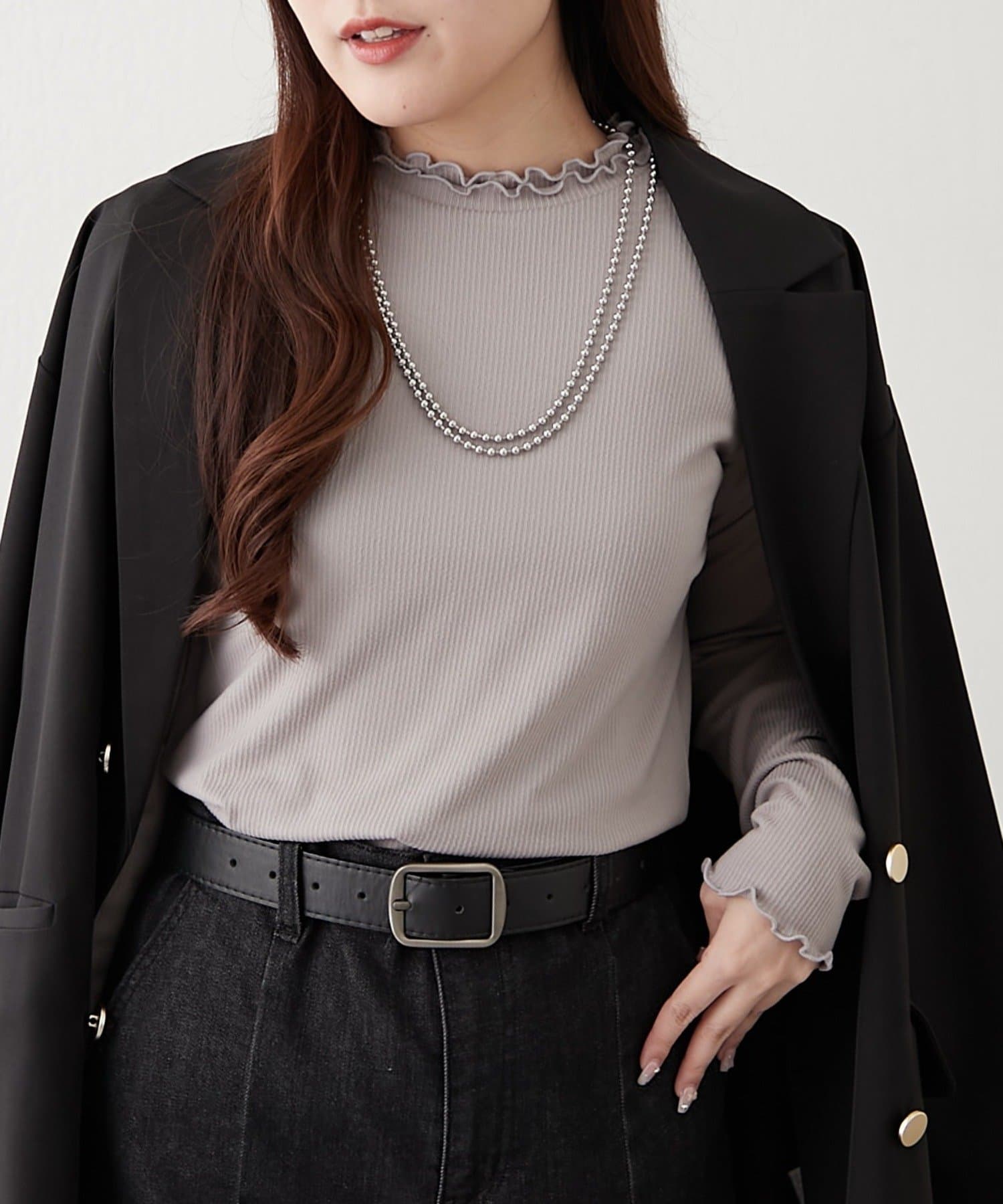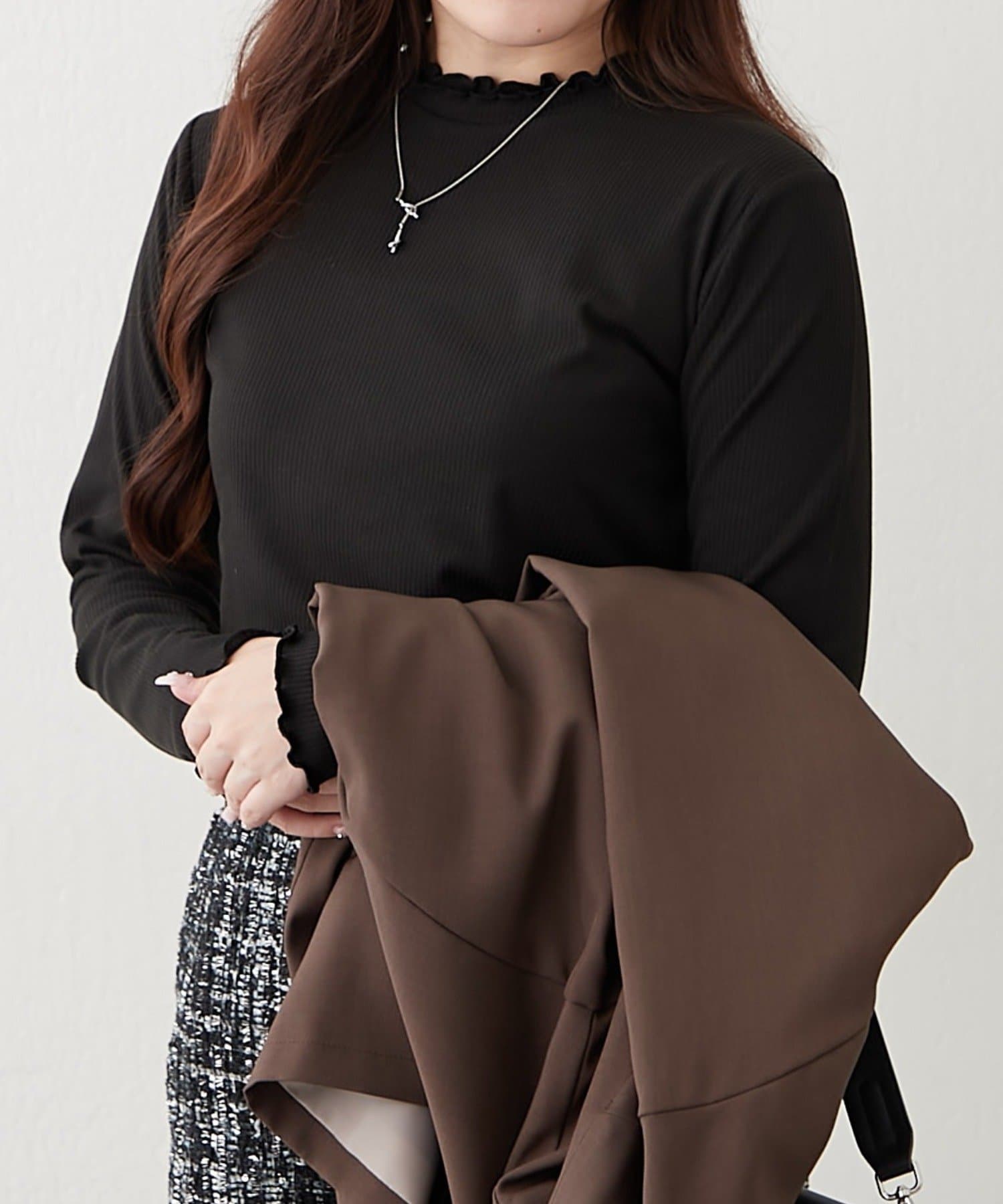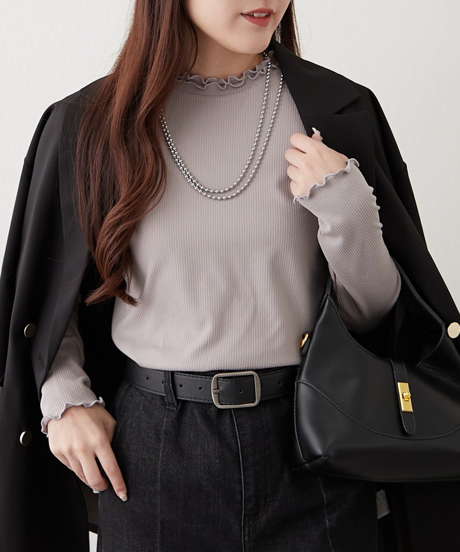 ・起毛で冬も暖かく着られるリブニットプルオーバー