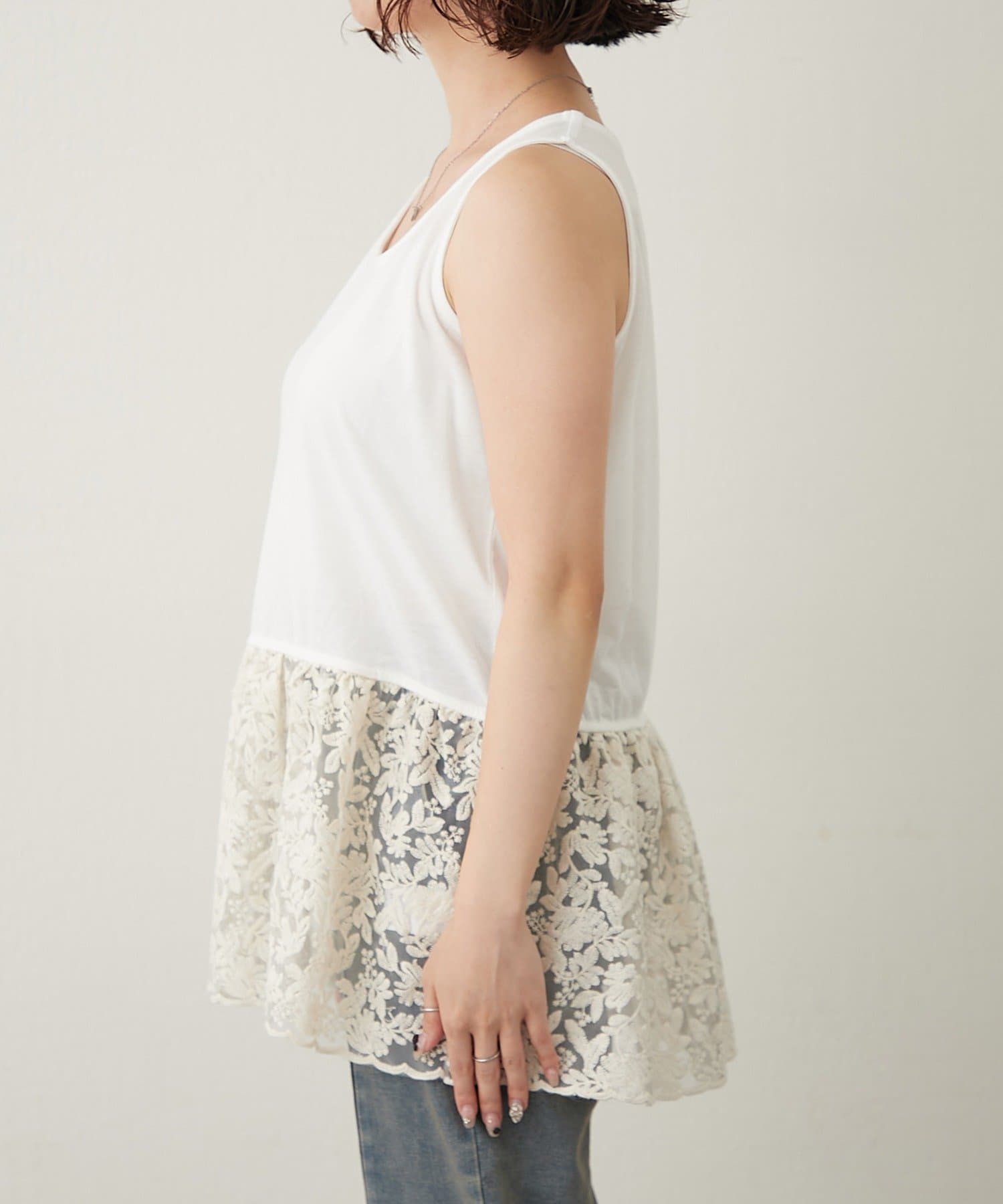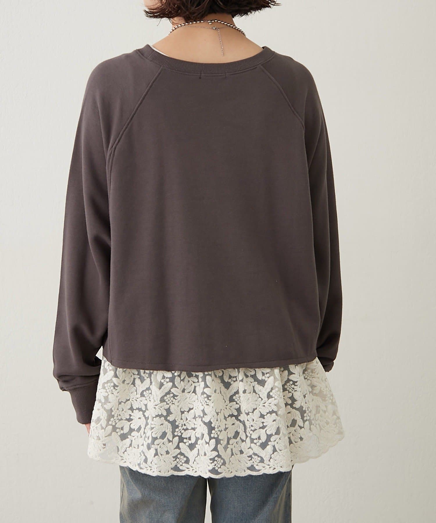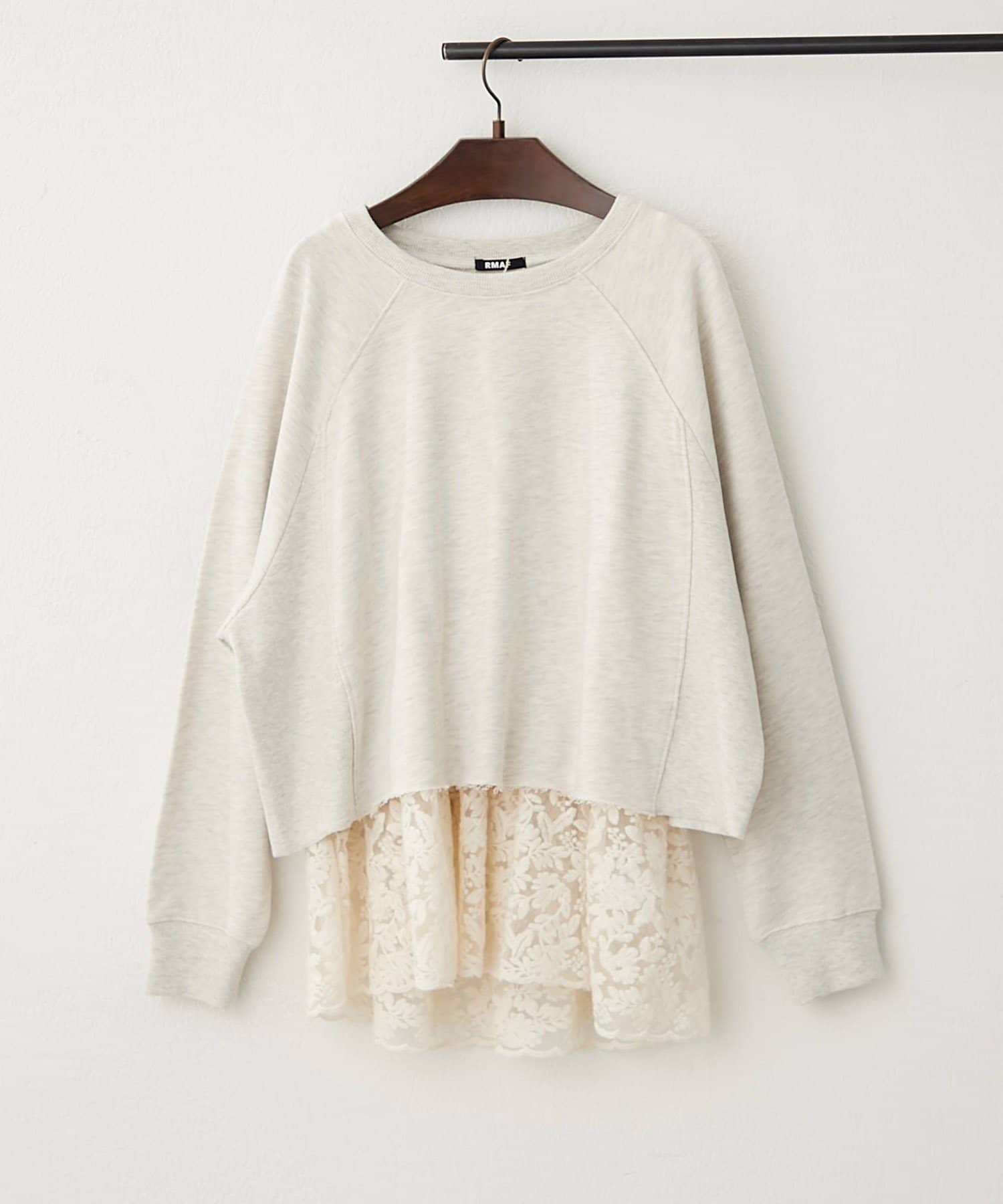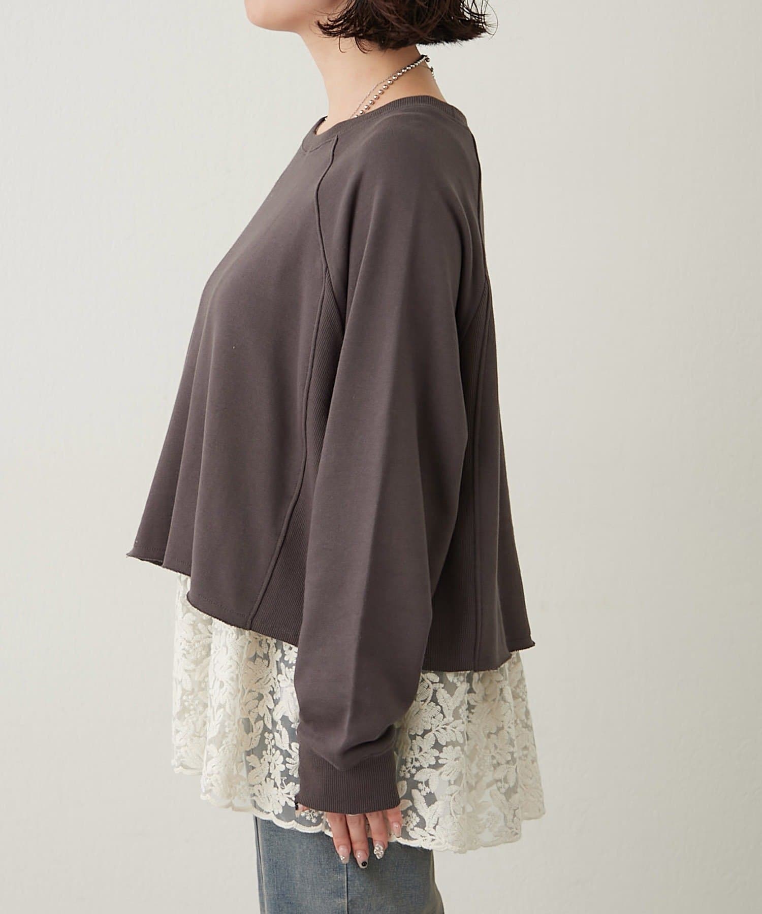 【2枚SET】裏毛トップス+レース切替ノースリーブ