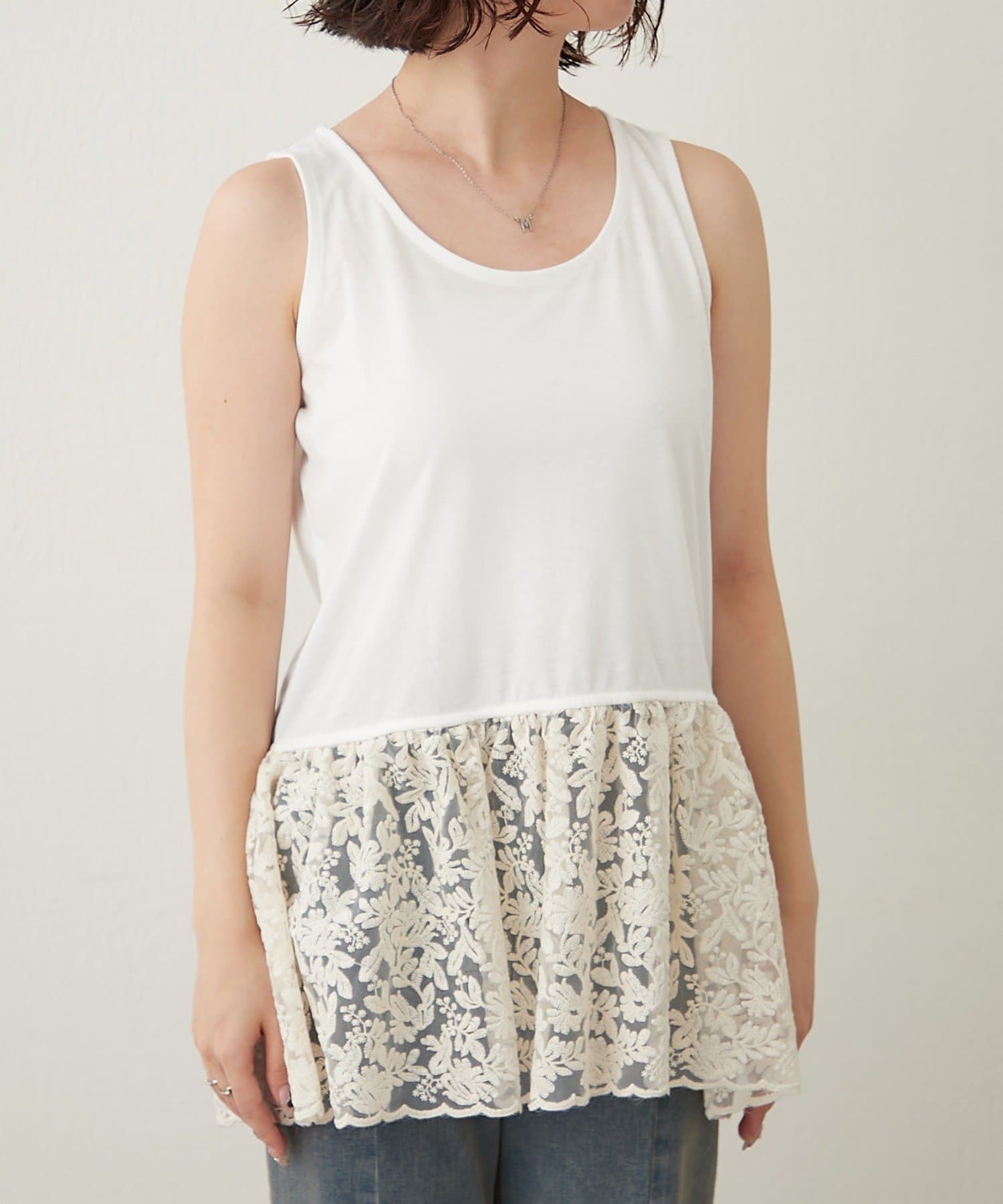 ・着回しやすいトップスと、トレンド感のある裾レースキャミがセットに