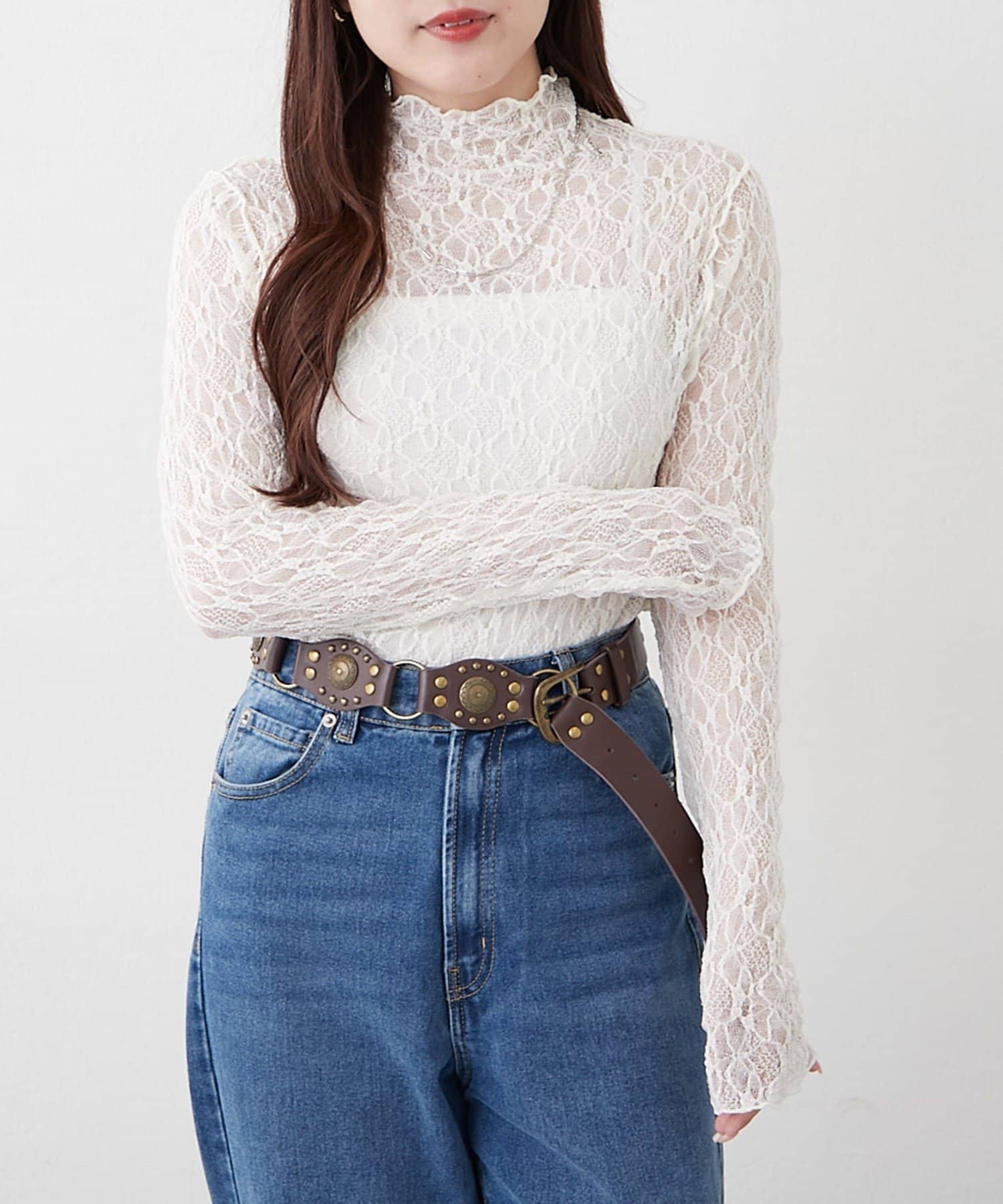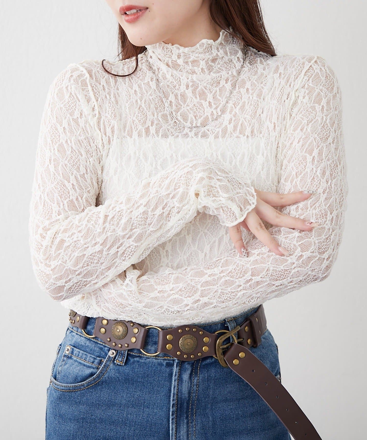 ・レイヤードコーデにぴったりな総レースプルオーバー