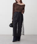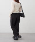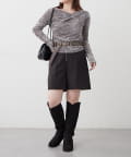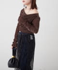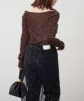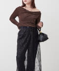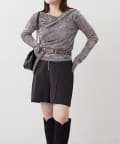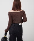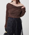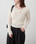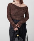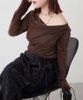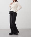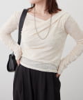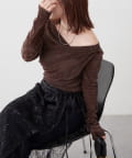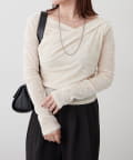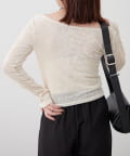 ・ ネックラインの開きが広めなのでワンショル風な着こなしもおすすめ