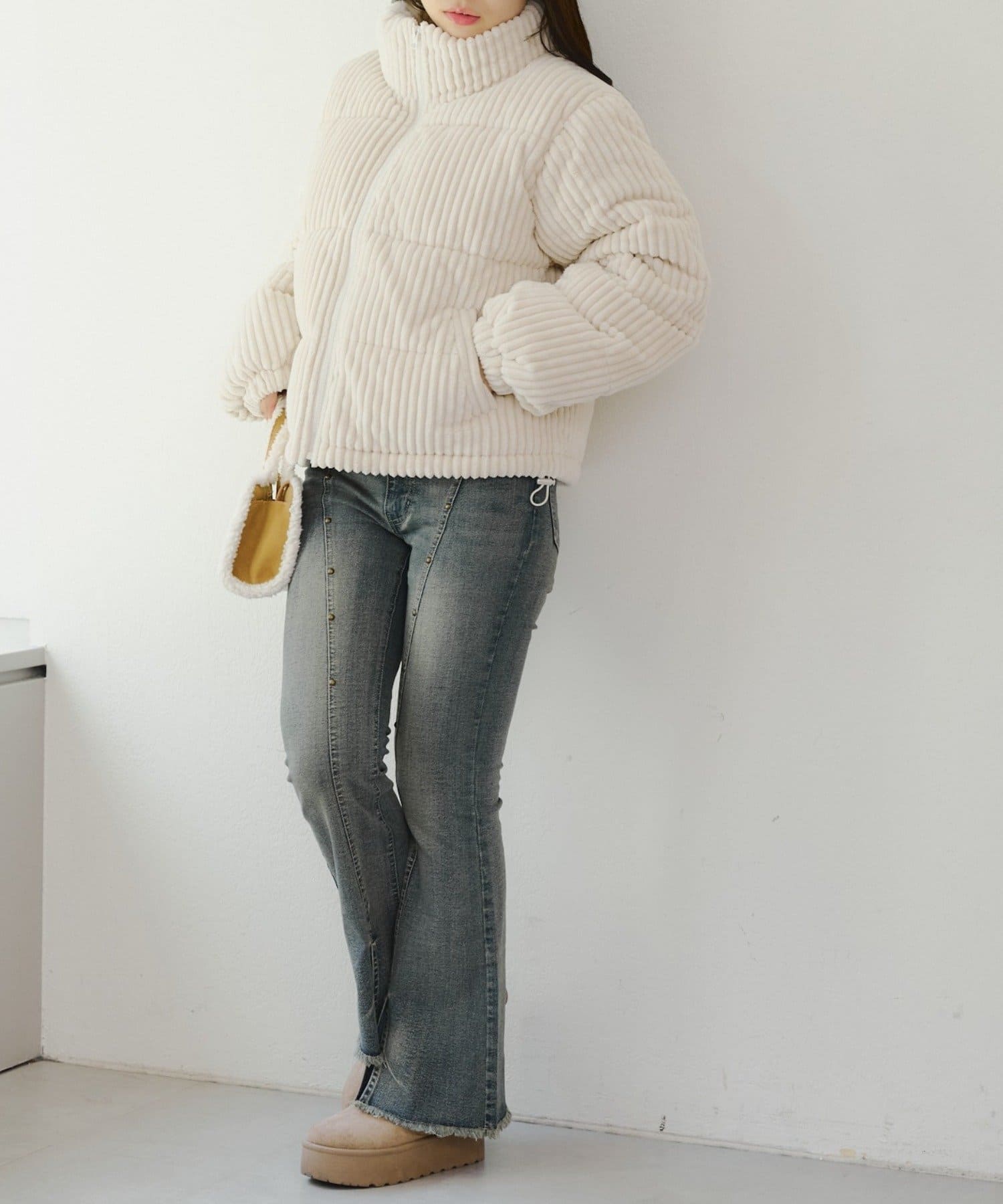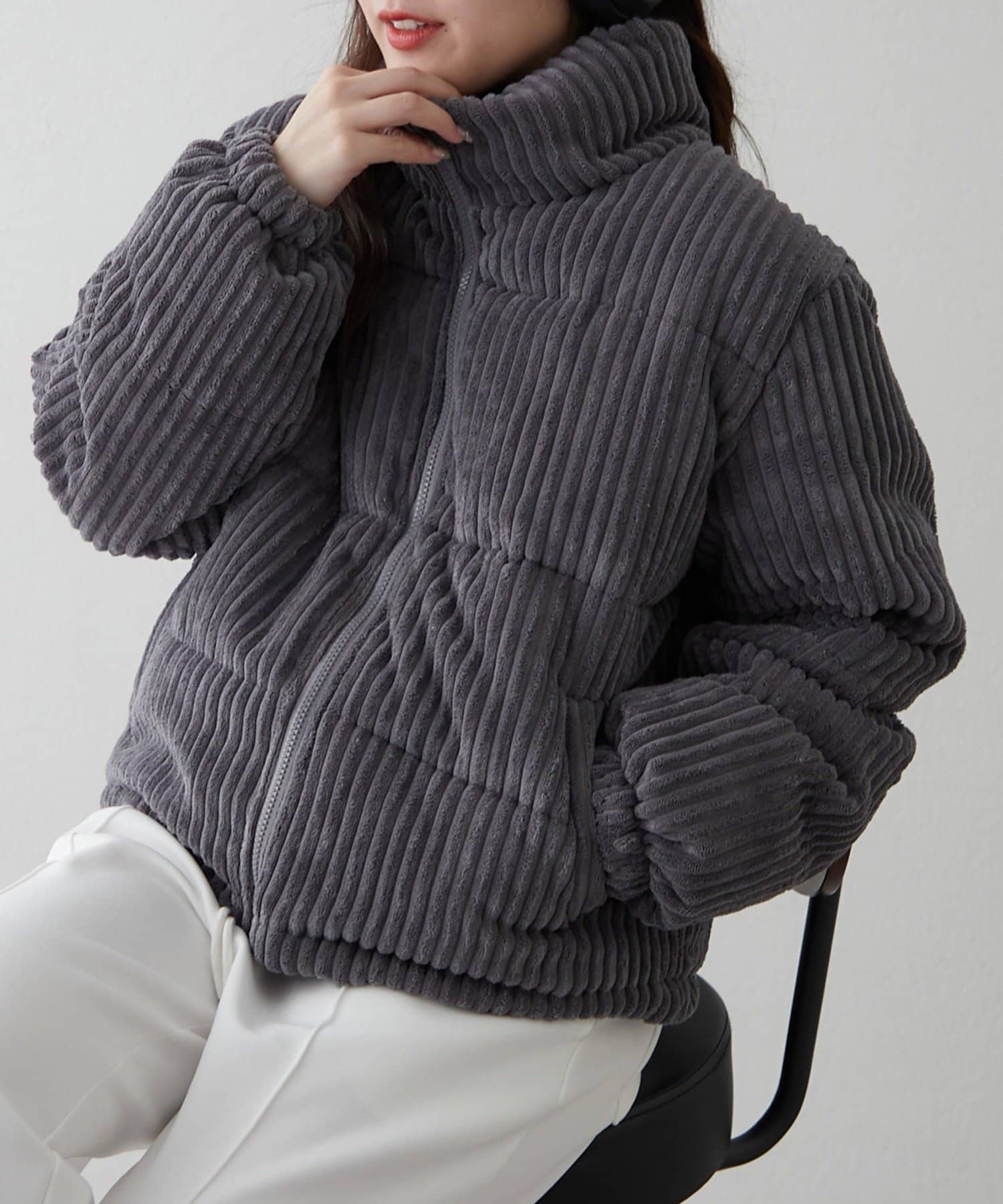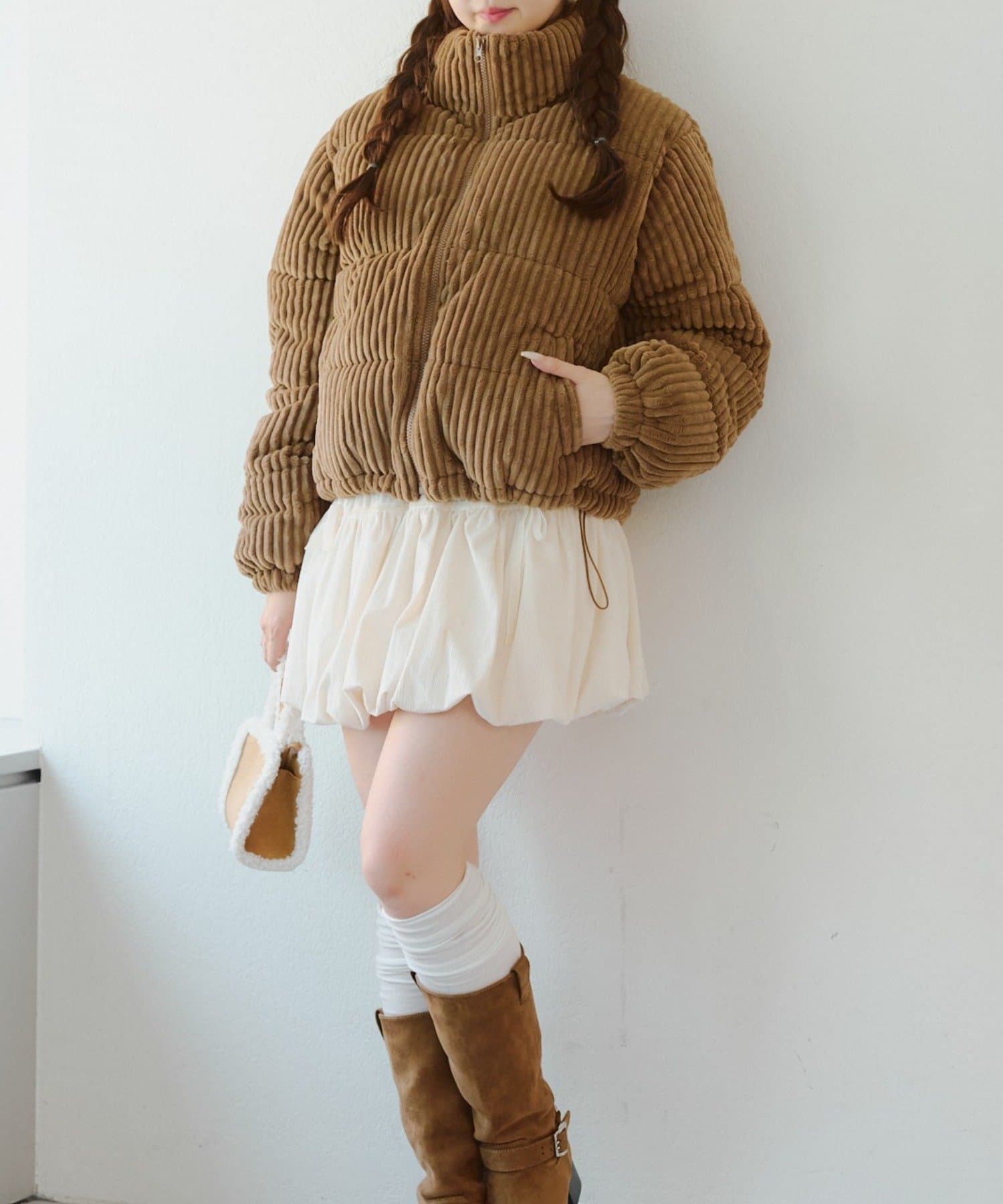 ・ボリューム感のあるデザインと、太めコーデュロイ素材がシーズンムードを演出