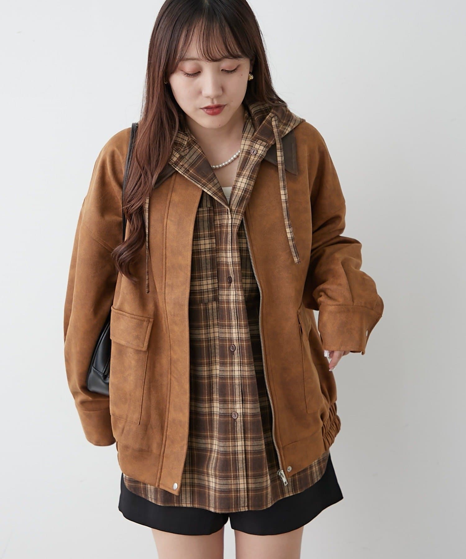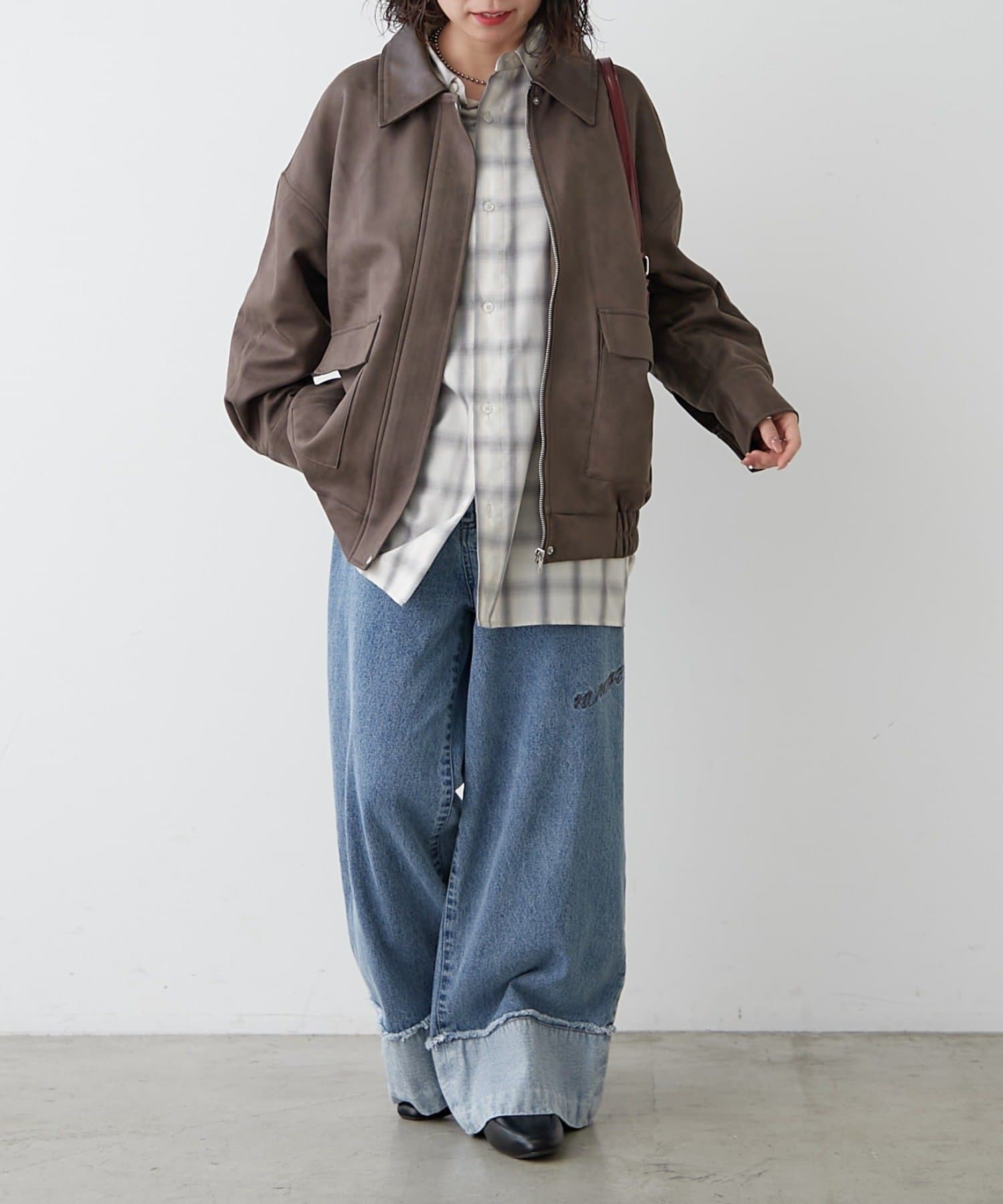 ・チェック柄シャツ合わせでカジュアルなムード高まる秋コーデ