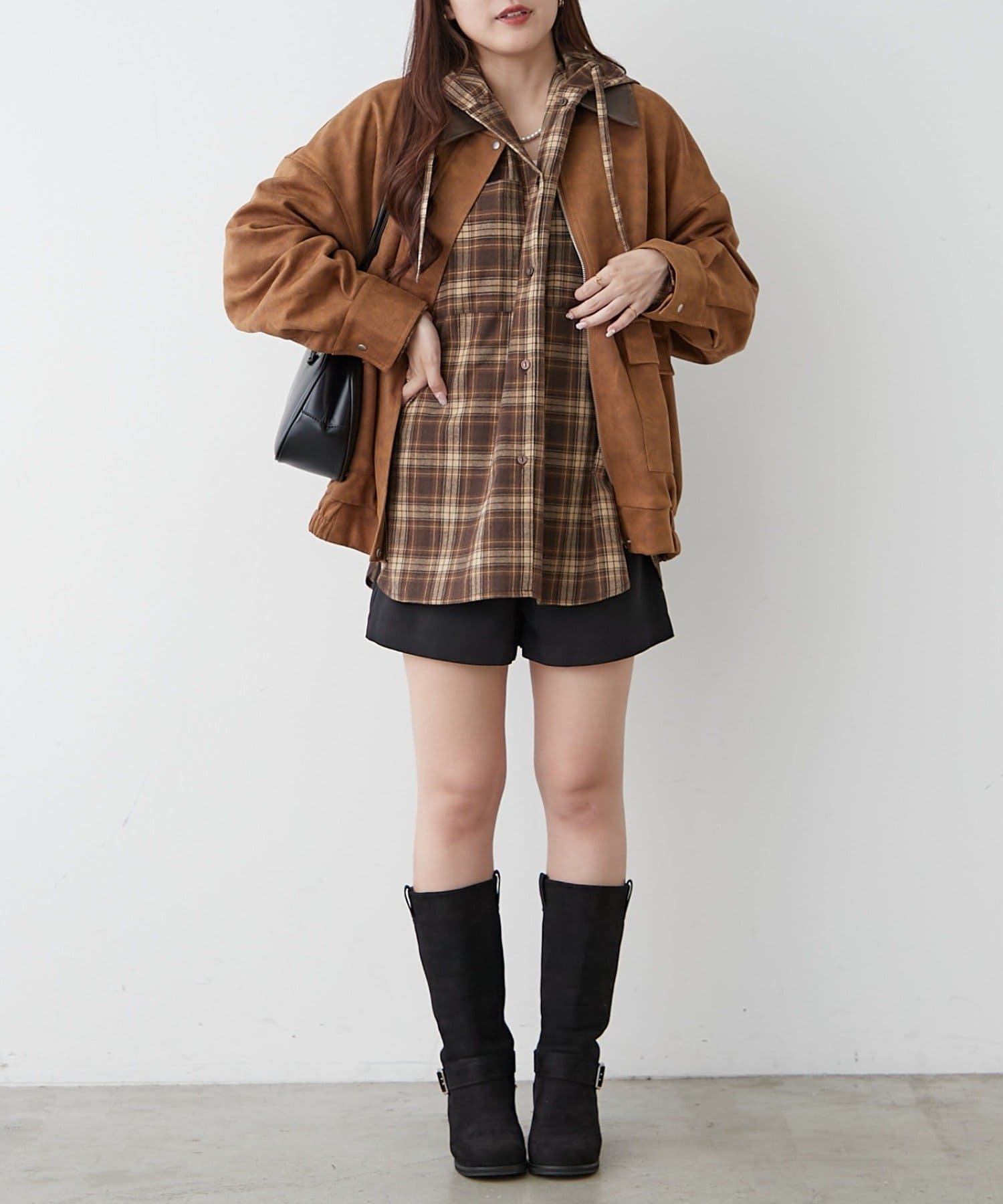 ・ミニスカにロングブーツのガーリーな着こなしにも相性抜群◎