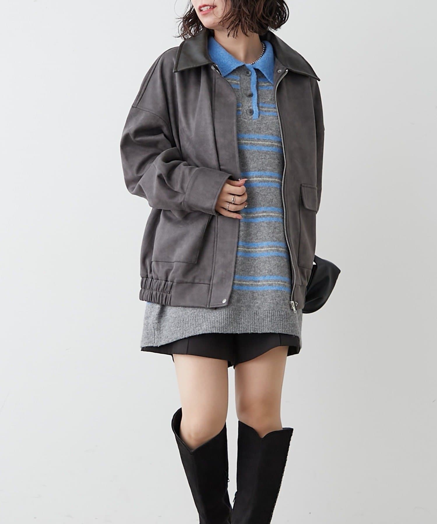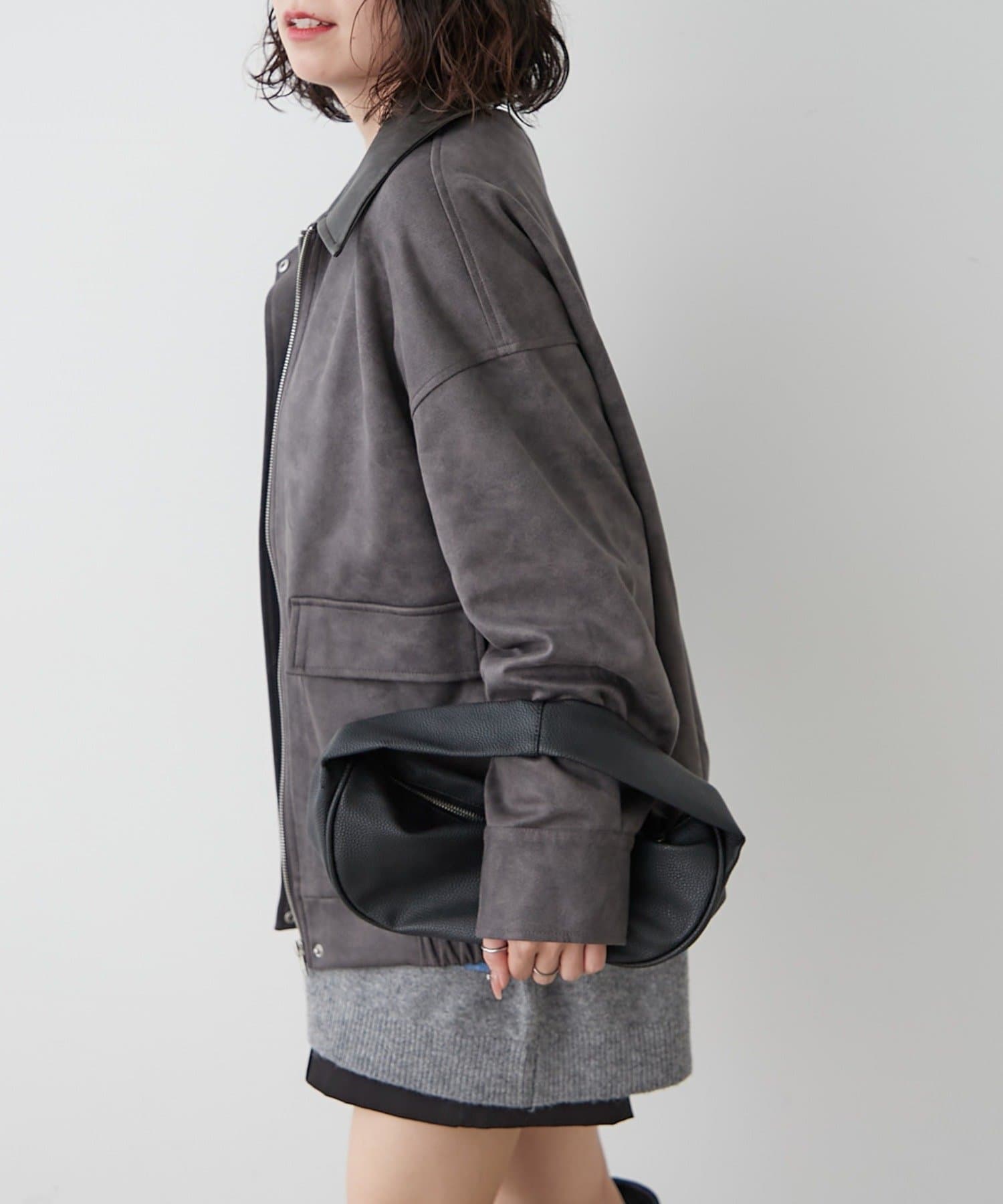 衿合皮ステンカラーブルゾン