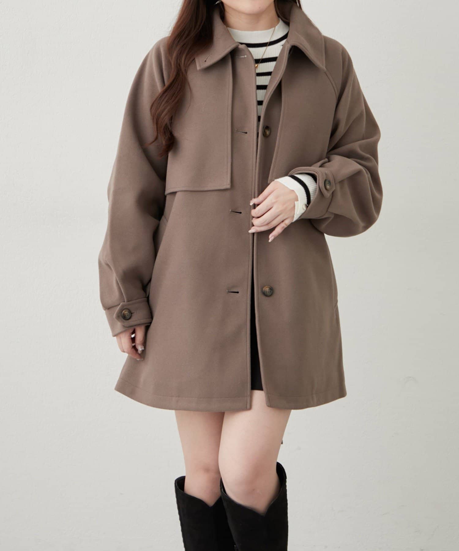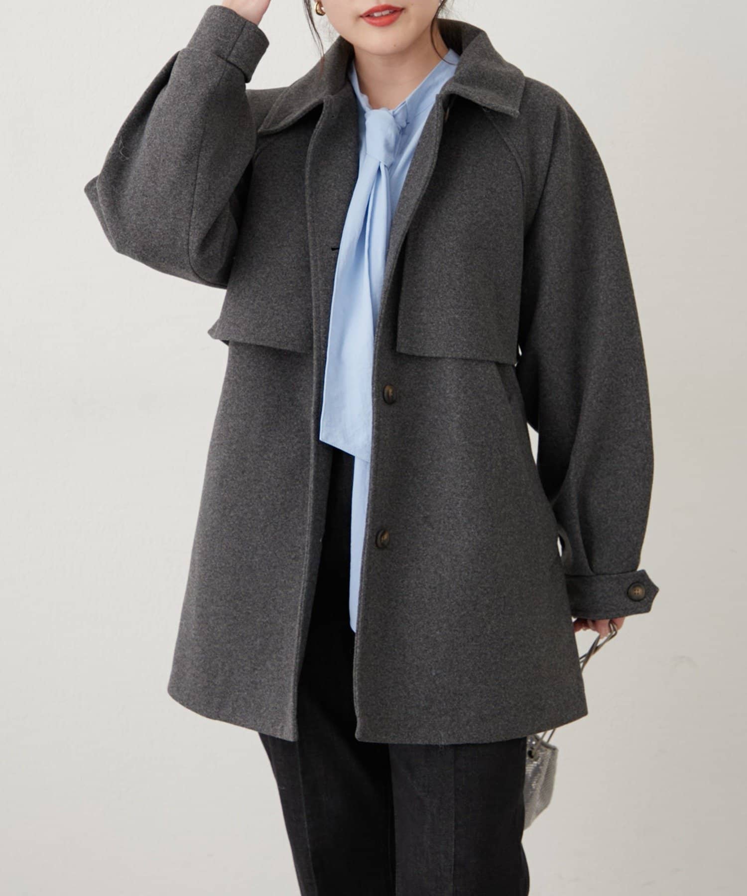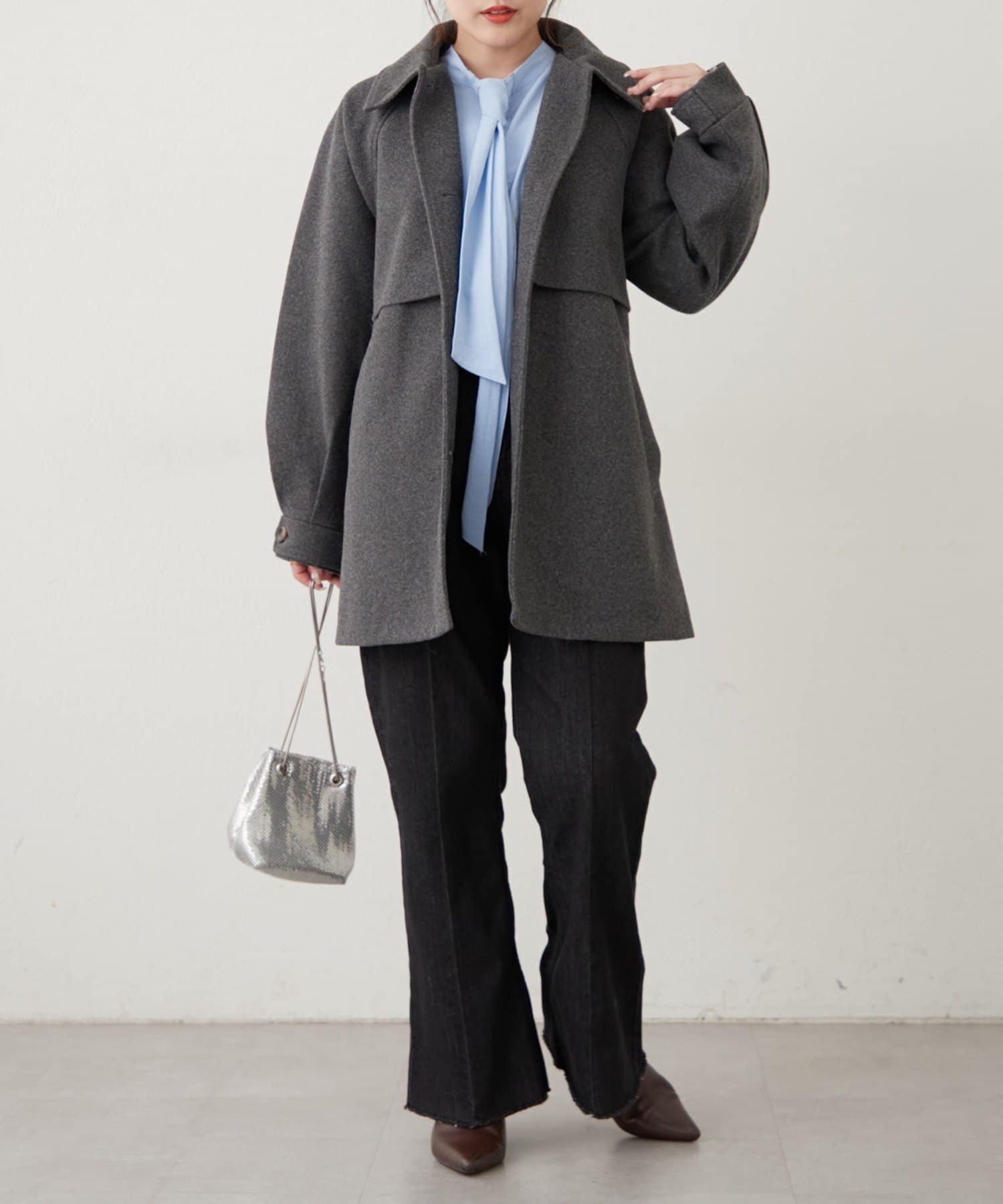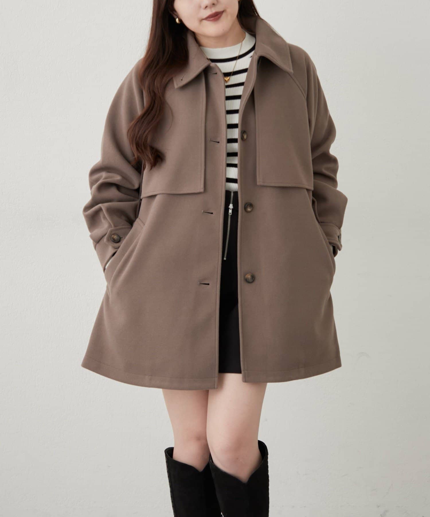 ・襟アレンジで印象を変えて楽しめるミドル丈コート