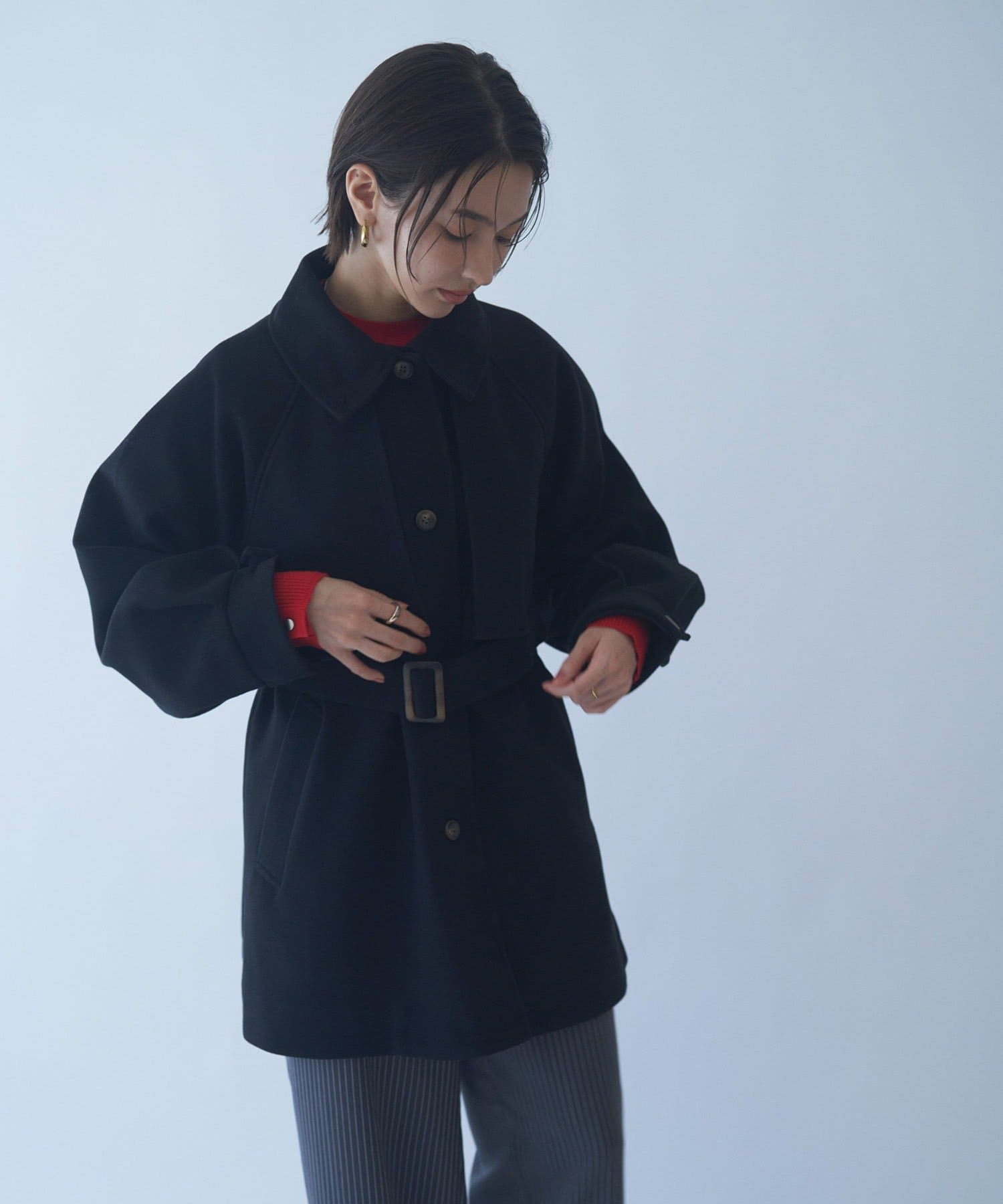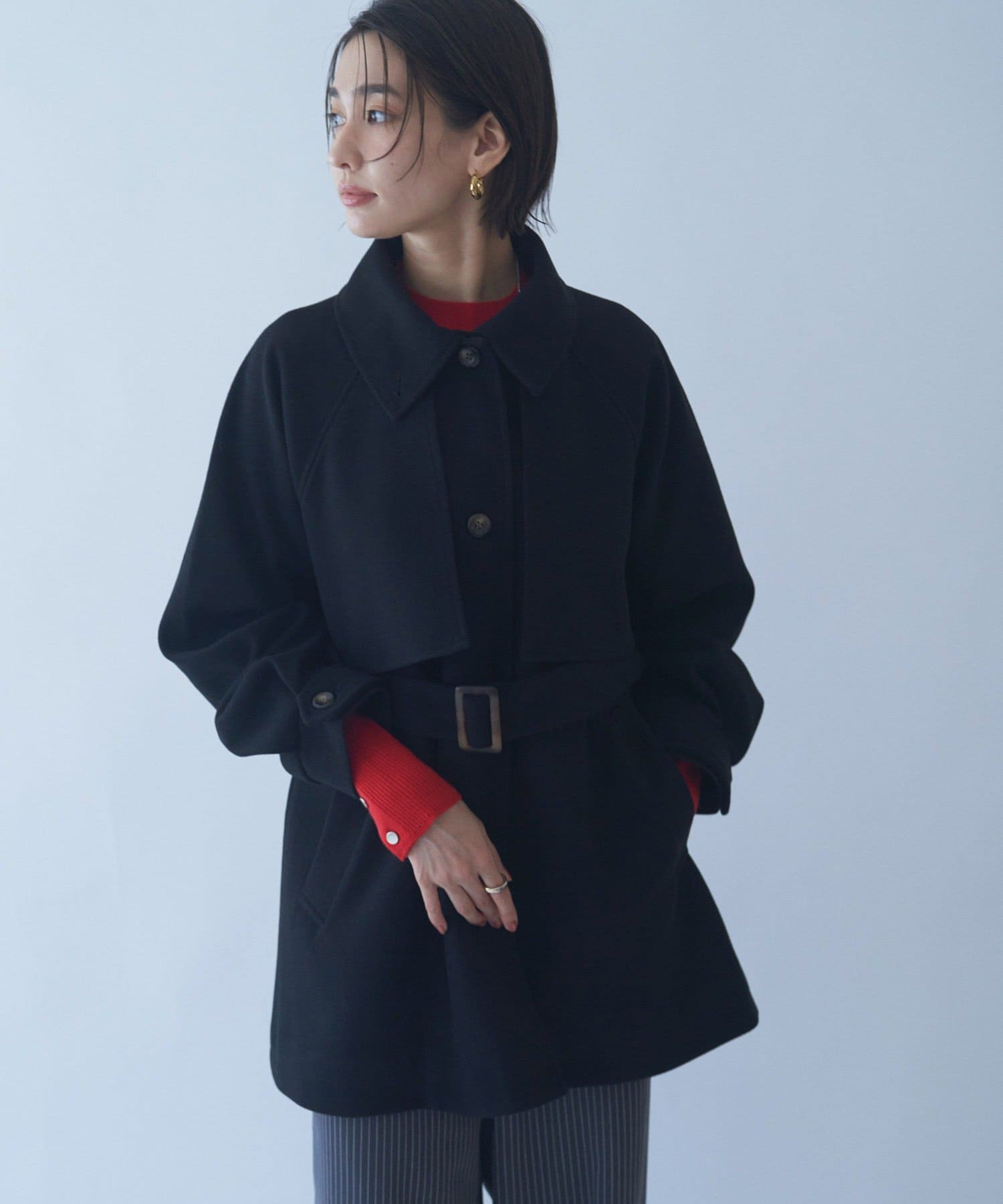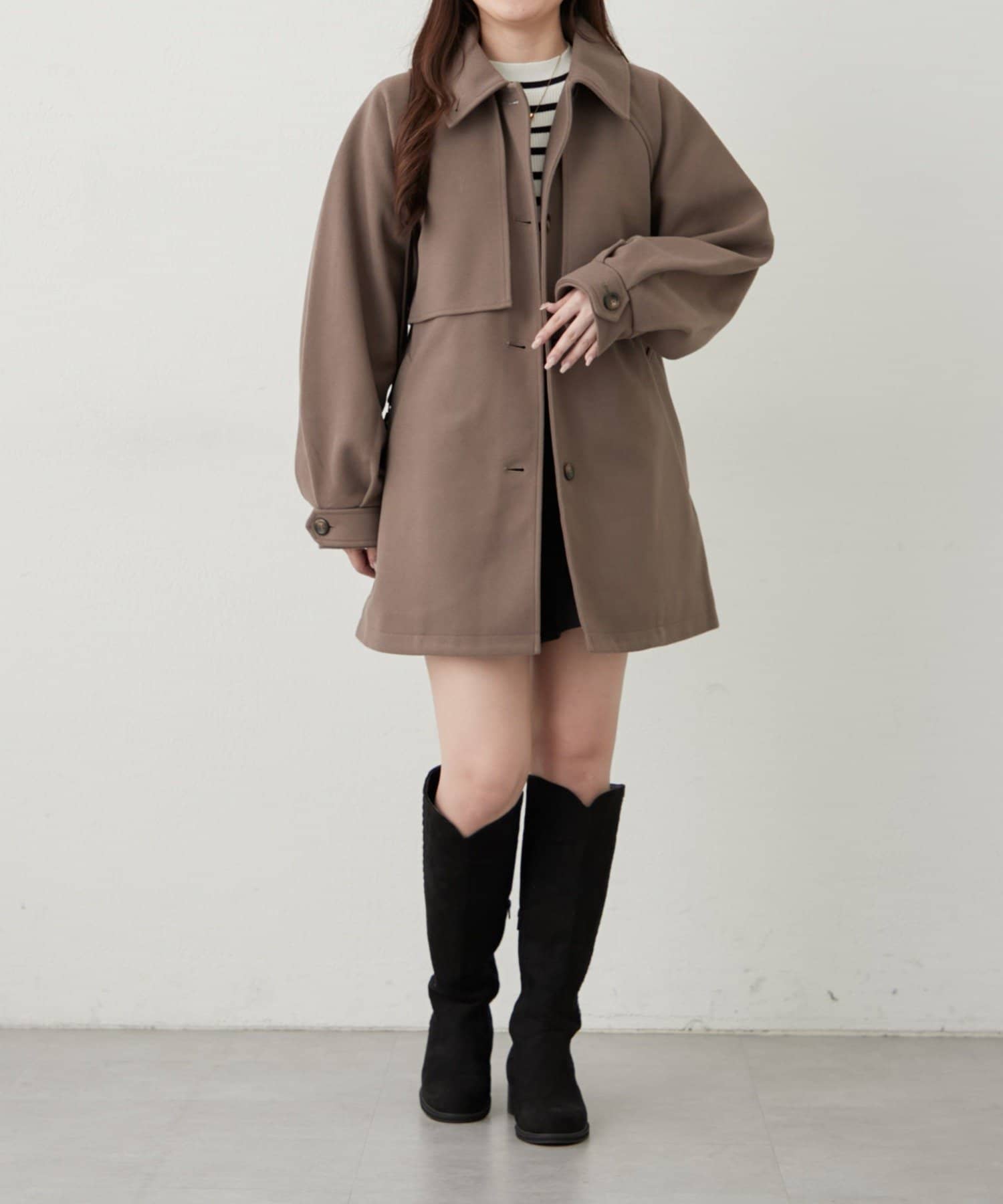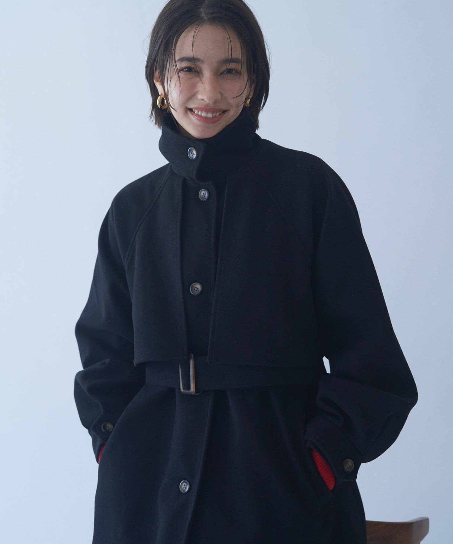 ・襟アレンジで印象を変えて楽しめるミドル丈コート