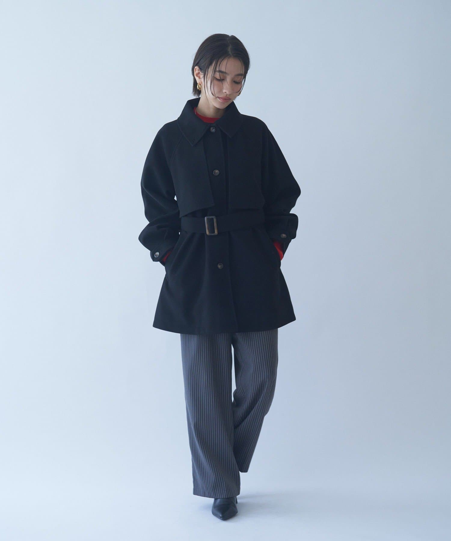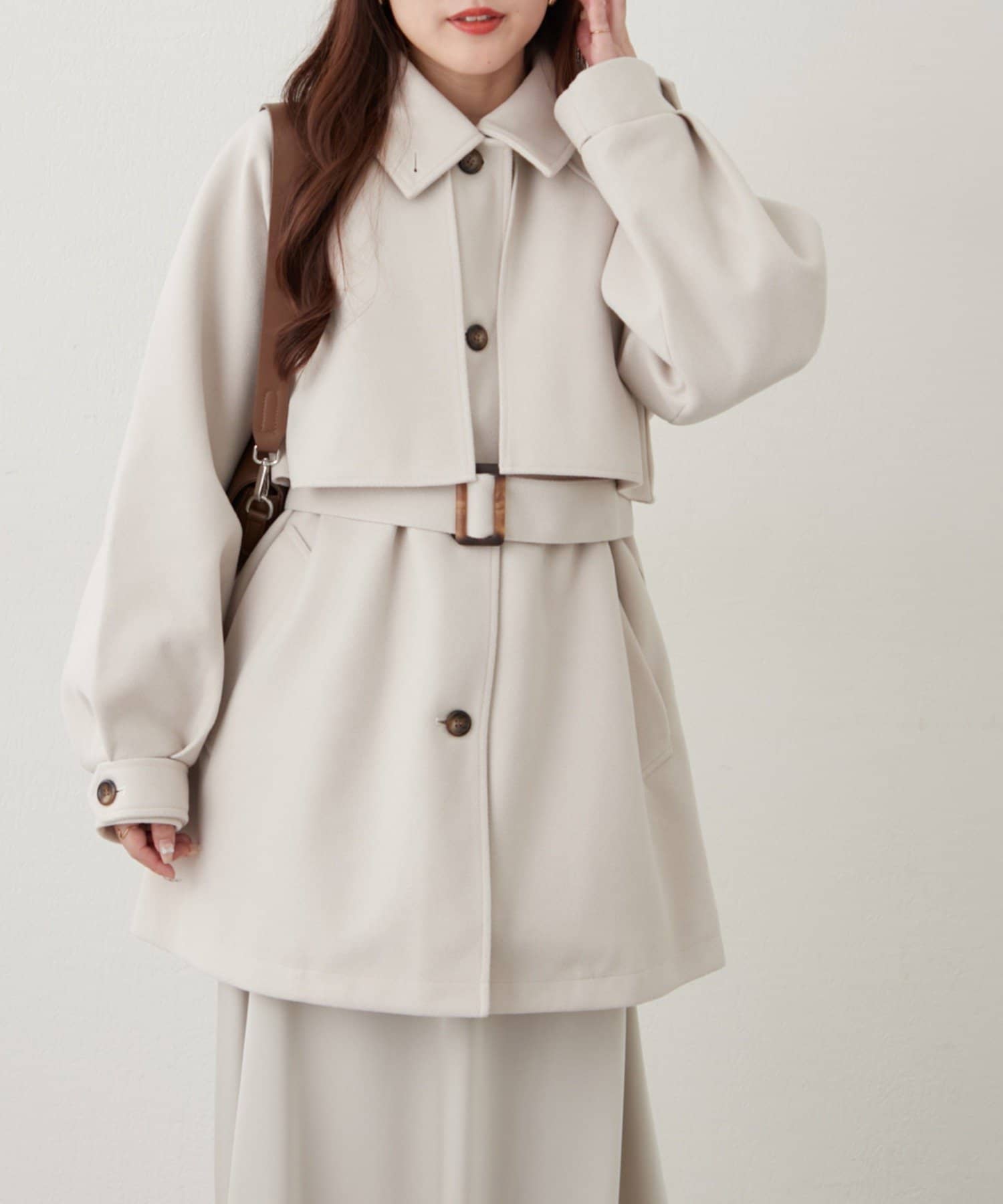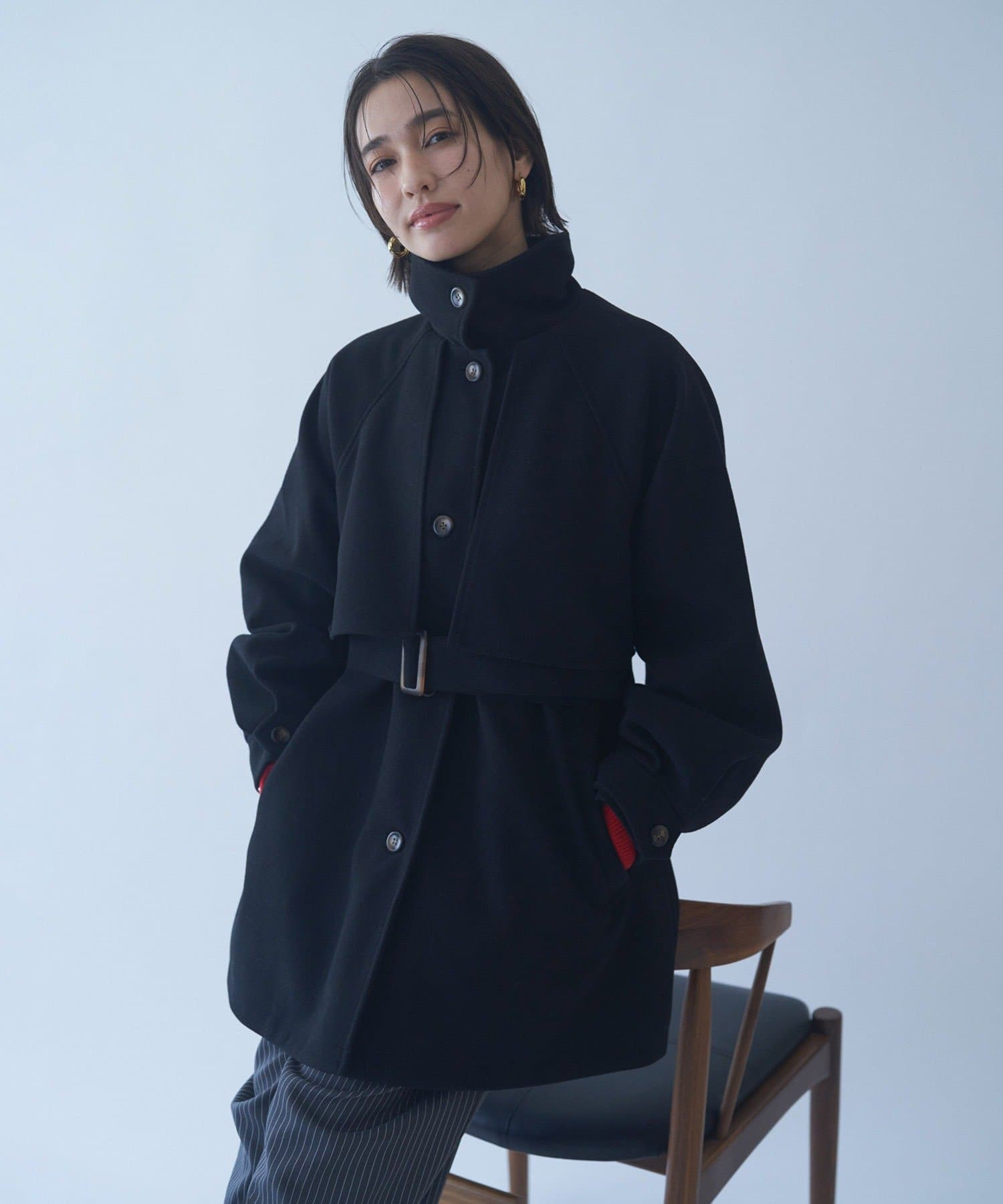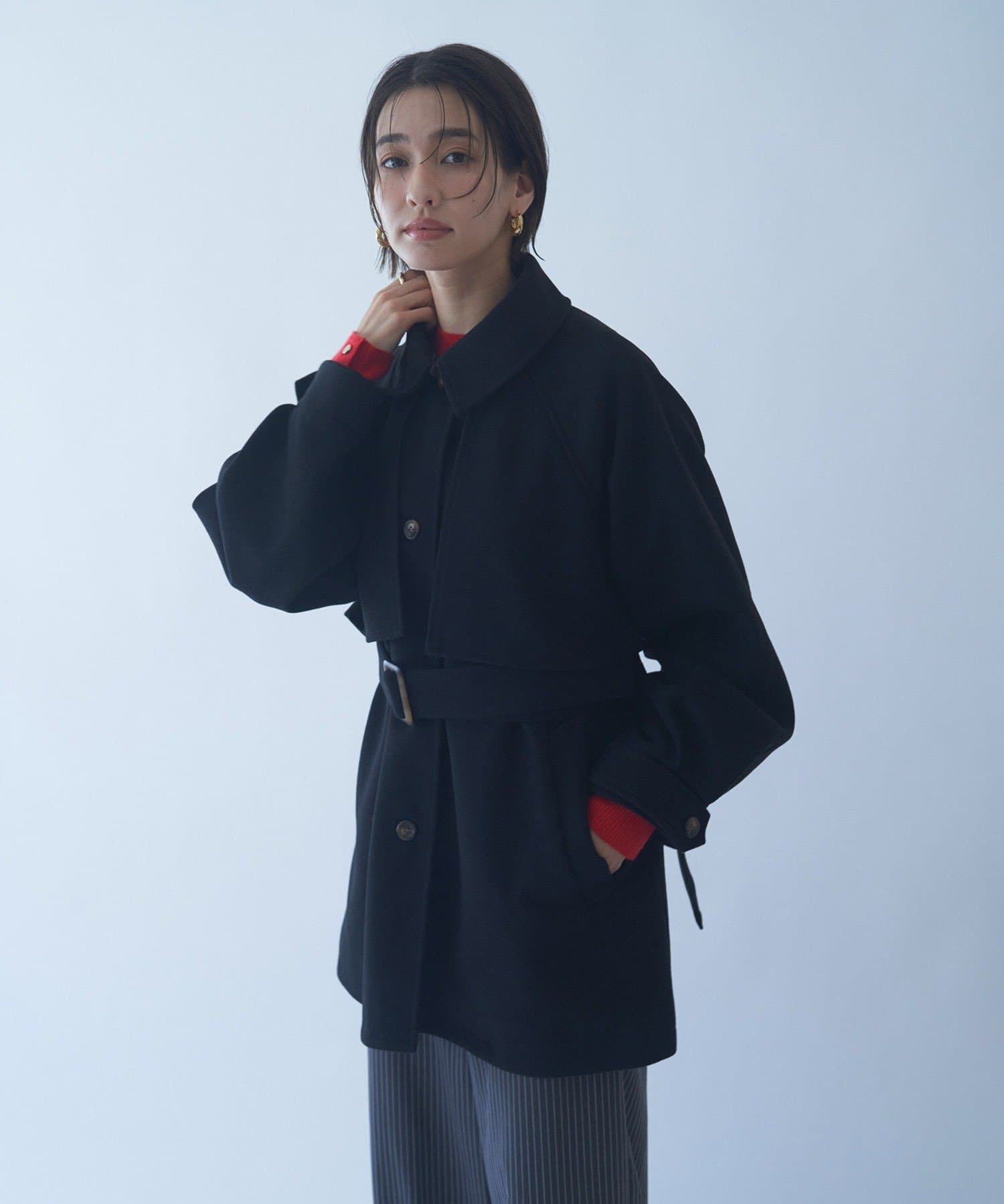 ・襟アレンジで印象を変えて楽しめるミドル丈コート
