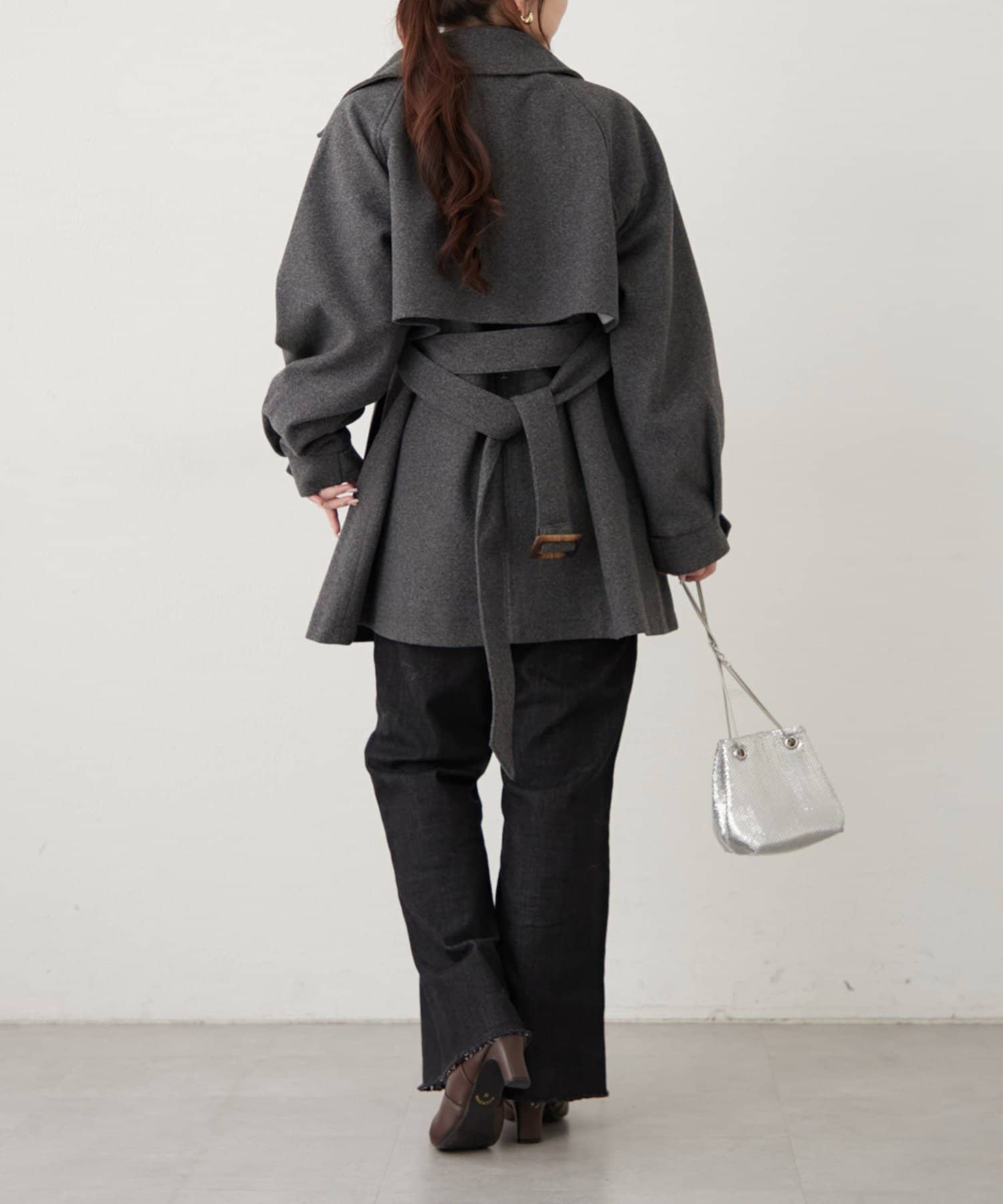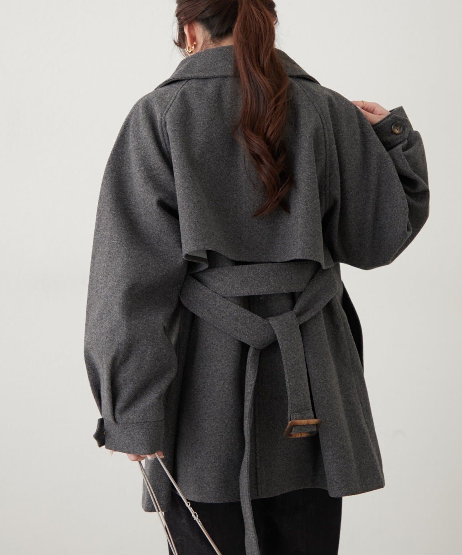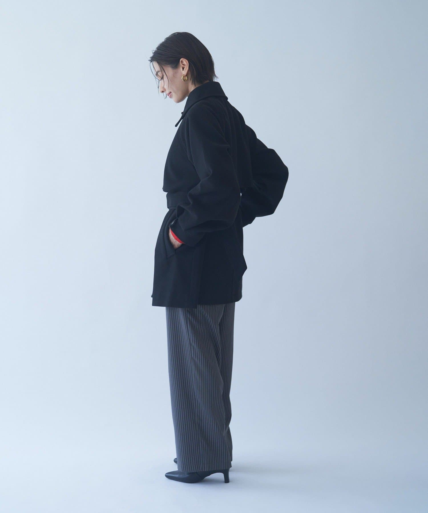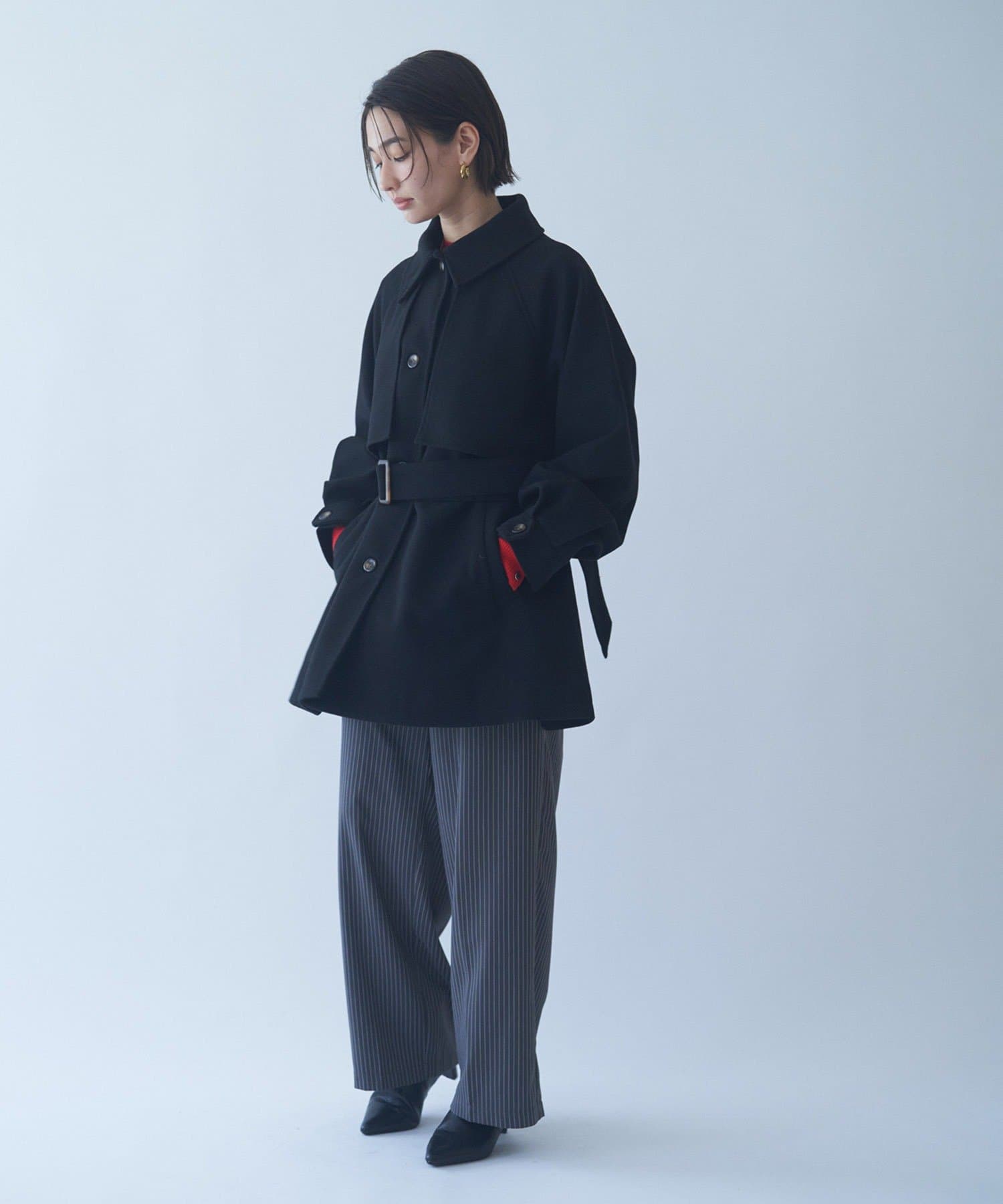 ・襟アレンジで印象を変えて楽しめるミドル丈コート