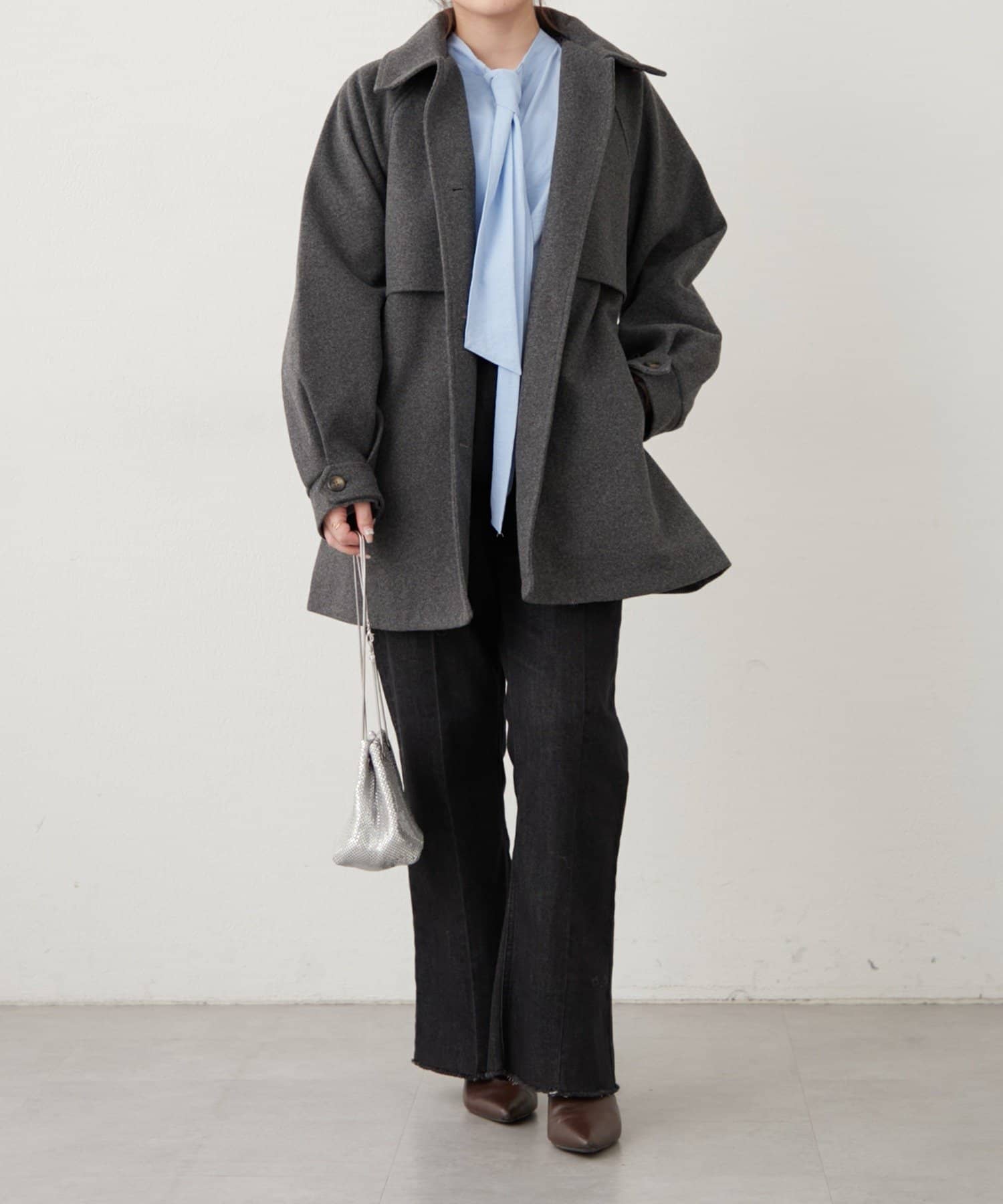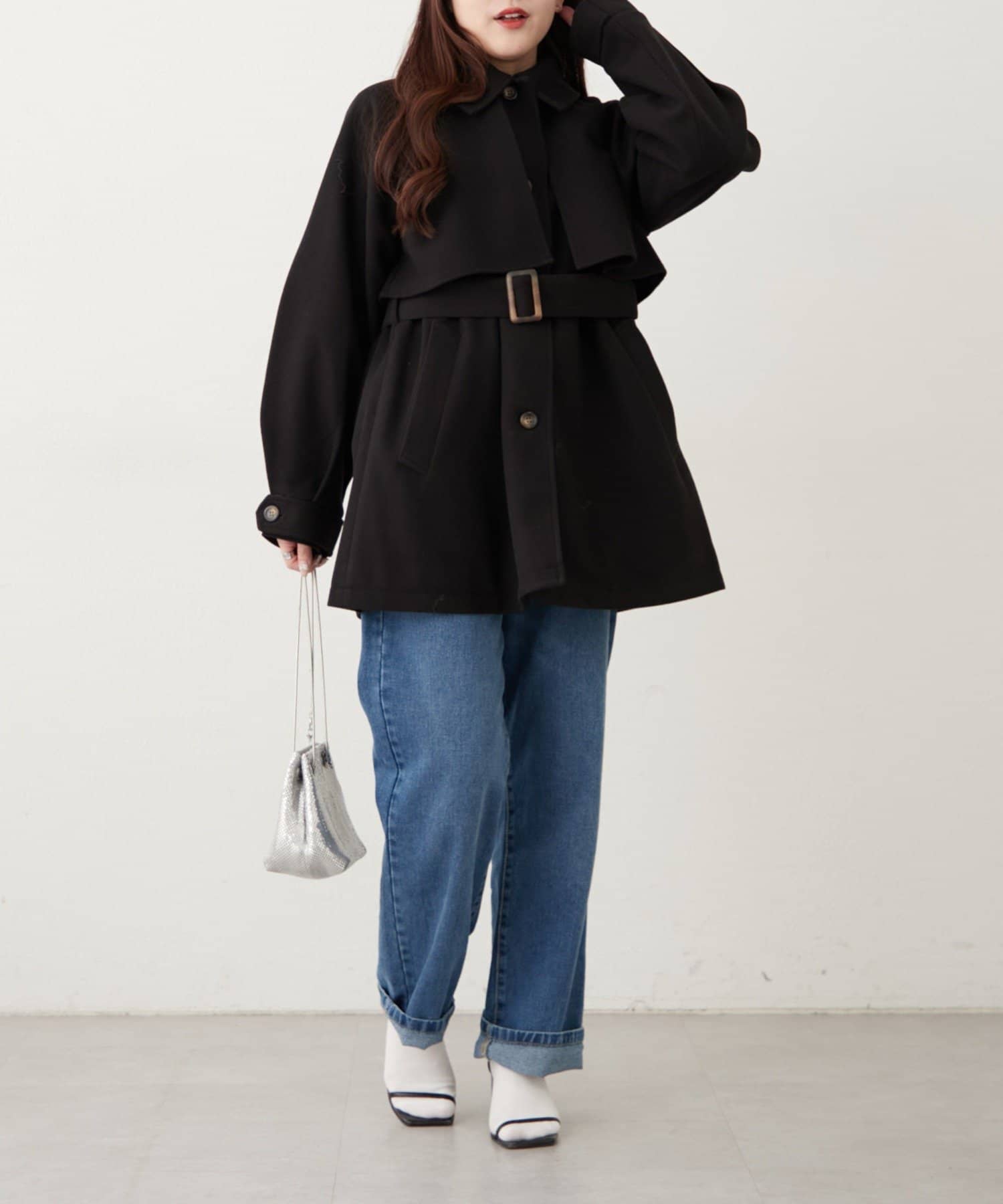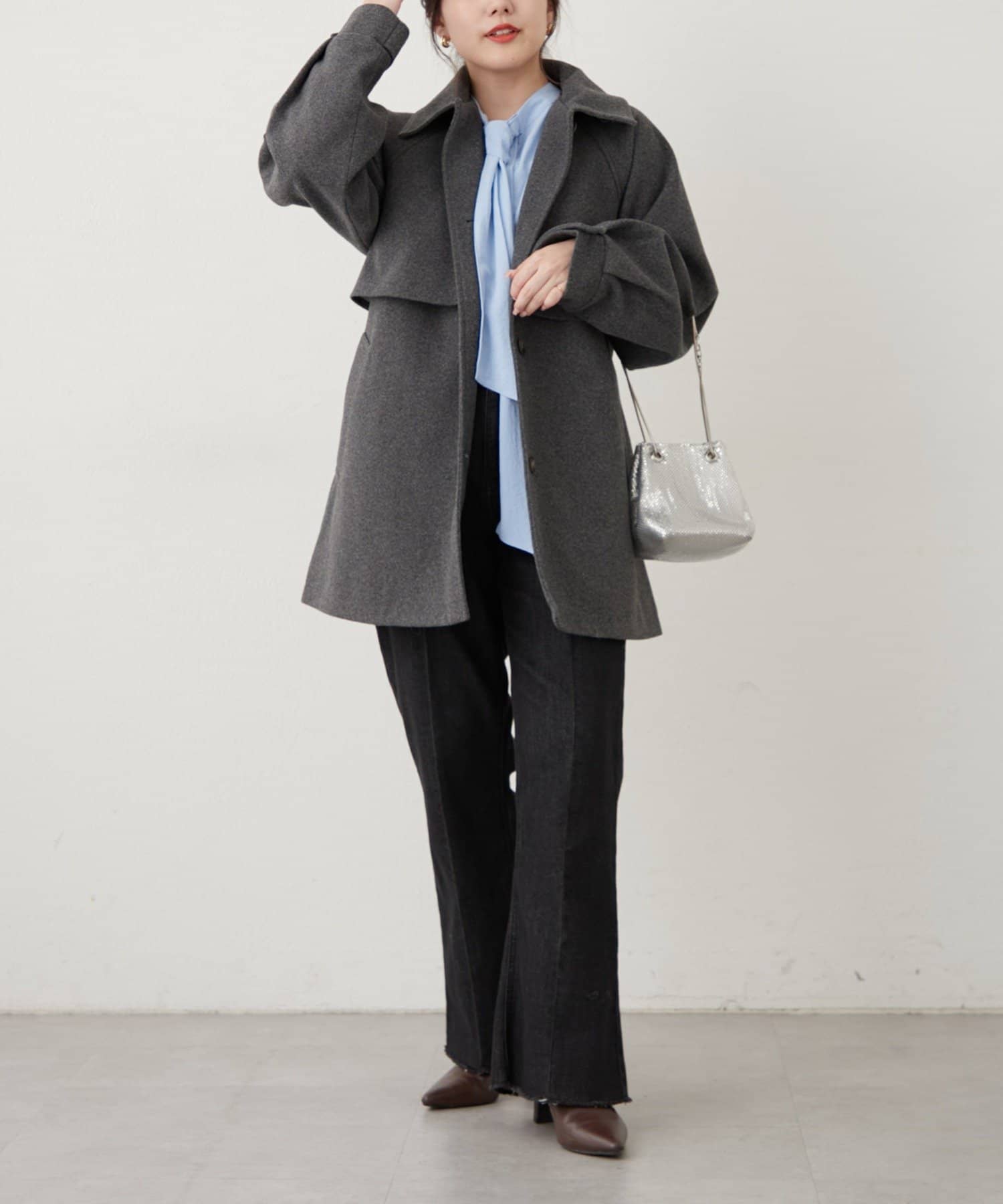 ・ケープのようなきれいめデザインでオフィスルックにもぴったり