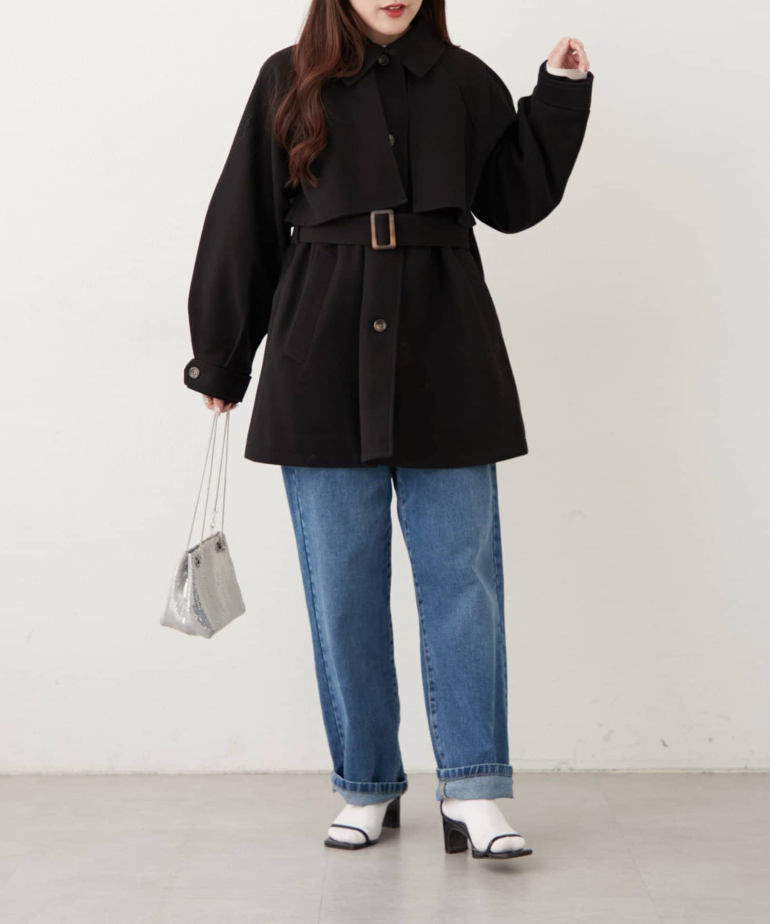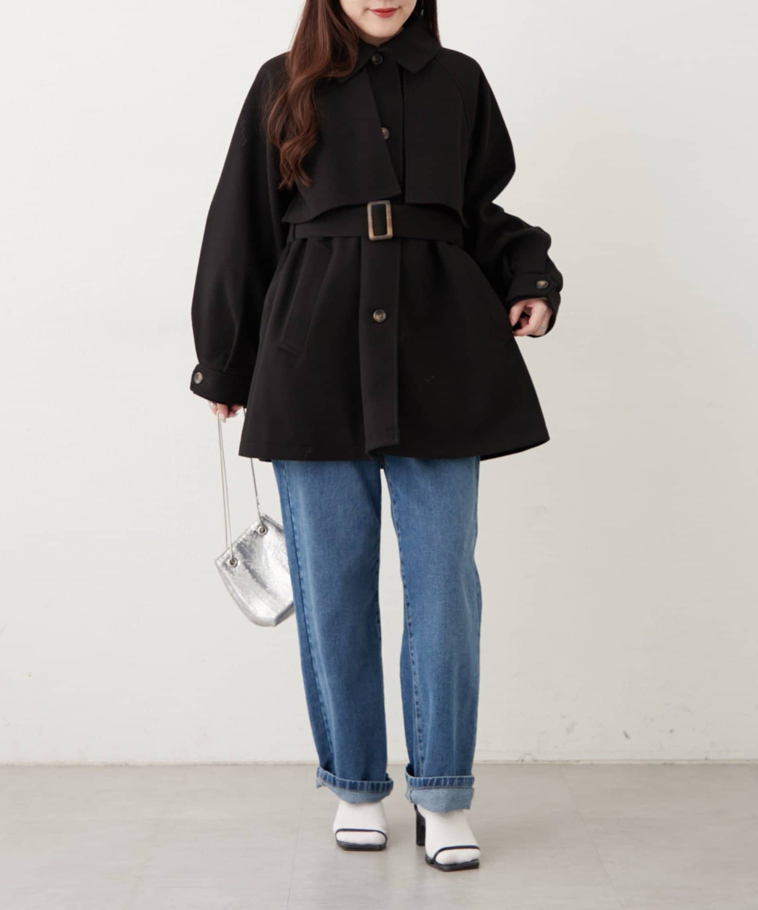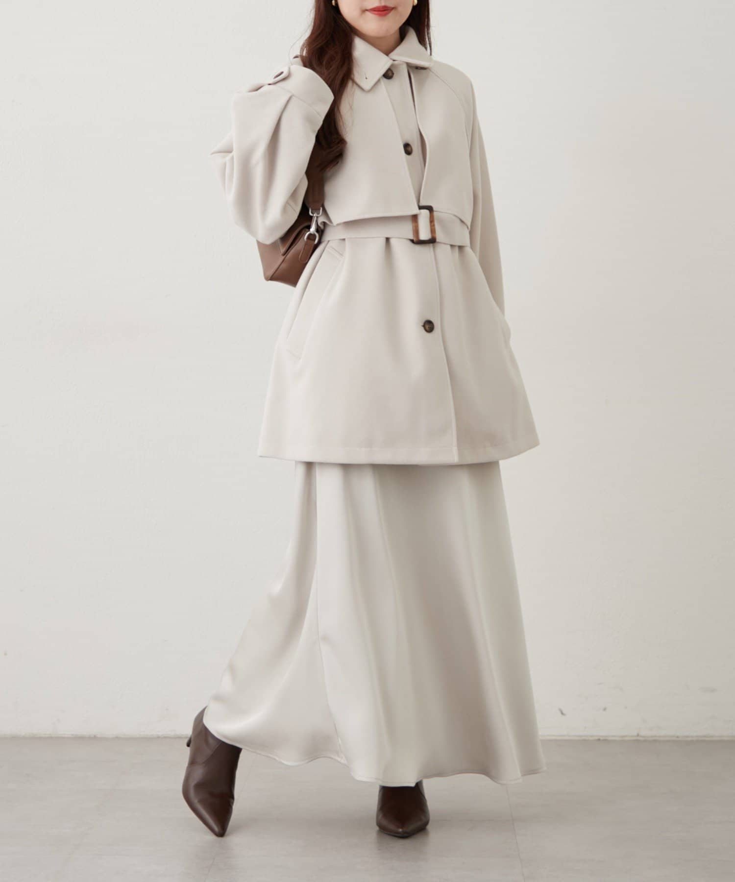 ・ケープのようなきれいめデザインでオフィスルックにもぴったり