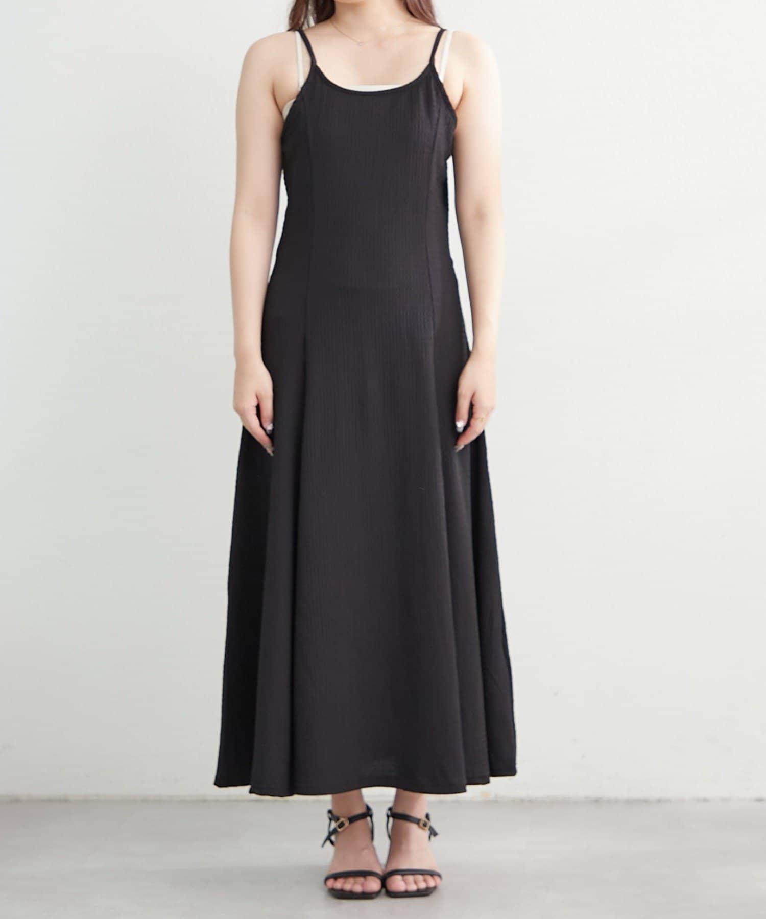 ・キャミワンピはカーディガンを羽織ったり、シアーインナーを中に仕込んで着ても可愛い♪