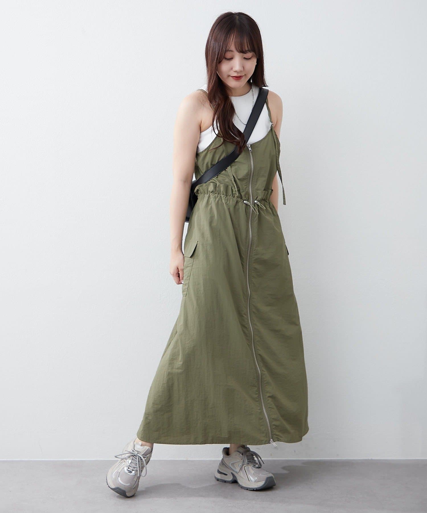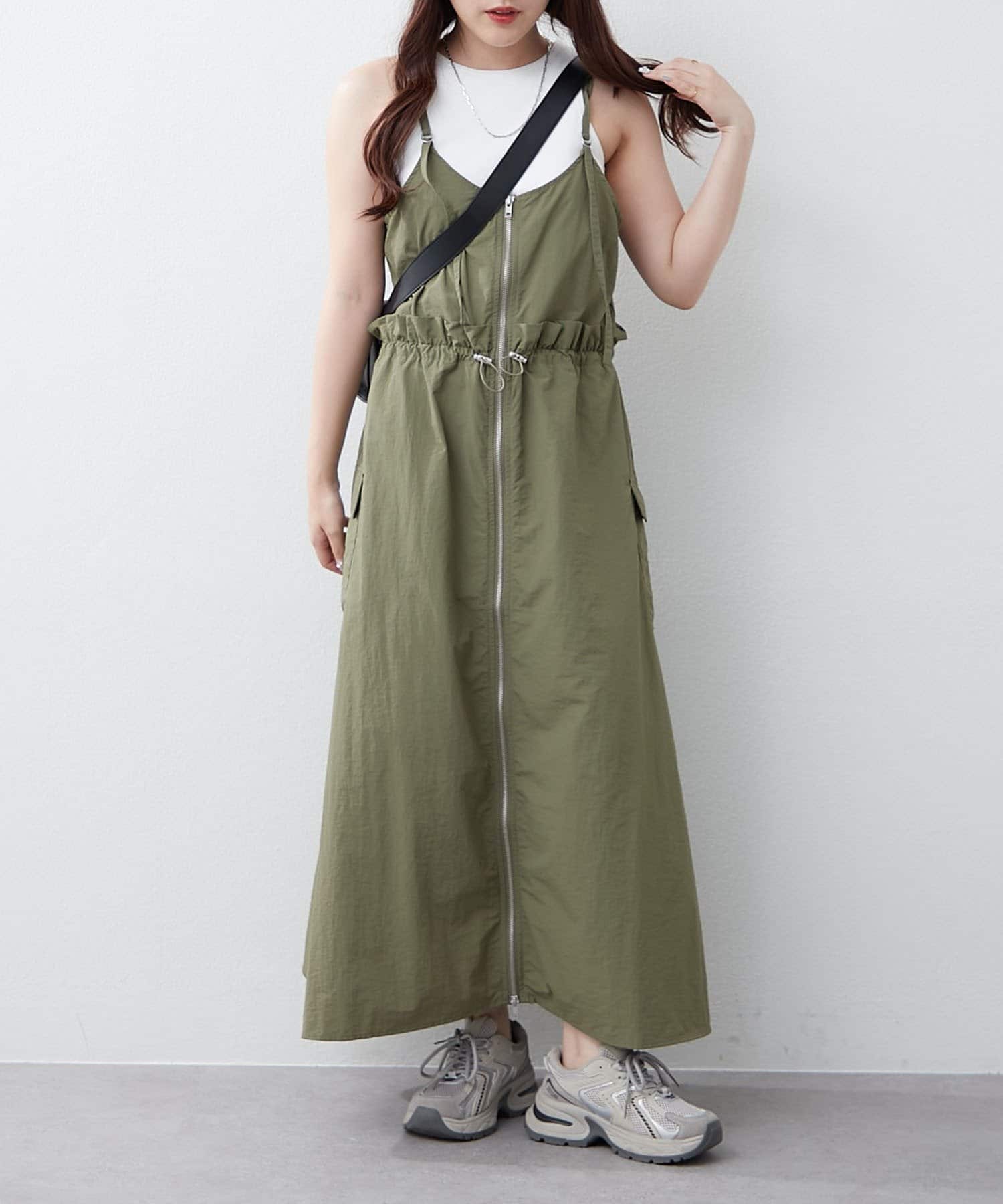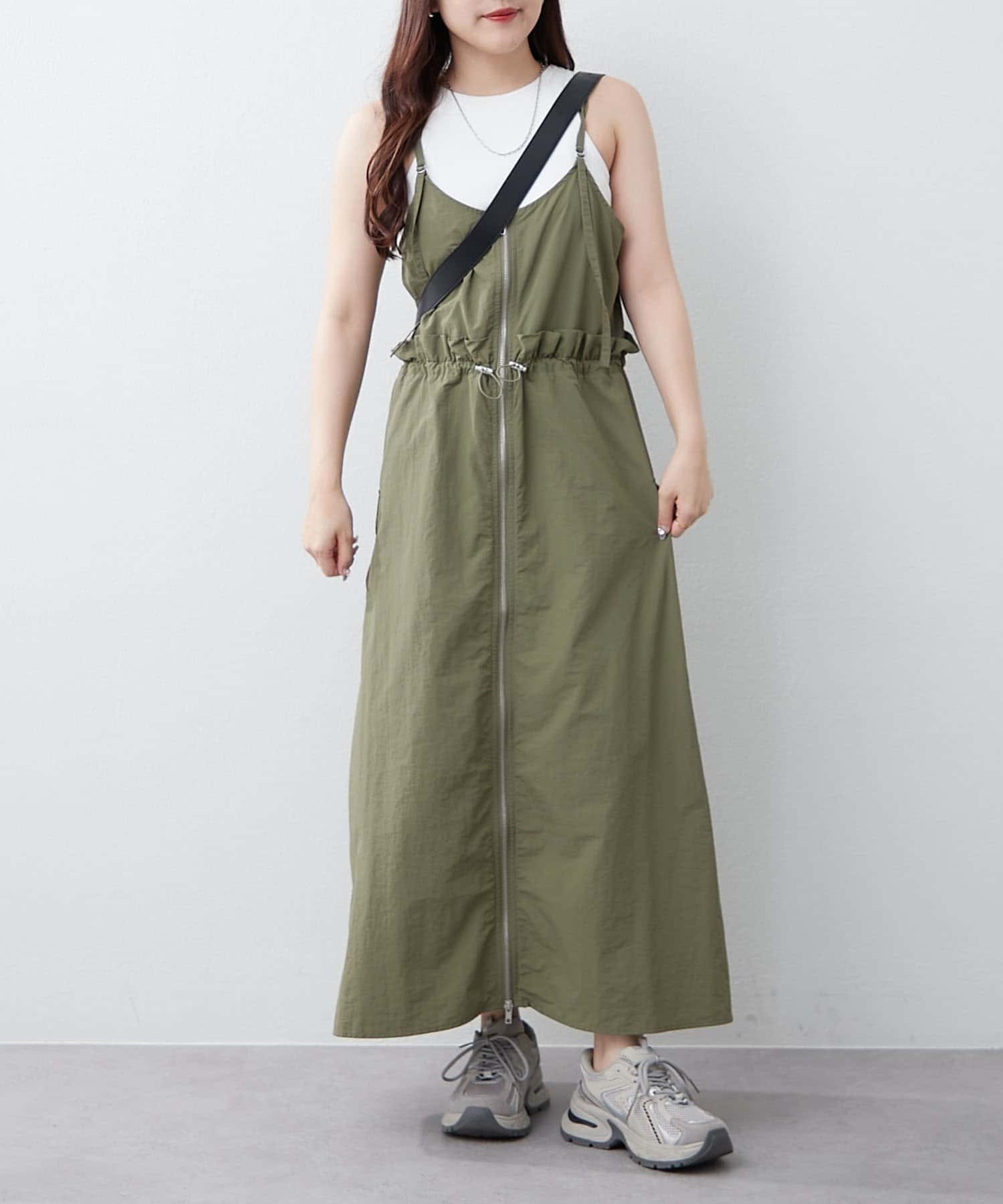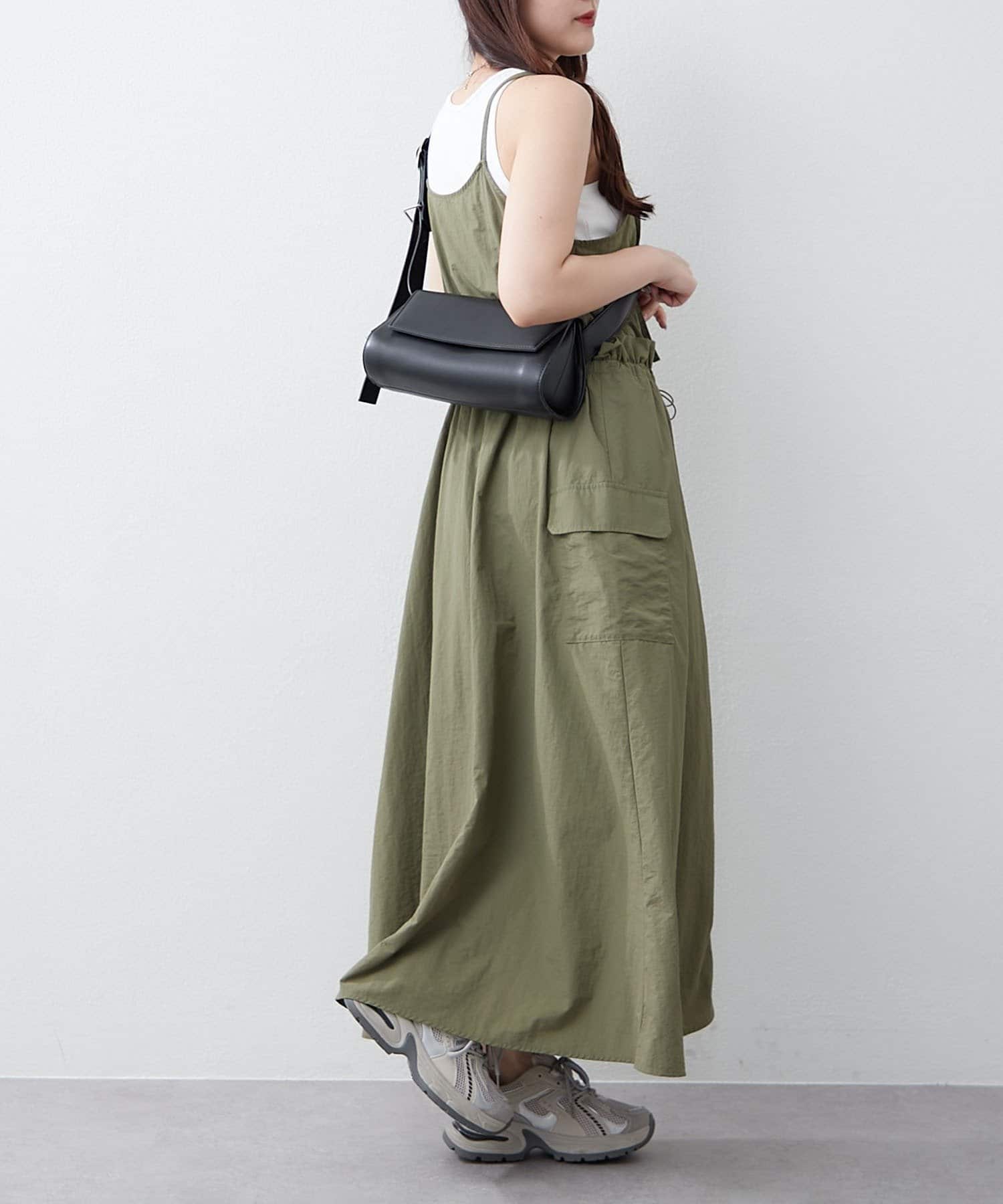 ・ナイロン素材が大人カジュアルコーデにピッタリのキャミワンピ