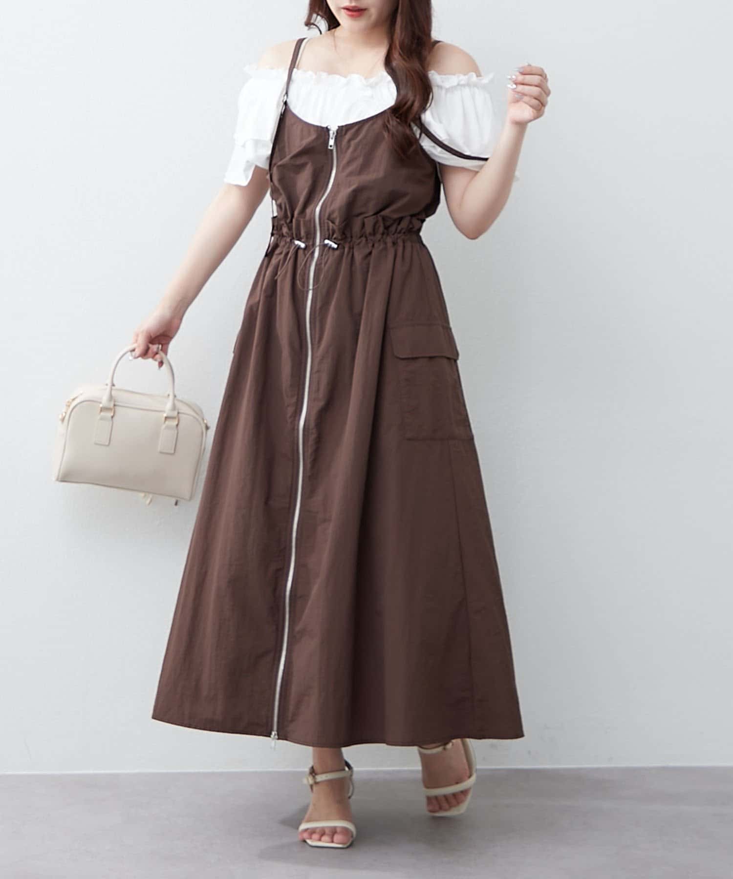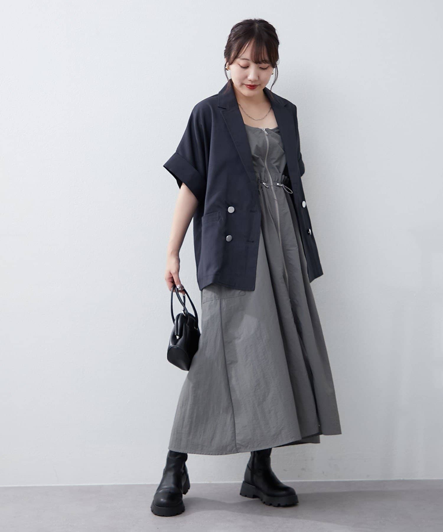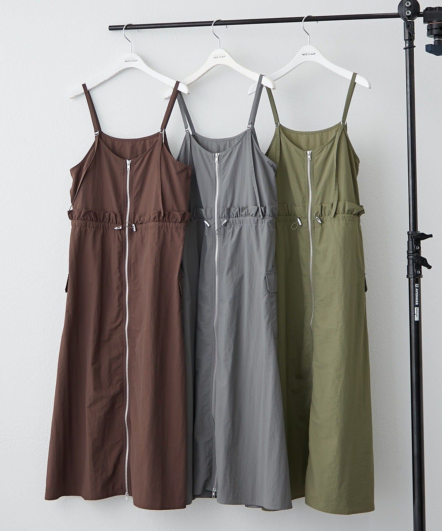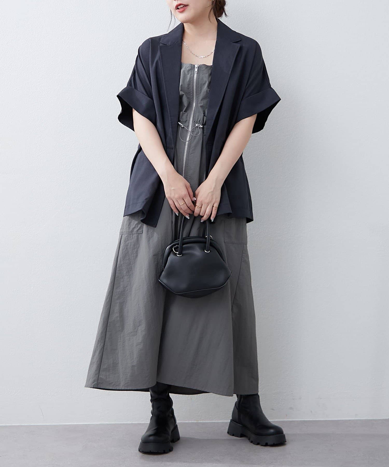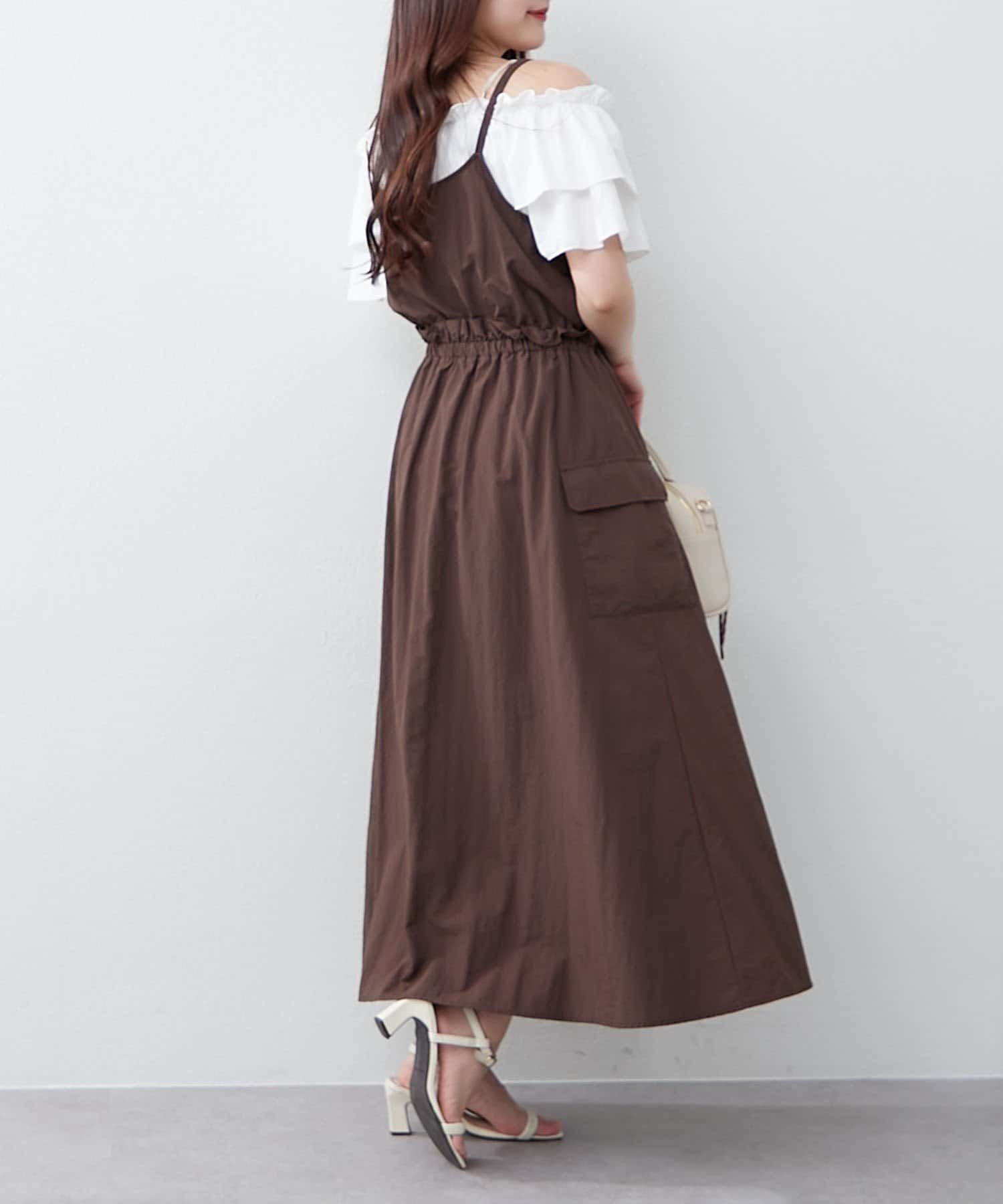 ・ナイロン素材が大人カジュアルコーデにピッタリのキャミワンピ
