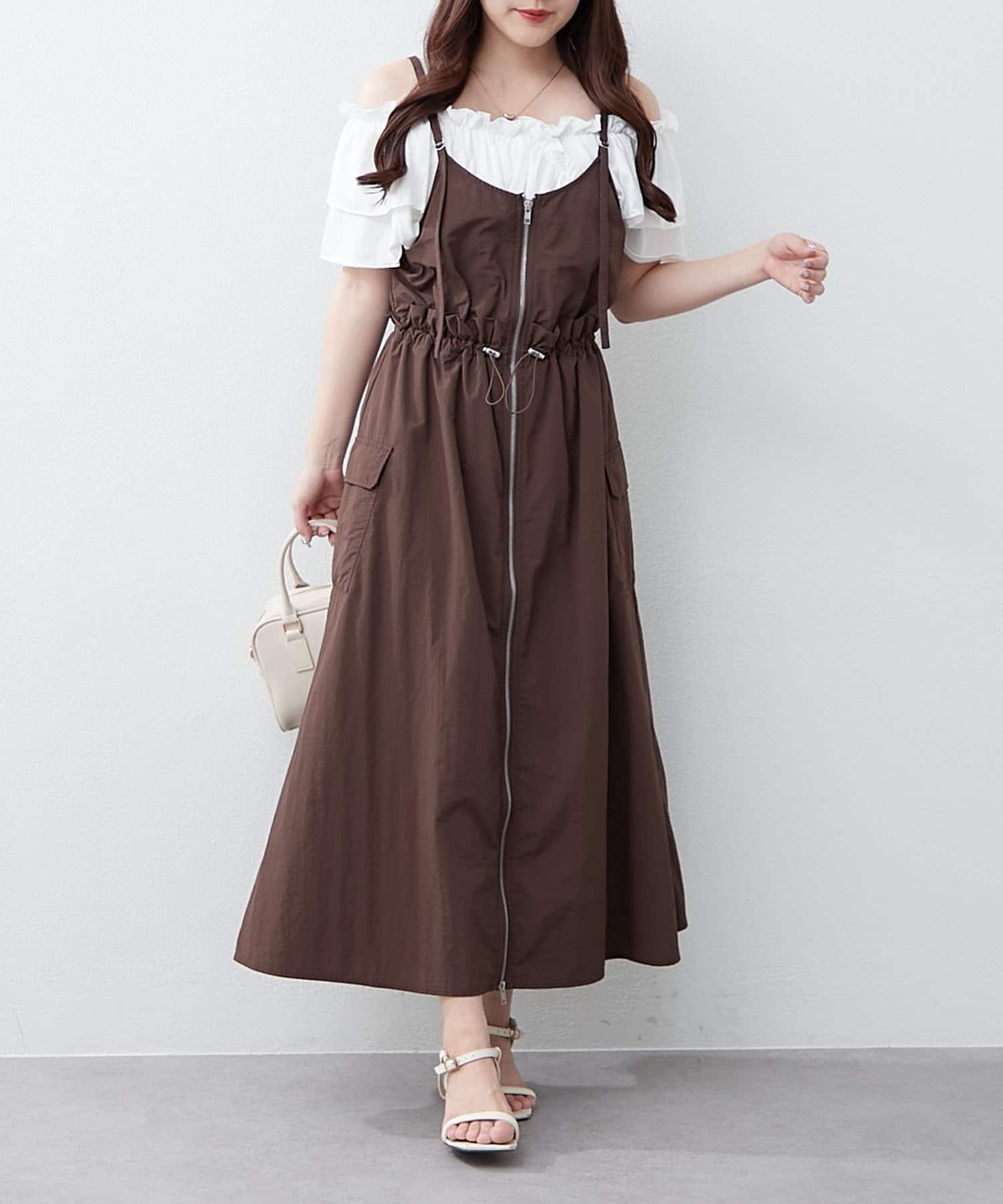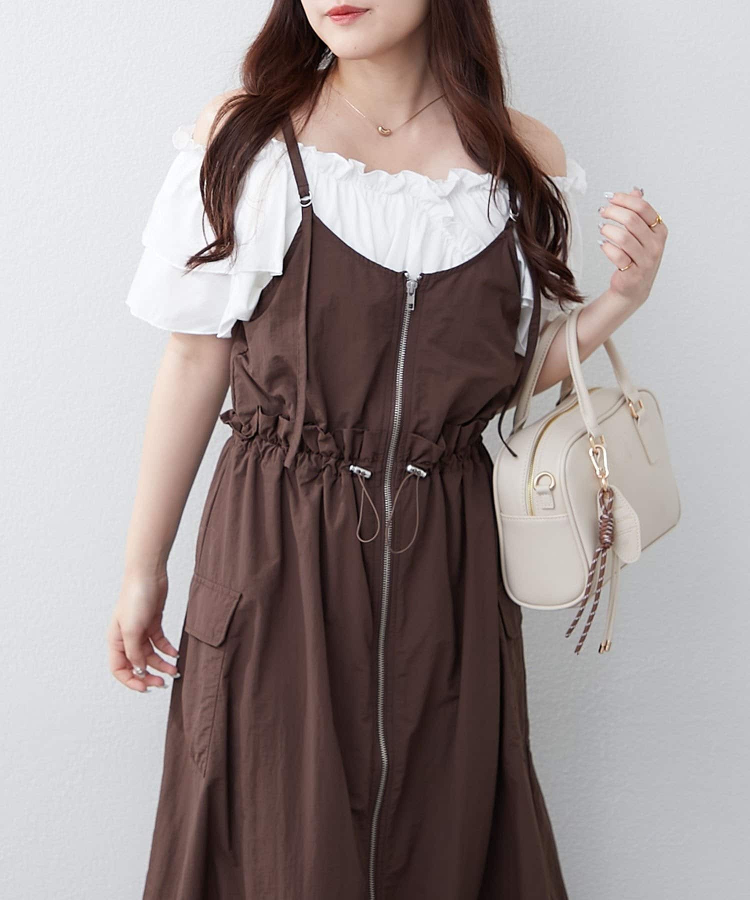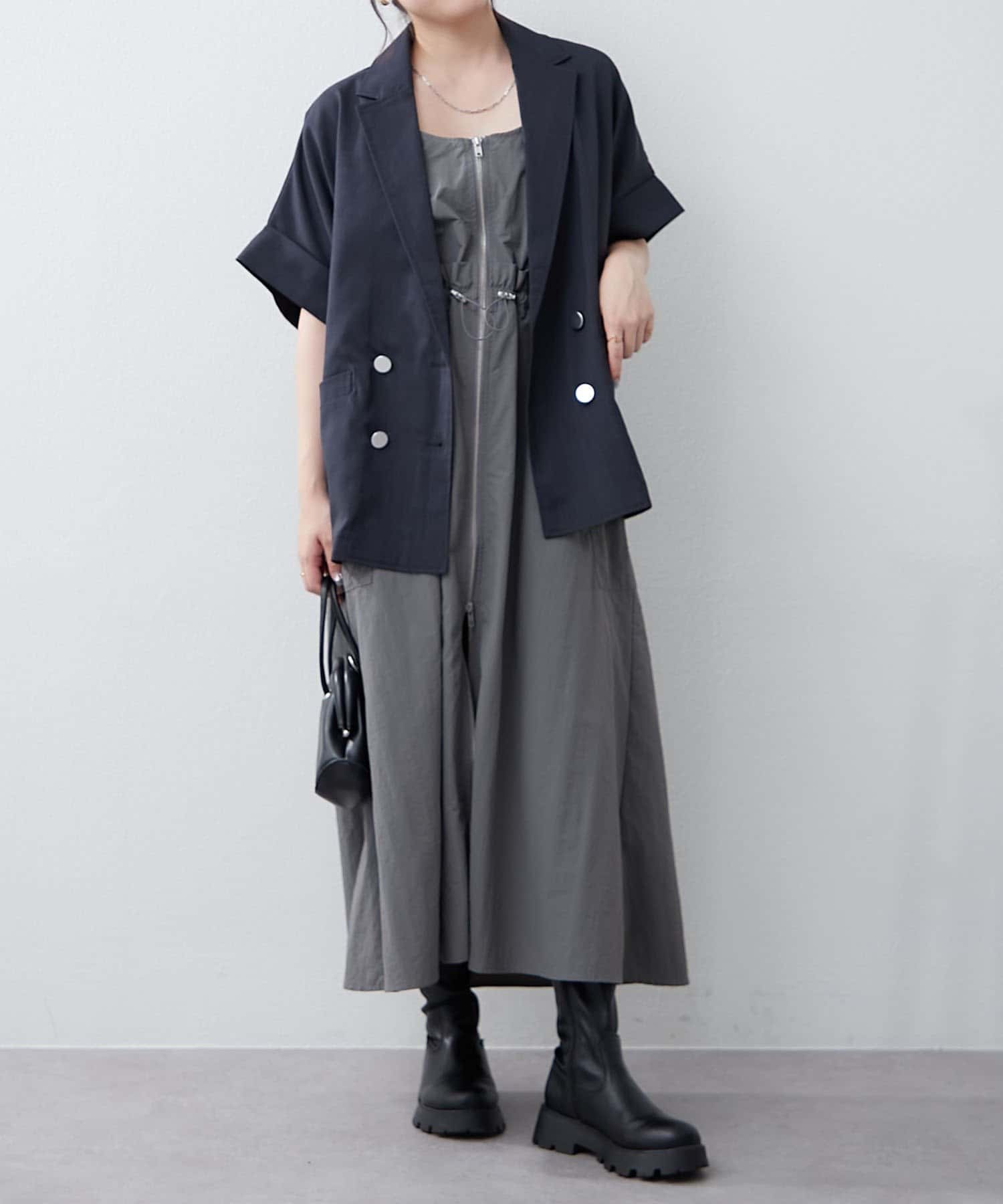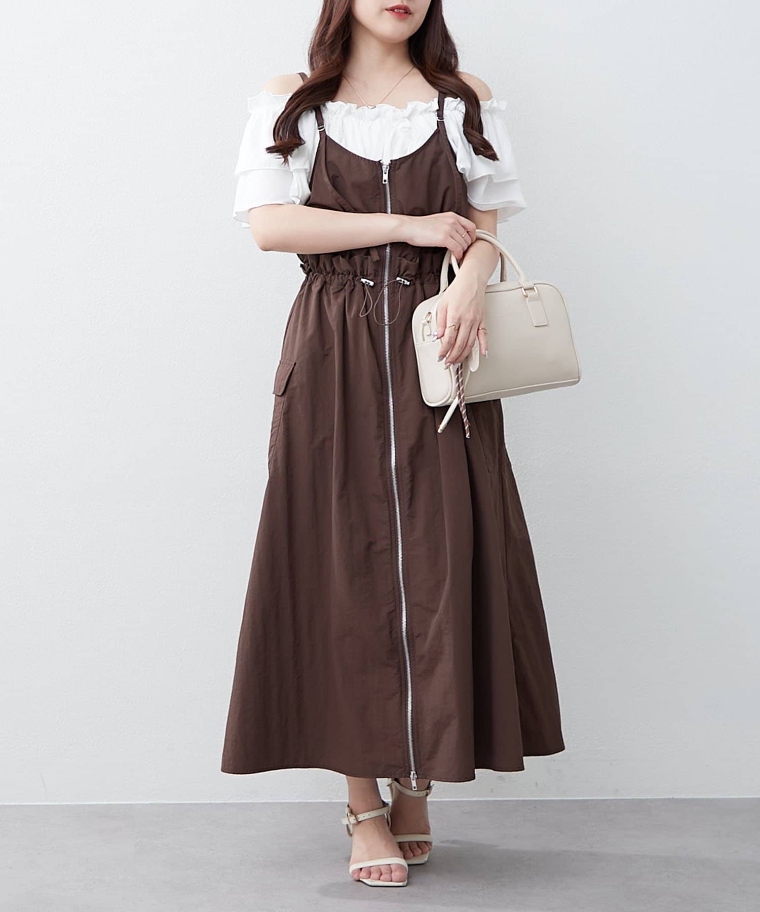 ・ナイロン素材が大人カジュアルコーデにピッタリのキャミワンピ