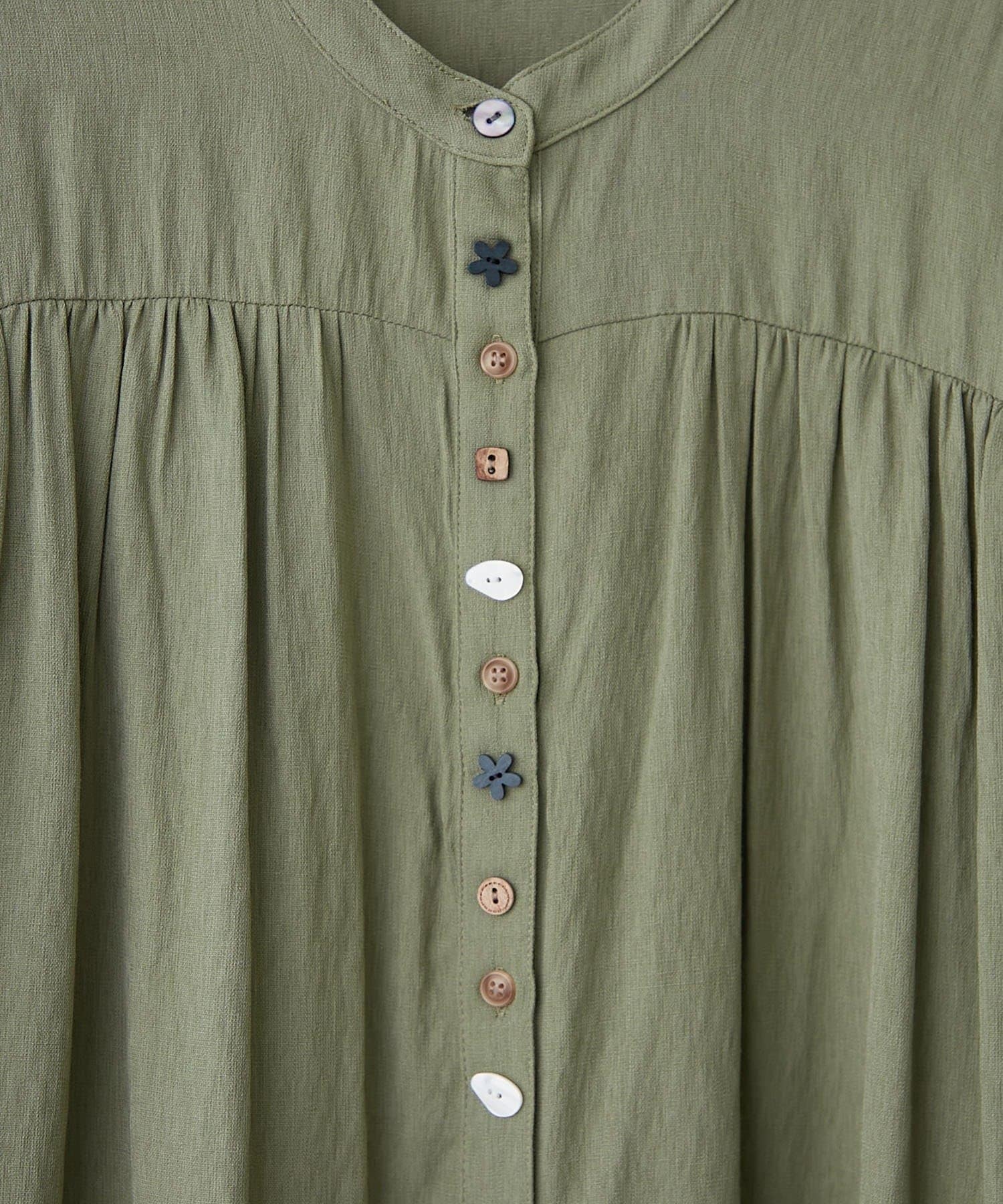 ・さりげないアソートボタンがおしゃれなチュニックブラウス