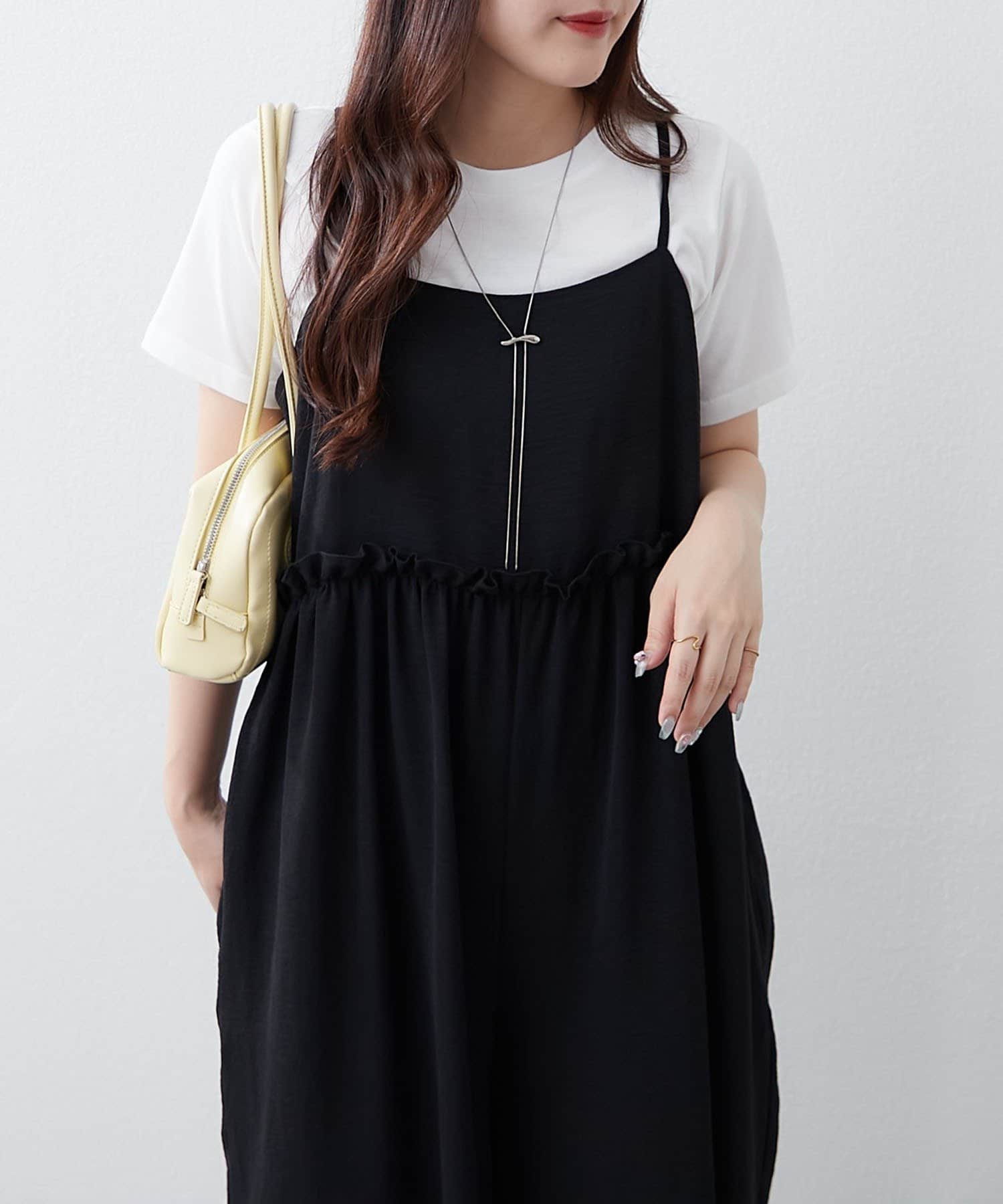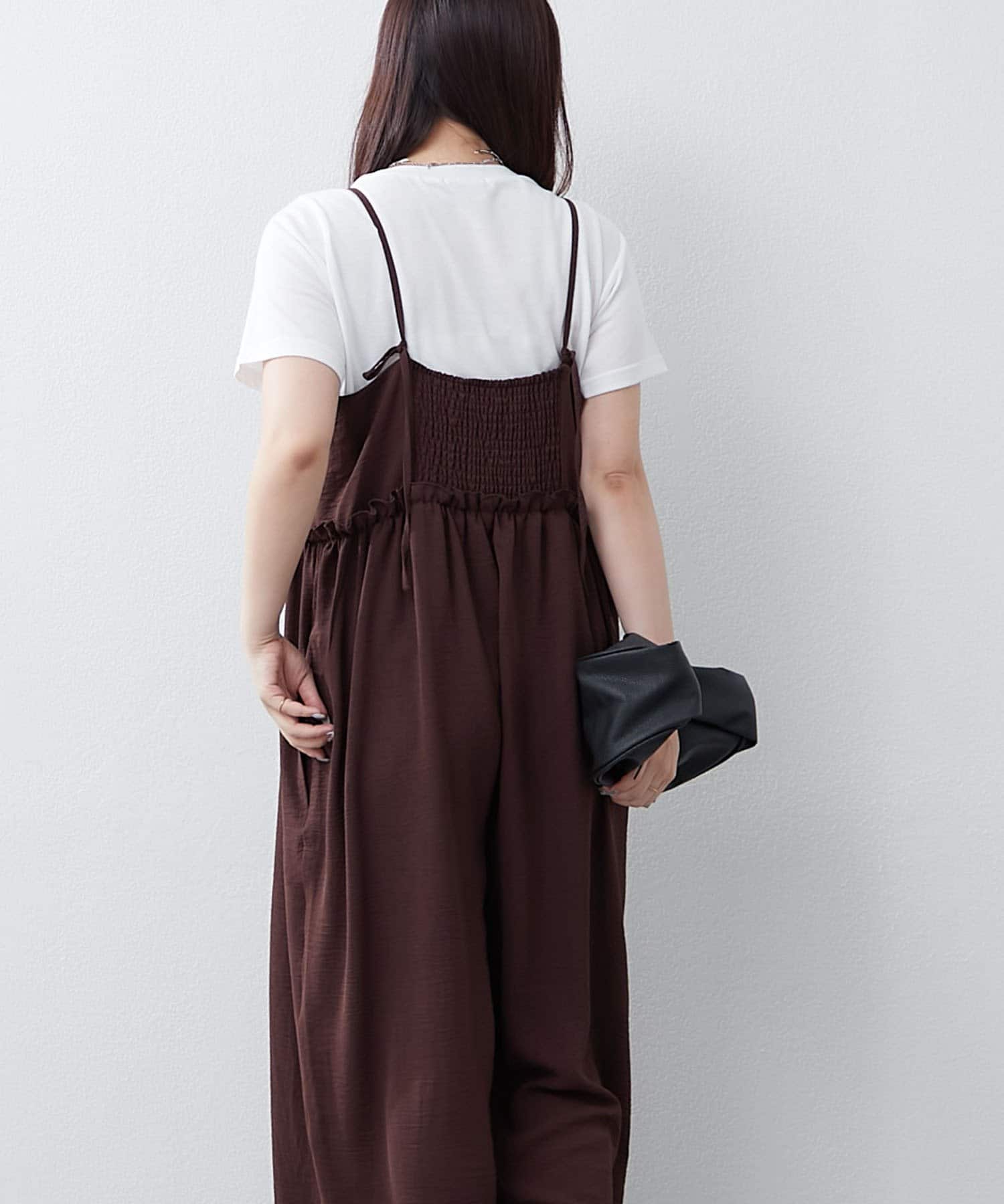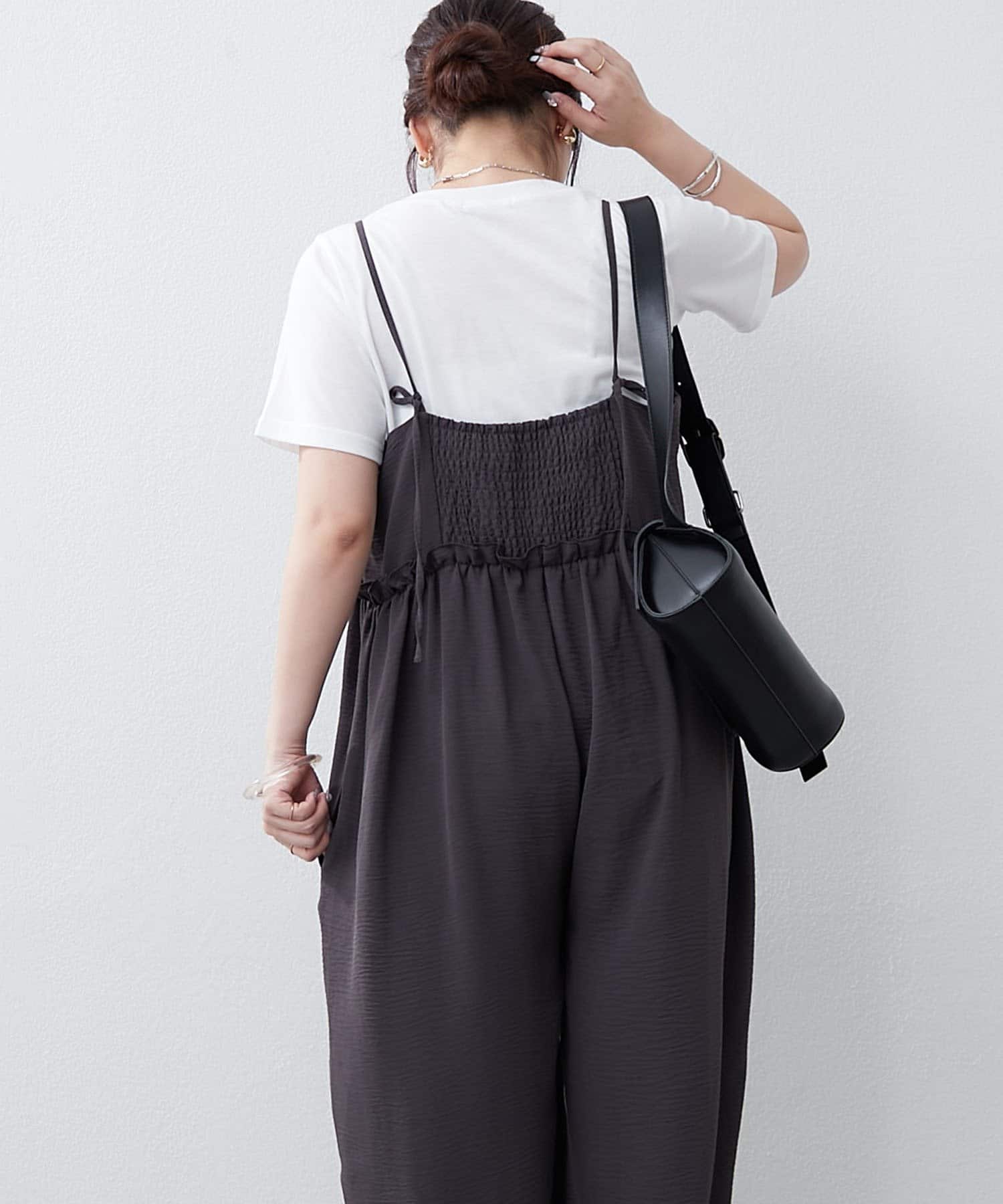 ・セットのTシャツとのバランスが良く見えるようにこだわった華奢な肩紐のデザイン。