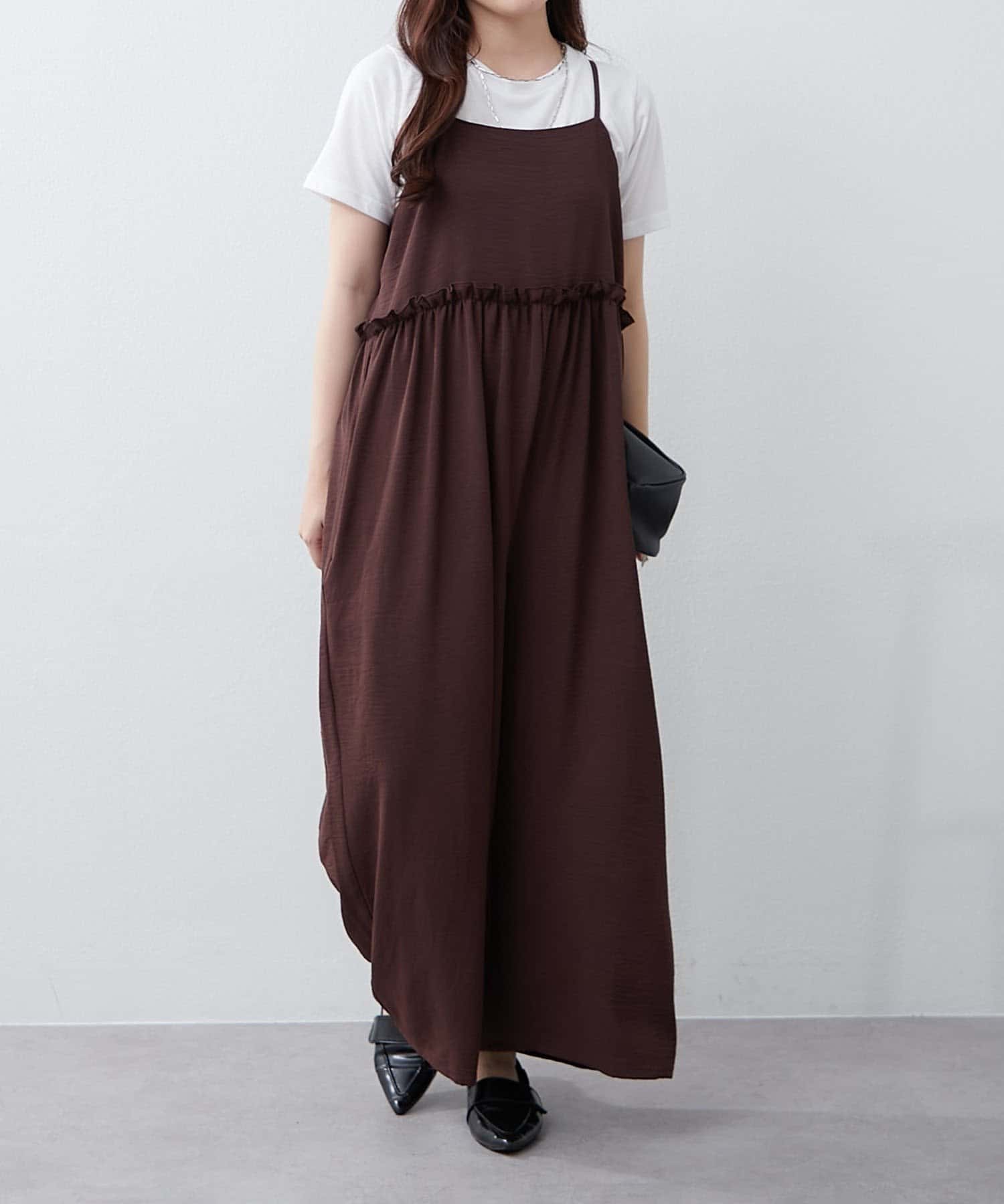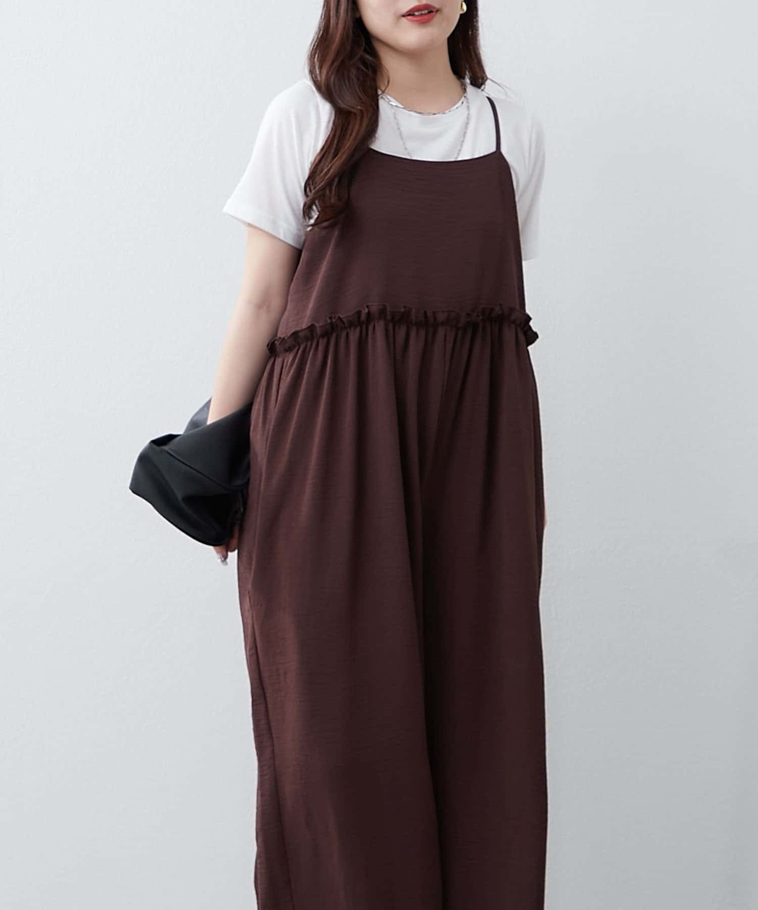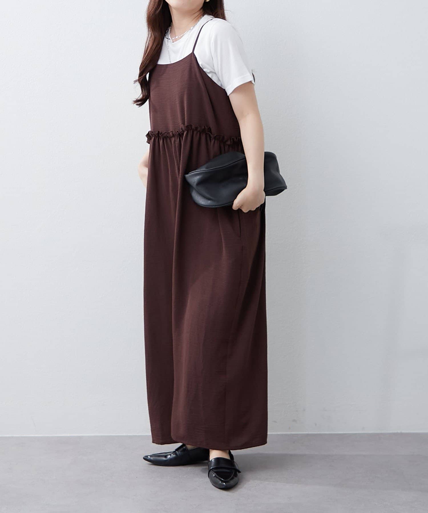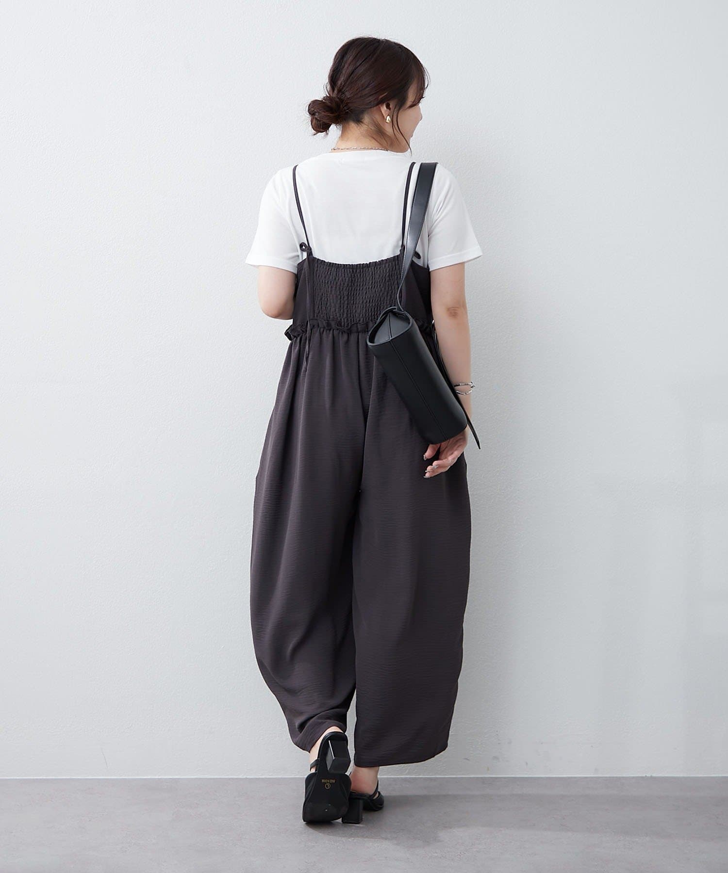 ・セットのTシャツとのバランスが良く見えるようにこだわった華奢な肩紐のデザイン。