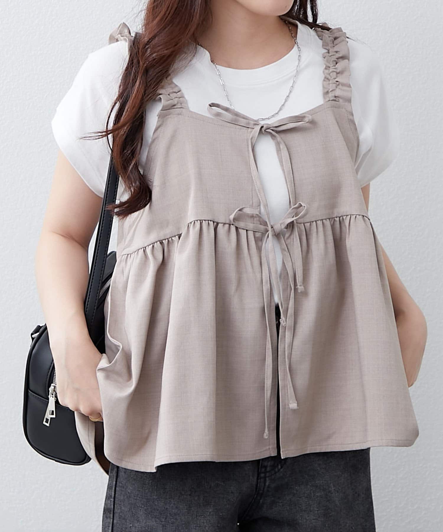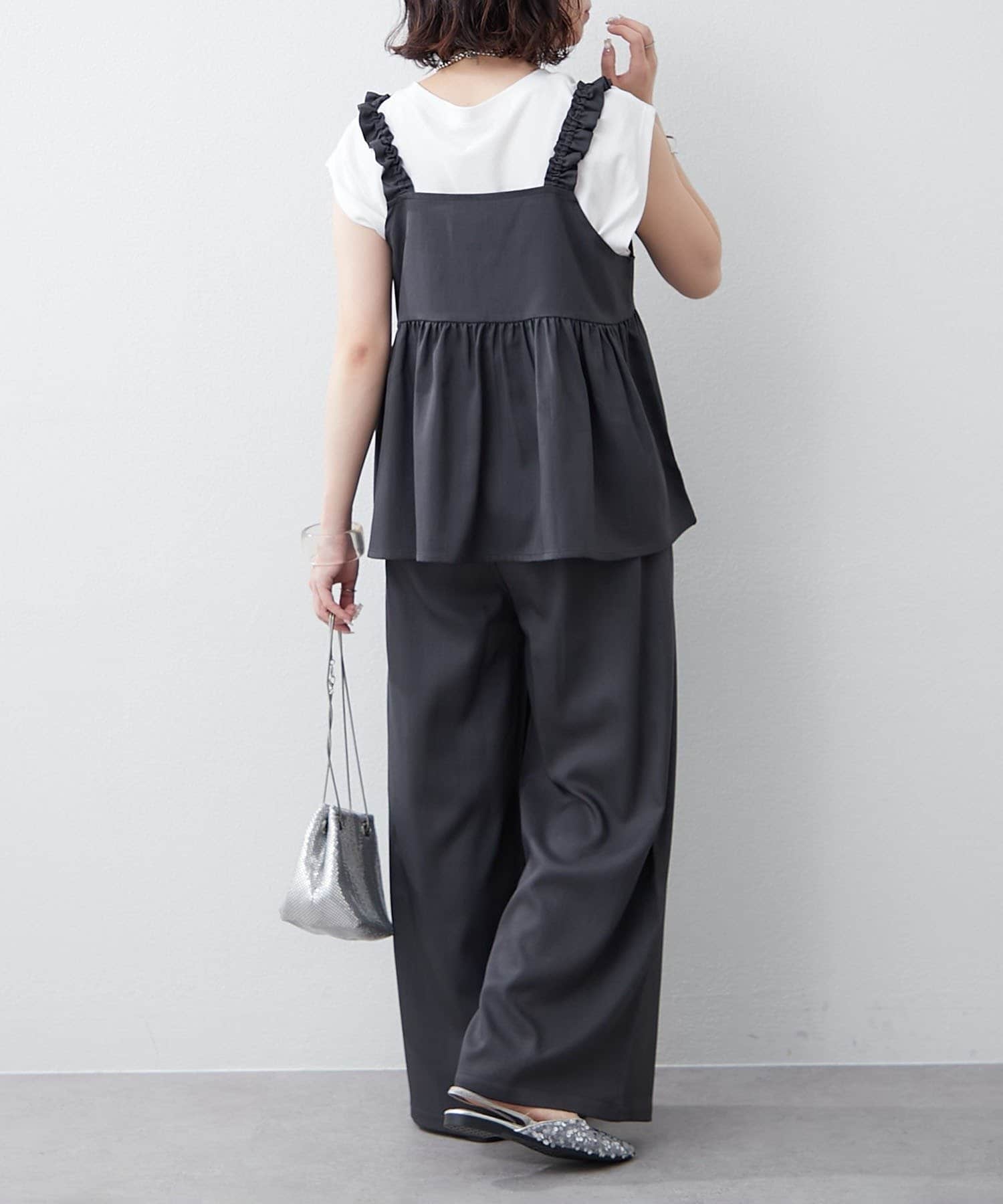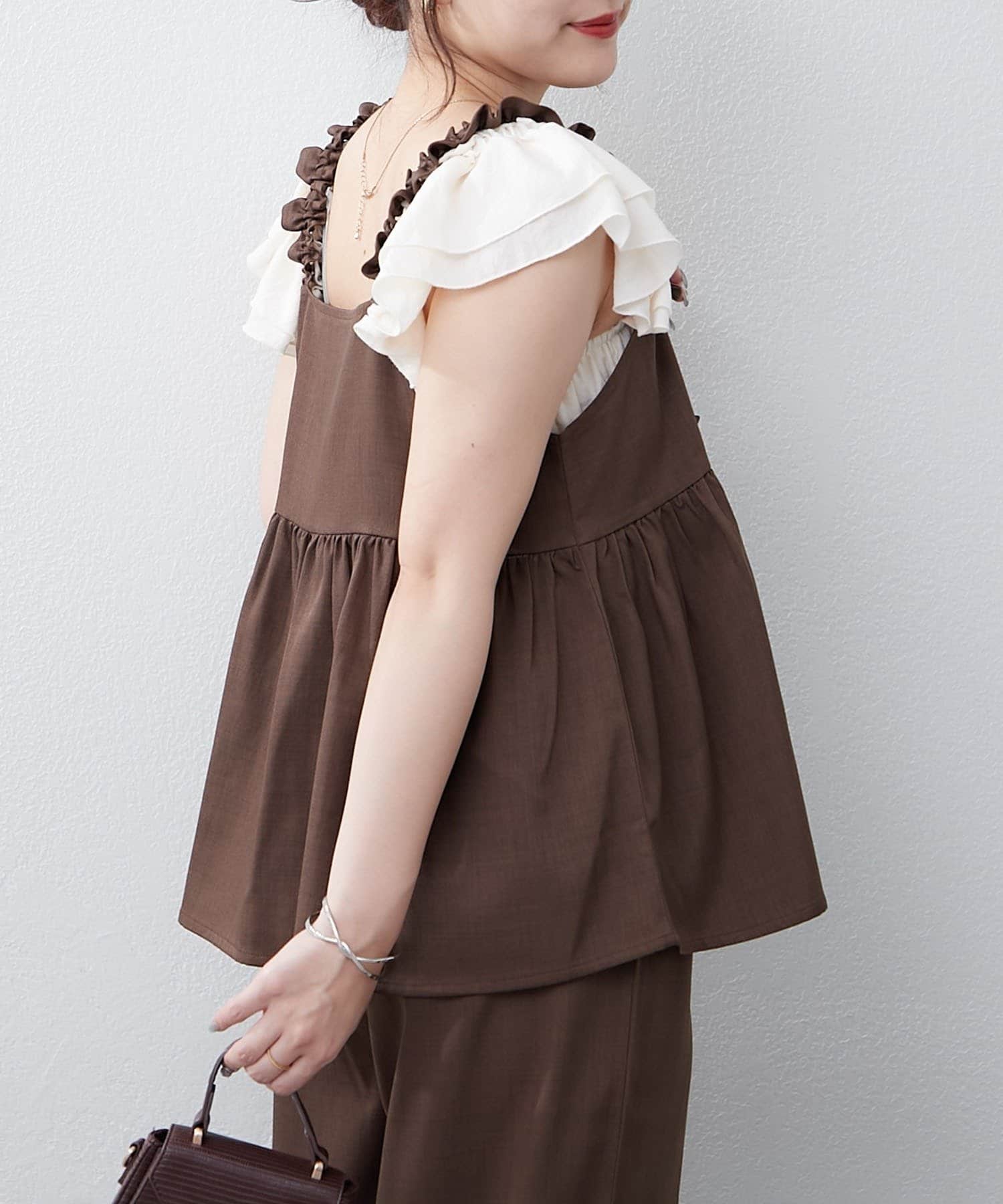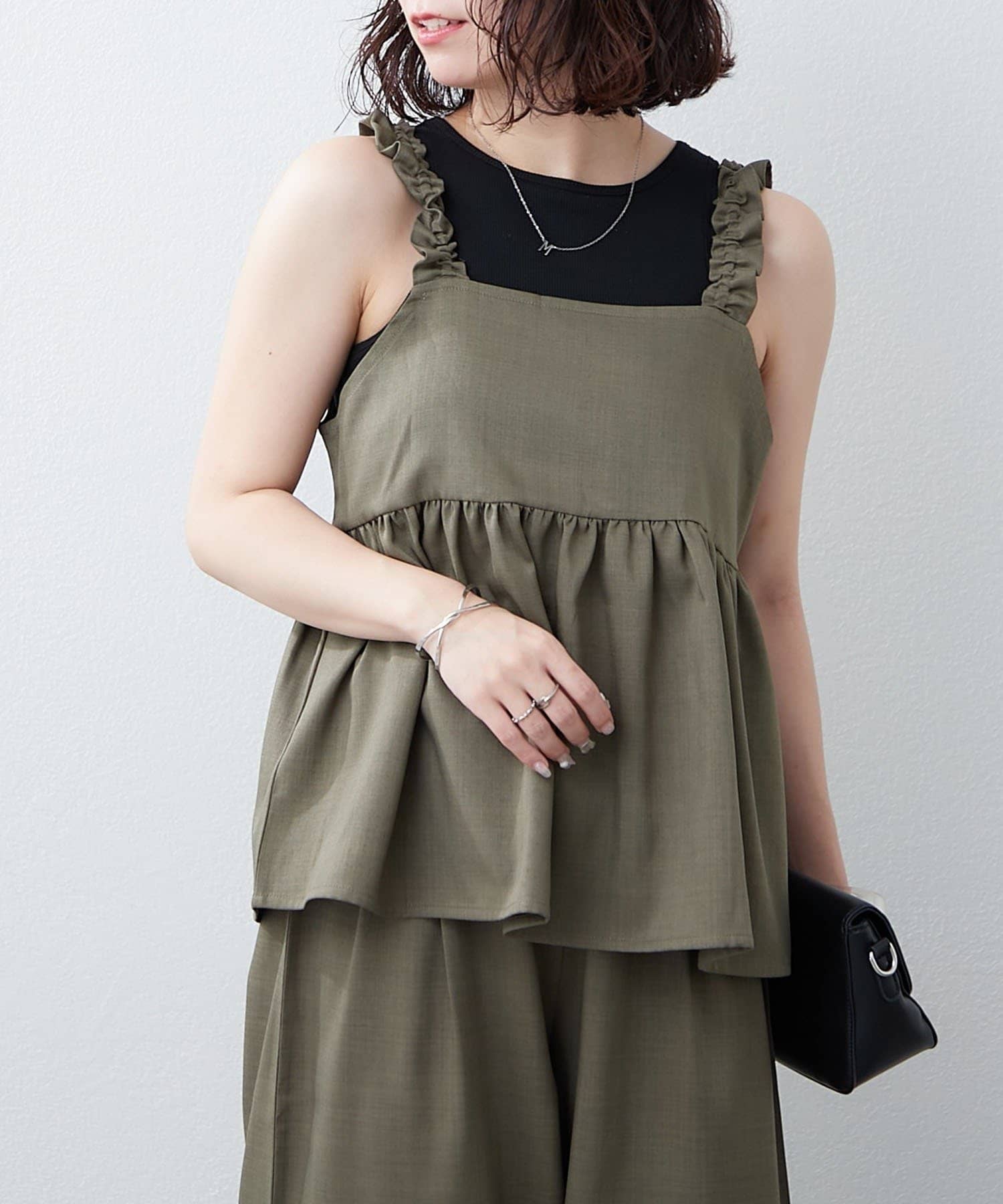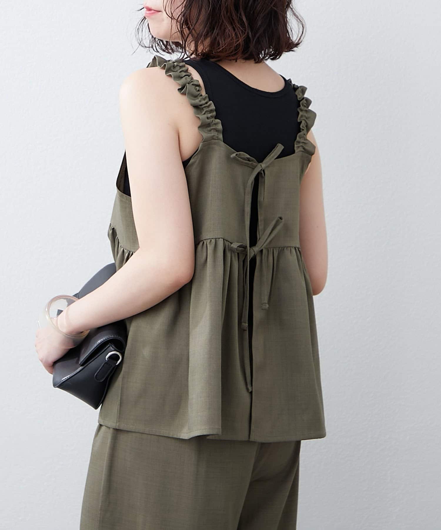・キャミは前後2wayで着用でき、フリルデザインやリボンが可愛いポイントで、ペプラムなのでお腹周りは隠せる優秀アイテム◎