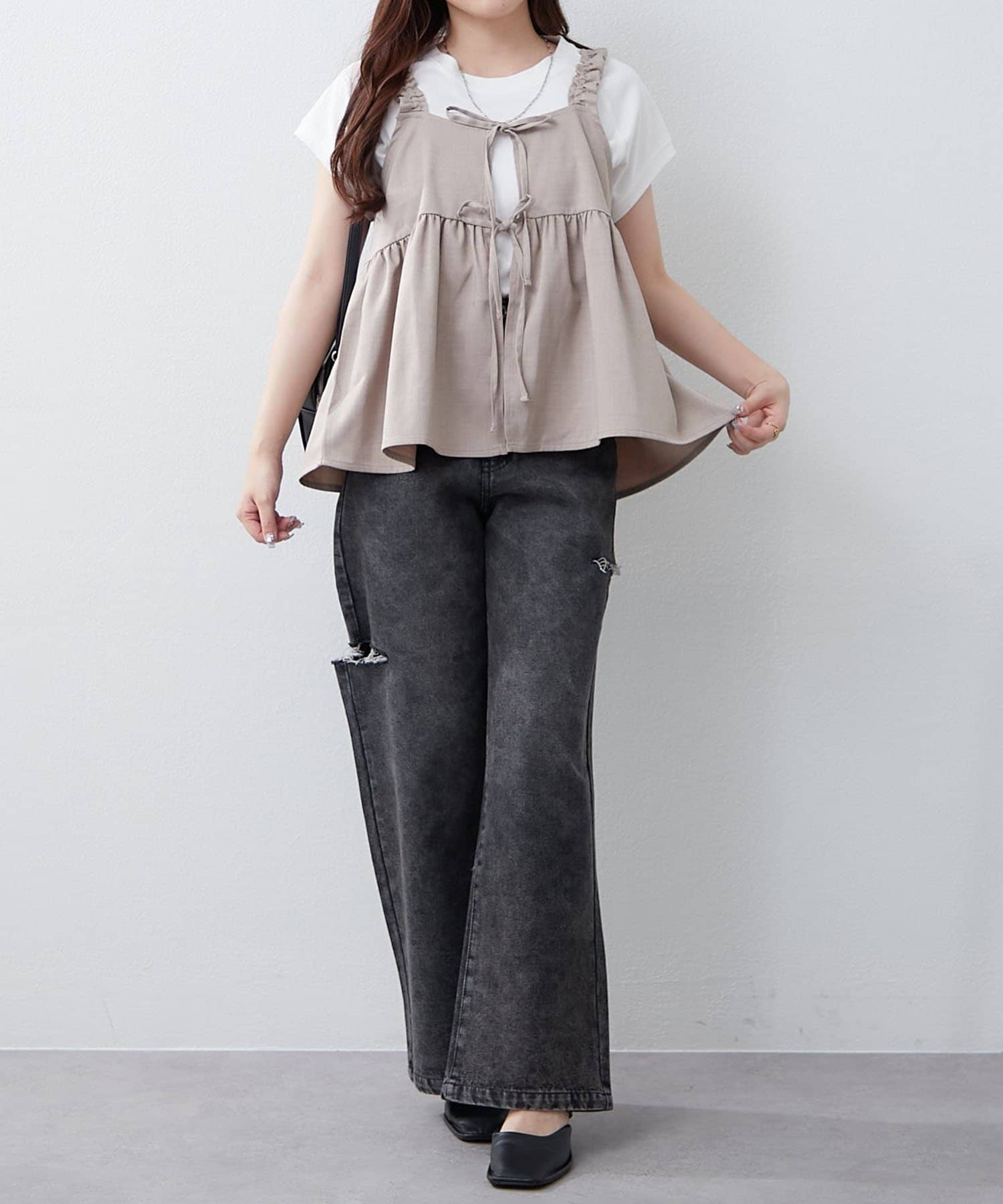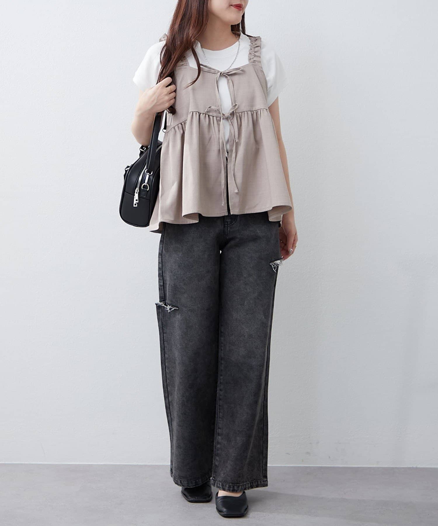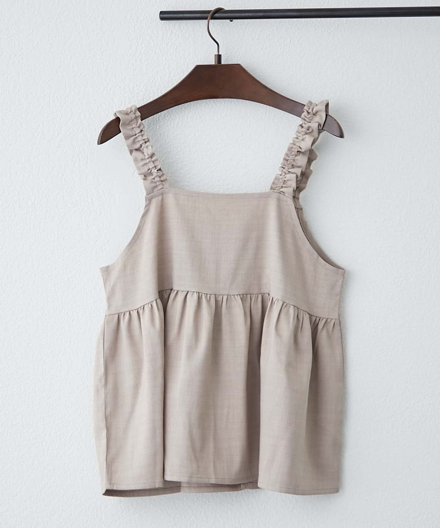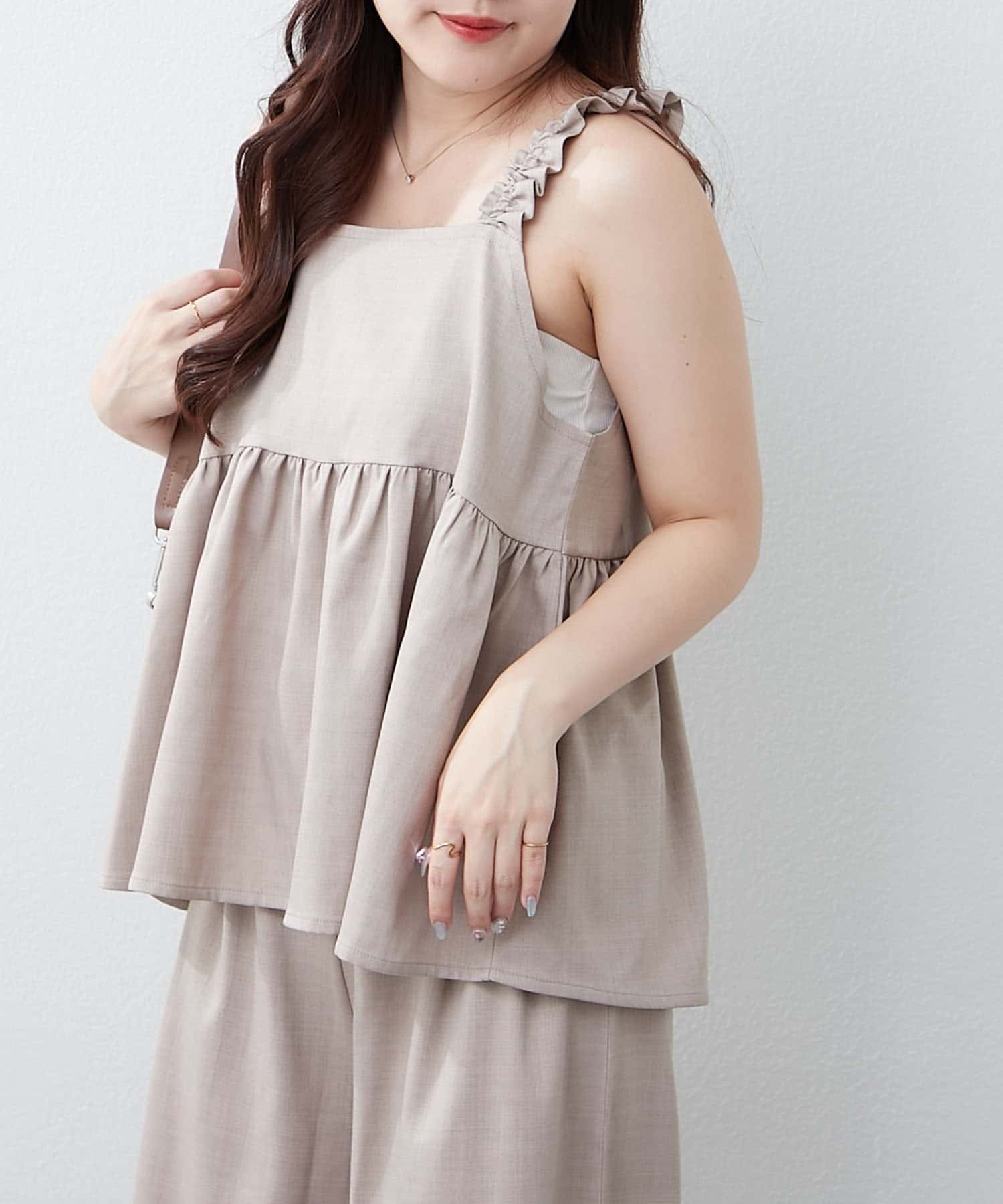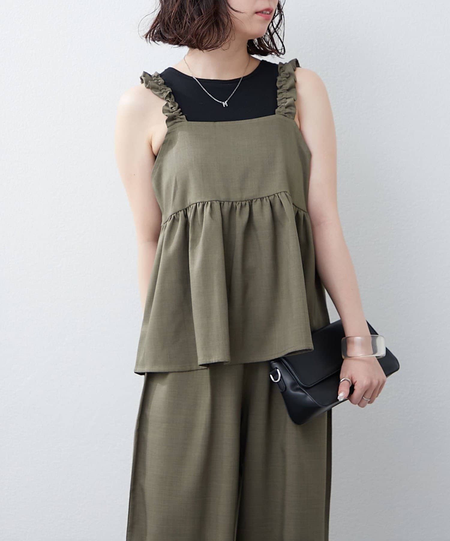 ・キャミは前後2wayで着用でき、フリルデザインやリボンが可愛いポイントで、ペプラムなのでお腹周りは隠せる優秀アイテム◎