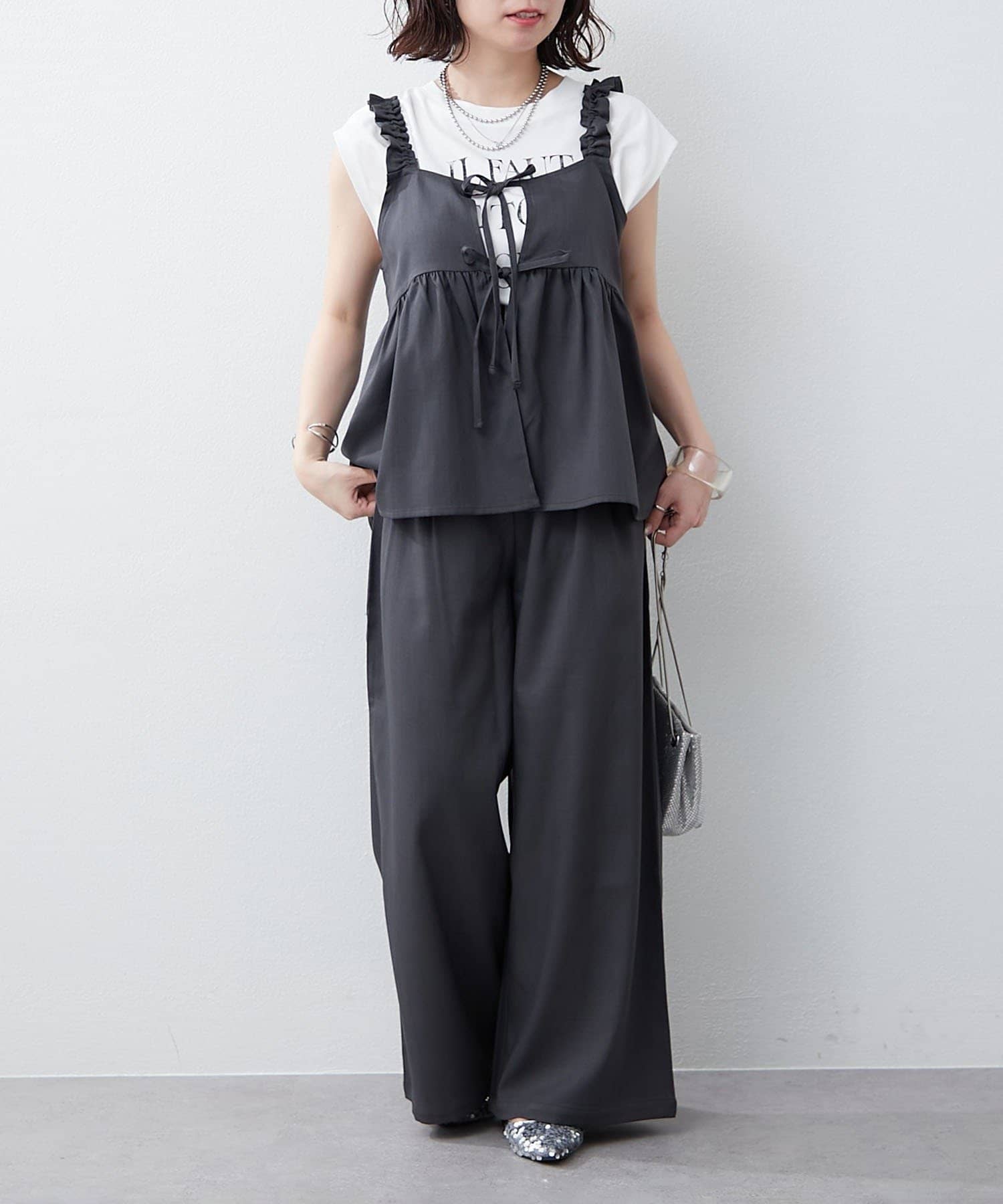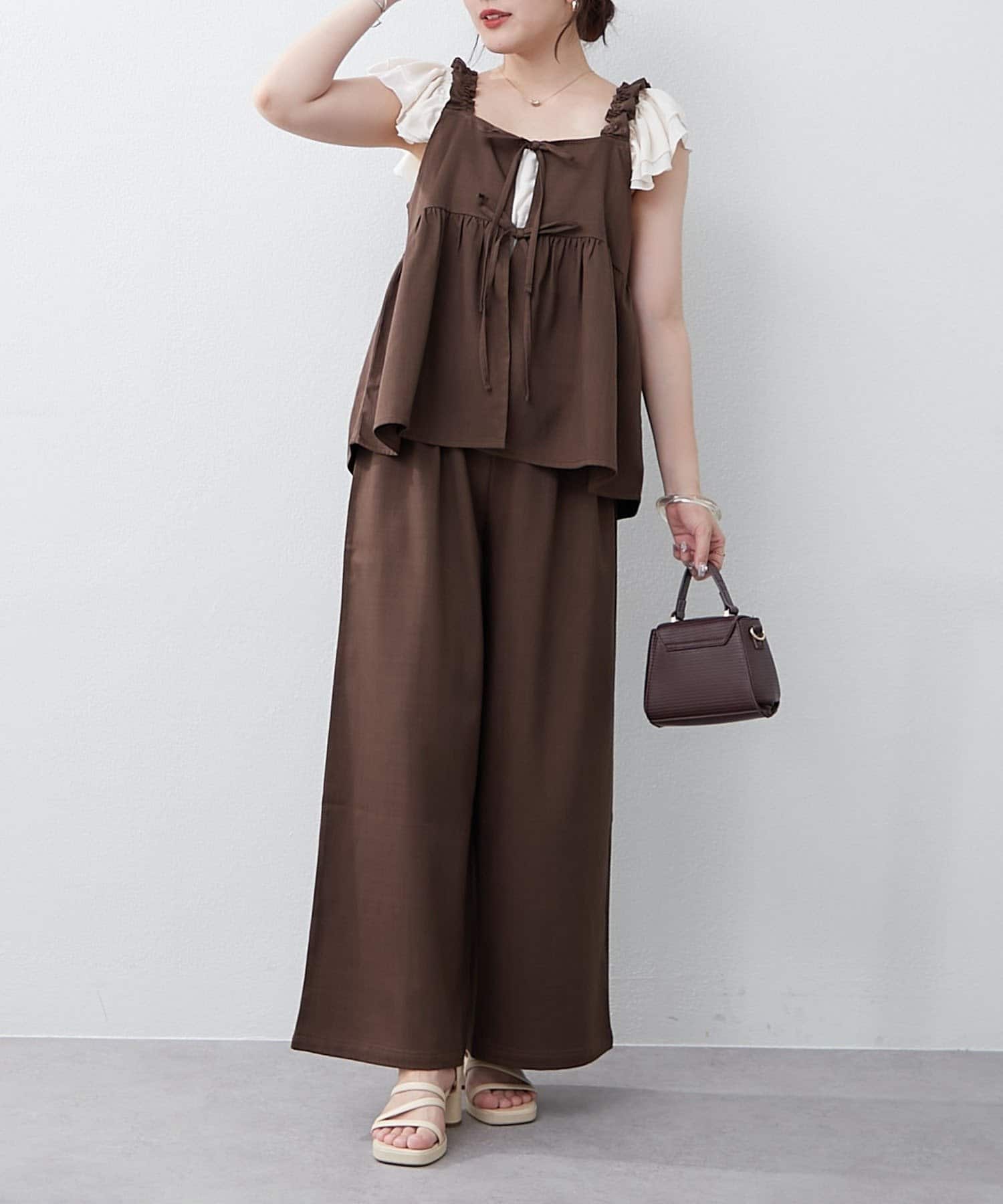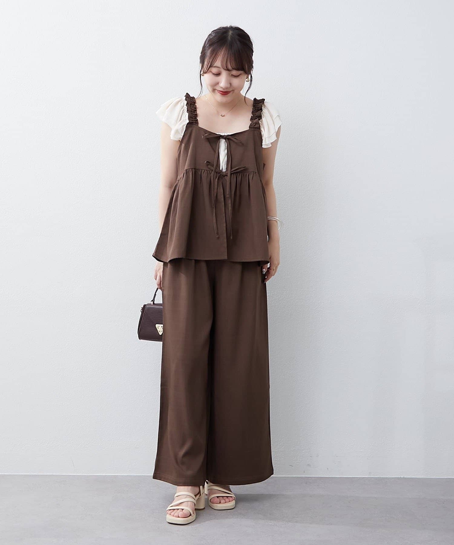 TOP > NICE CLAUP / OLIVE des OLIVE OUTLET > レディース > ワンピース > ワンピース > 【RMAF】リボンキャミ+ロングパンツSET