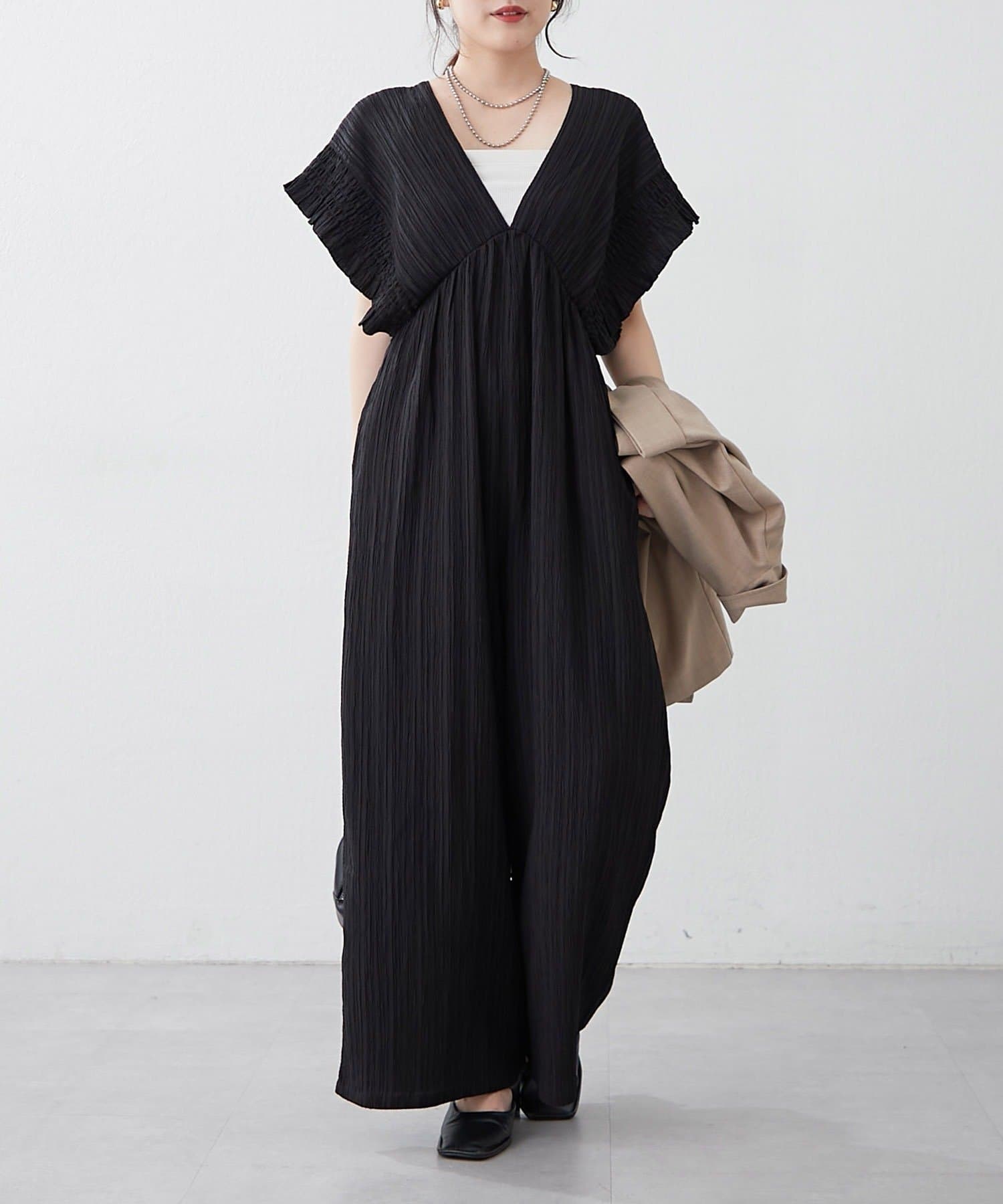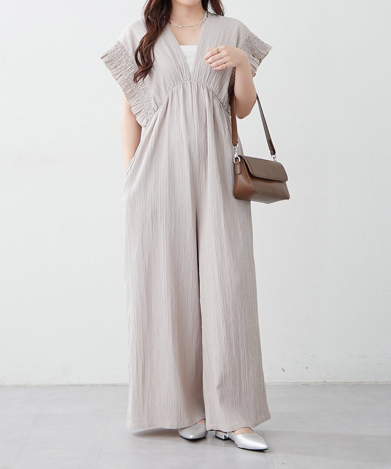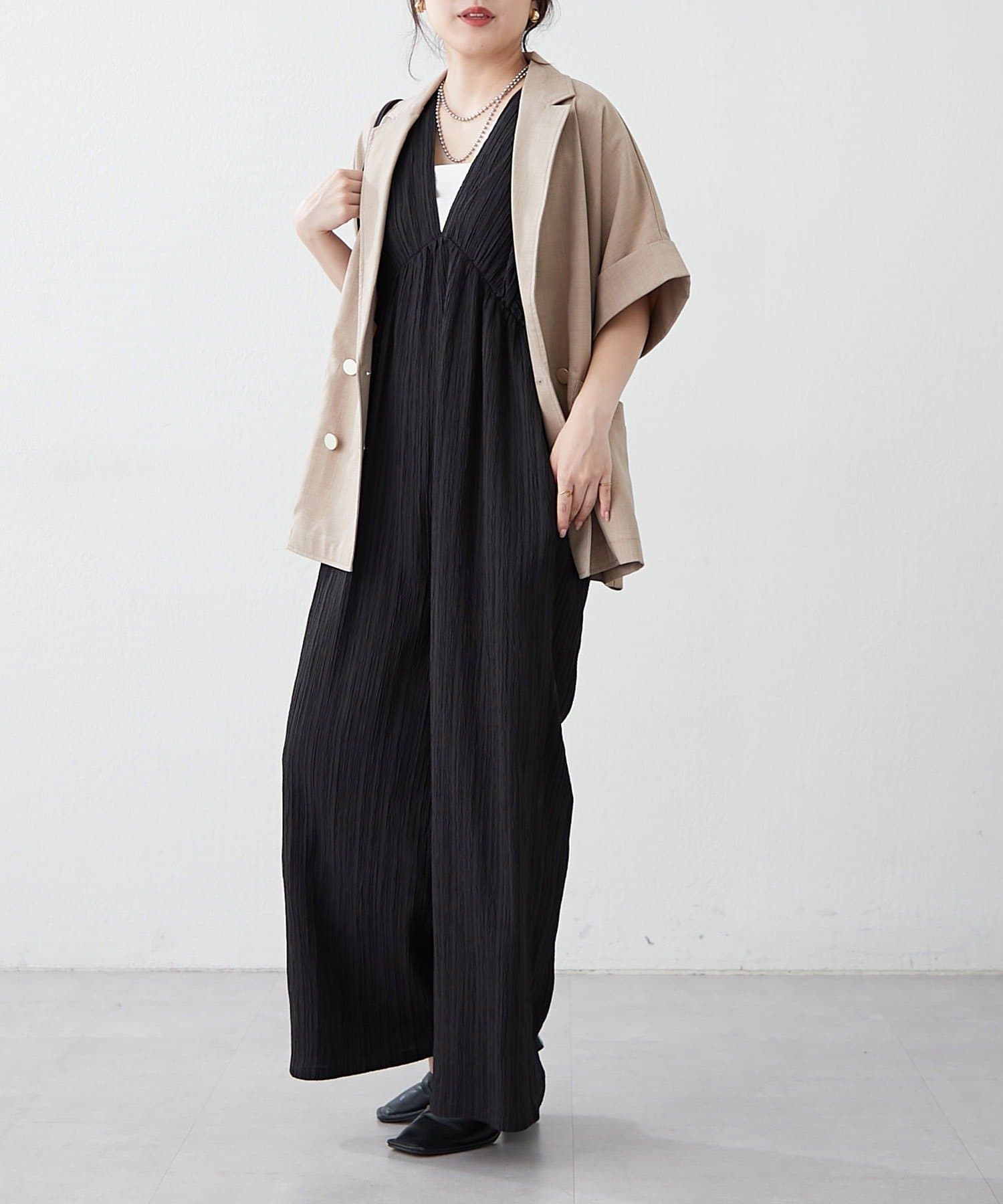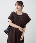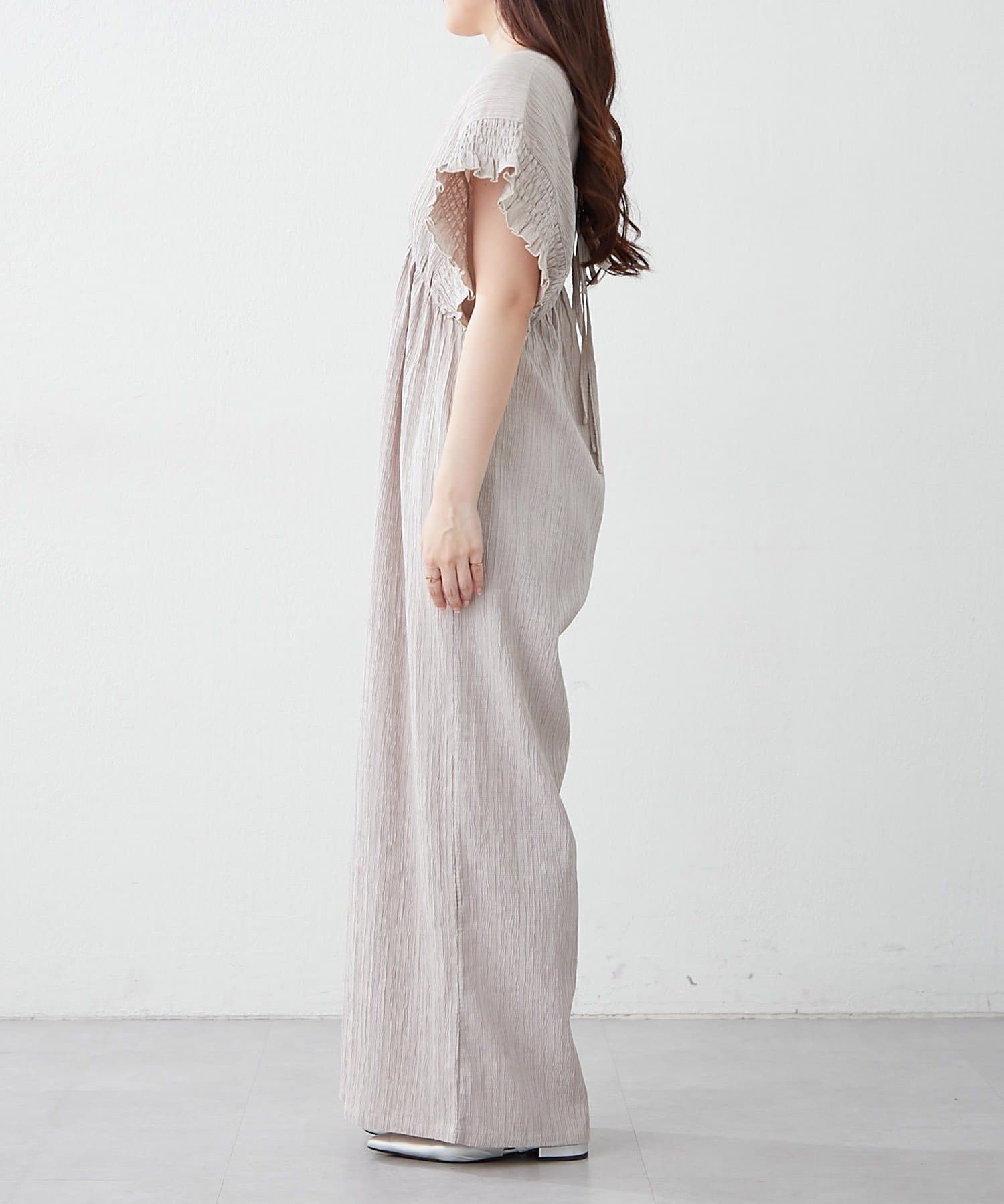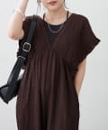 【continuer】一枚でらくちんオシャレ!シャーリングサロペット