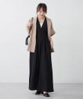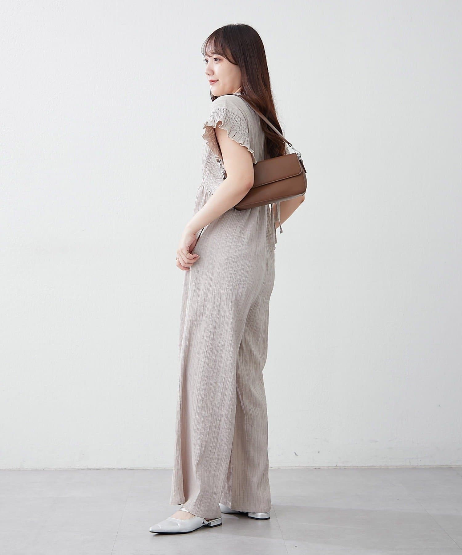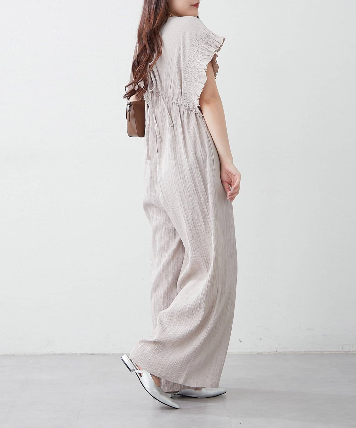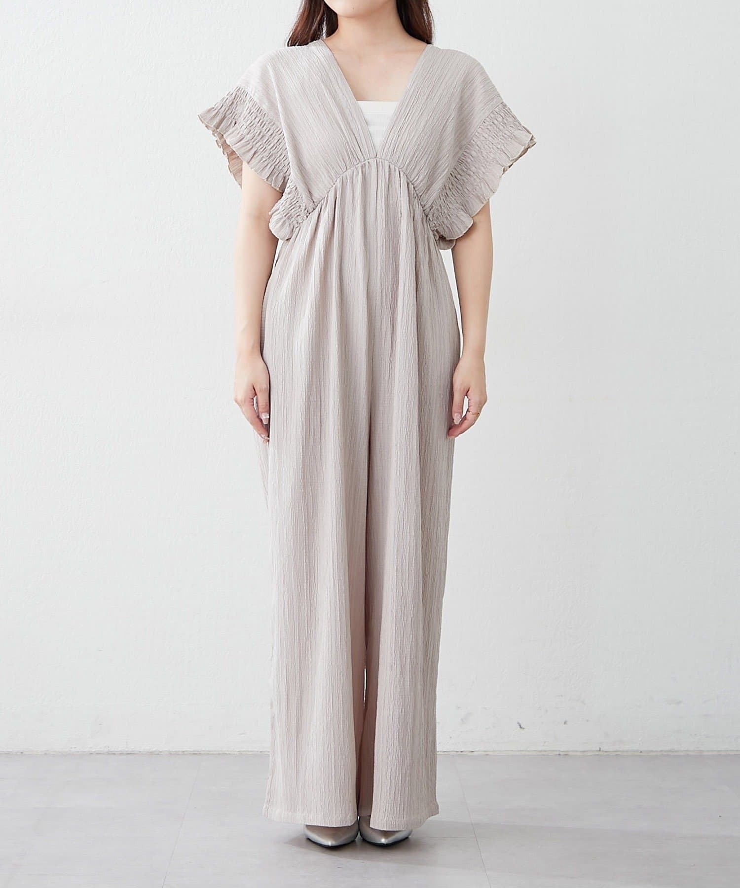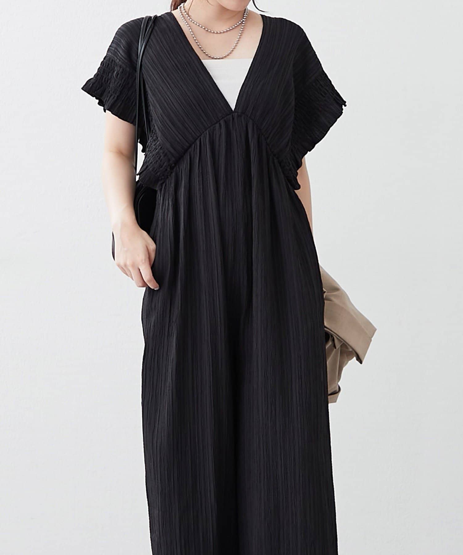 【continuer】一枚でらくちんオシャレ!シャーリングサロペット