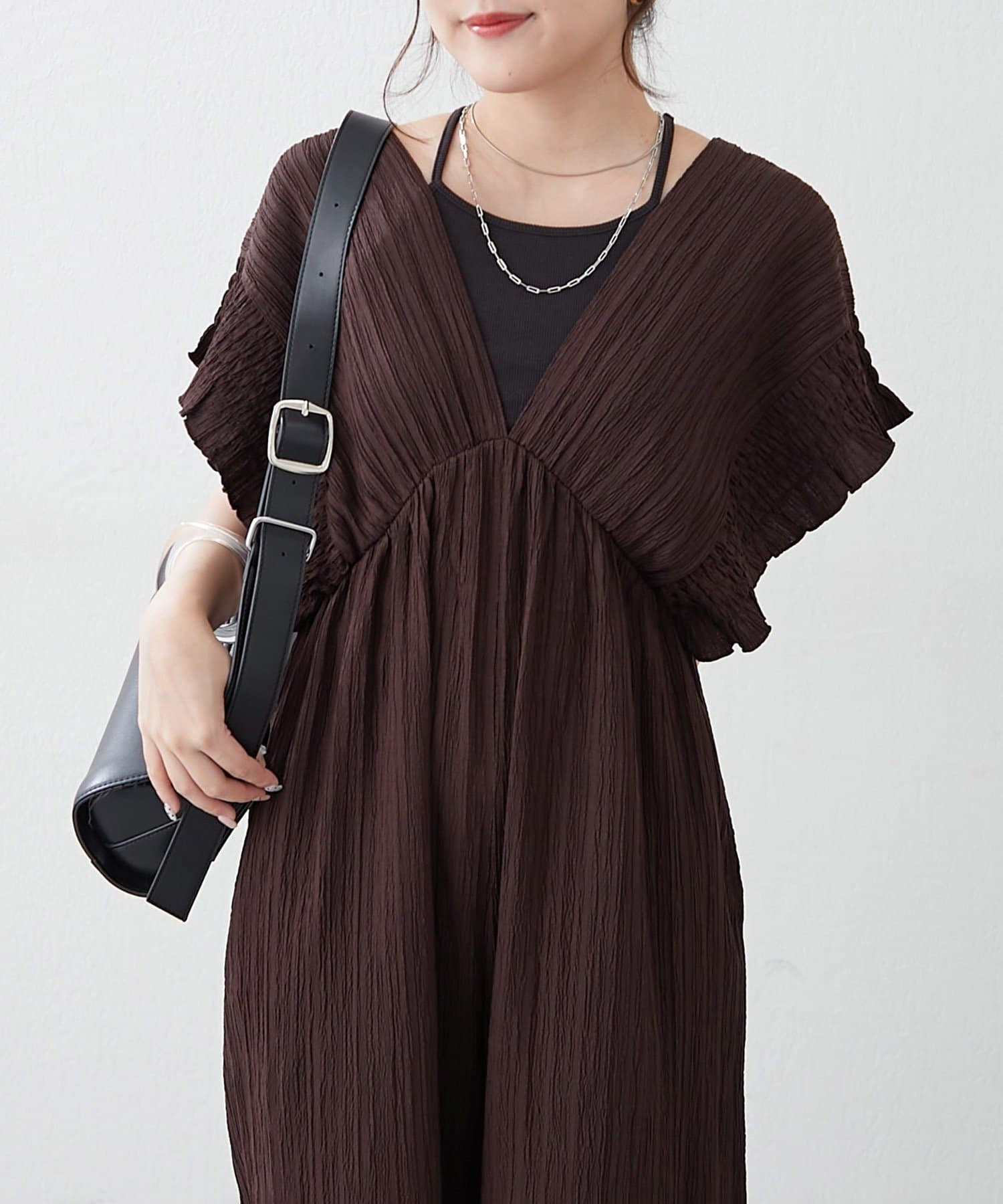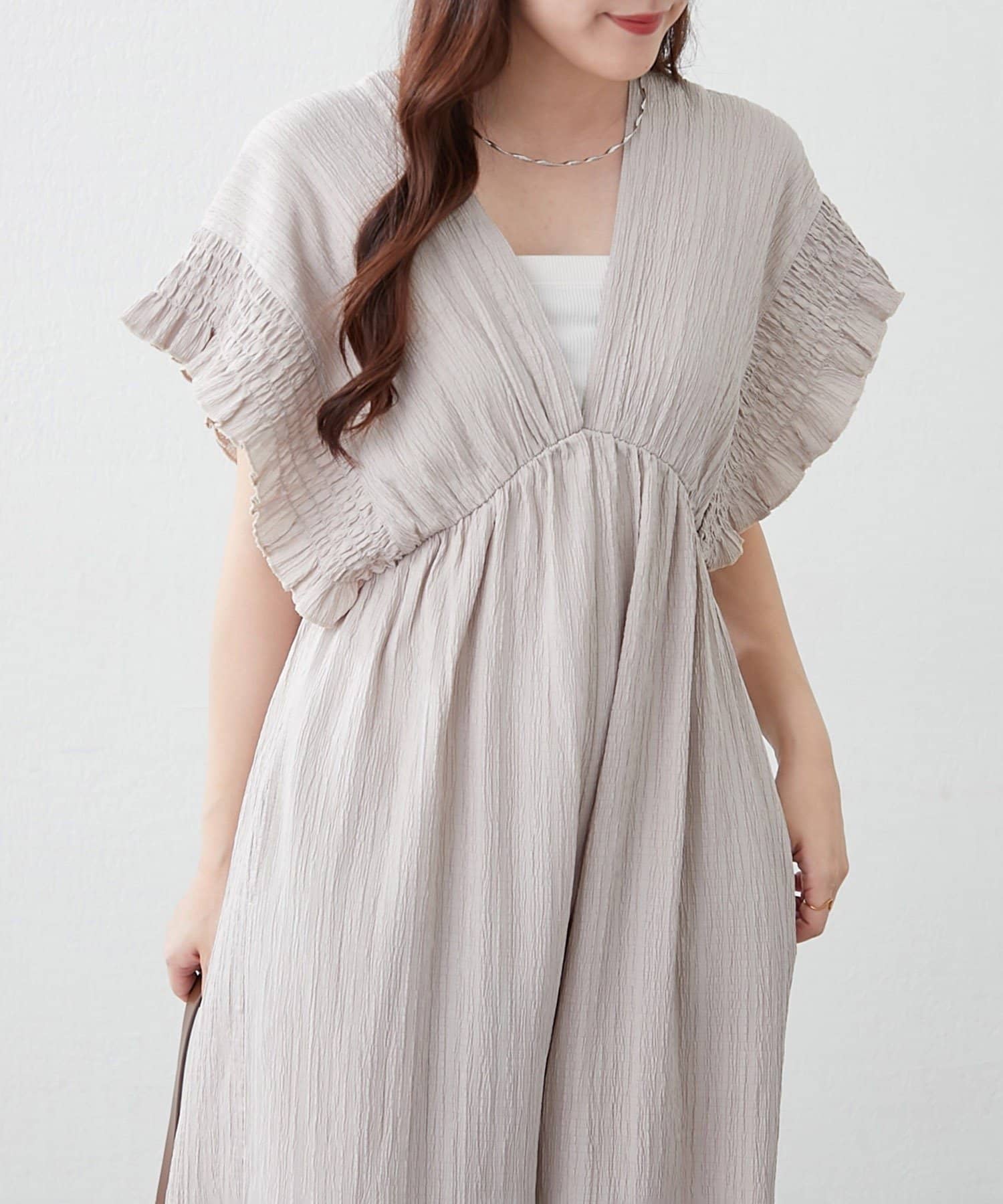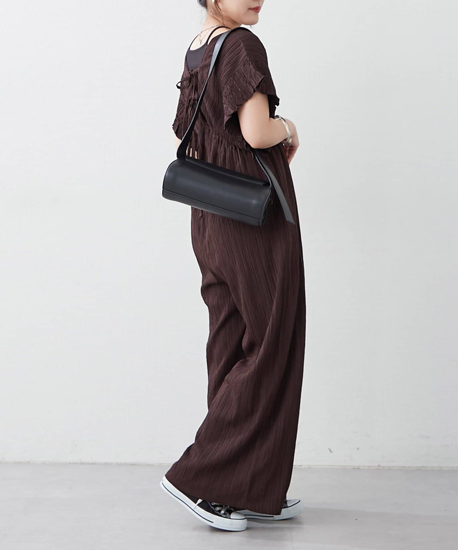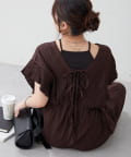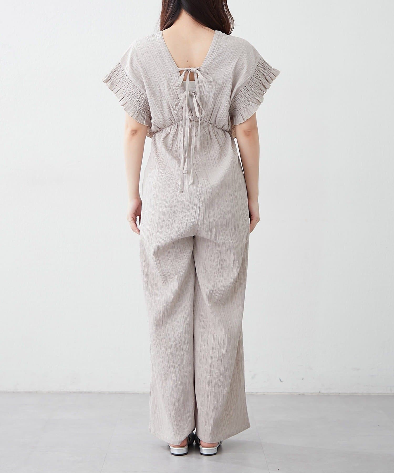 【continuer】一枚でらくちんオシャレ!シャーリングサロペット
