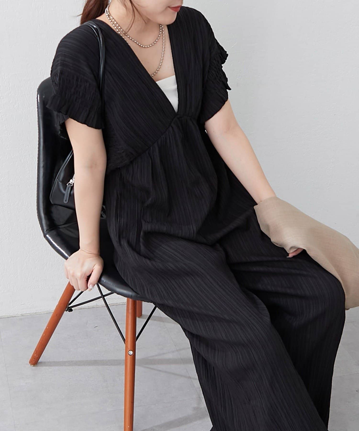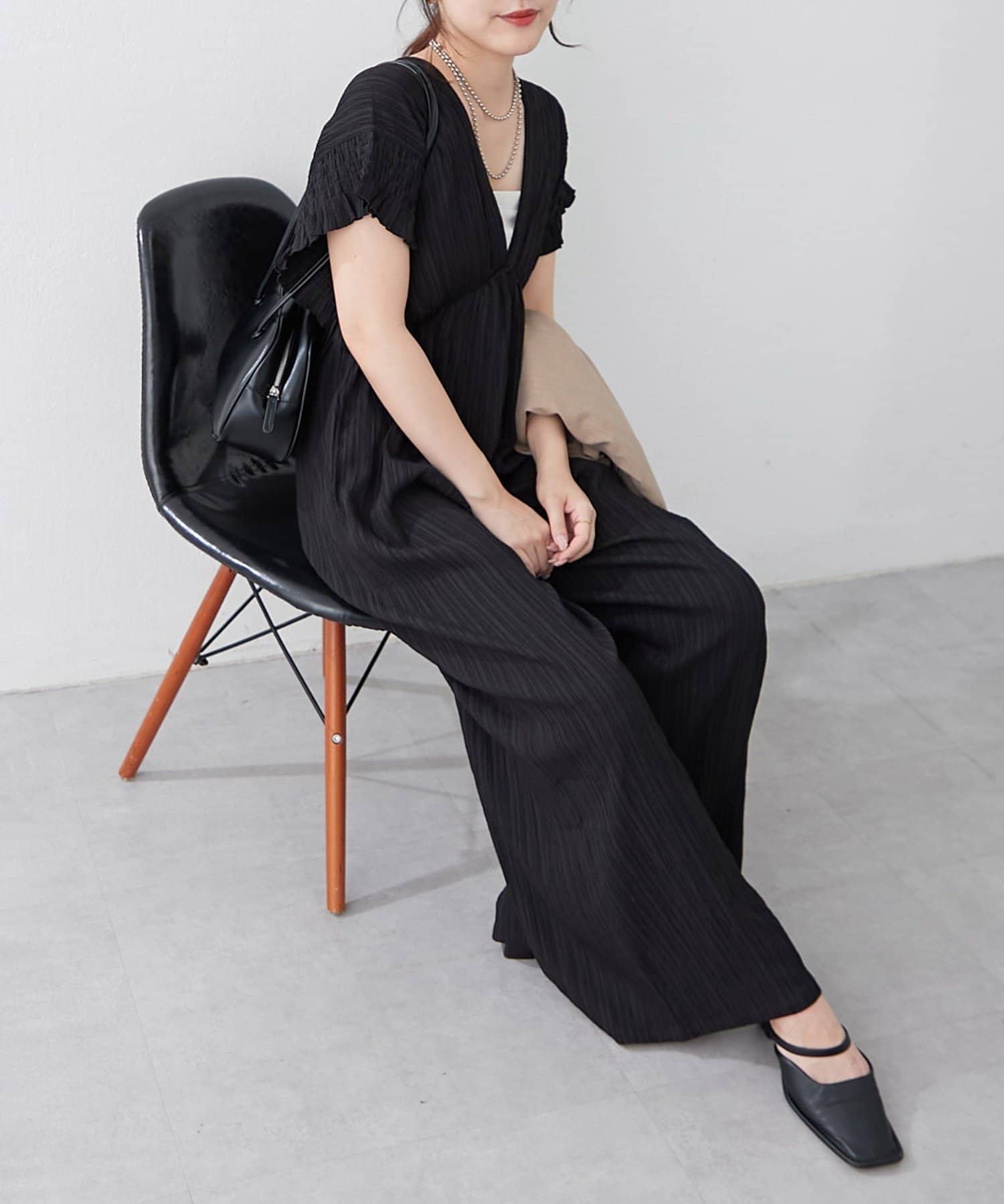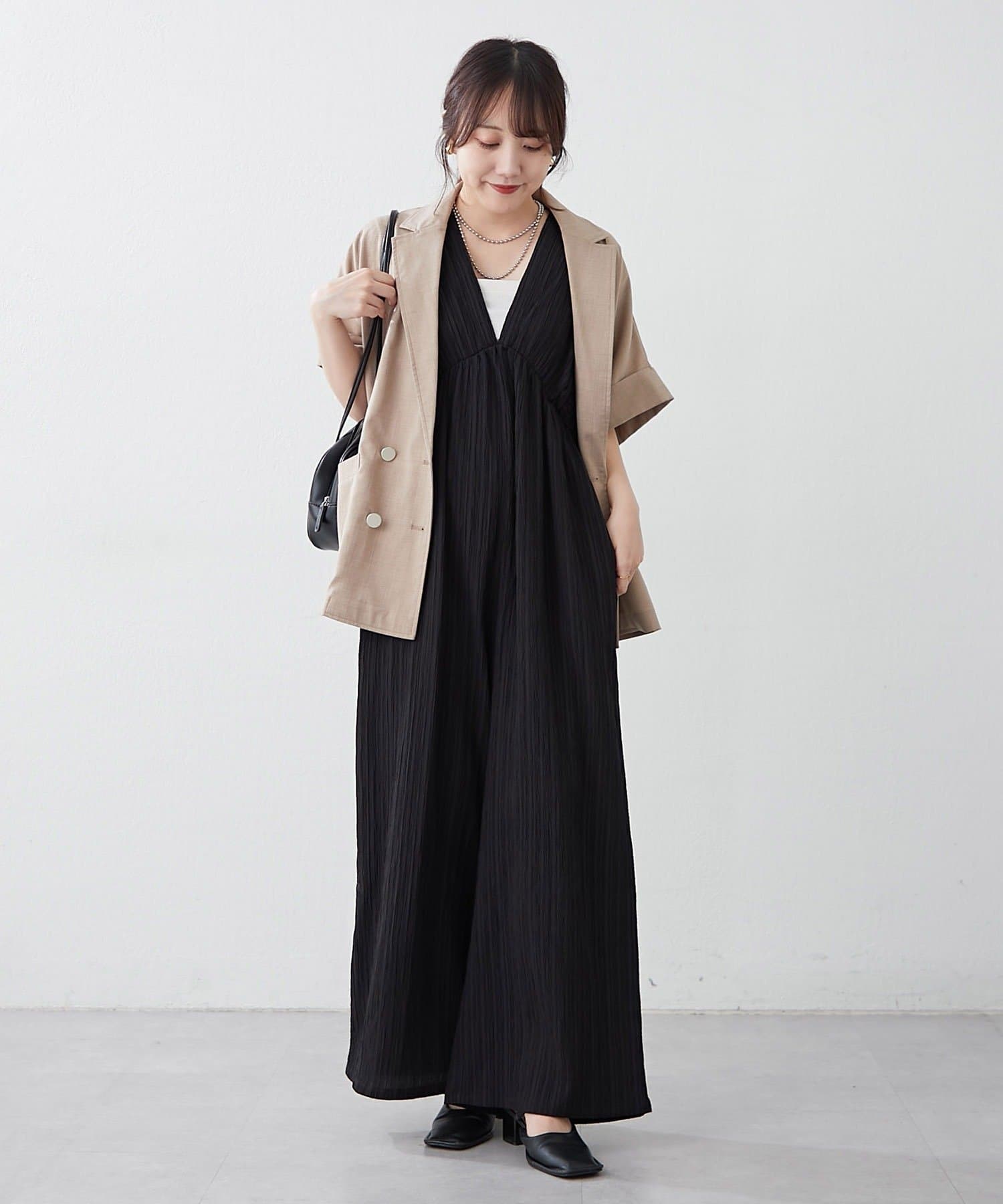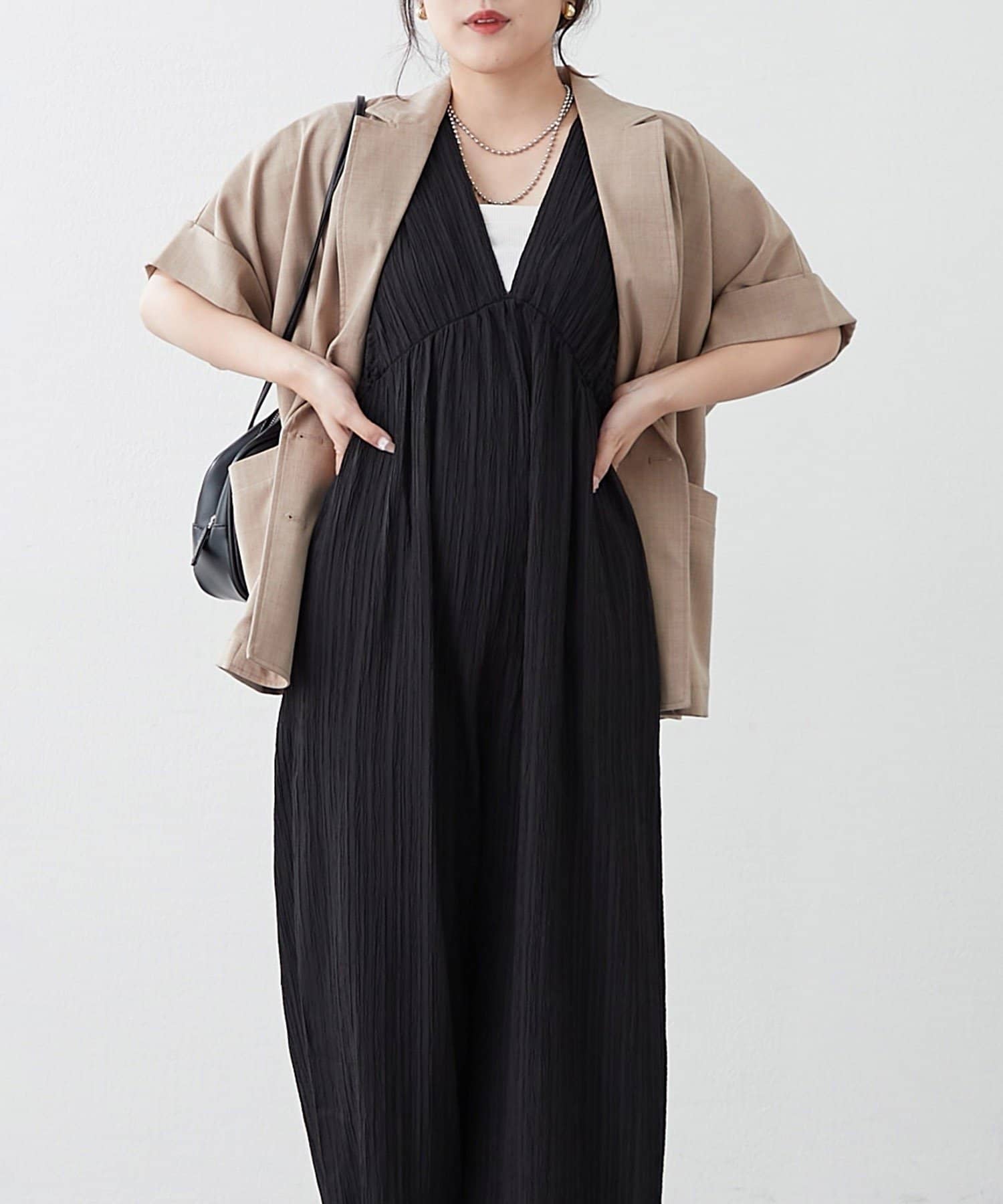 ・伸縮性のある生地感で着心地抜群!!一枚でお洒落になれちゃう優秀オールインワン