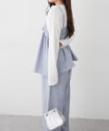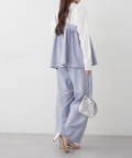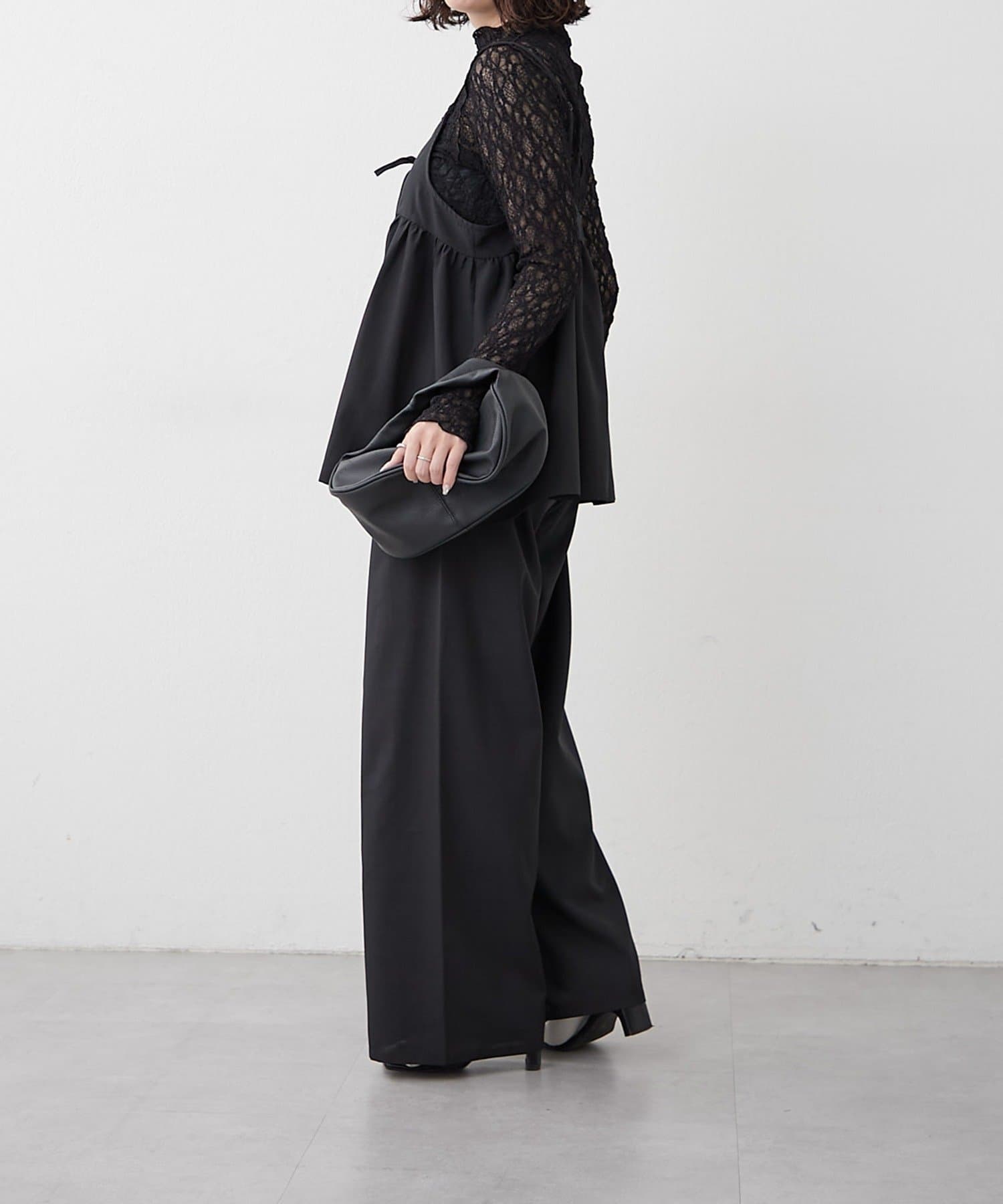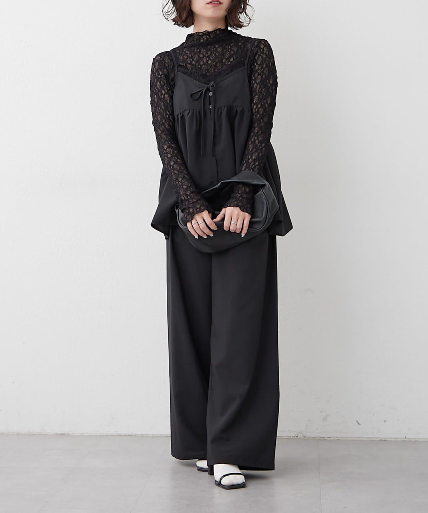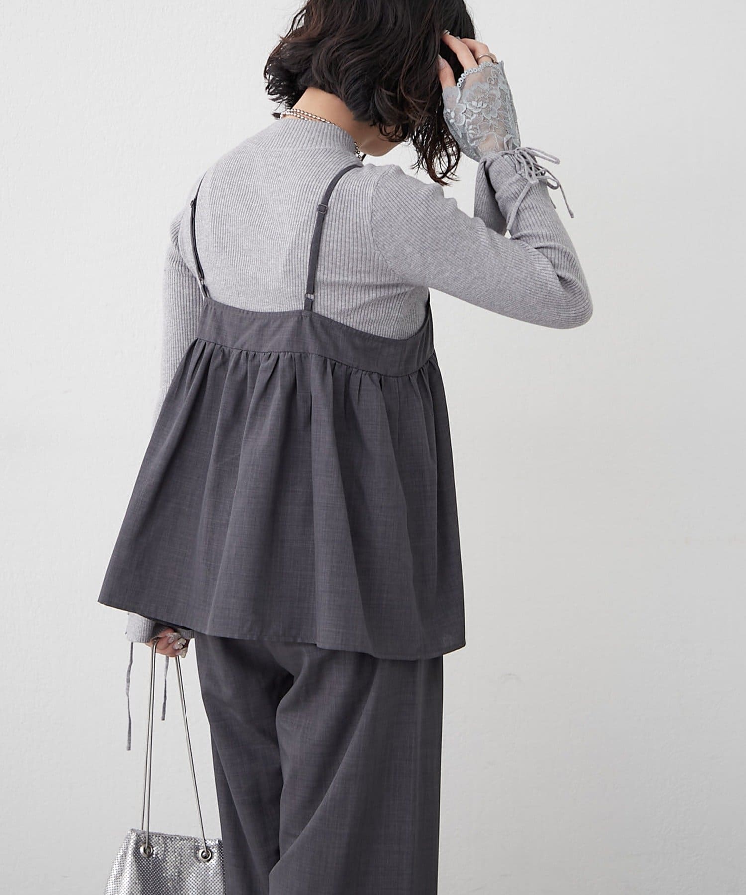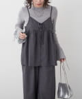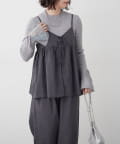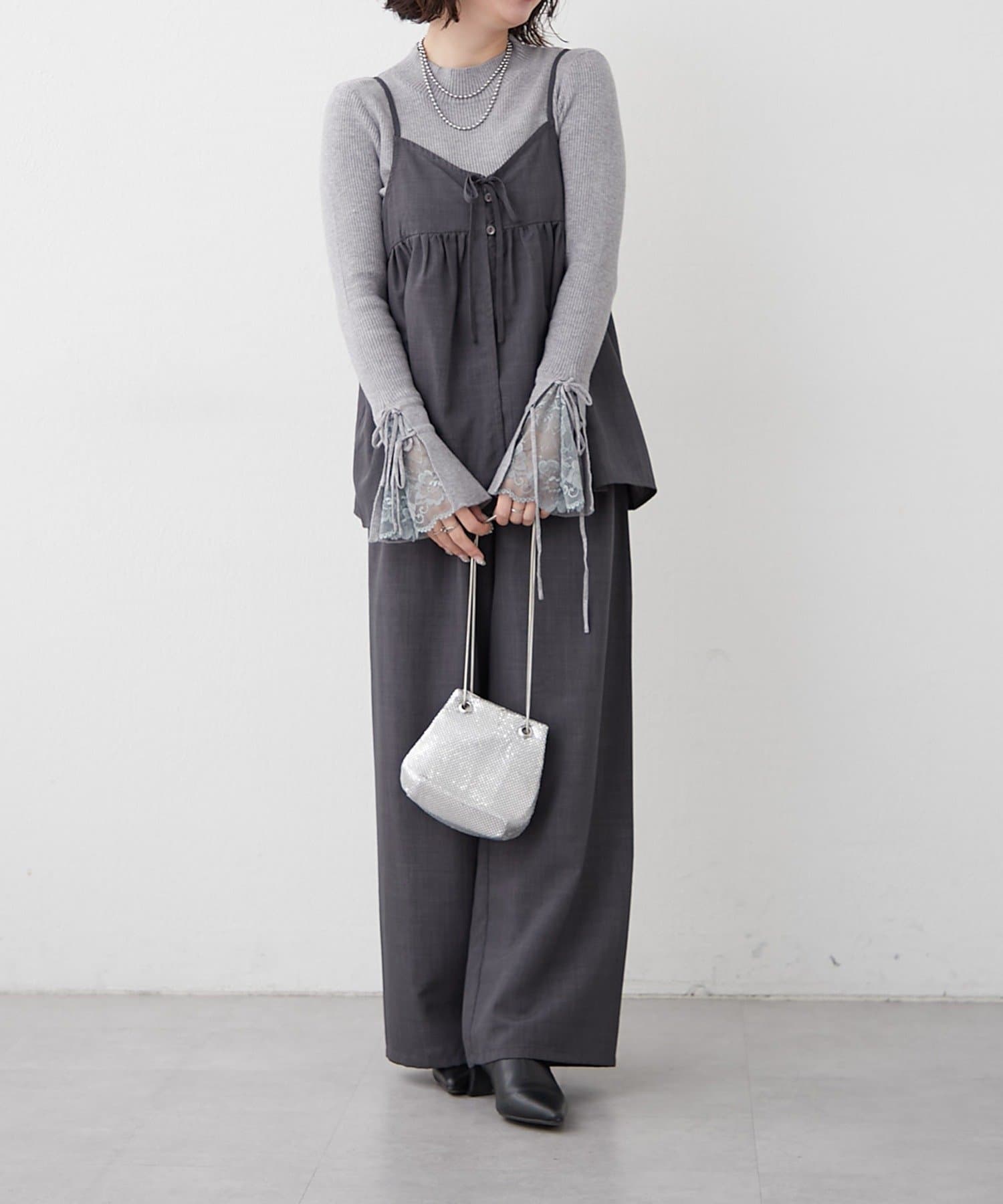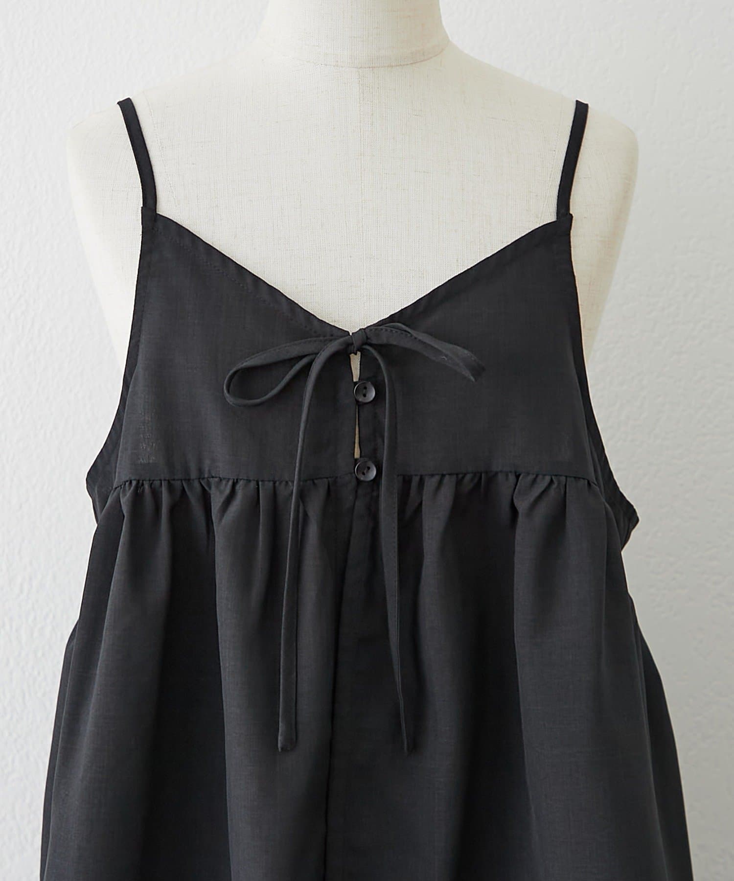 ・前リボンがポイントのキャミチュニックとワイドパンツのセットアップ