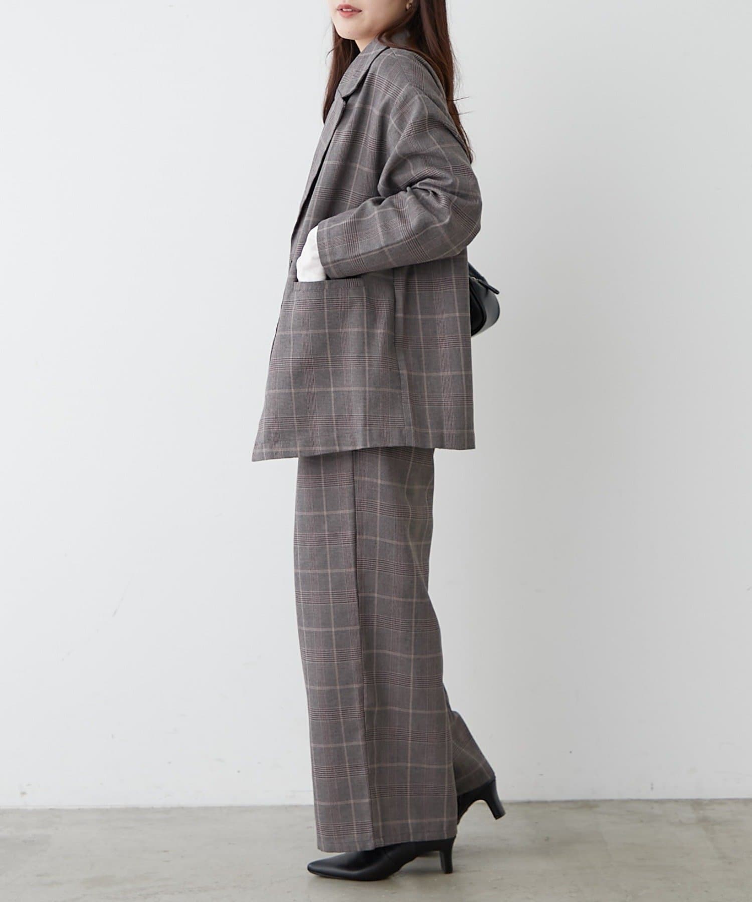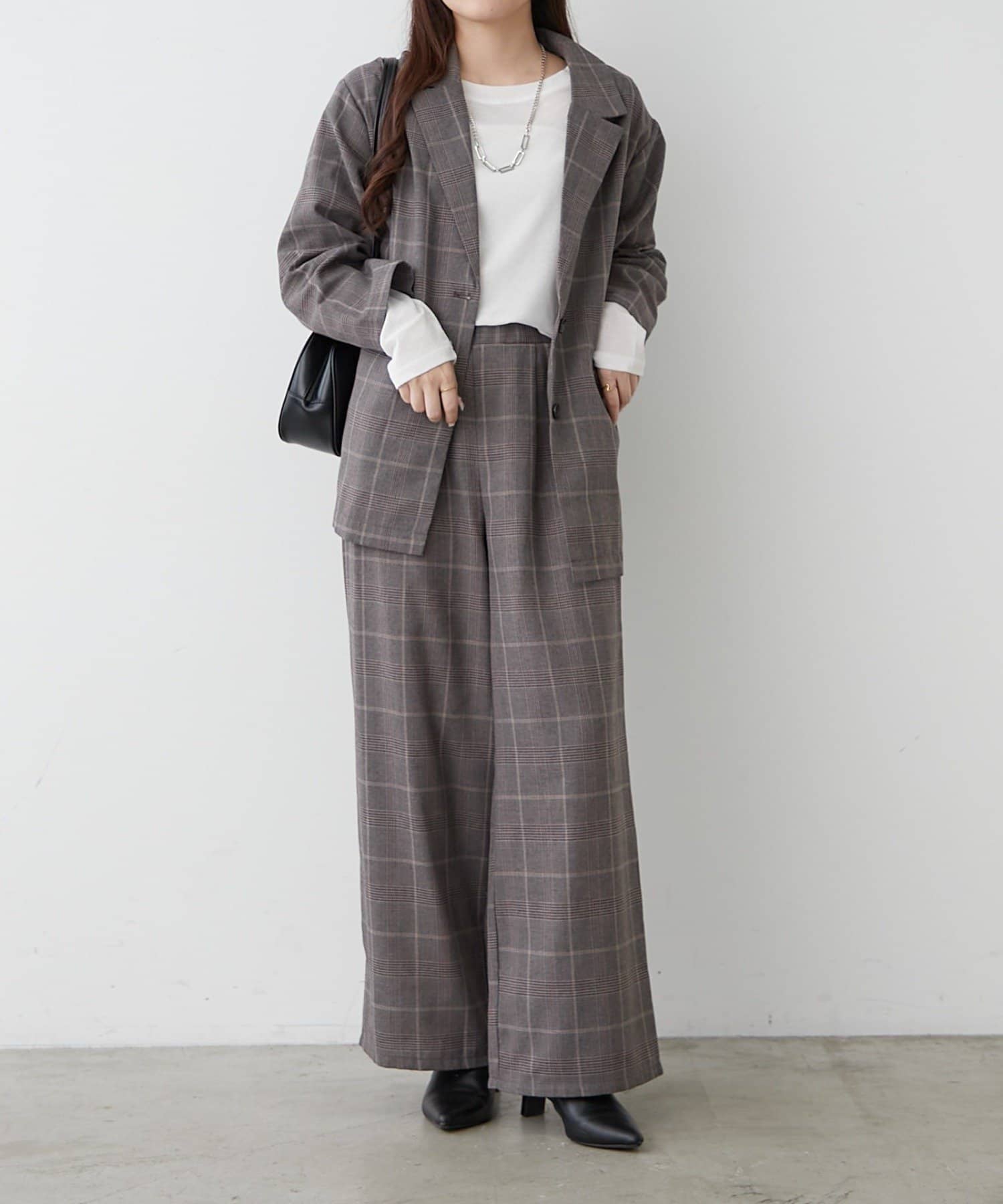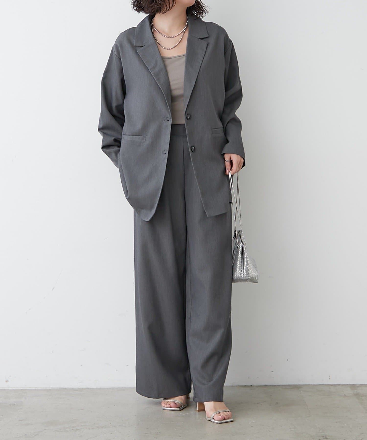 【2枚SET】テーラードジャケット+ワイドパンツ