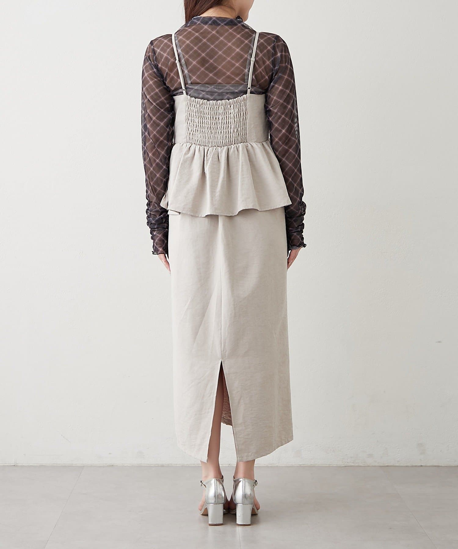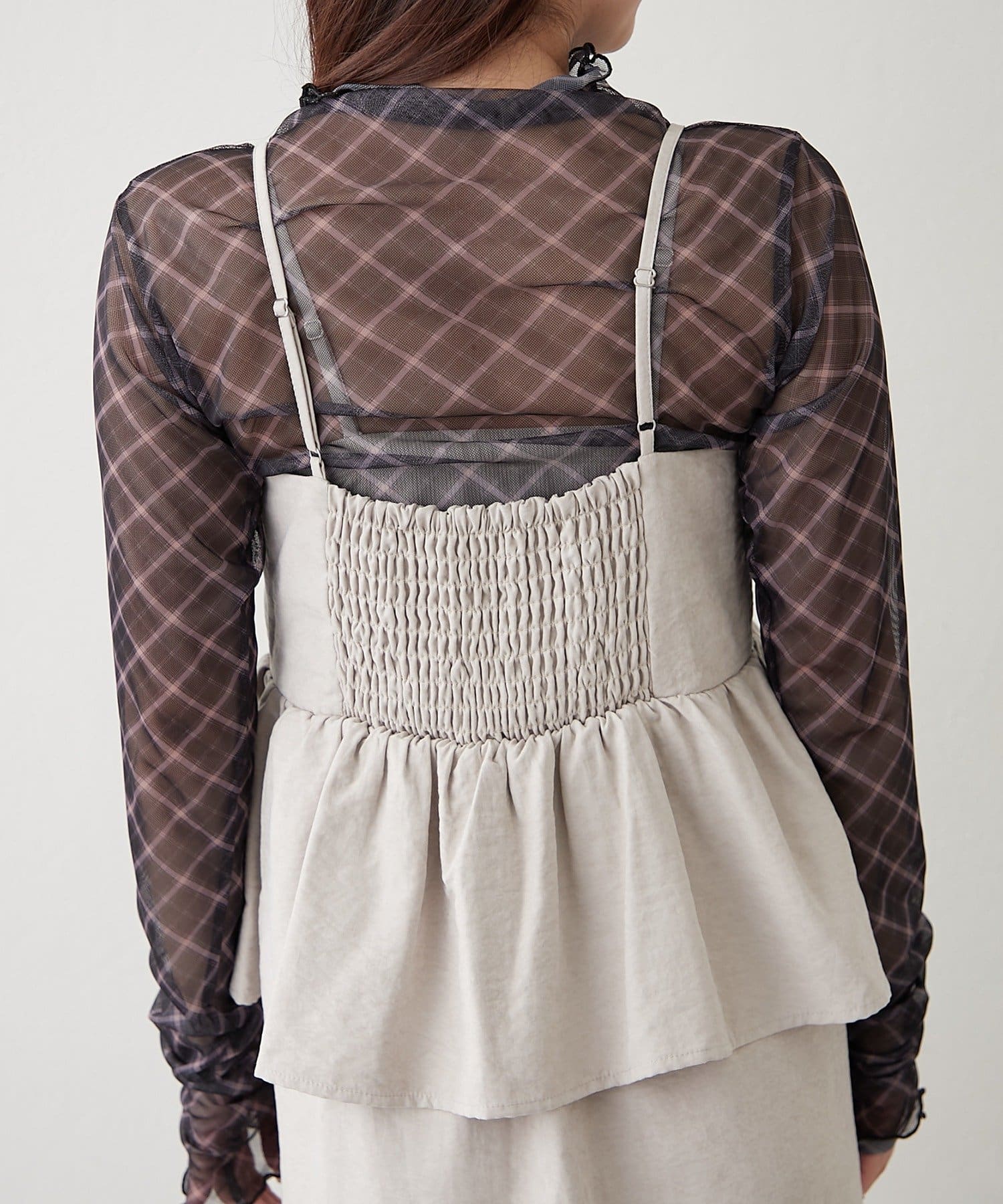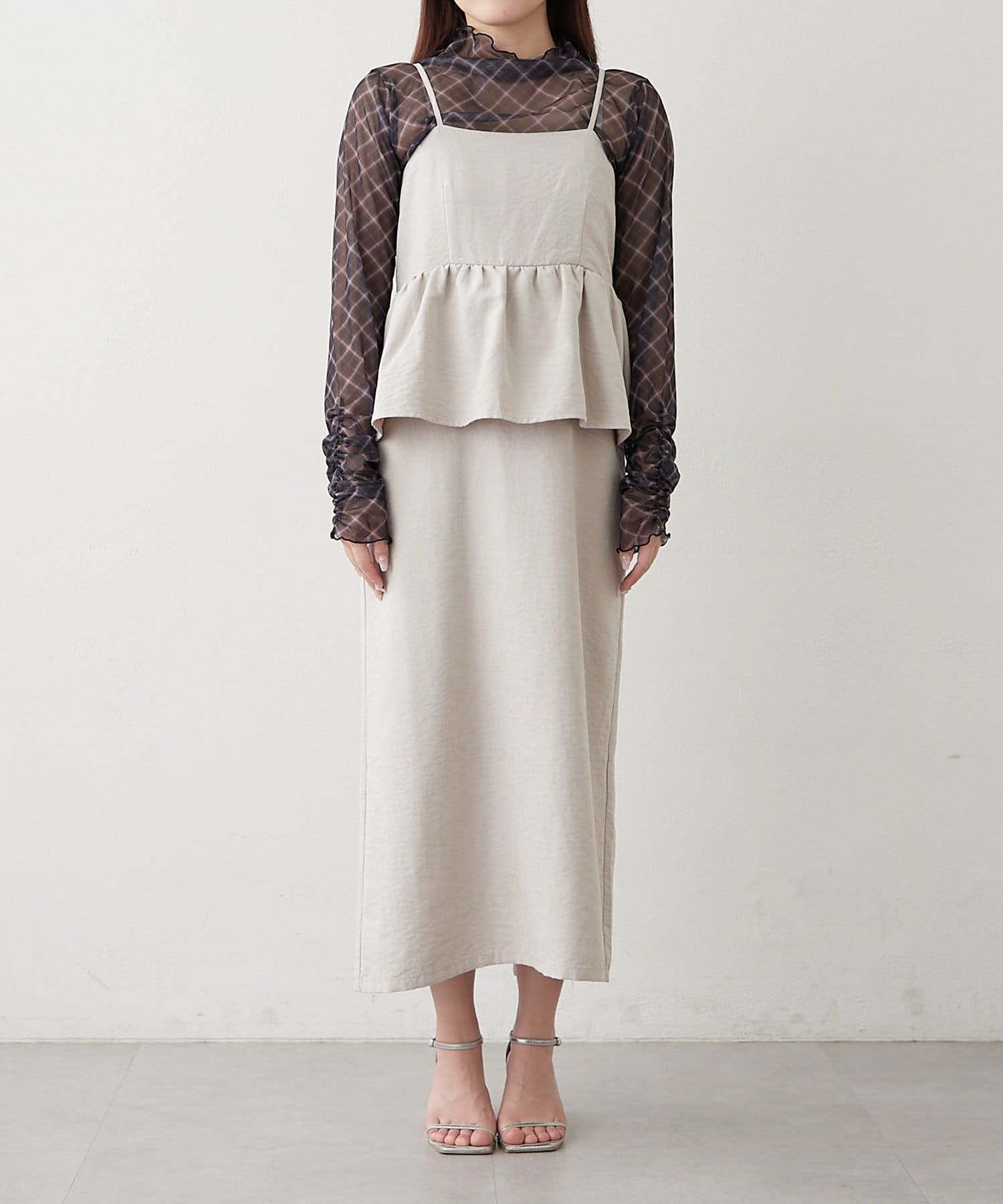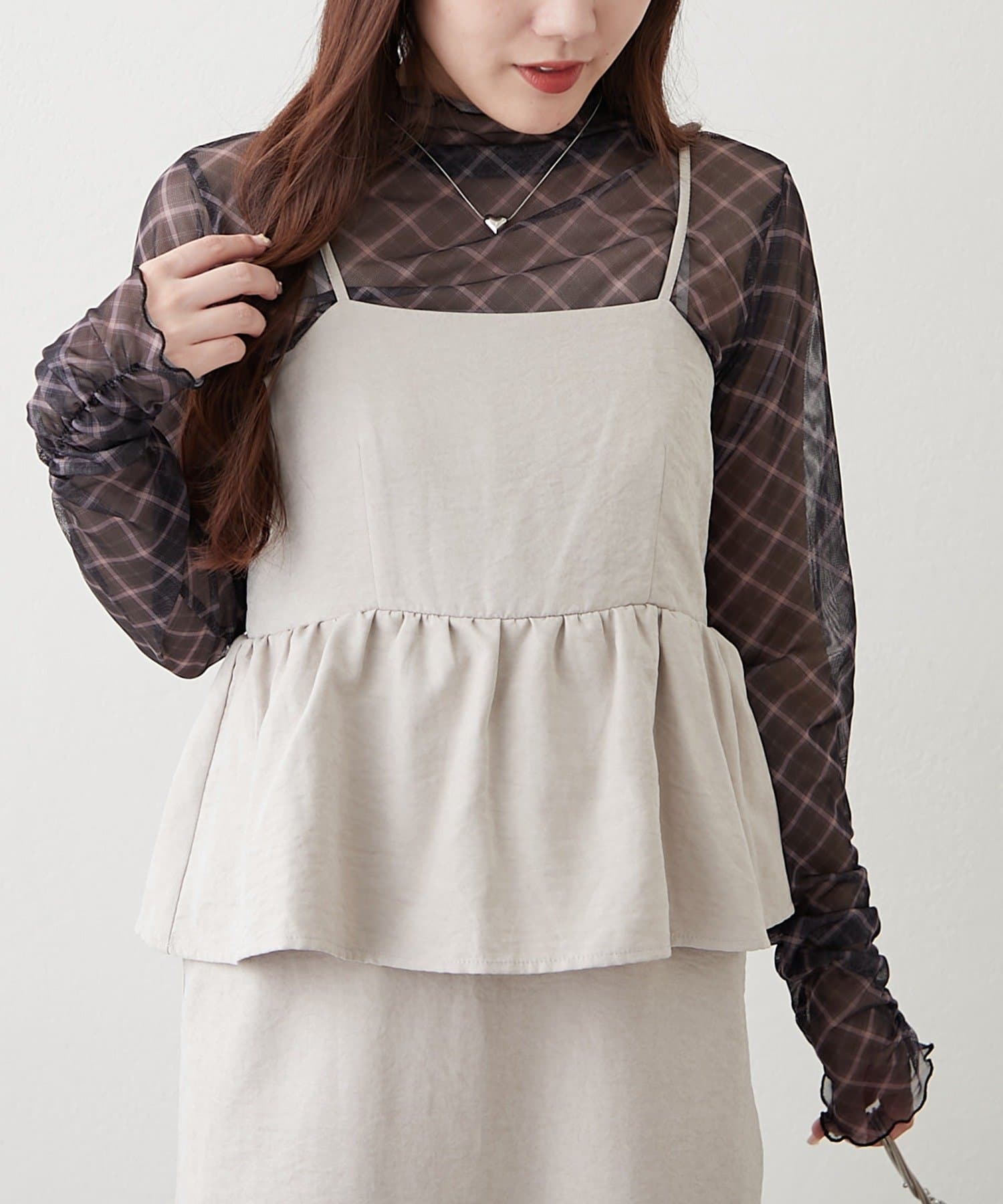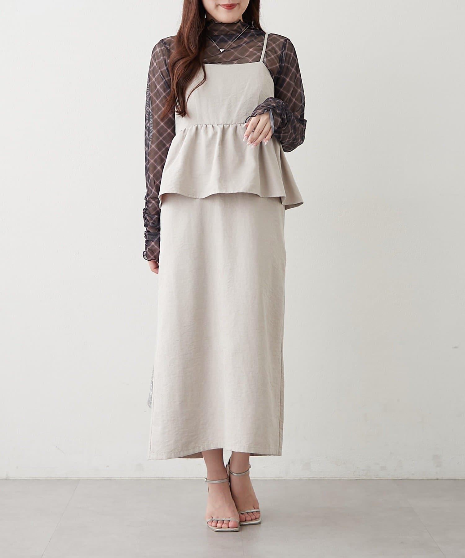 ・透け感のあるトップスと、キャミソールワンピースのセットアイテム