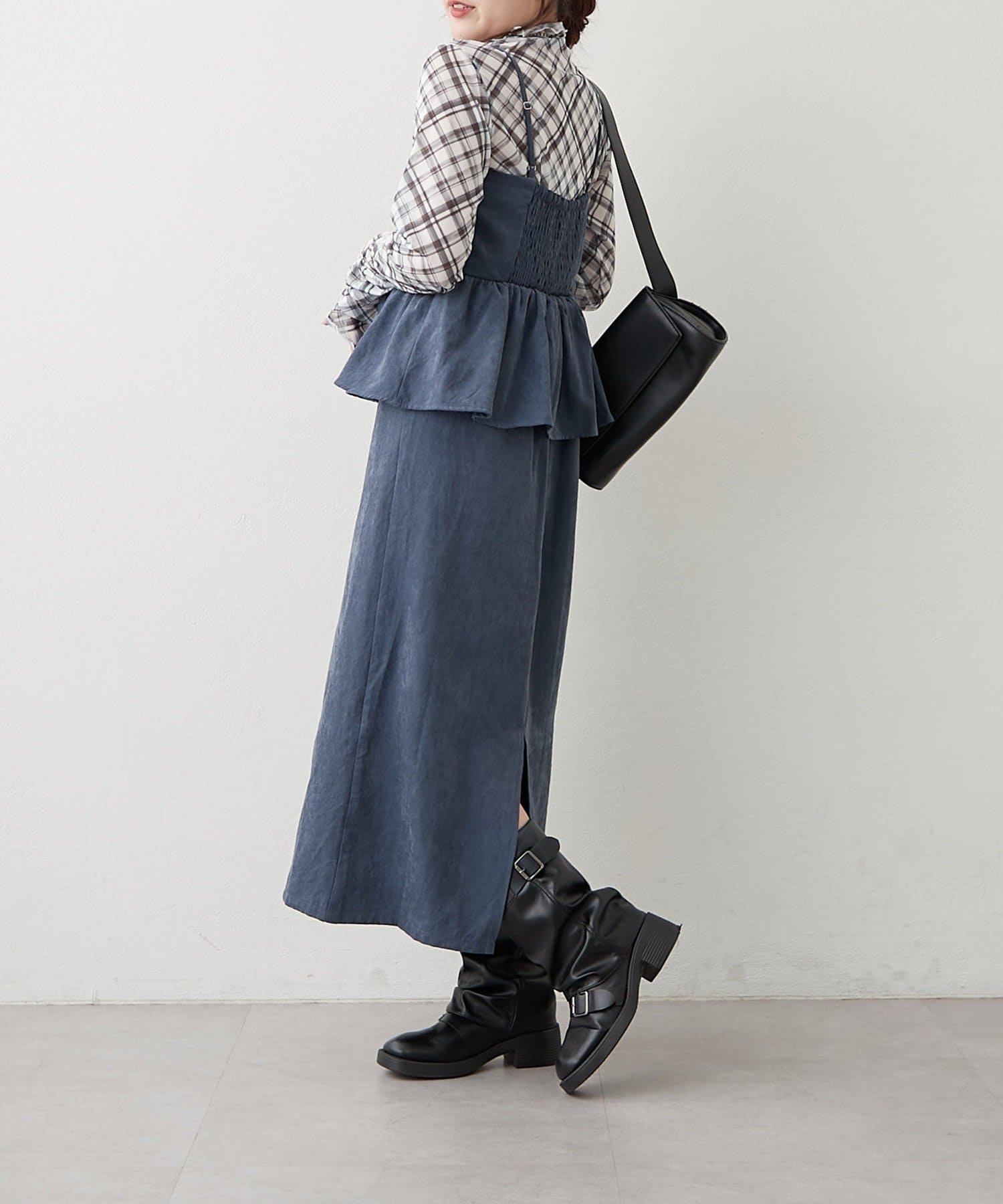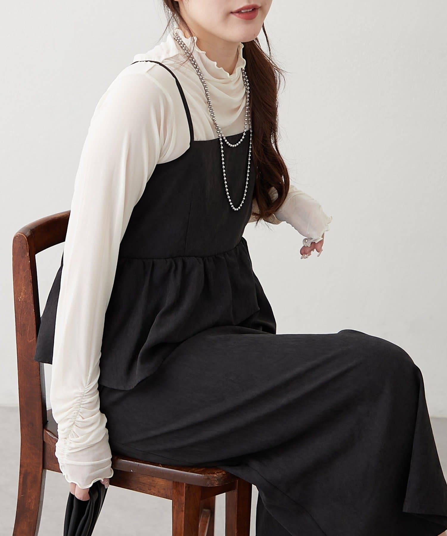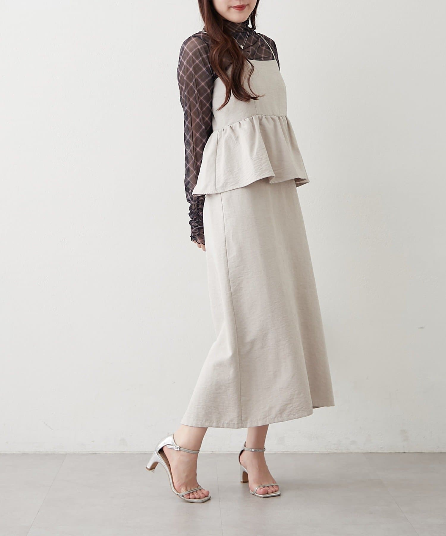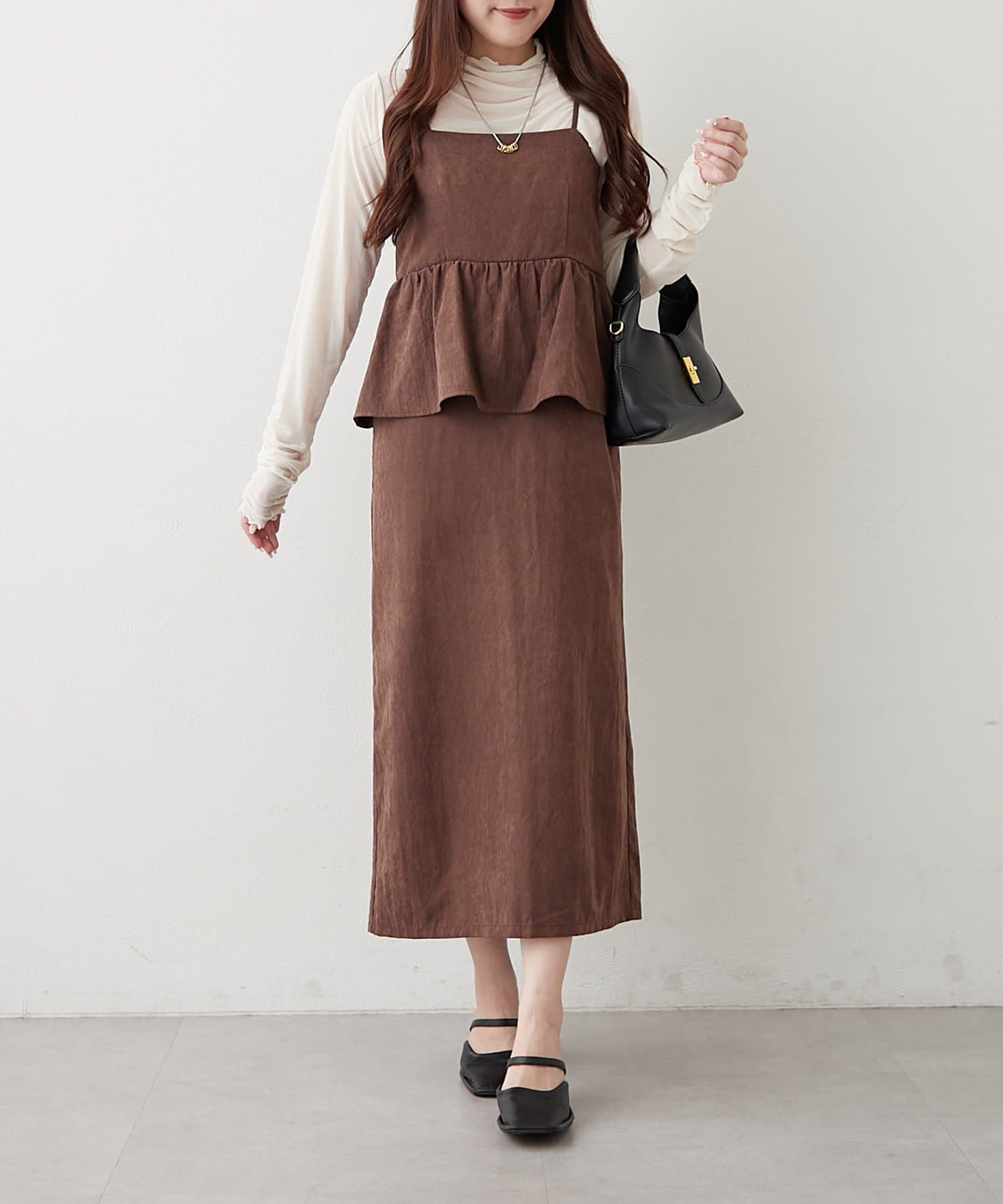 ・合わせるインナーで印象が変わり、着回し力抜群。キャミワンピは、ペプラムデザインでスタイルアップ効果も期待できます