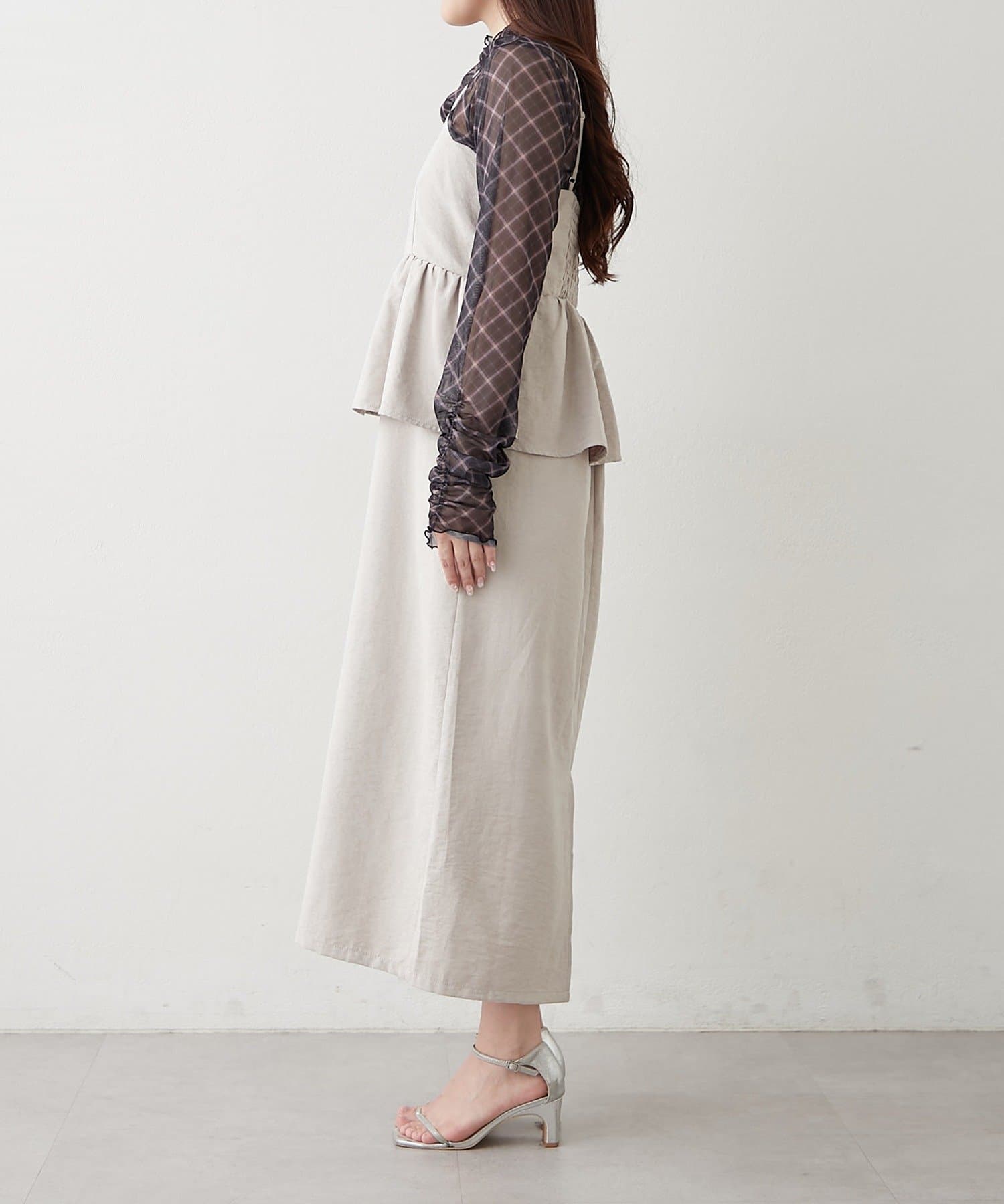 【2枚SET】ペプラムキャミワンピ+シアーロンT