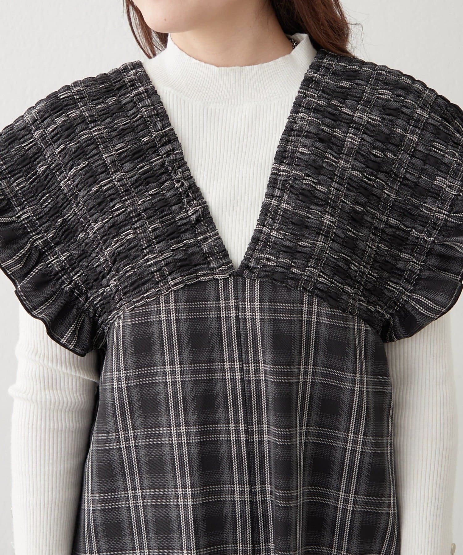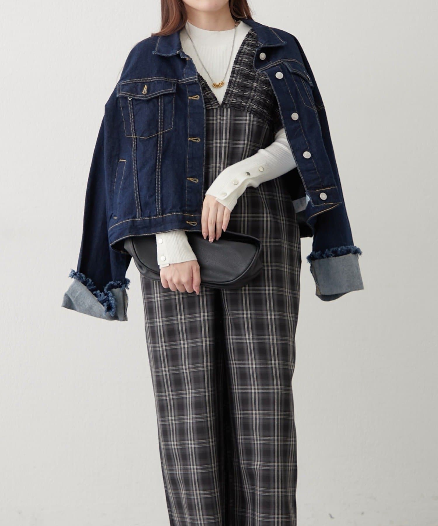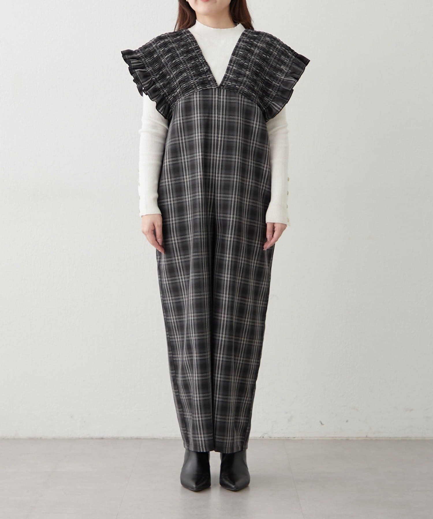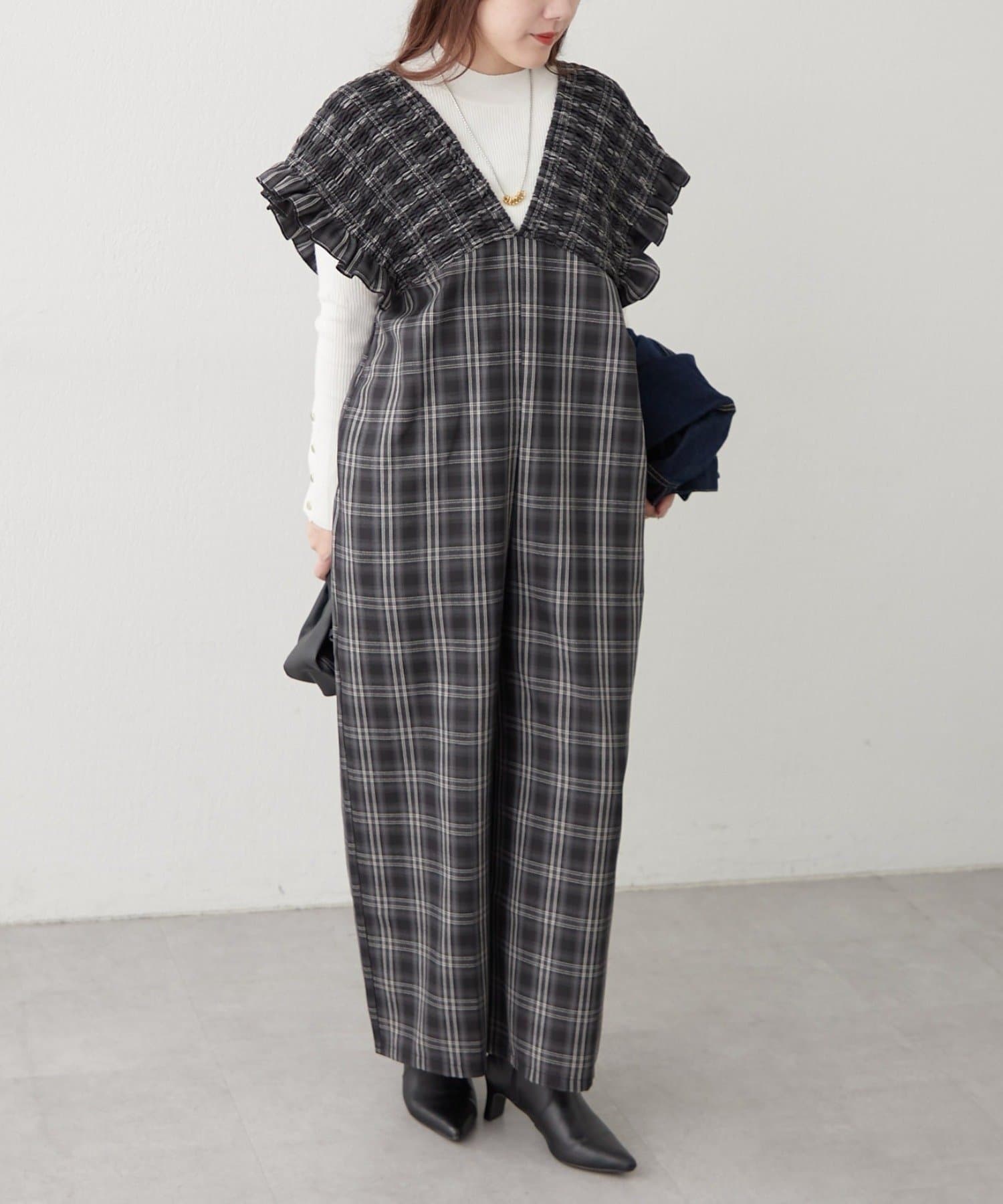 ・大判なチェック柄が存在感のあるサロペ