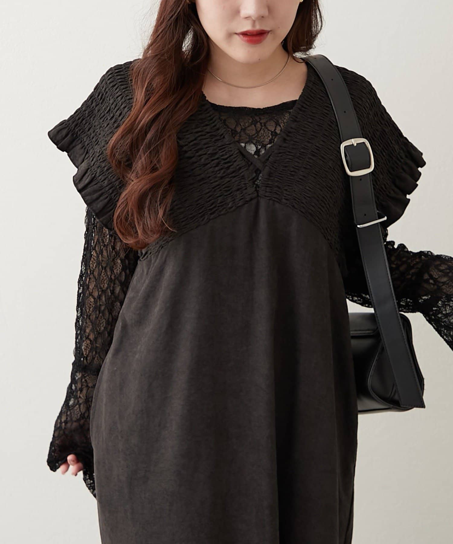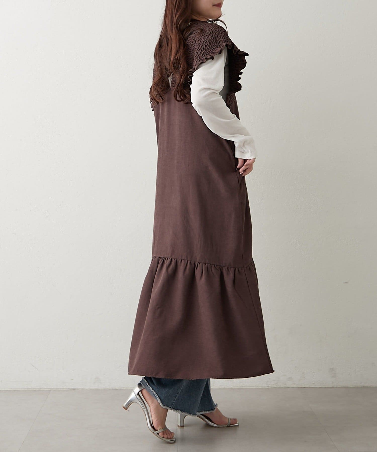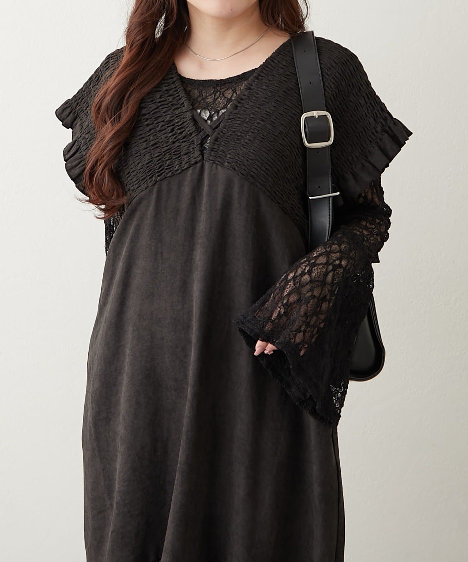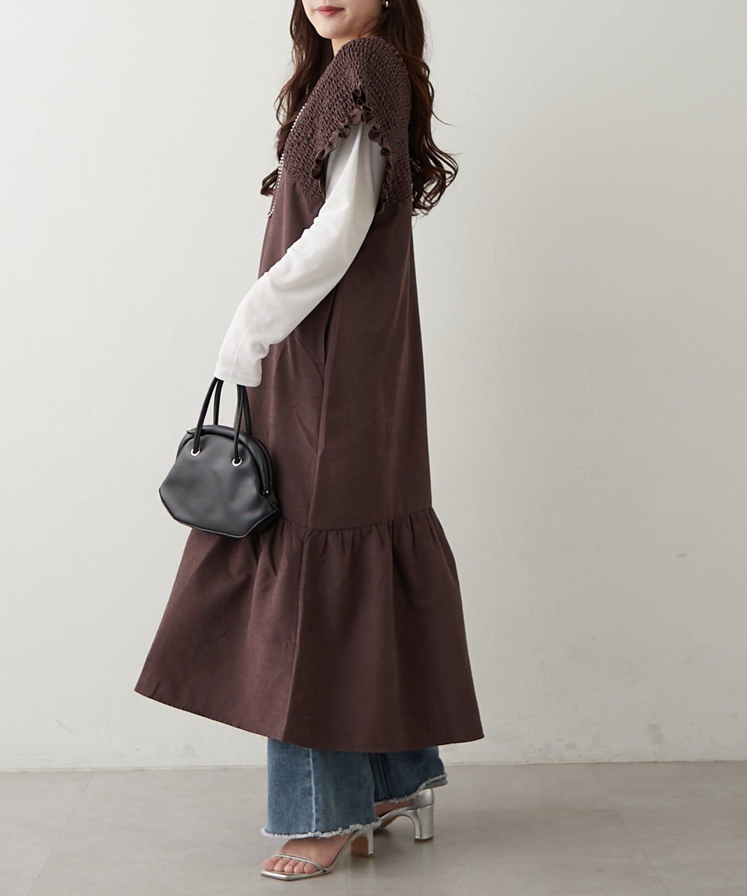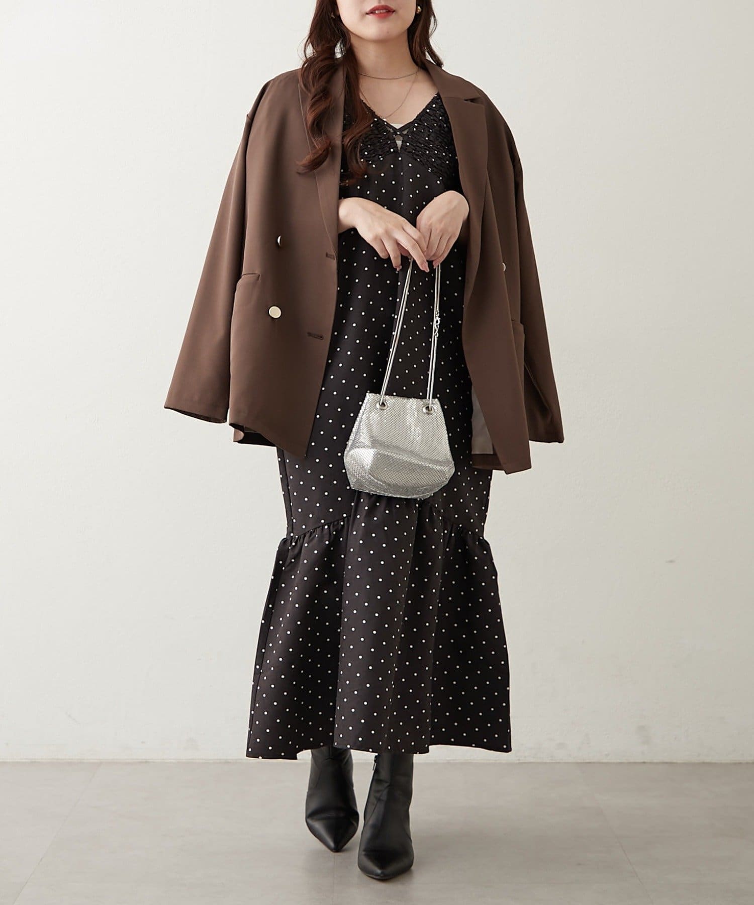 ・胸元が開いたデザインなので、ネックレスで飾るのがマストです