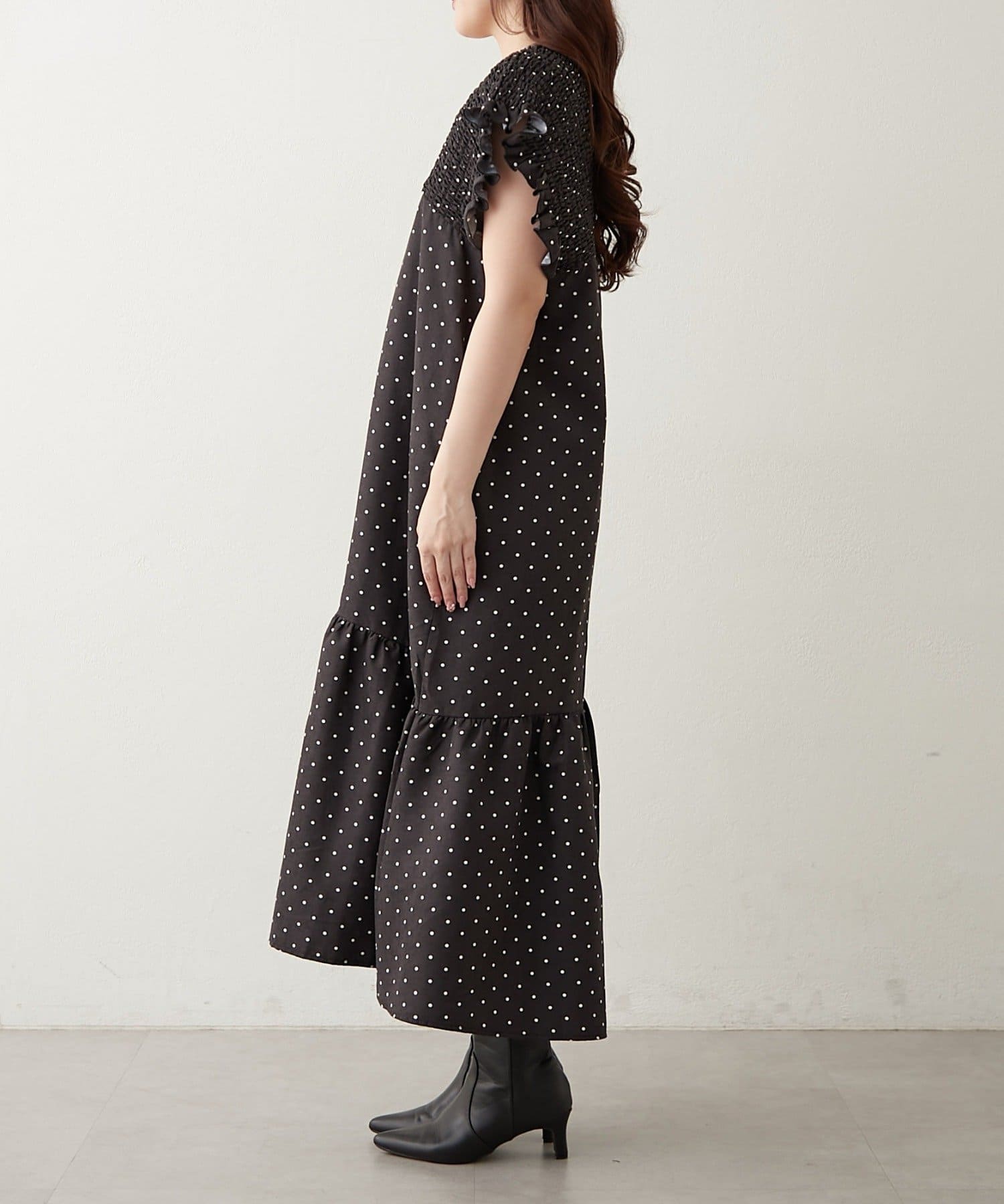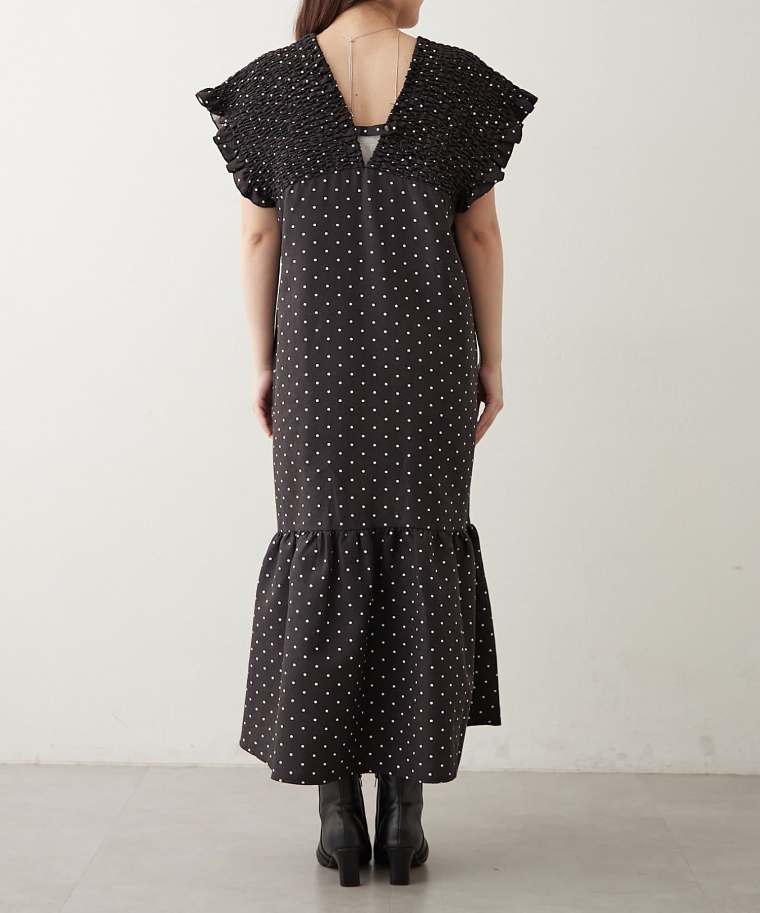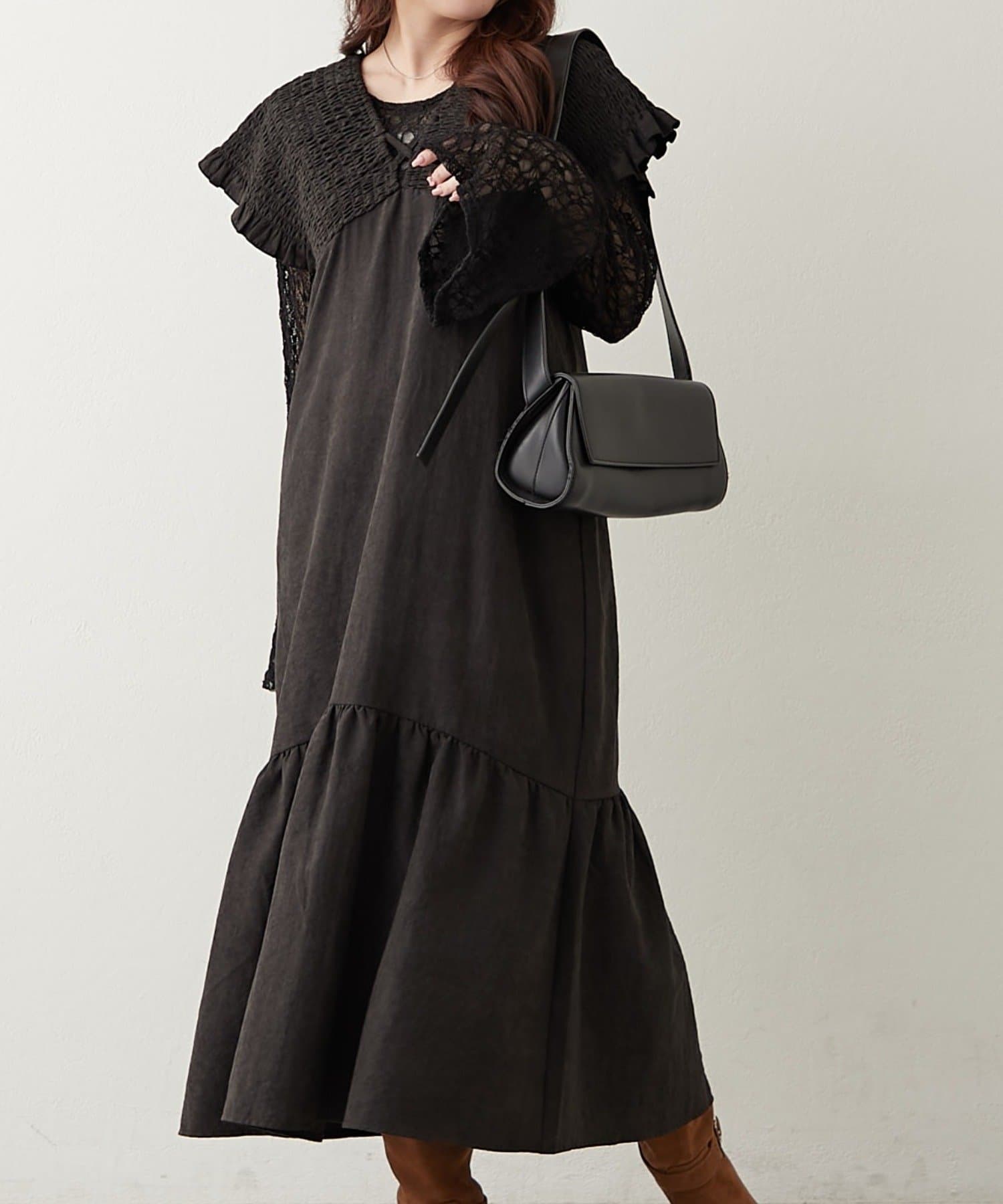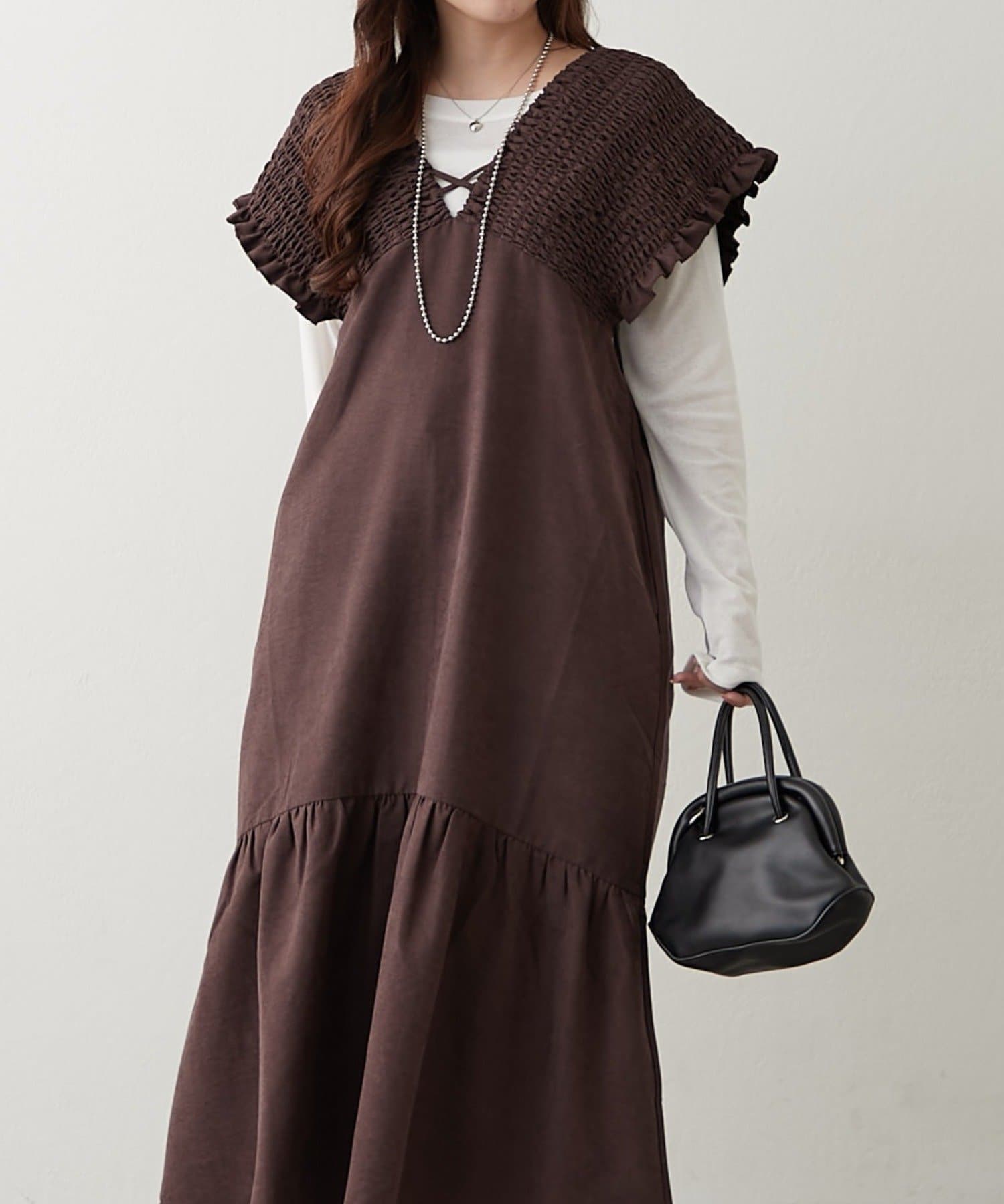 シャーリング裾切替ワンピース