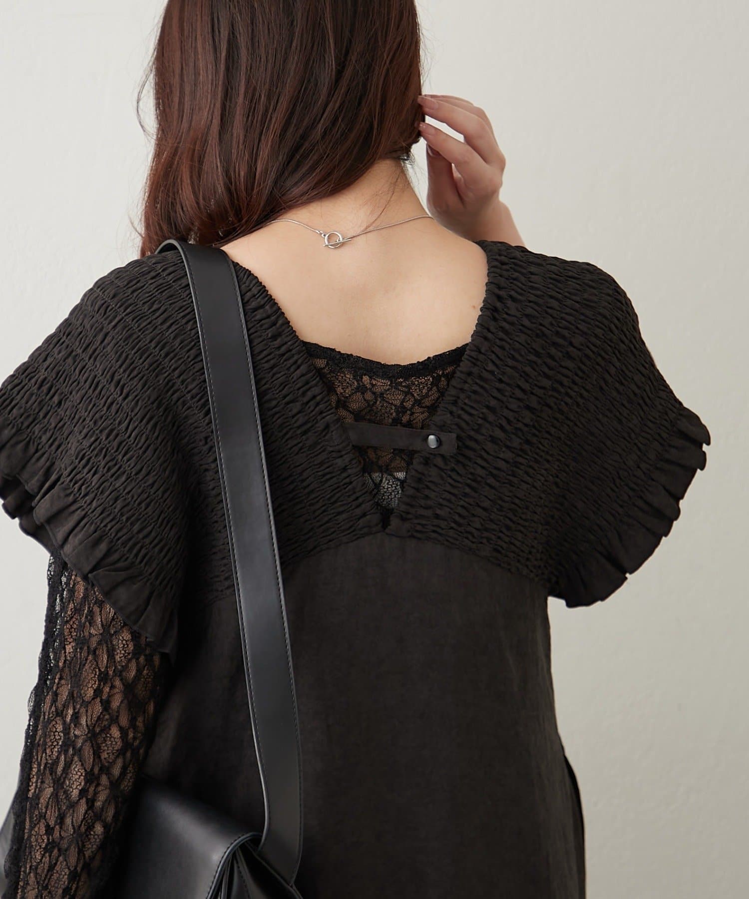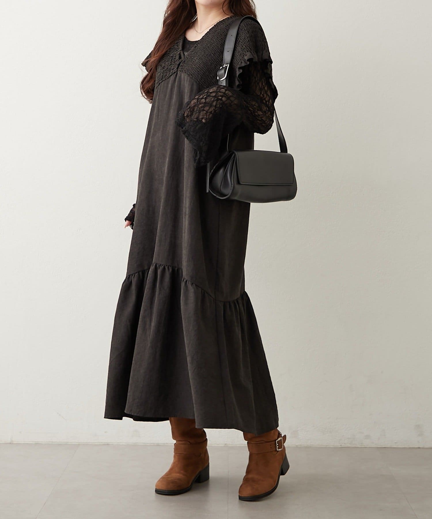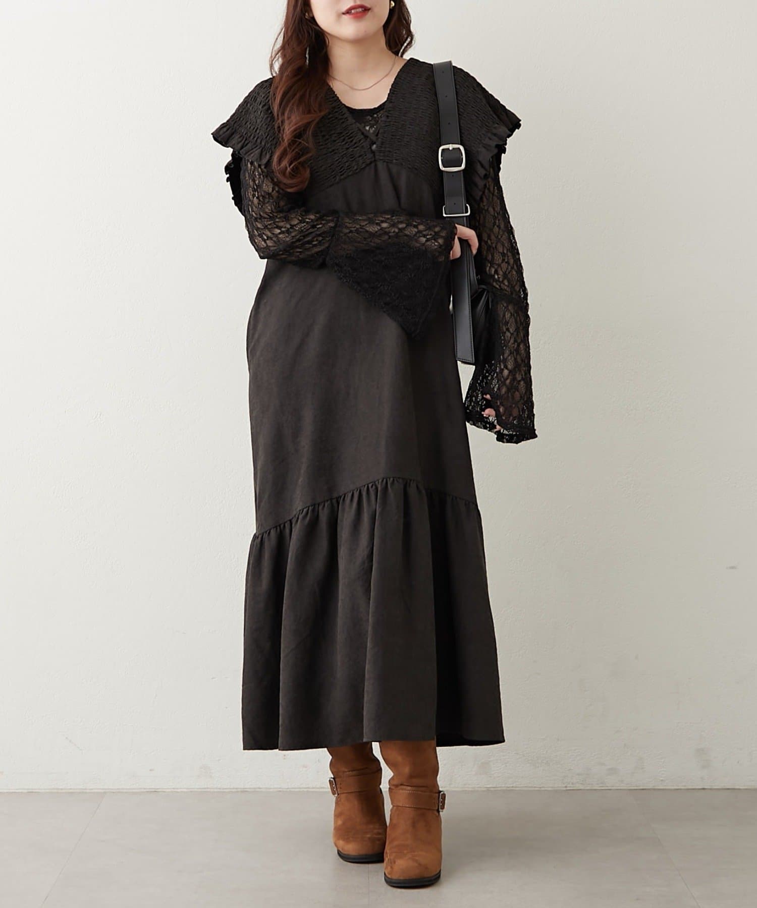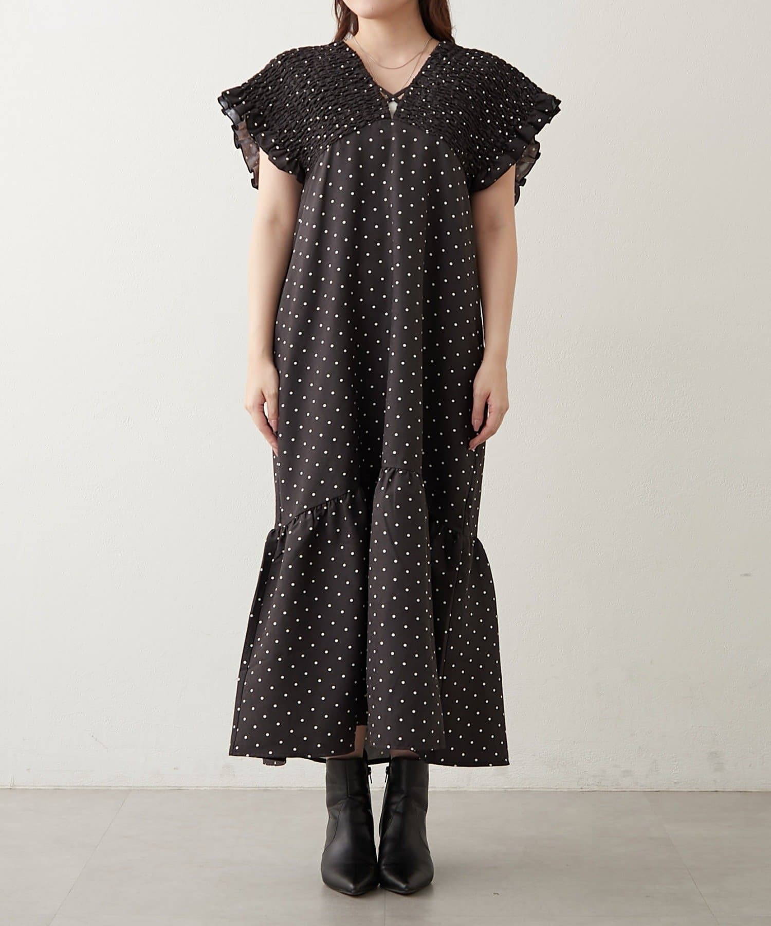 シャーリング裾切替ワンピース