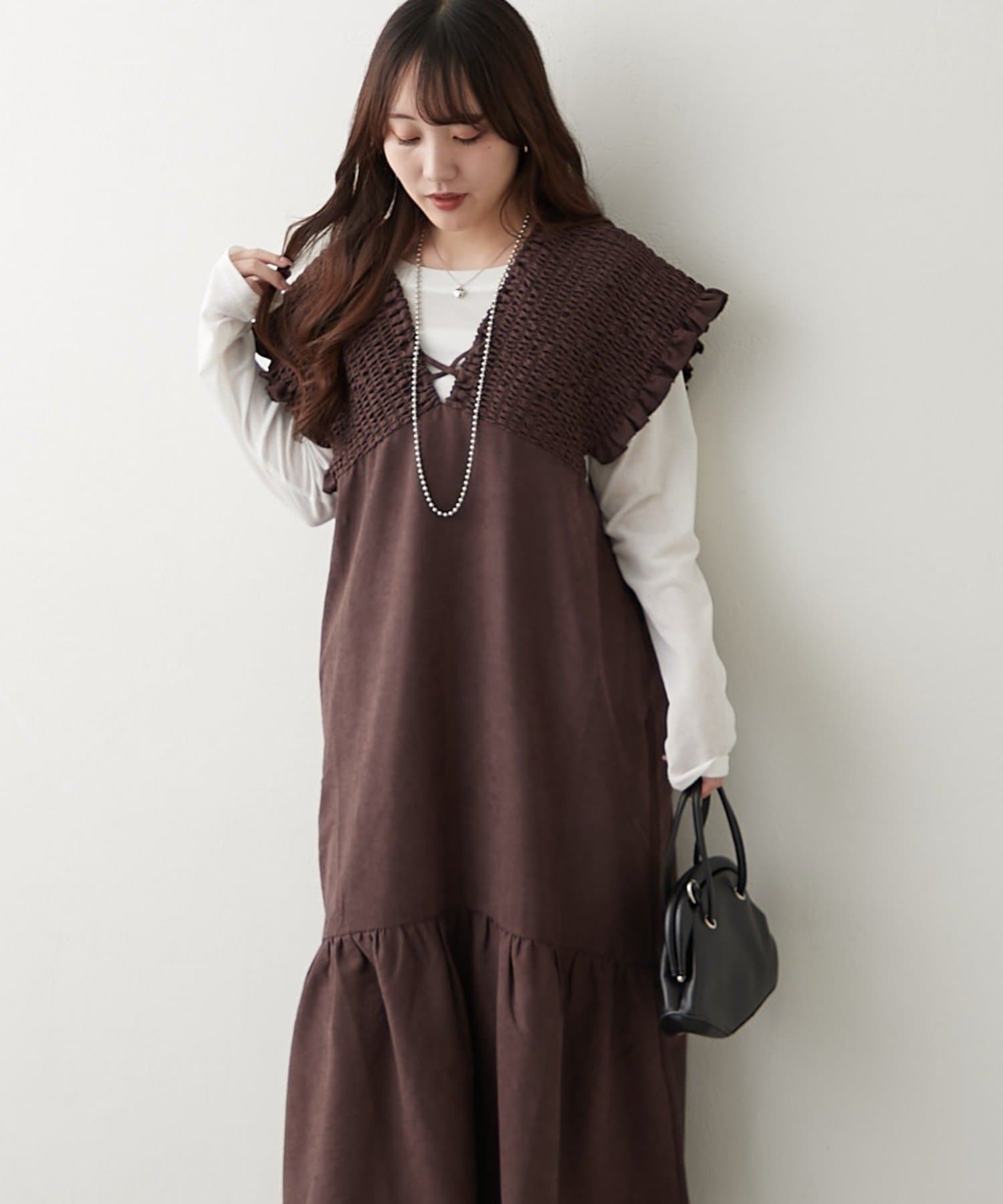 ・人気のワンピースに、秋らしいピーチ素材が登場