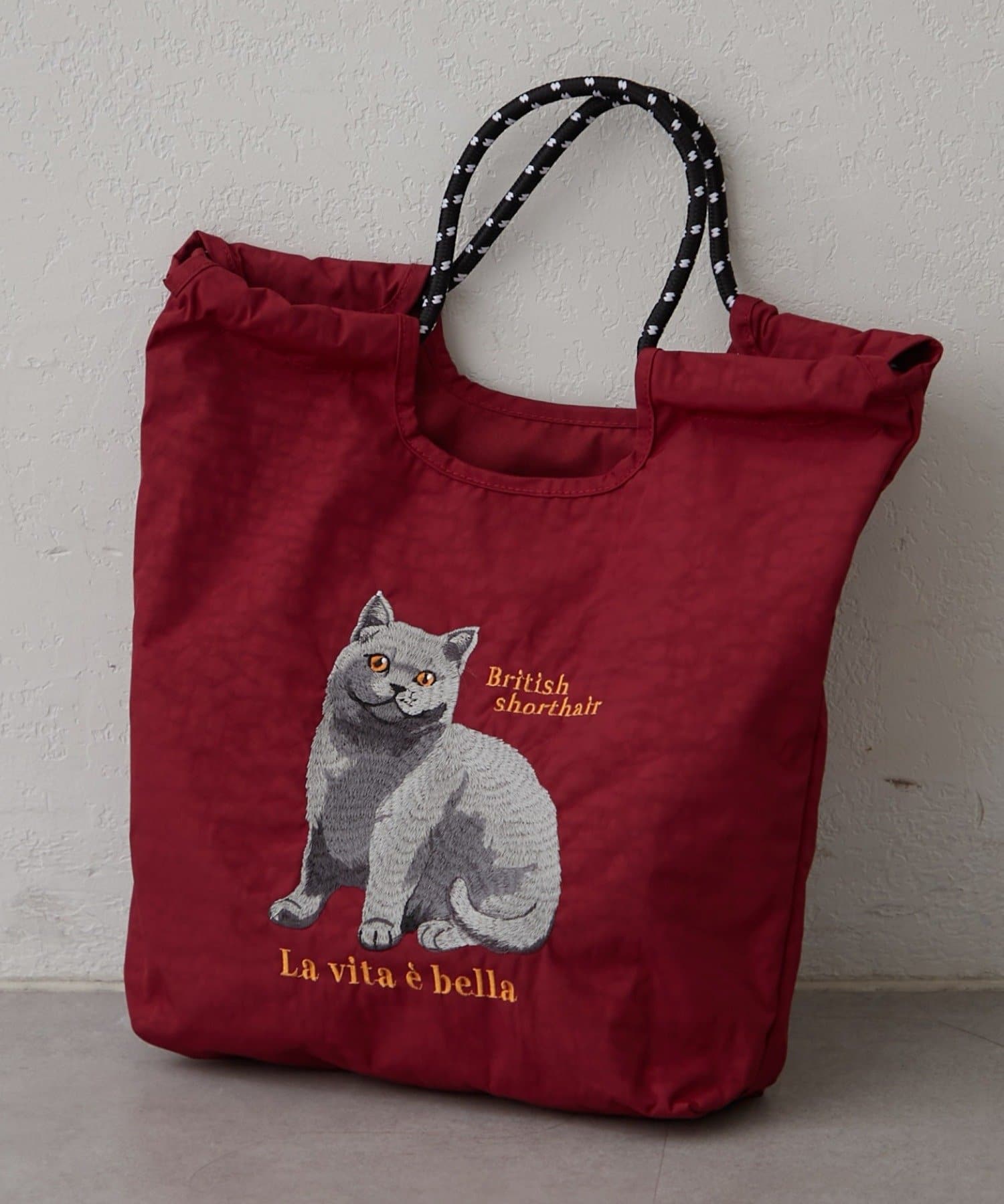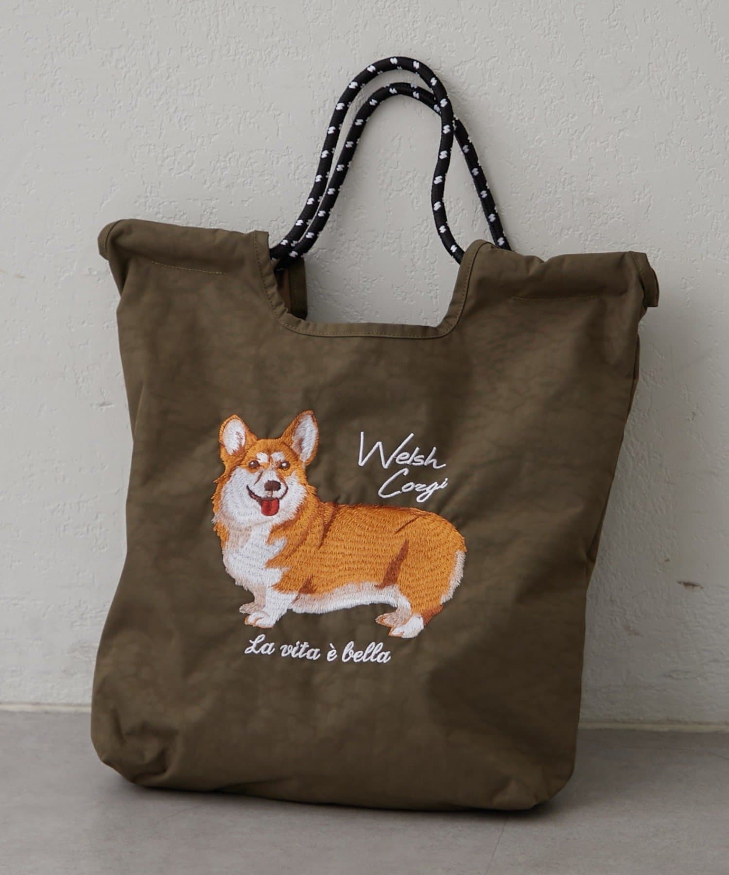・アニマルの刺繍とカラフルなコードの持ち手が目を引くトートバッグ